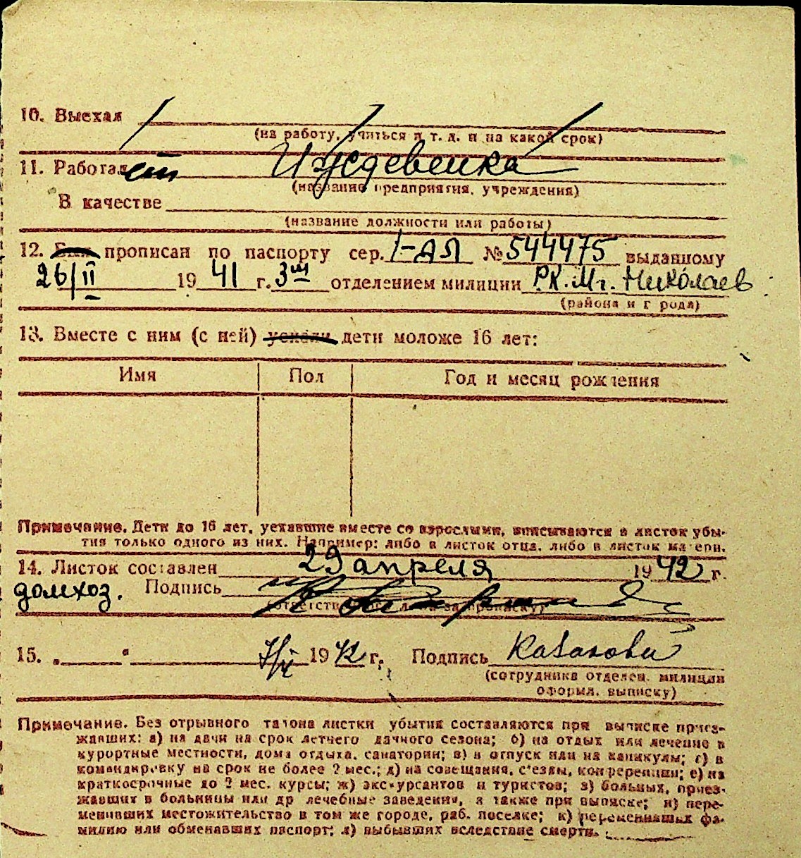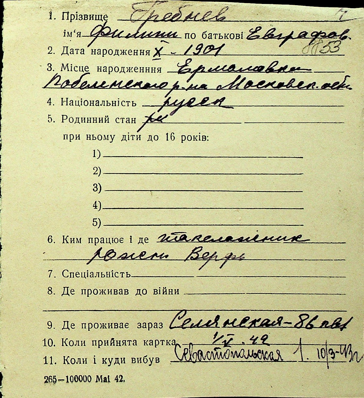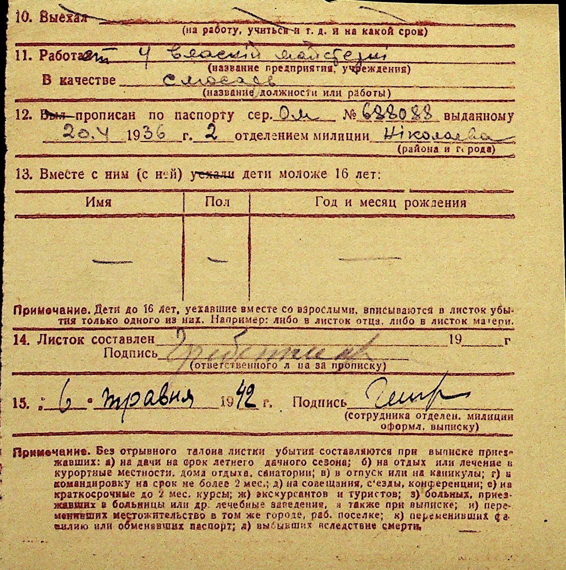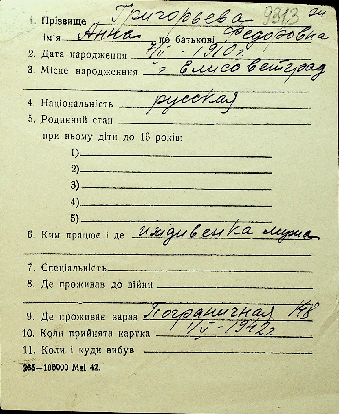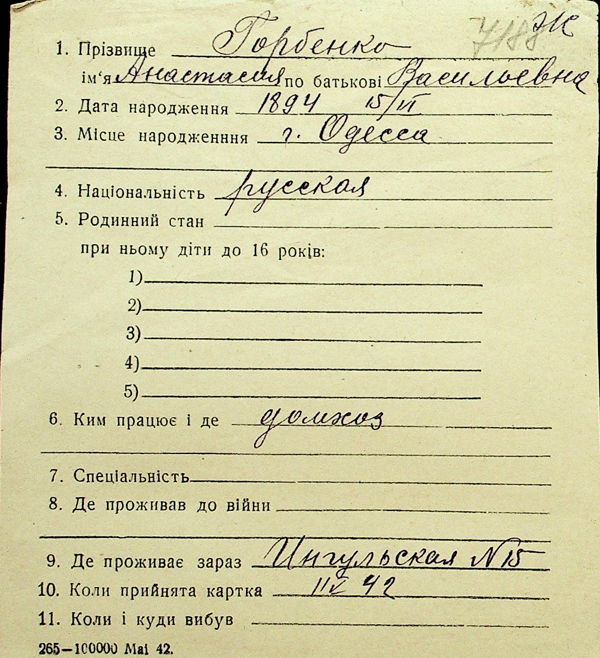 • • Перелік карток до фонду № Н-1016