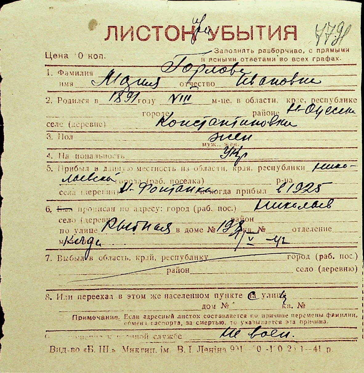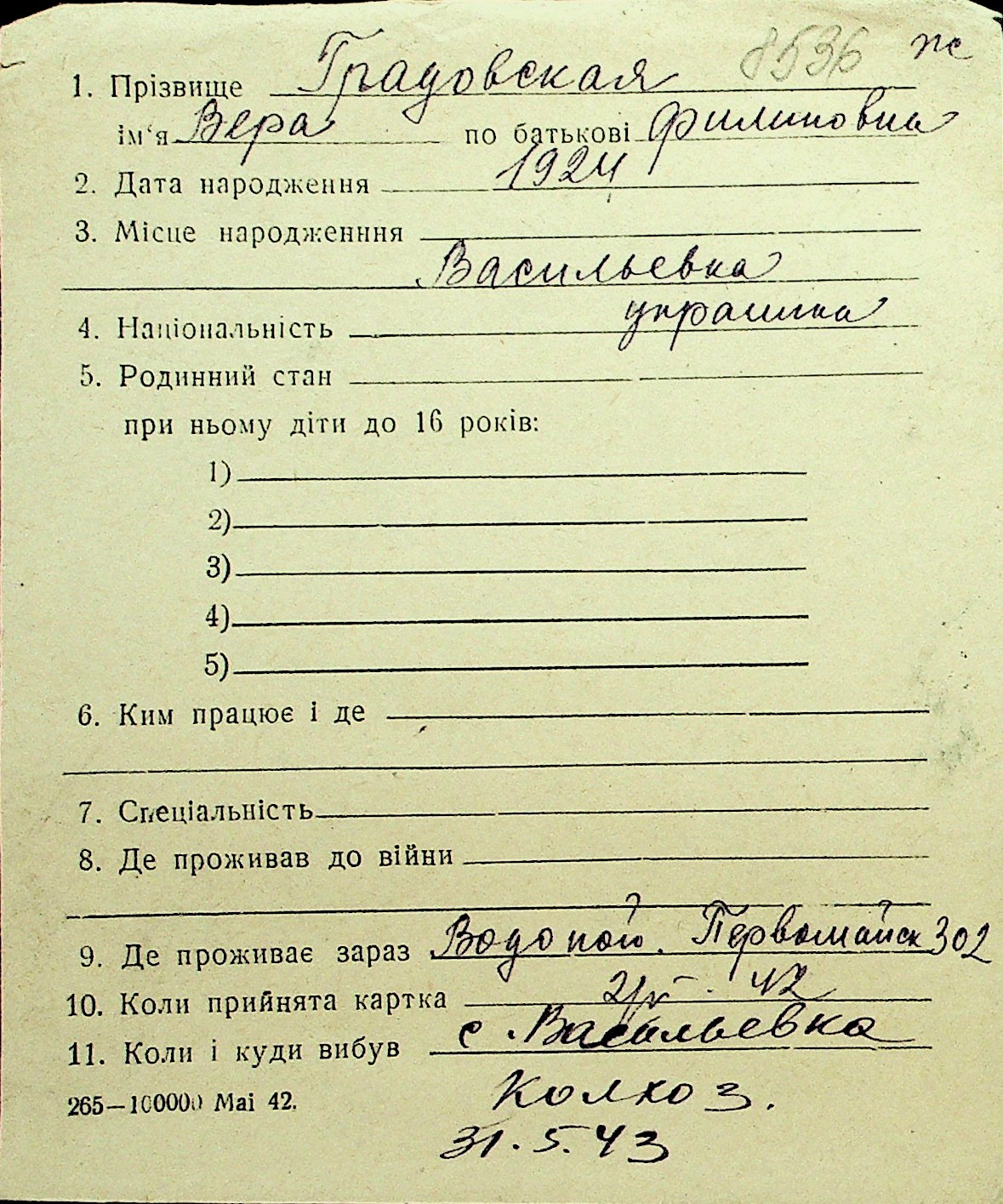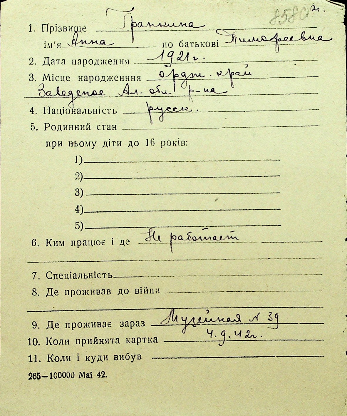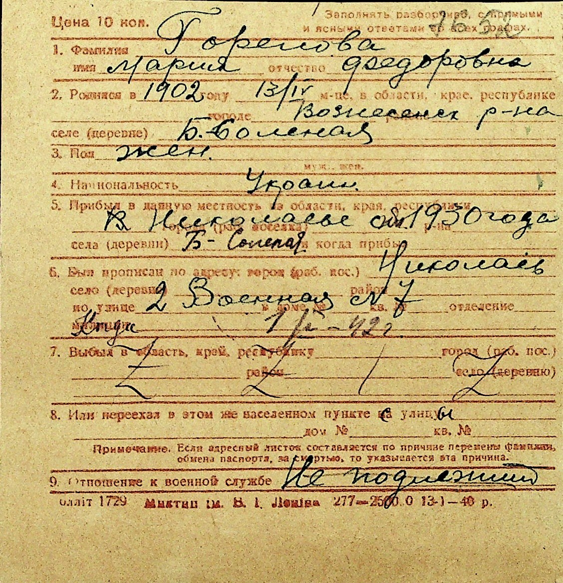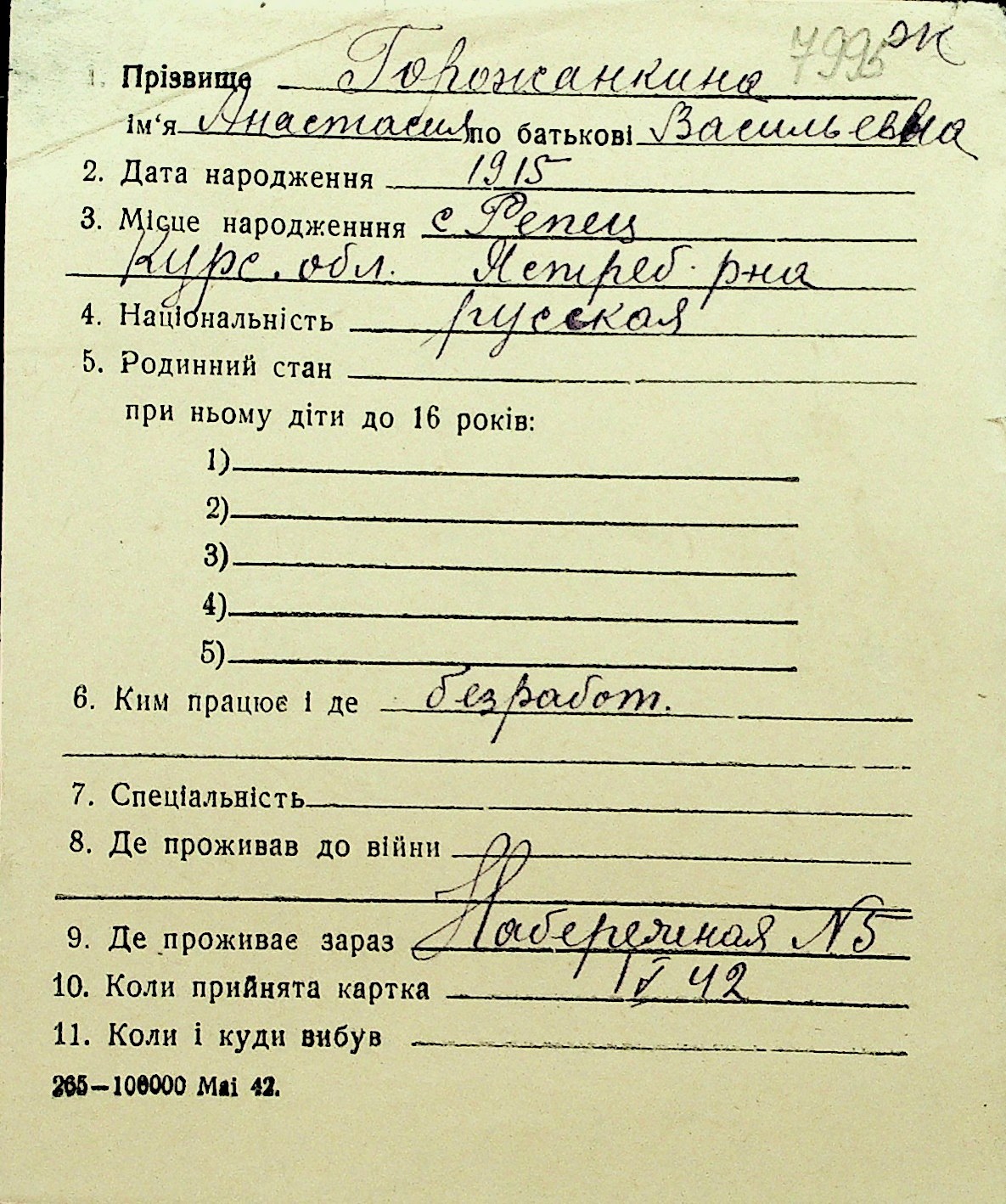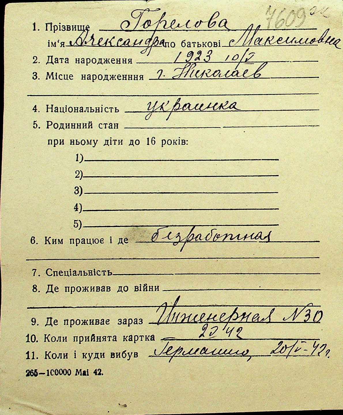 • • Перелік карток до фонду № Н-1016
