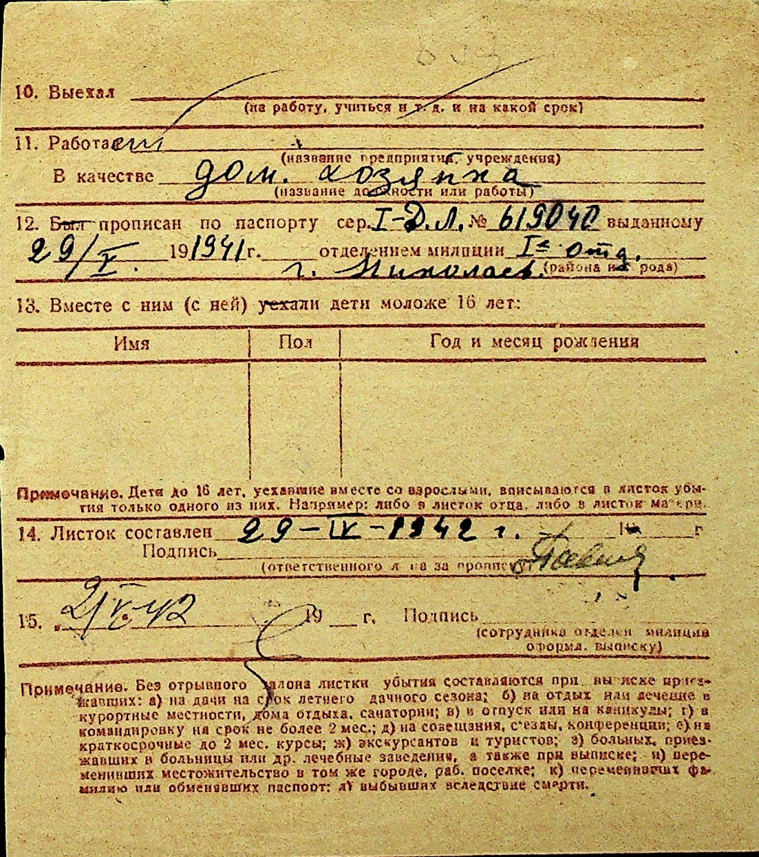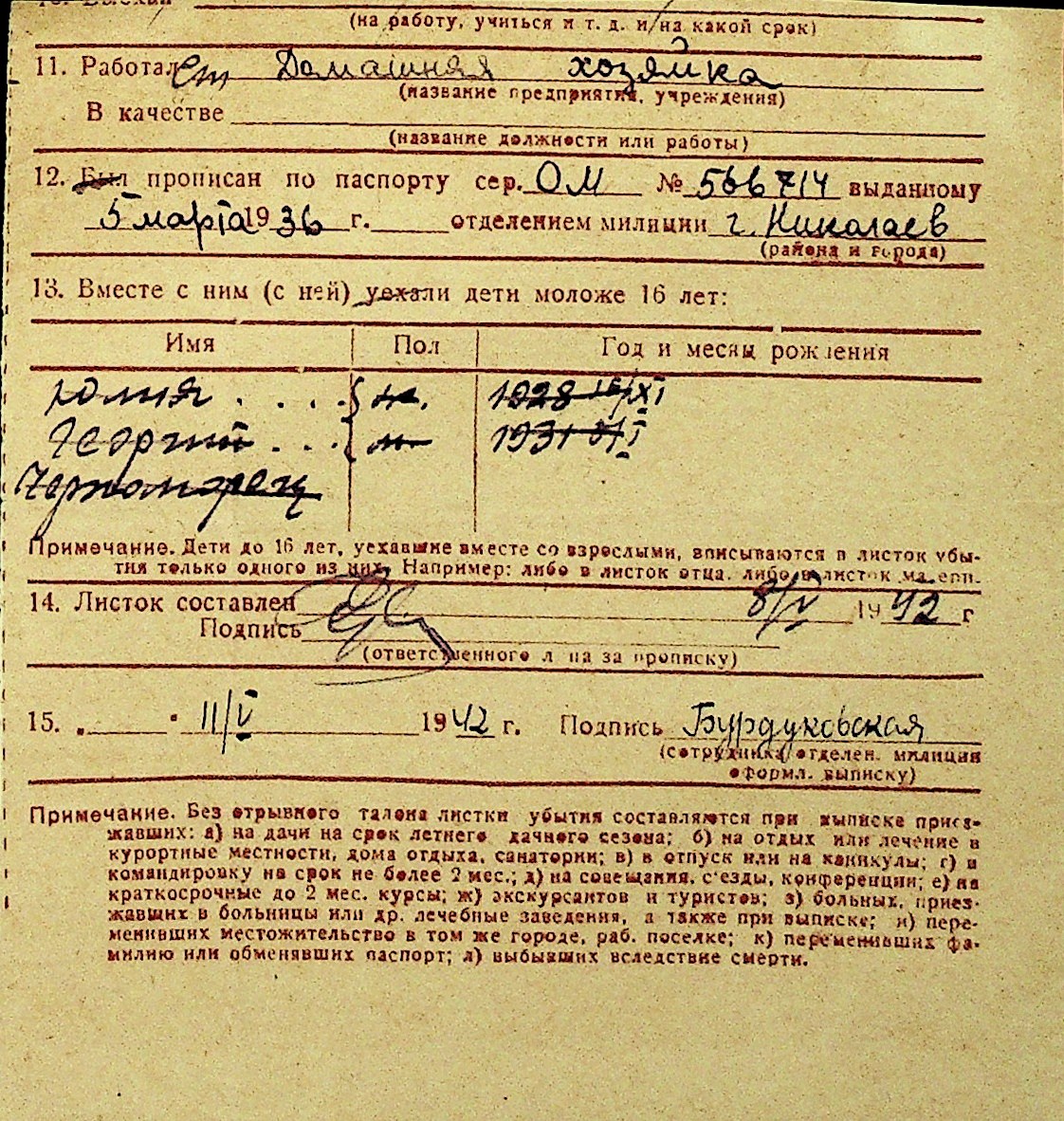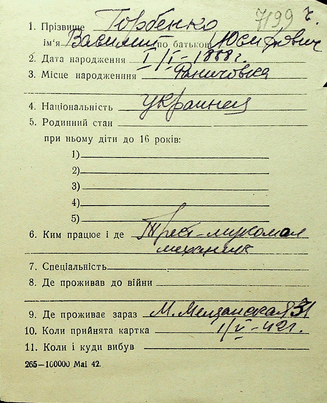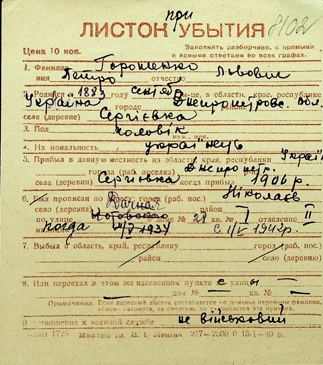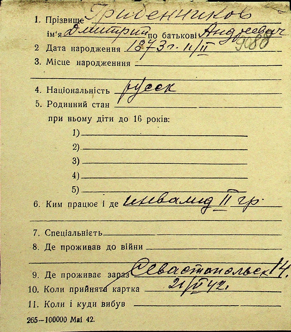 • • Перелік карток до фонду № Н-1016