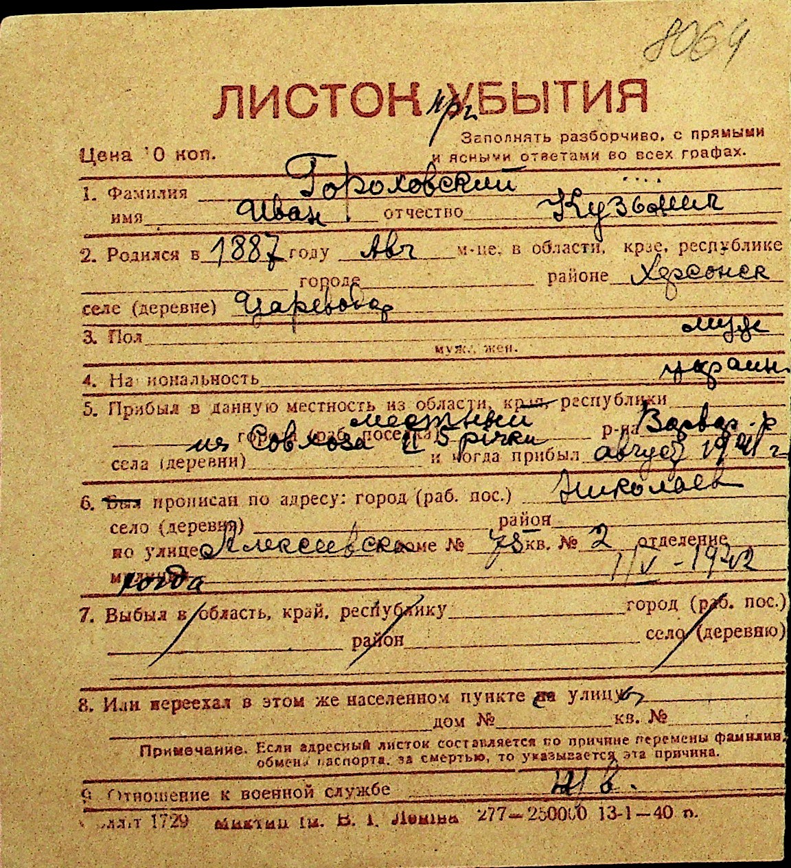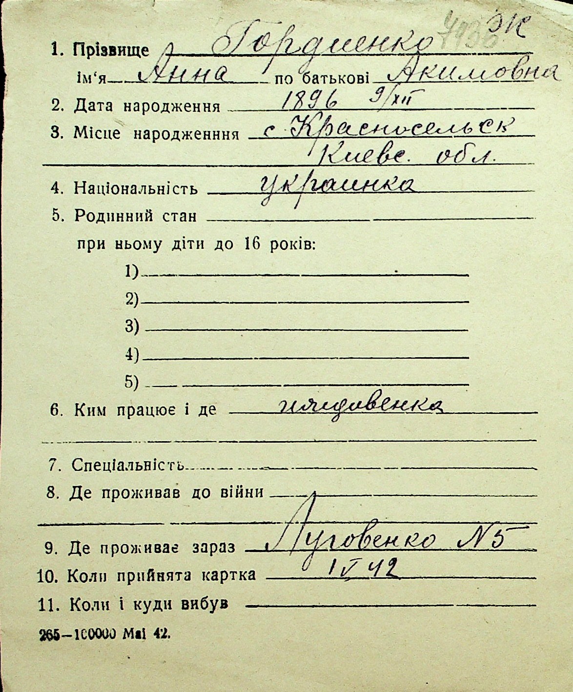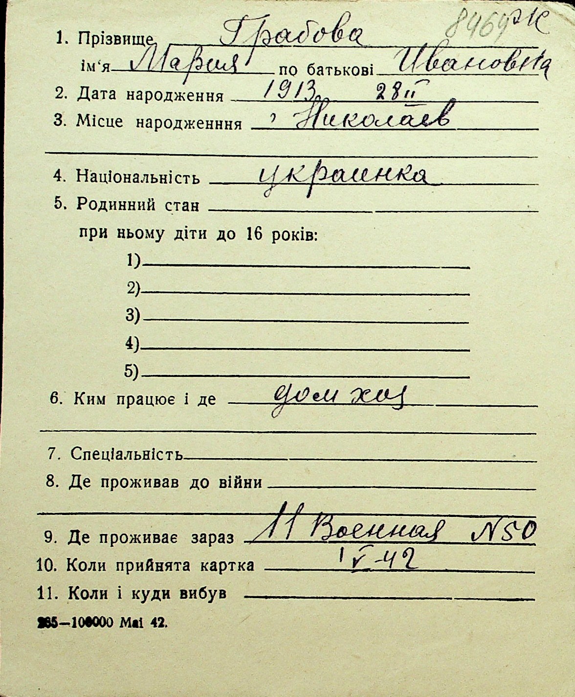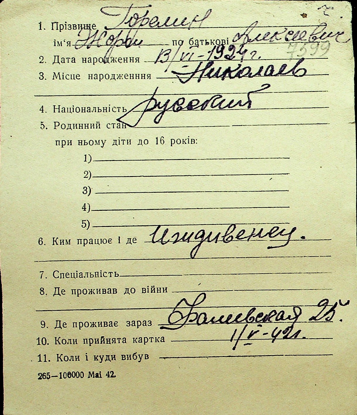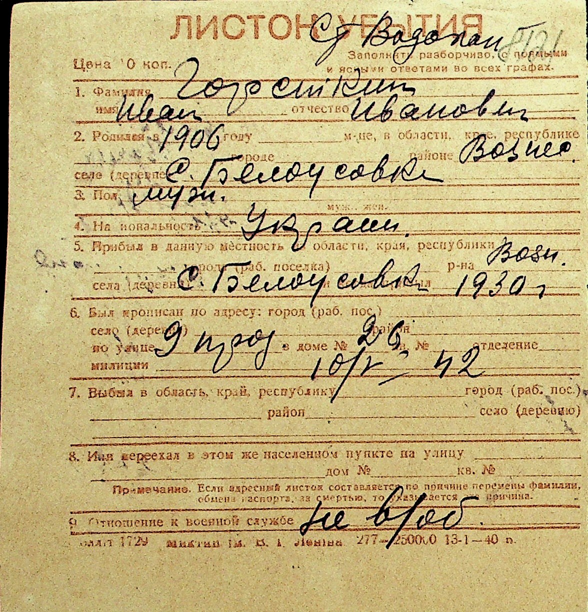 • • Перелік карток до фонду № Н-1016