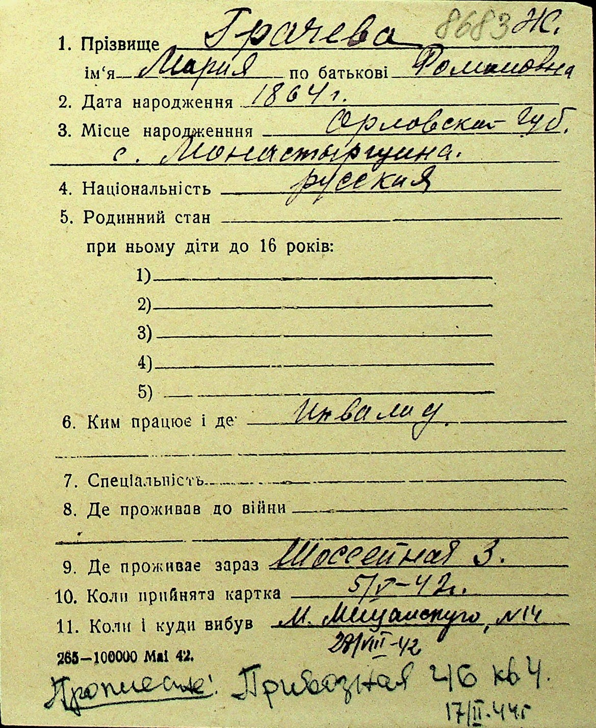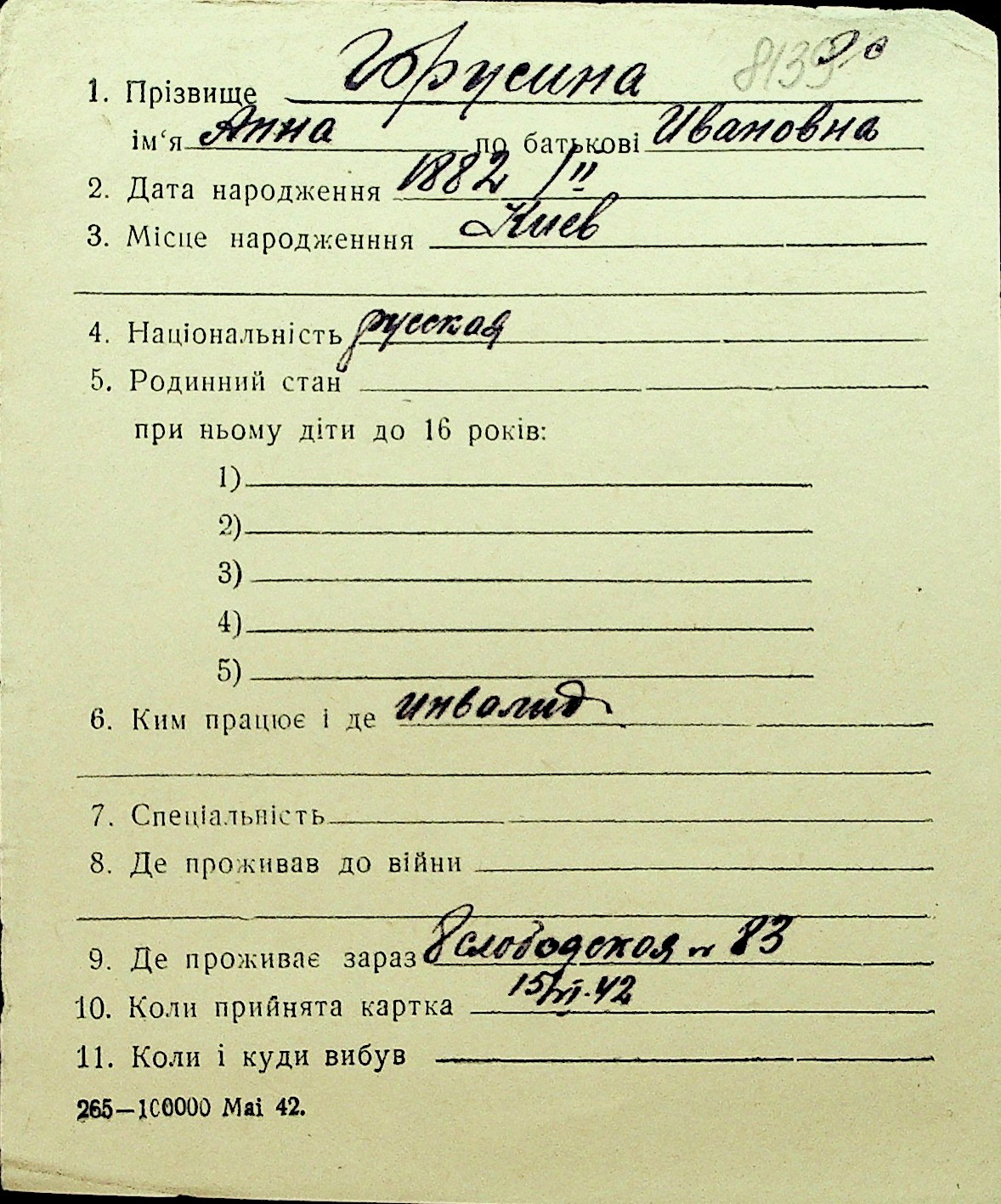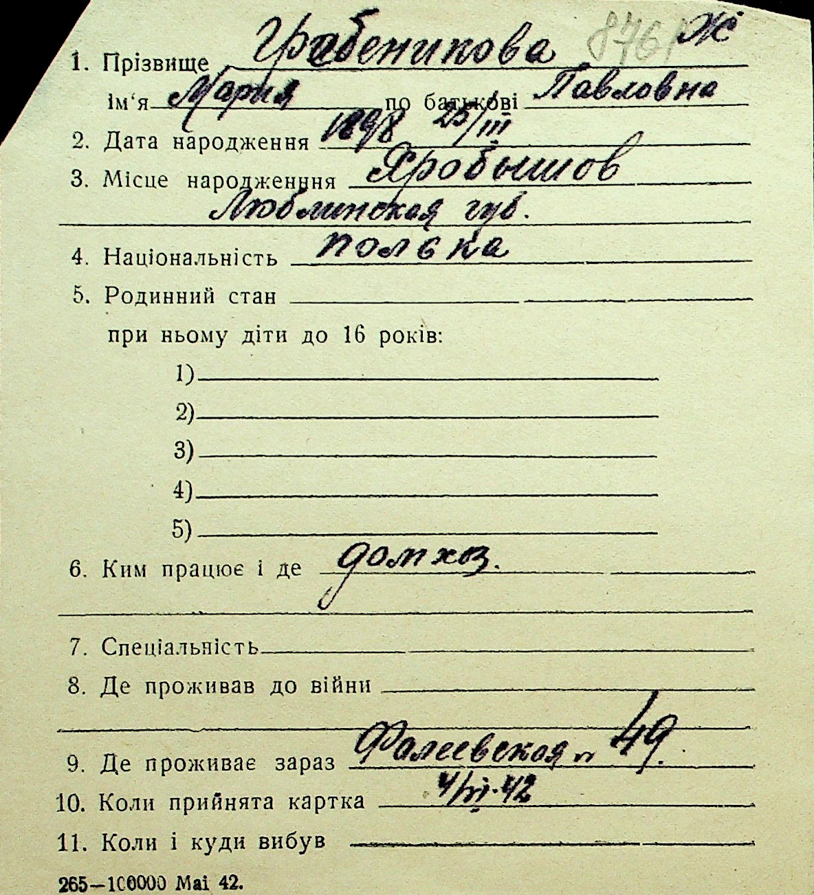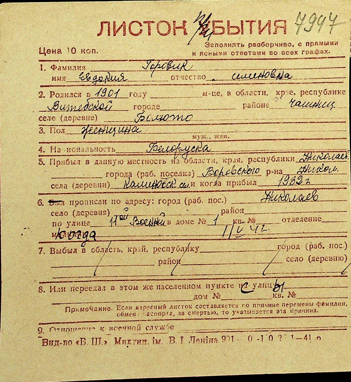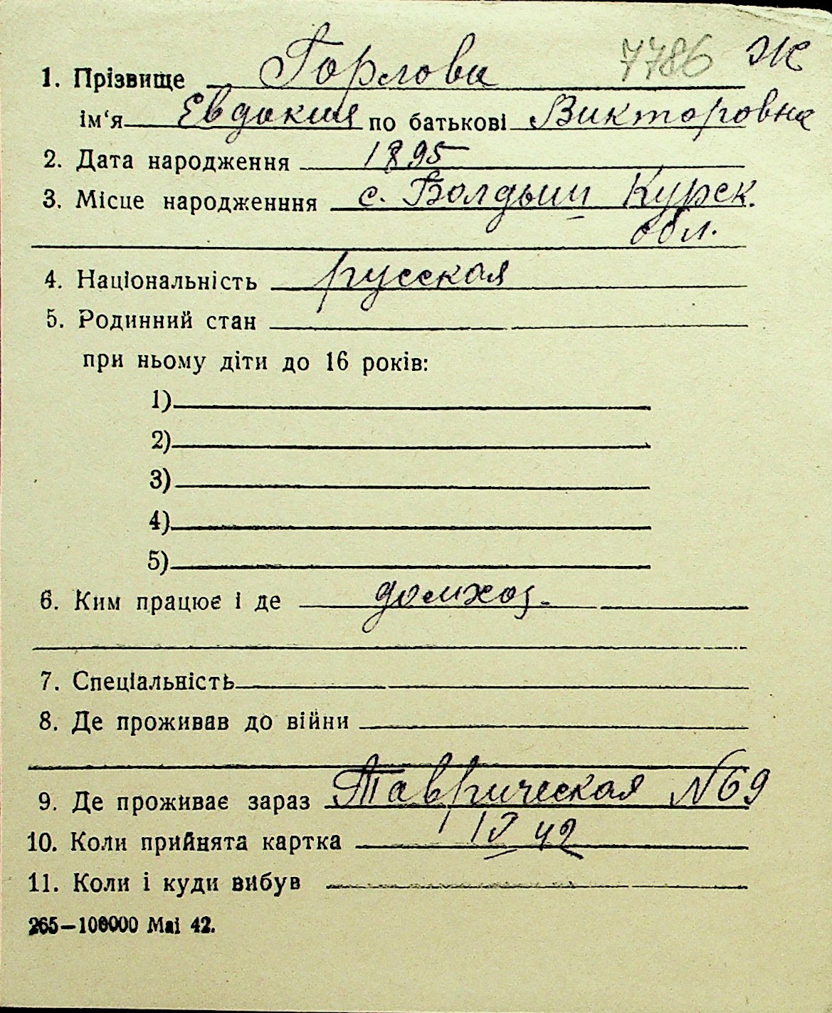 • • Перелік карток до фонду № Н-1016