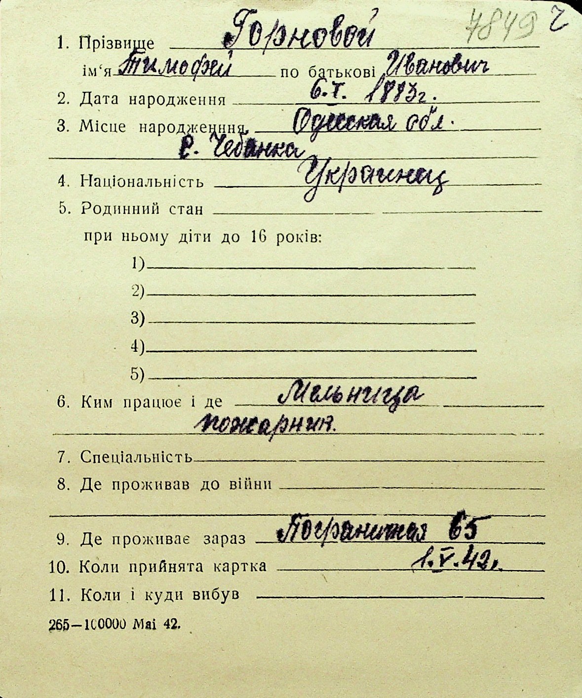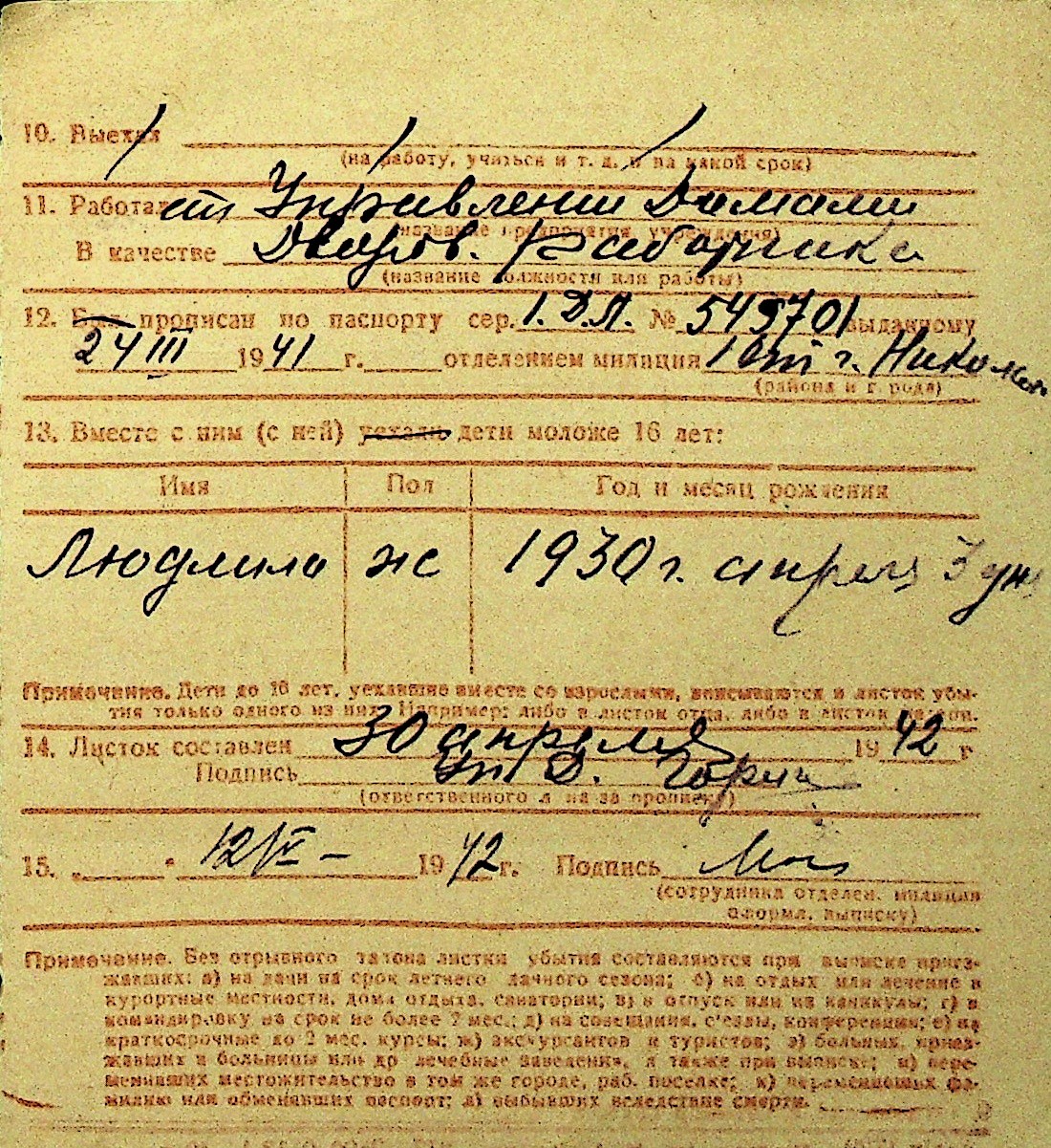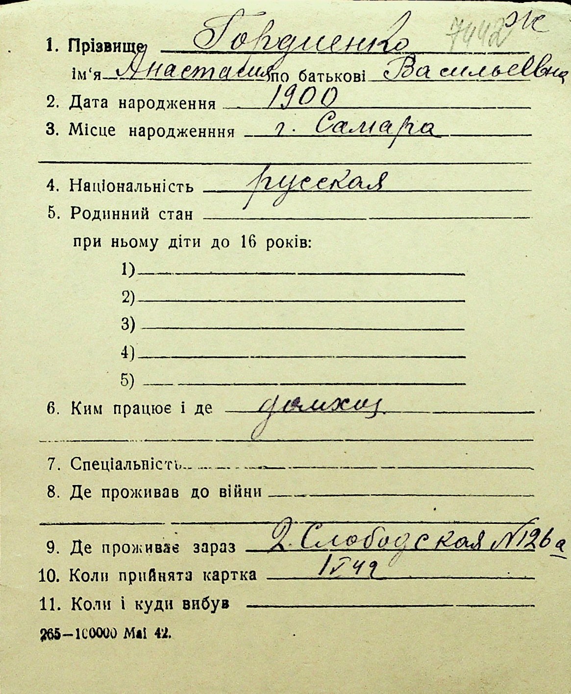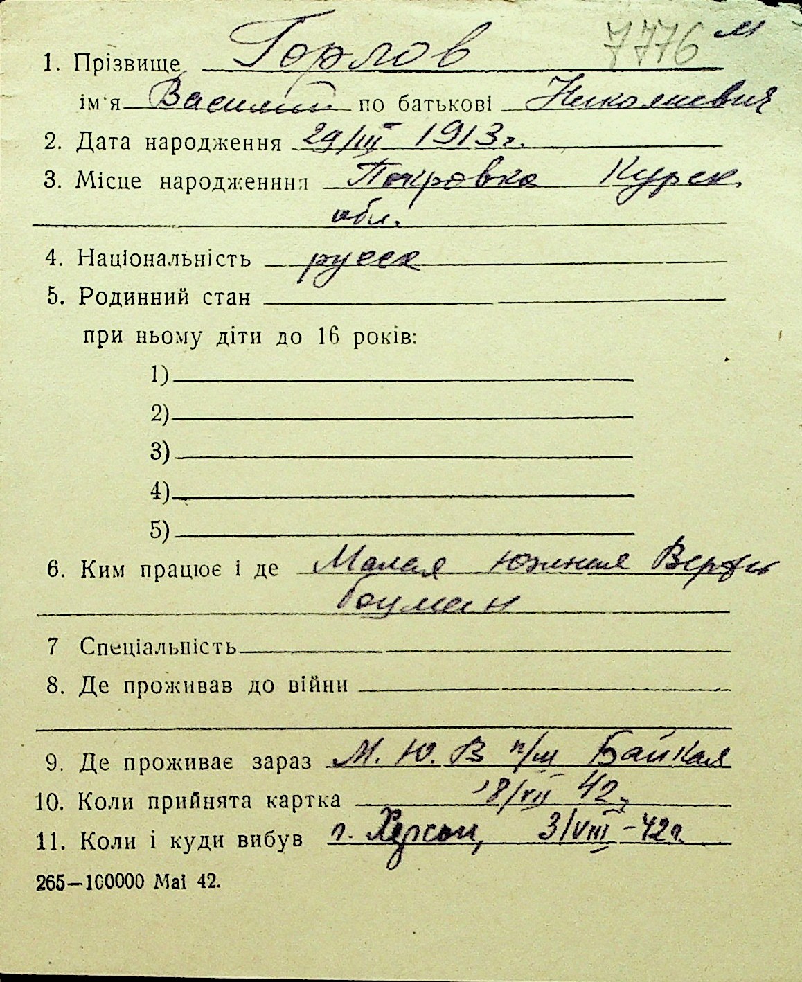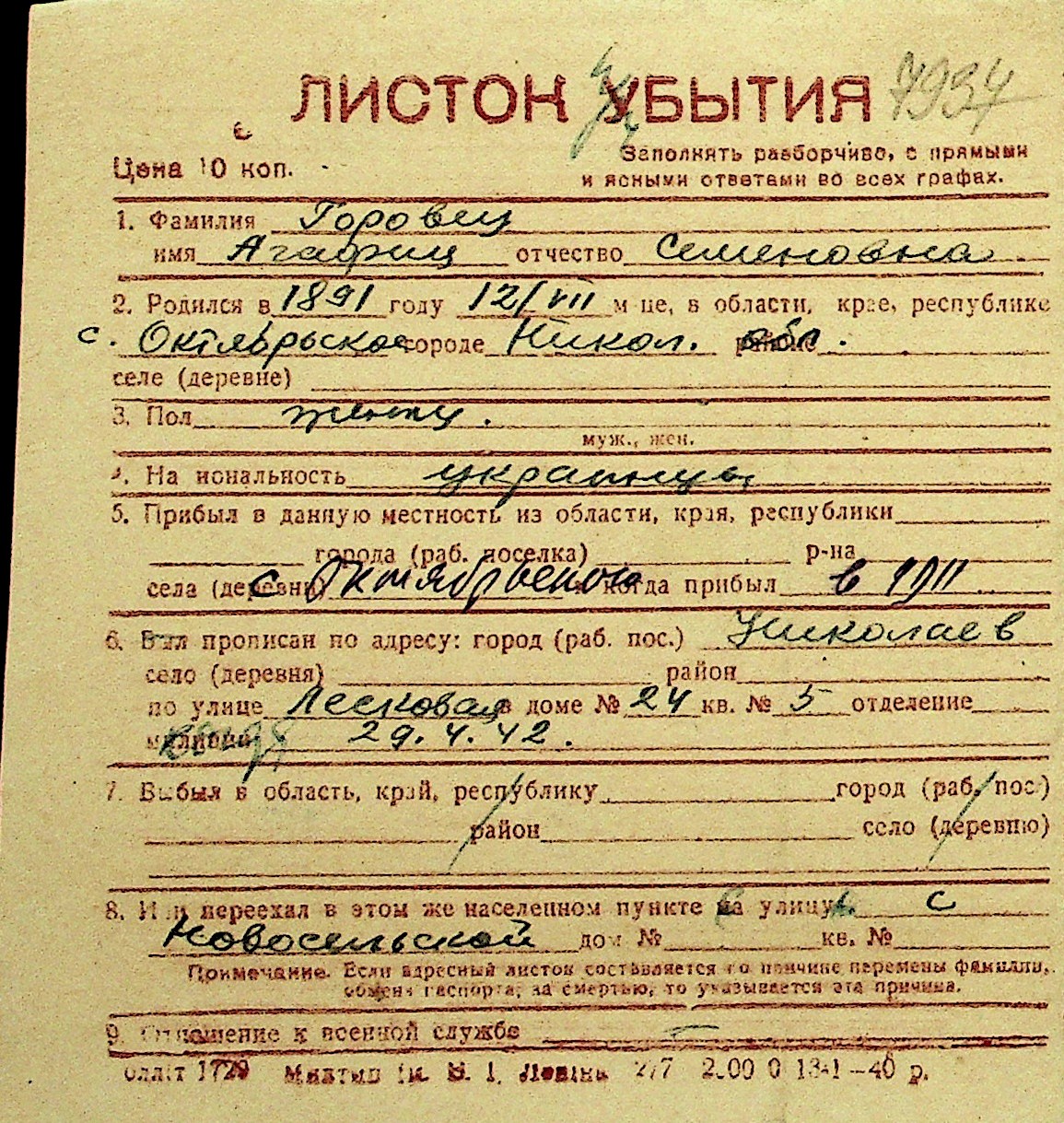 • • Перелік карток до фонду № Н-1016