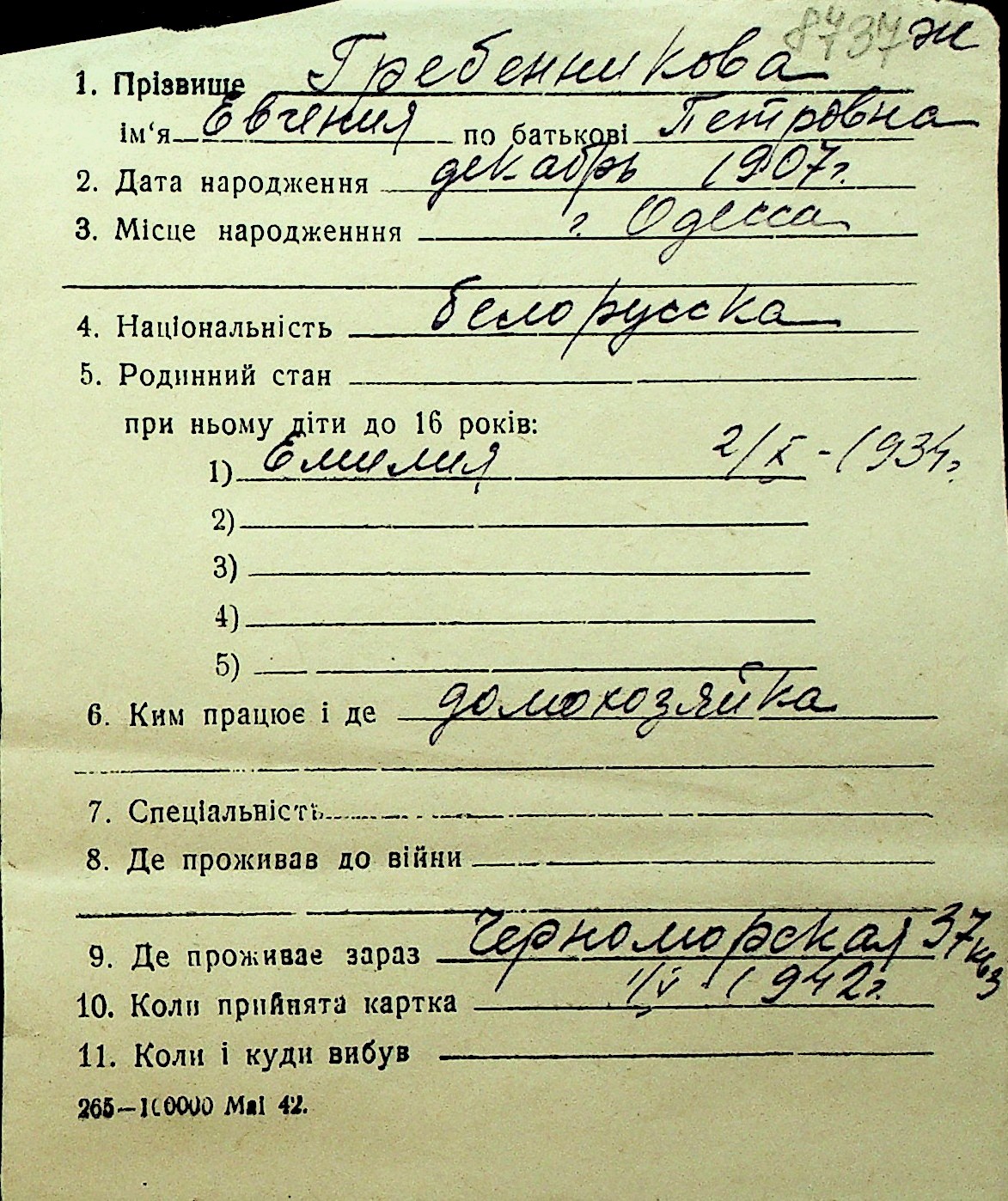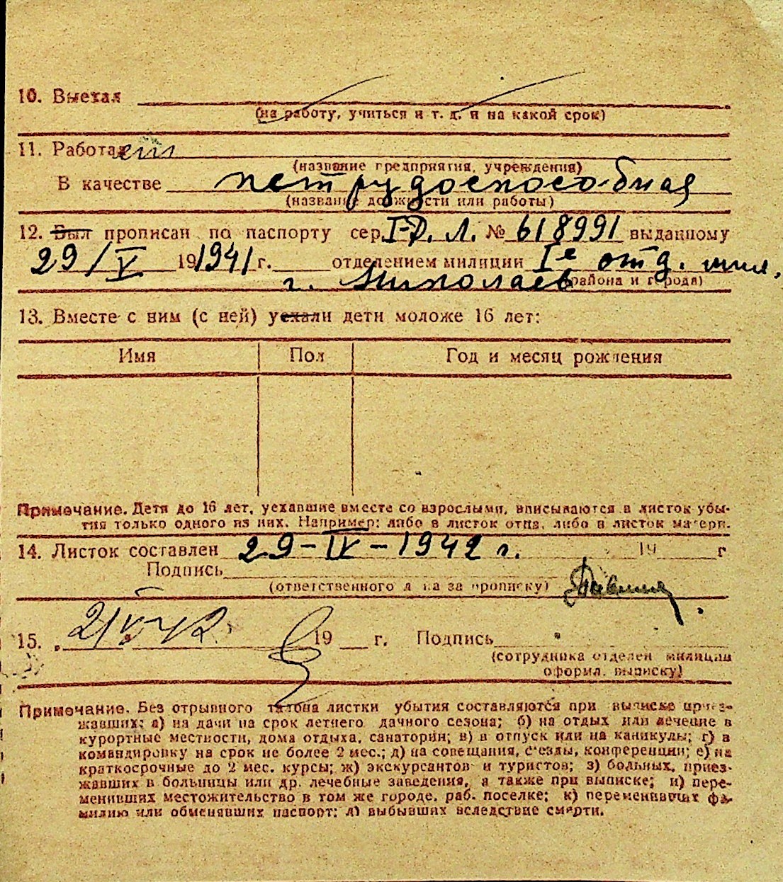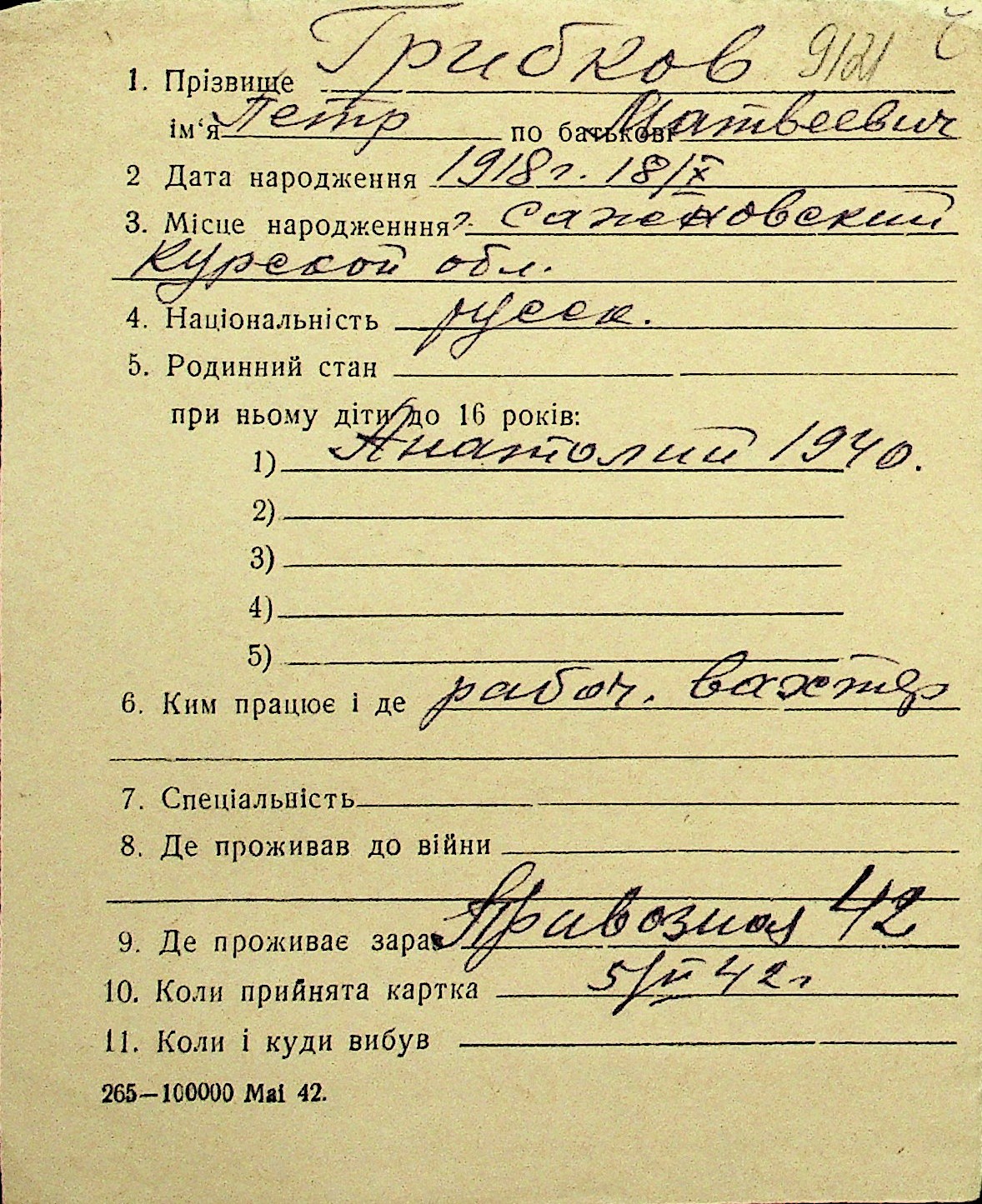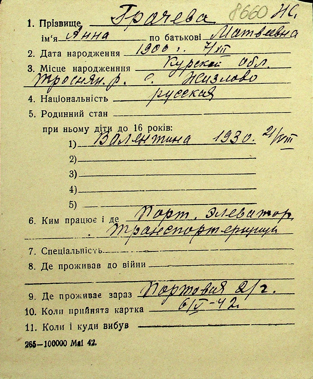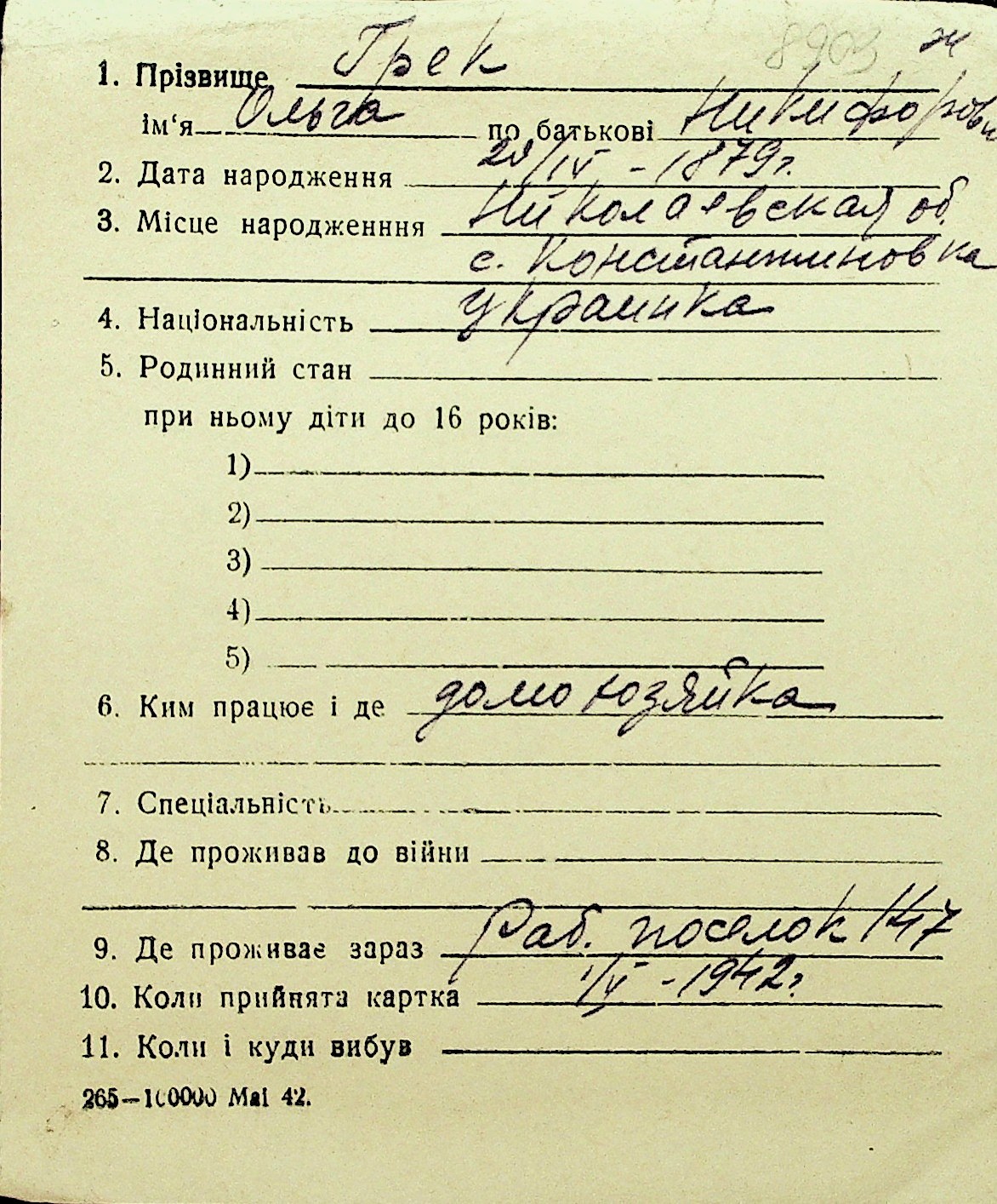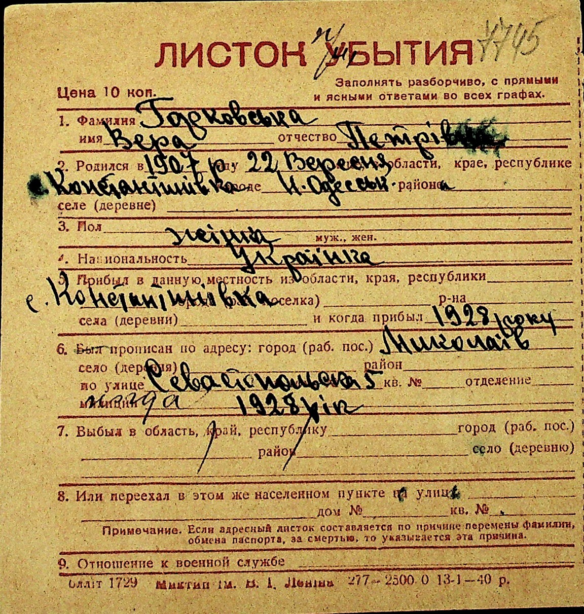 • • Перелік карток до фонду № Н-1016