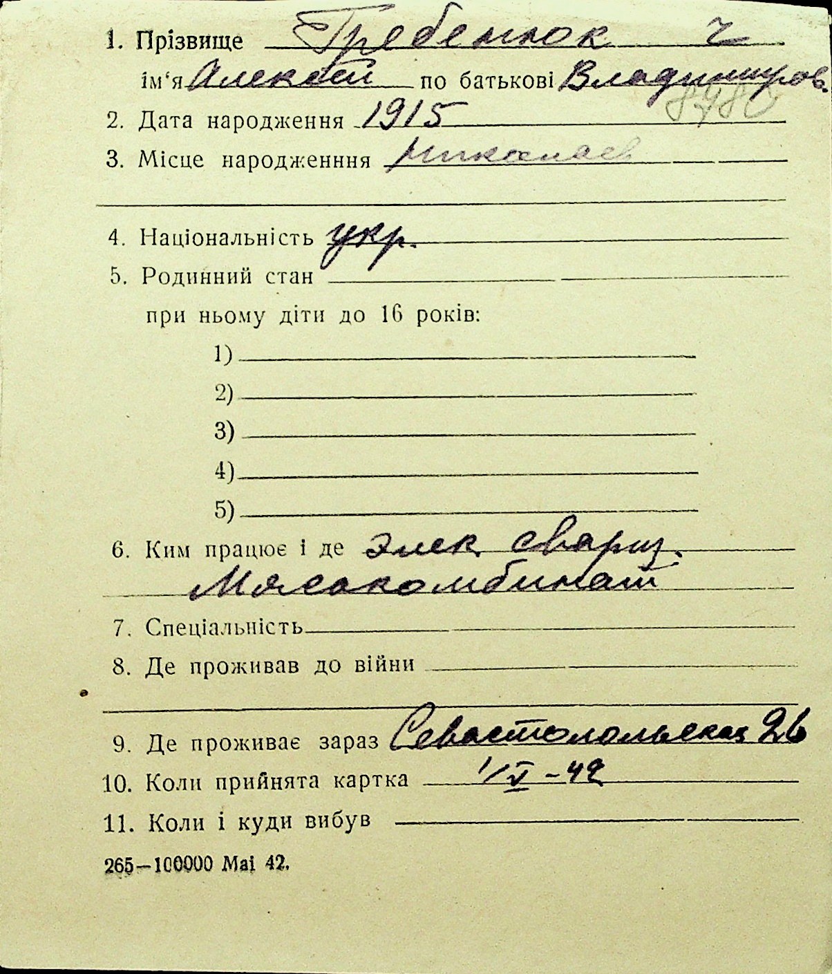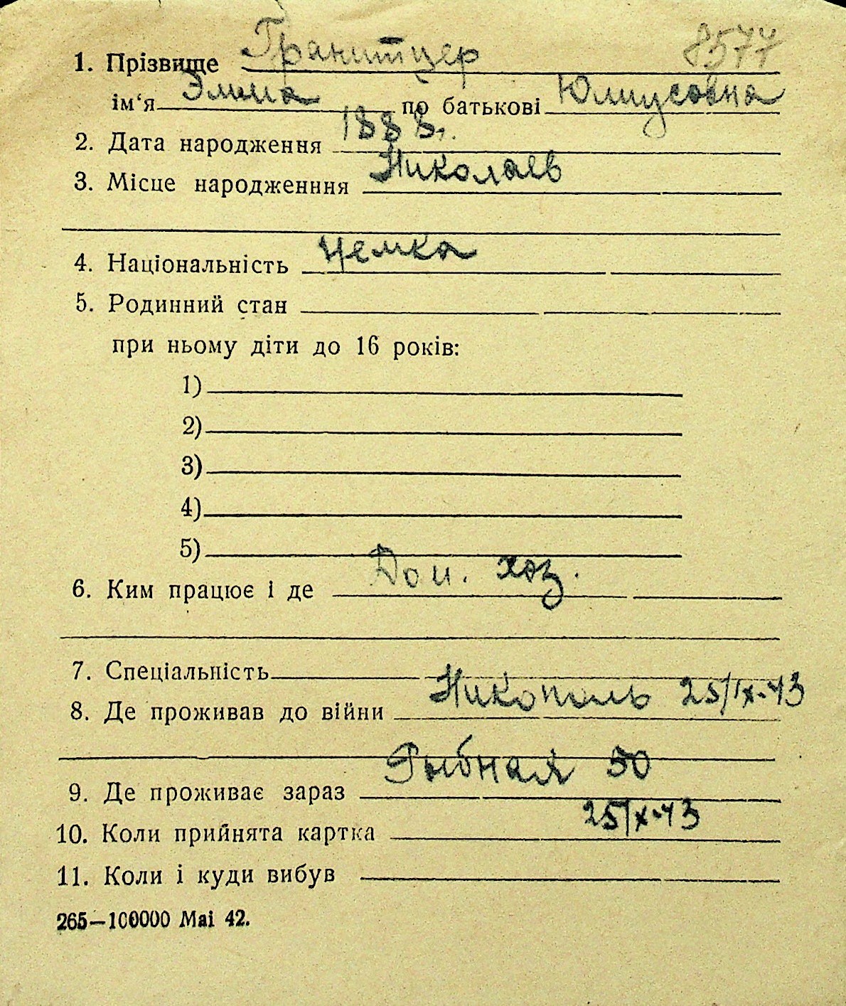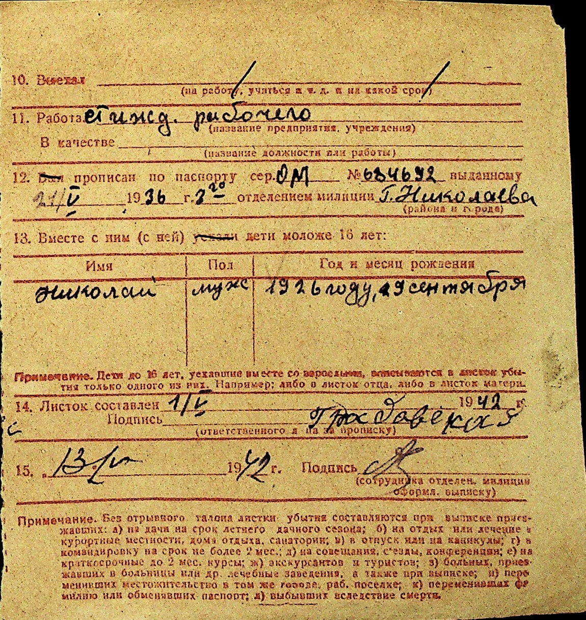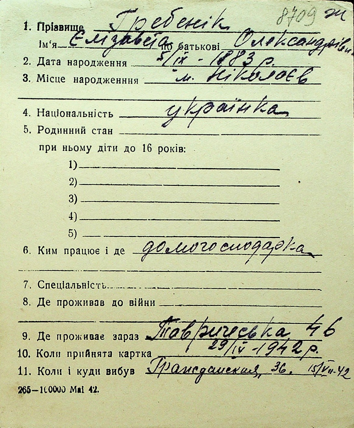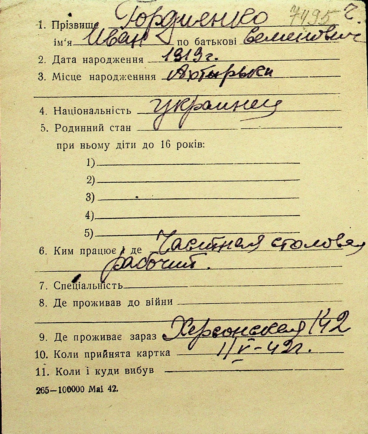 • • Перелік карток до фонду № Н-1016
