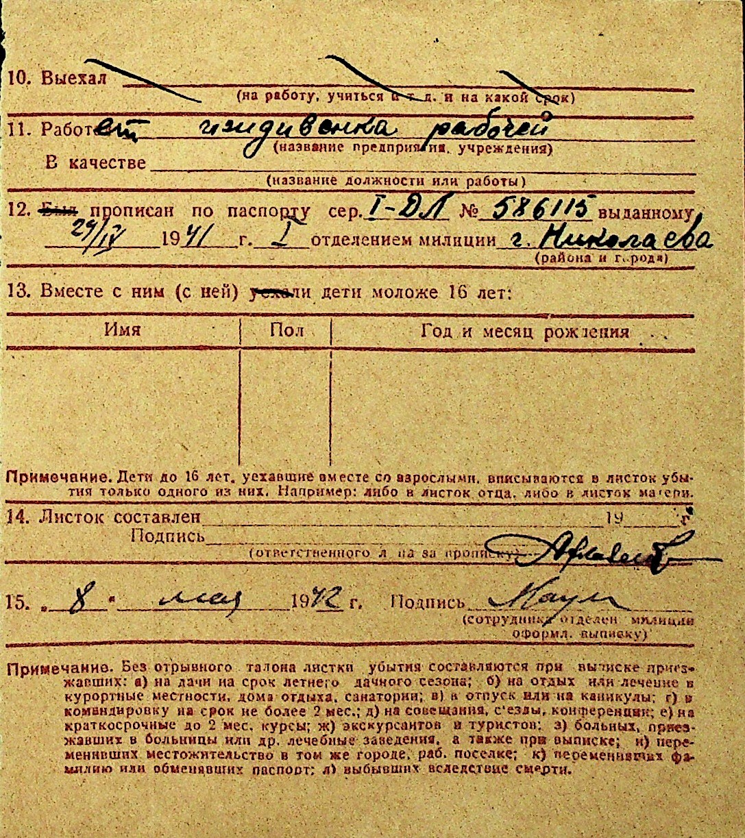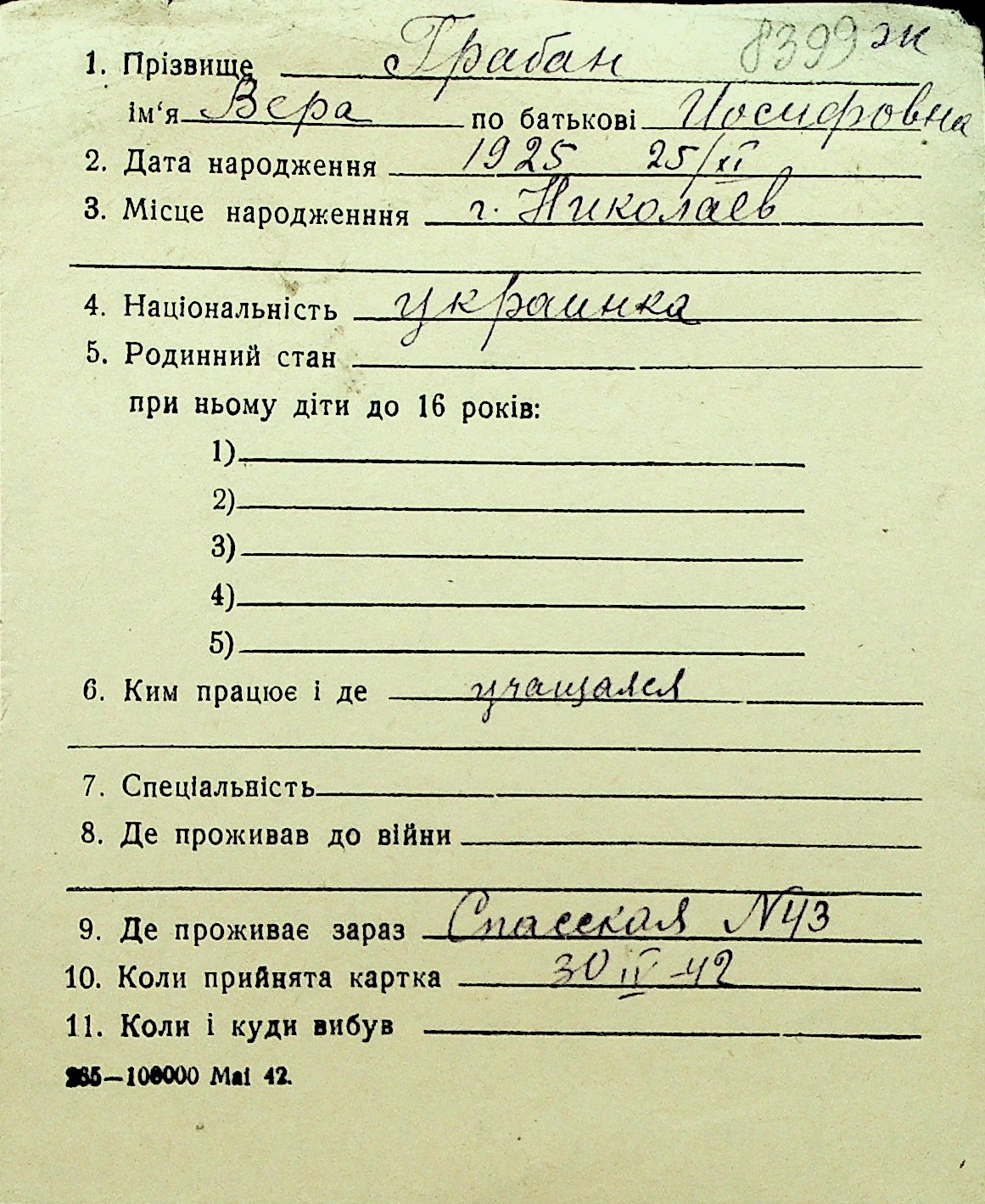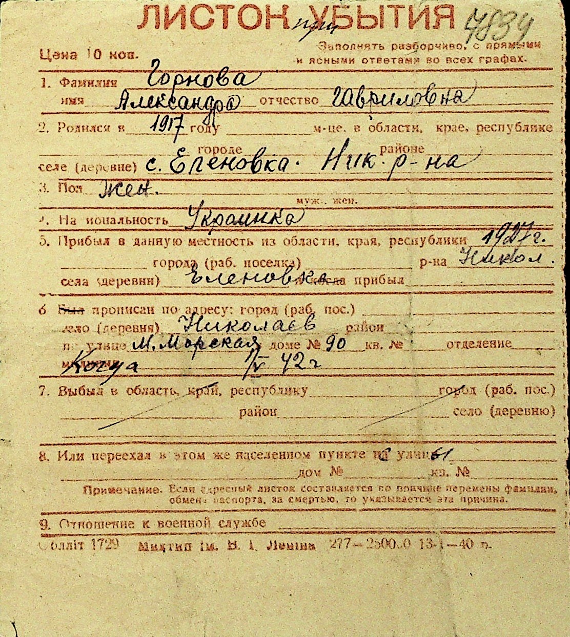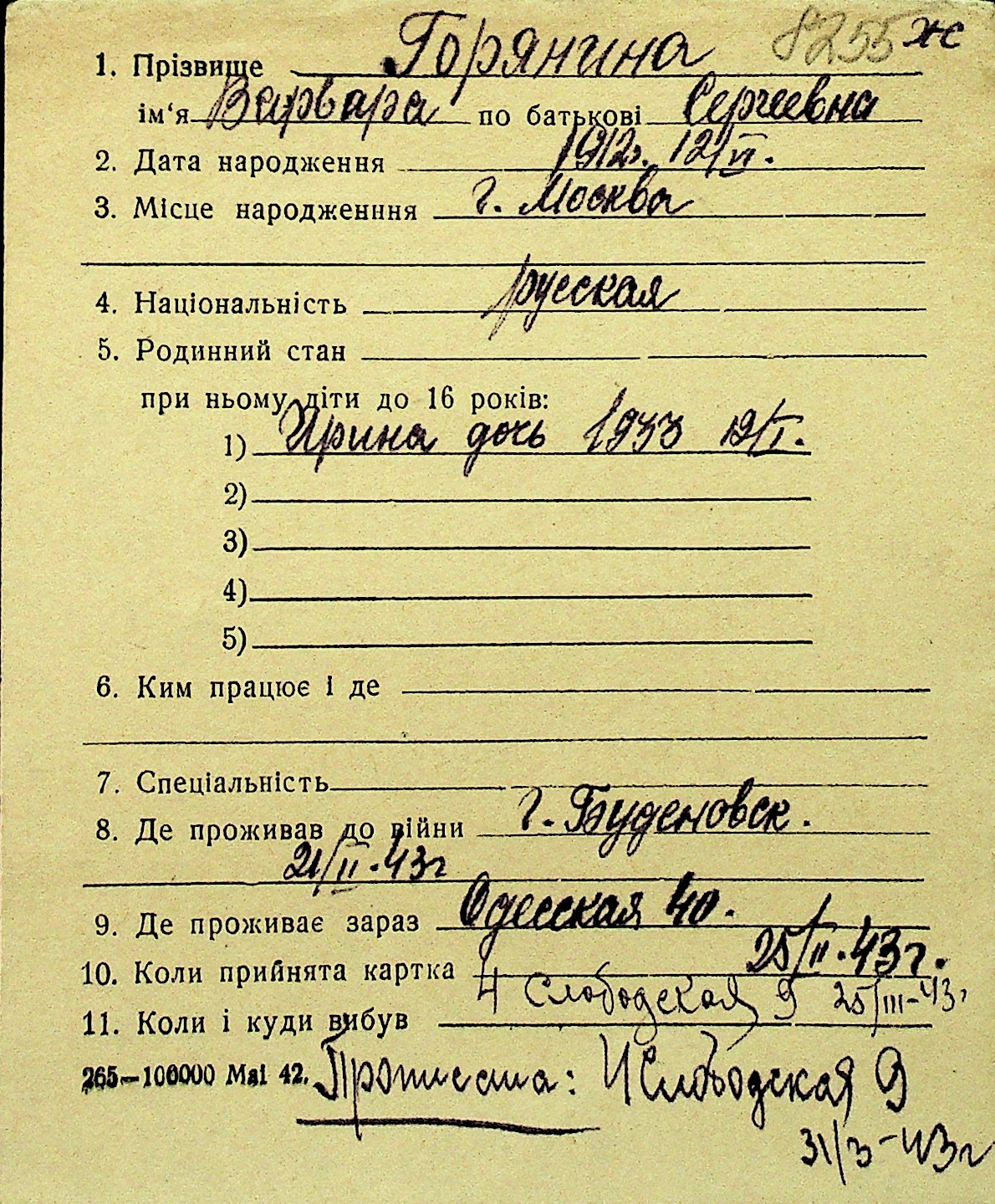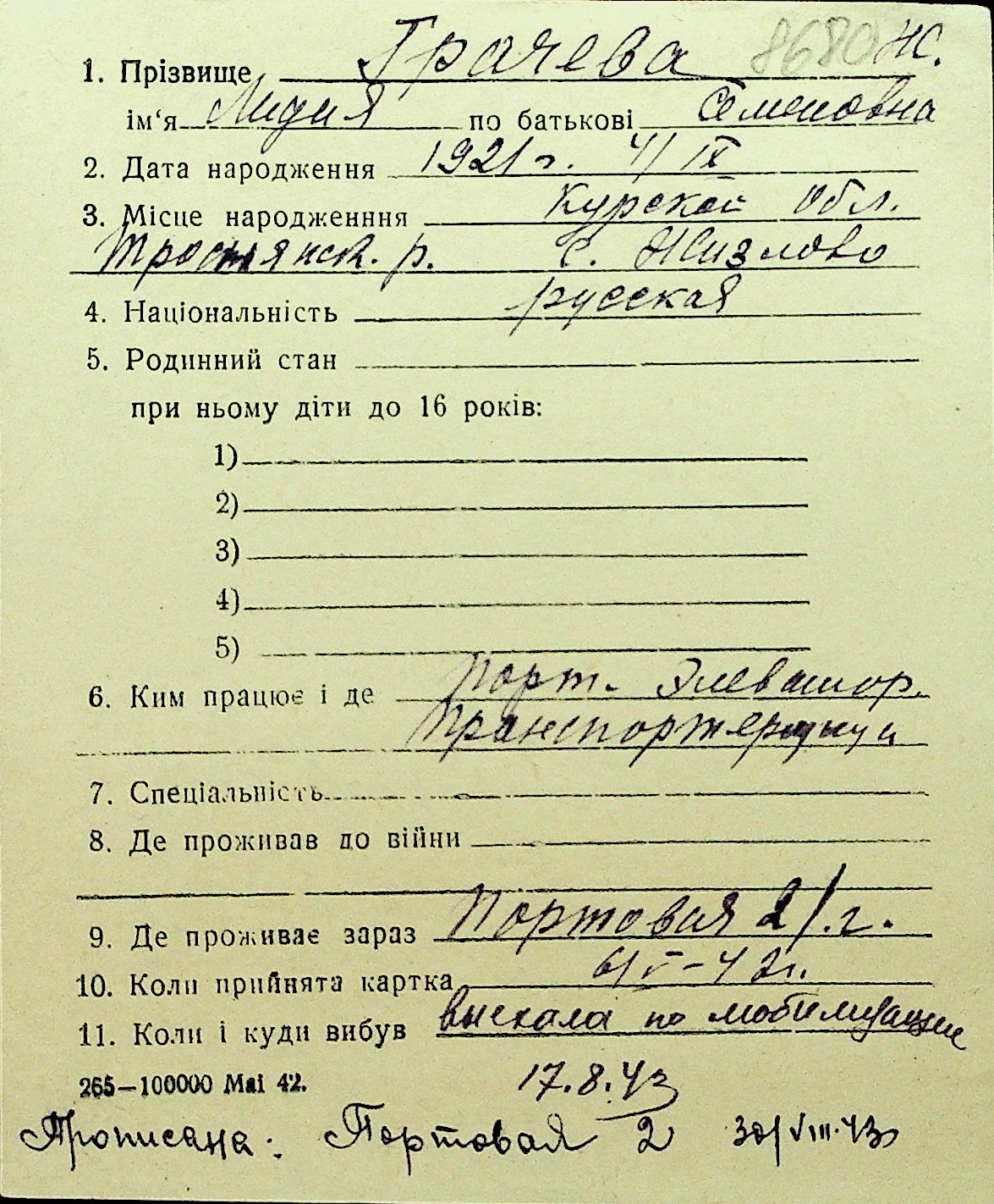 • • Перелік карток до фонду № Н-1016