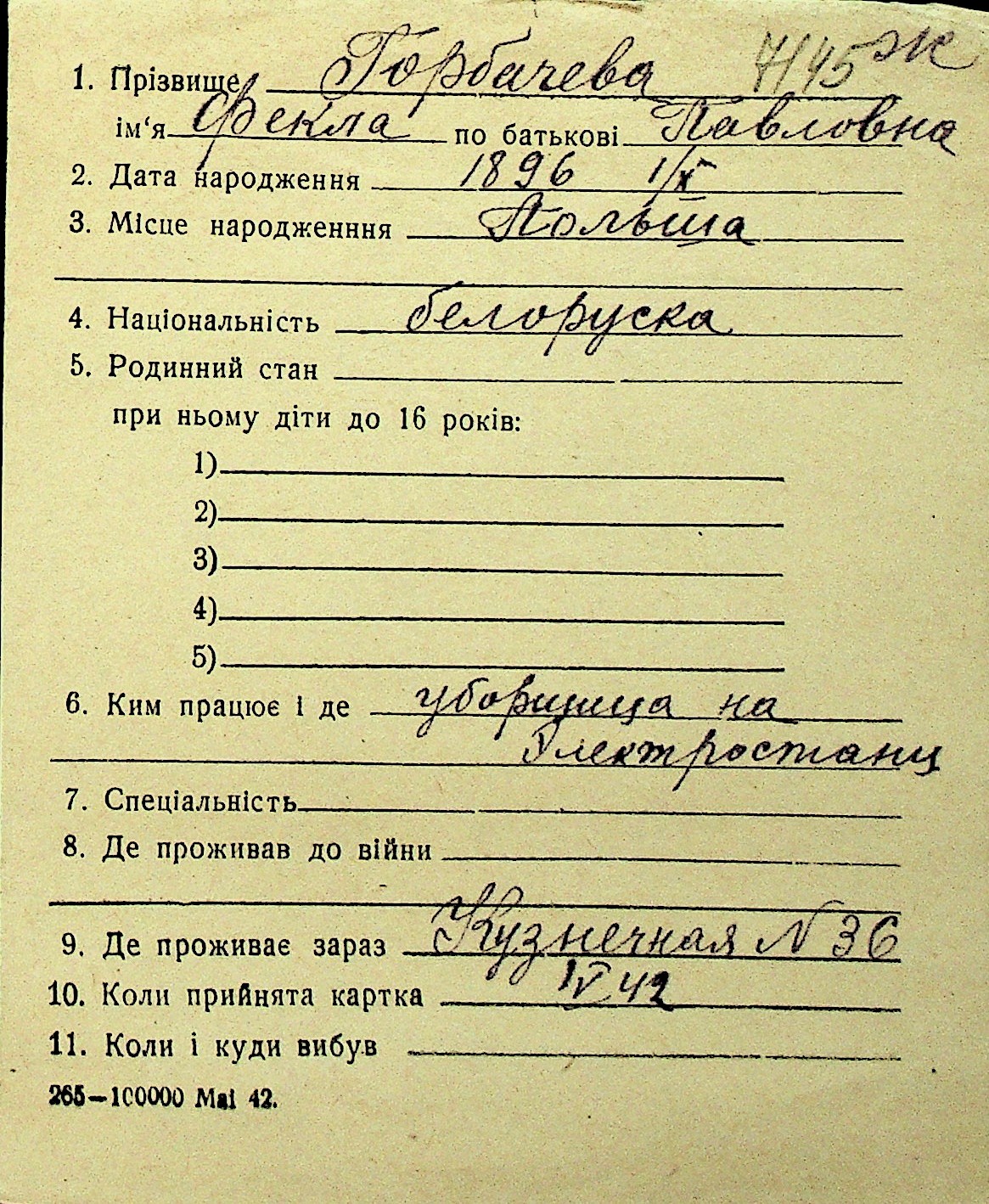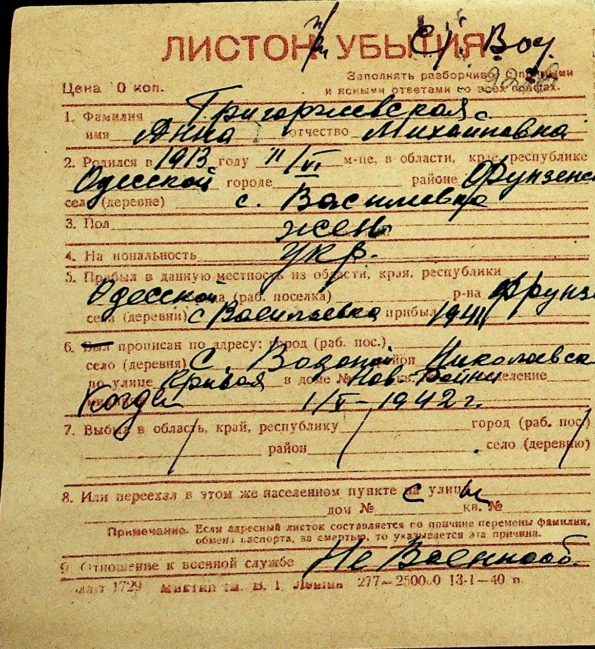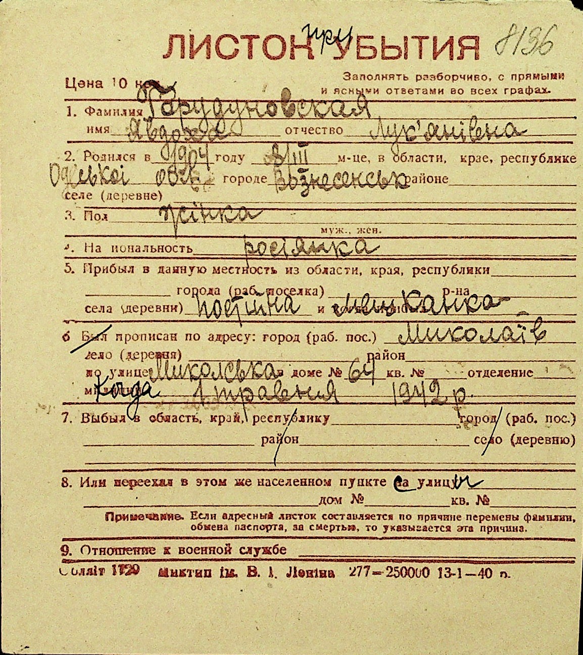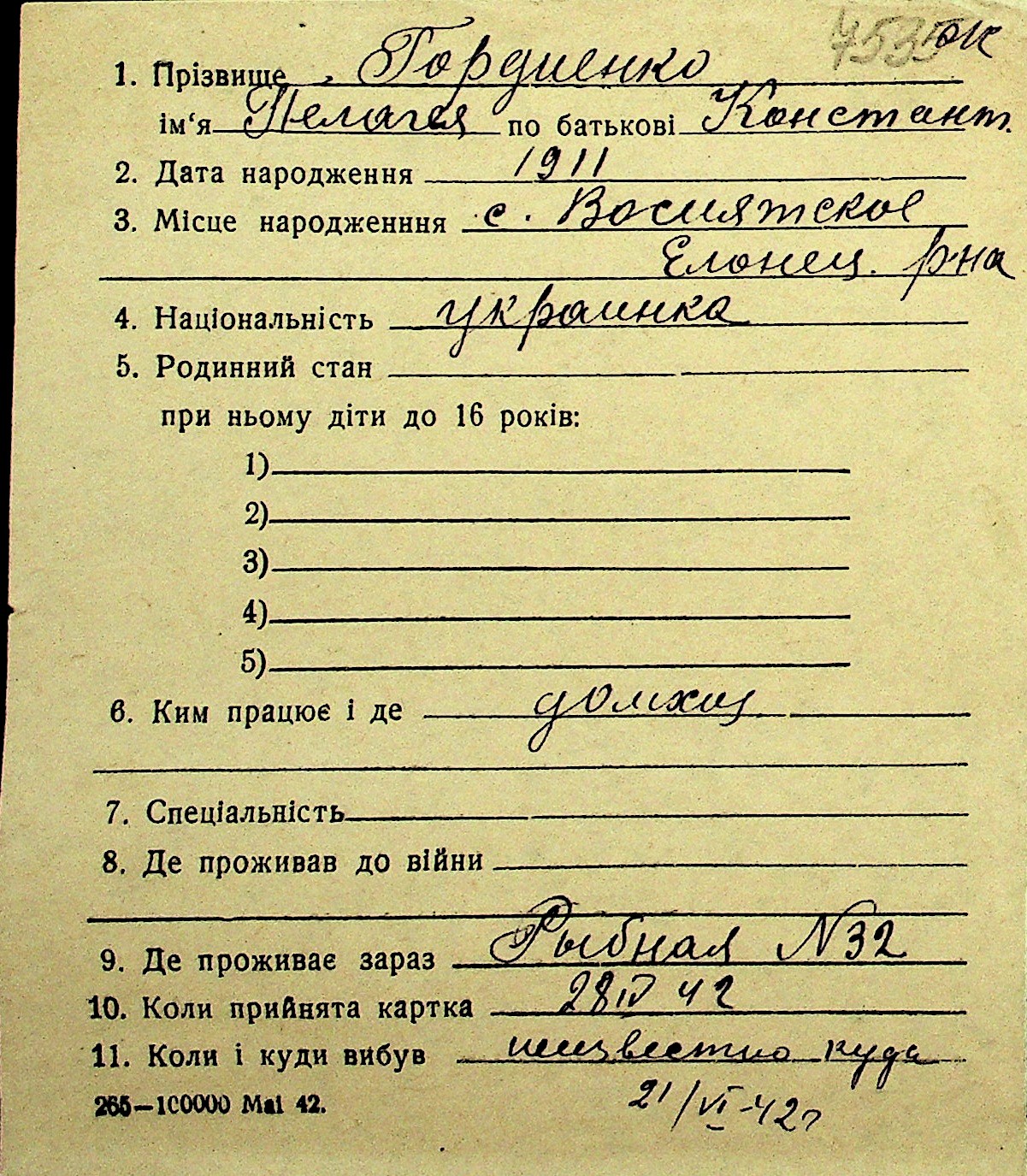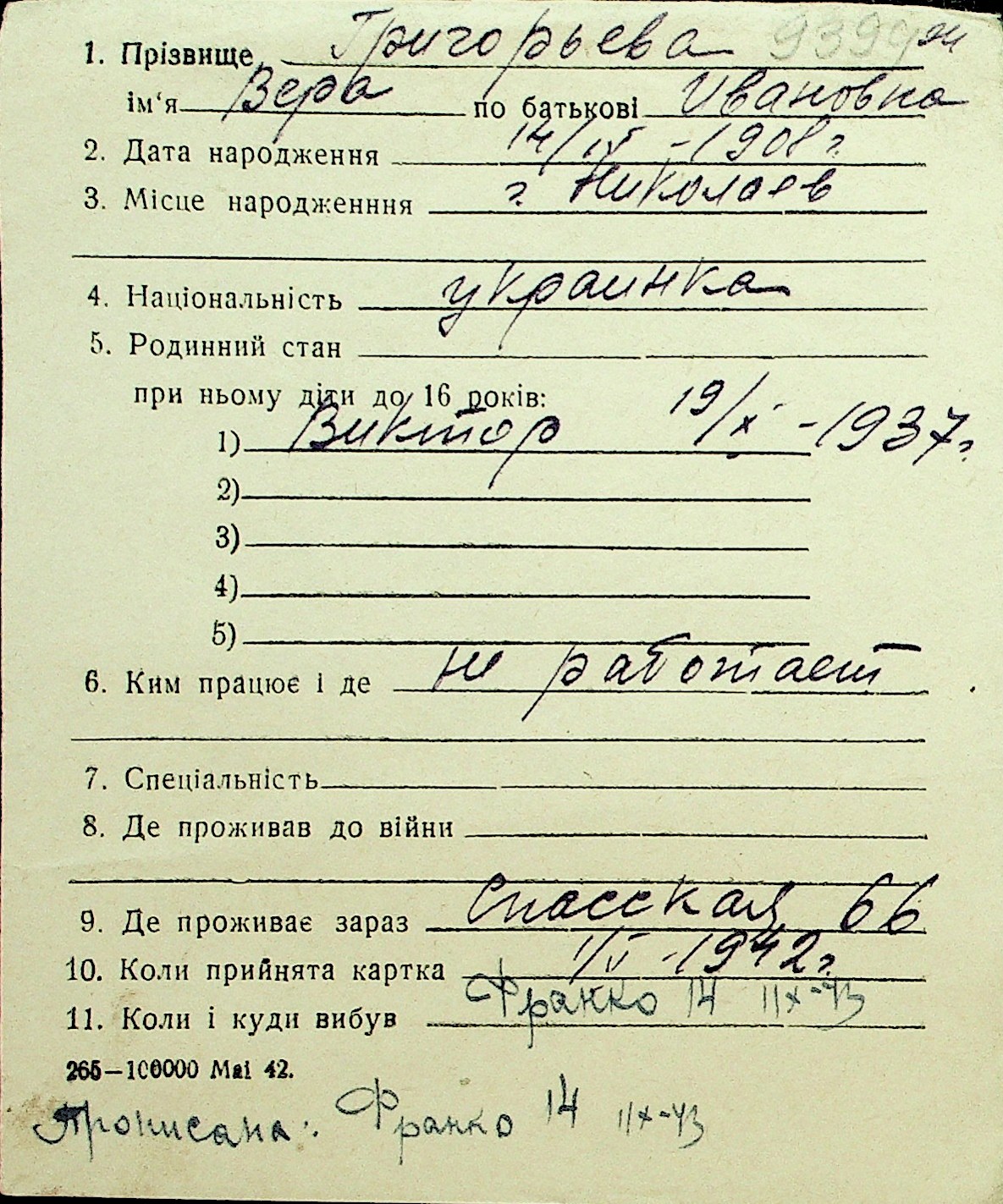 • • Перелік карток до фонду № Н-1016