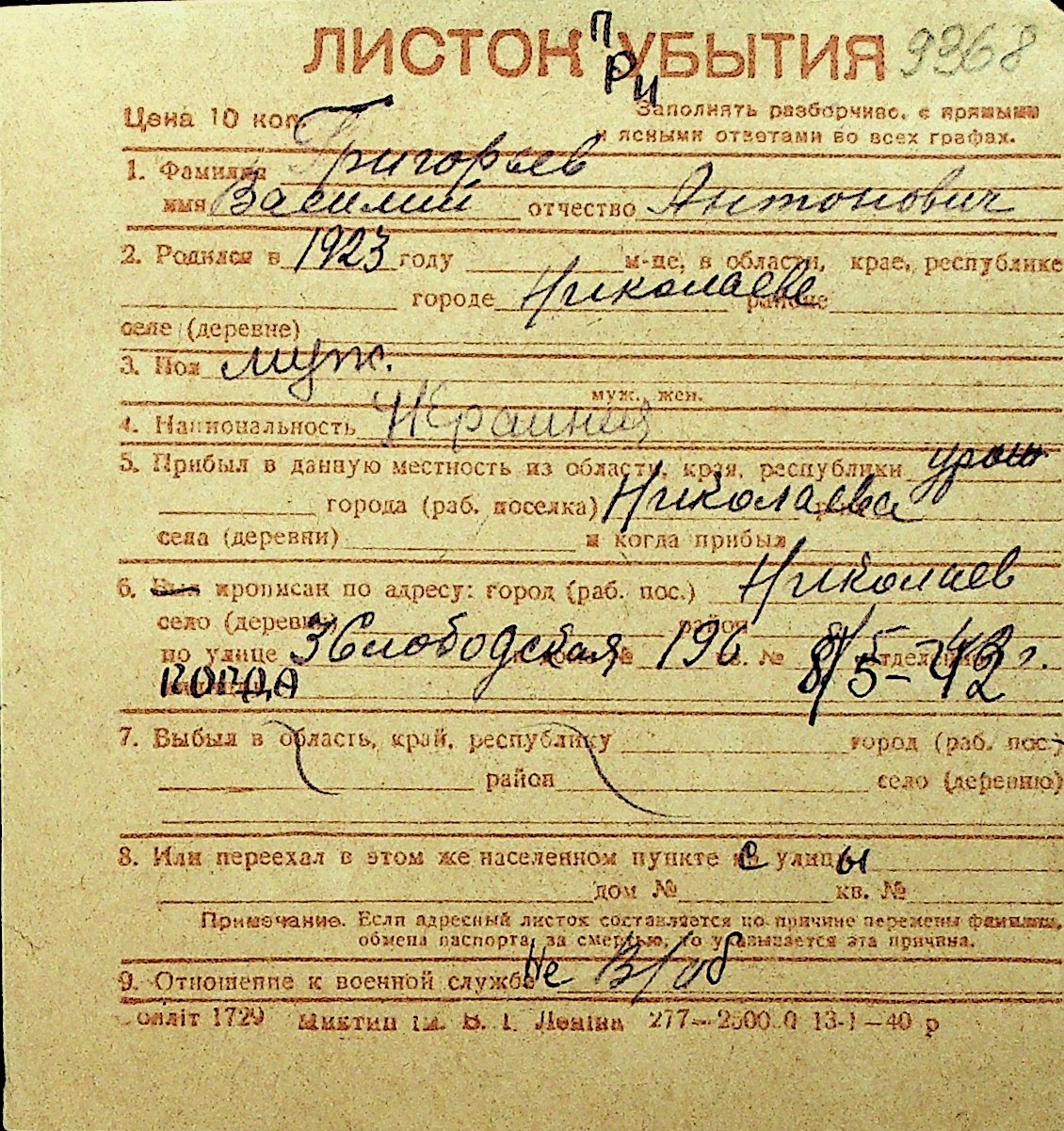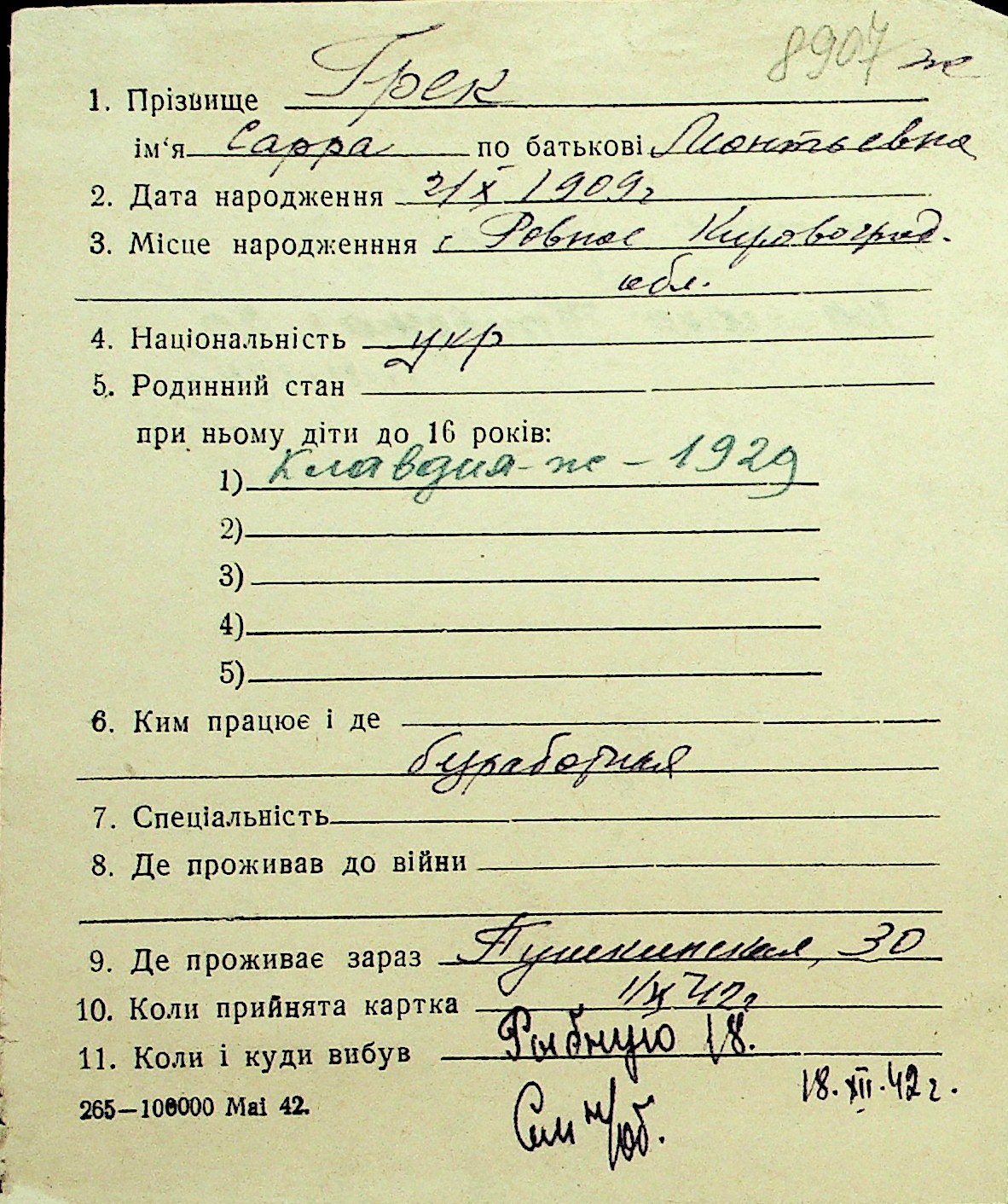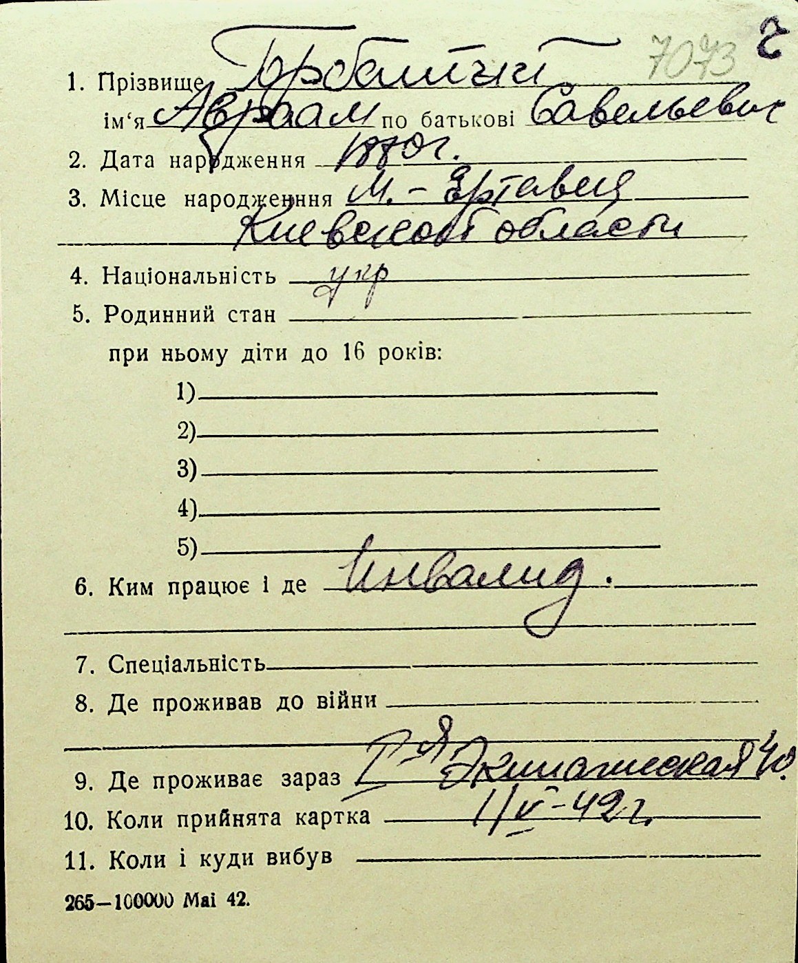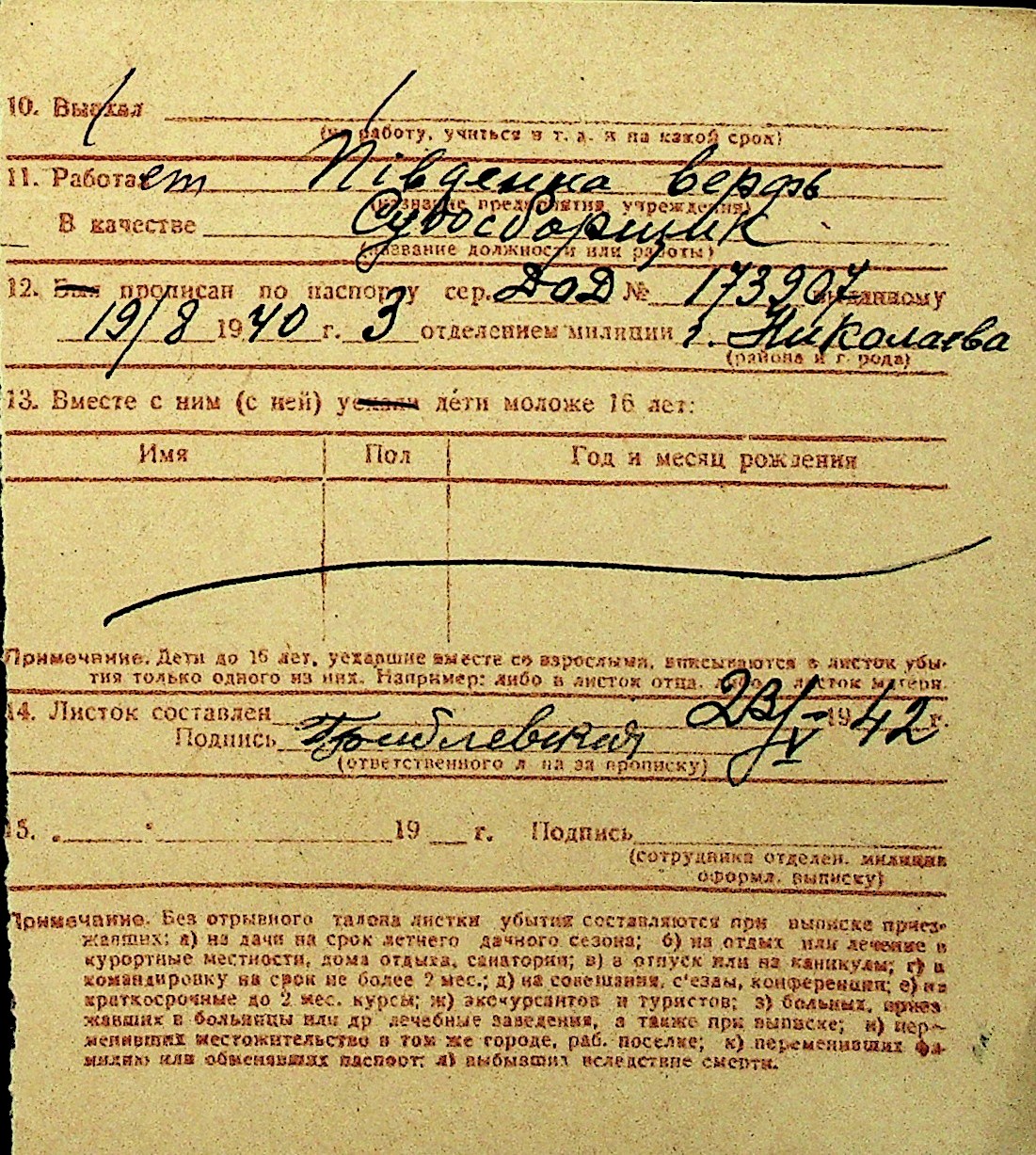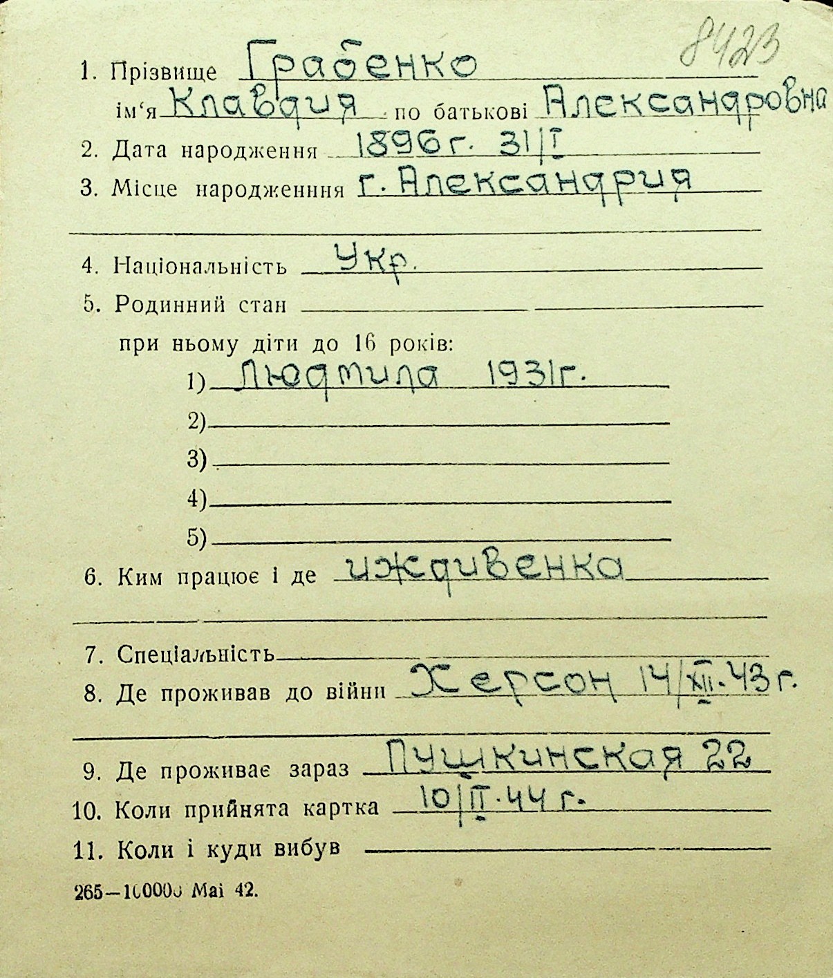 • • Перелік карток до фонду № Н-1016