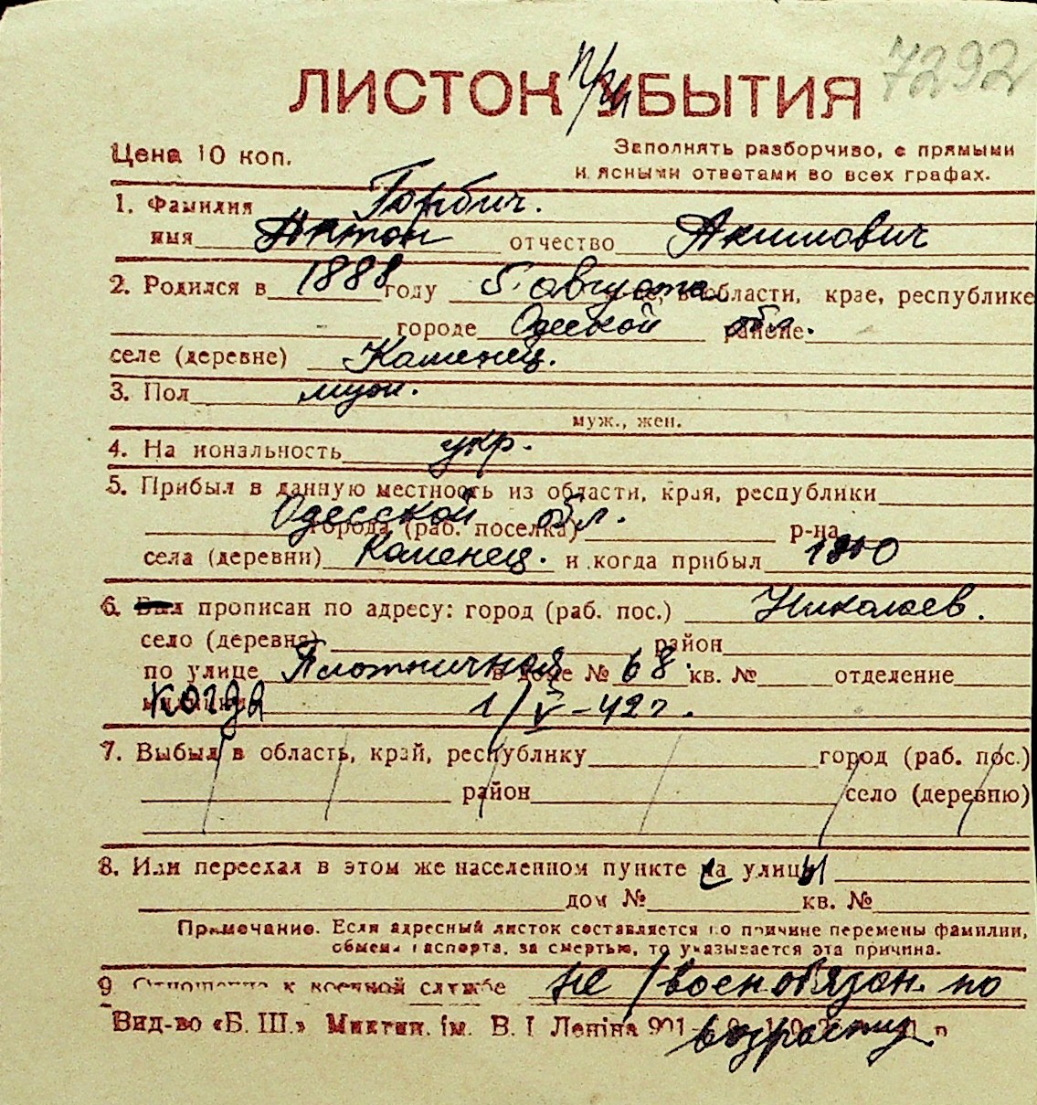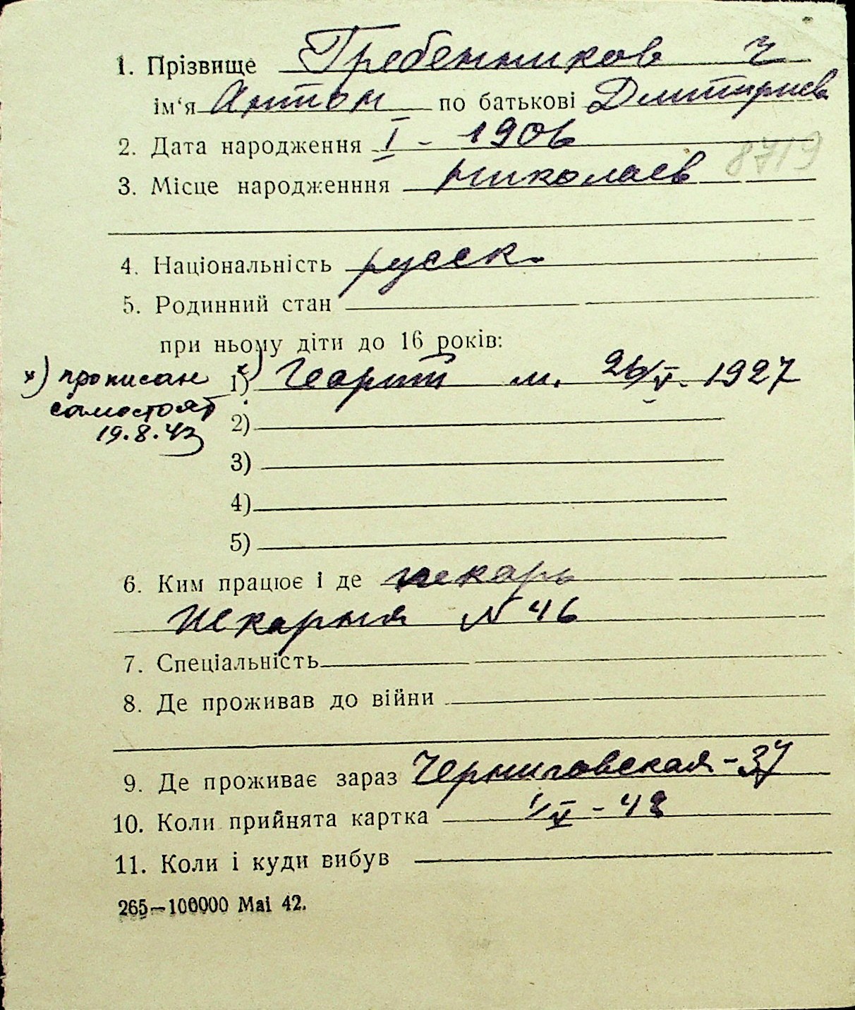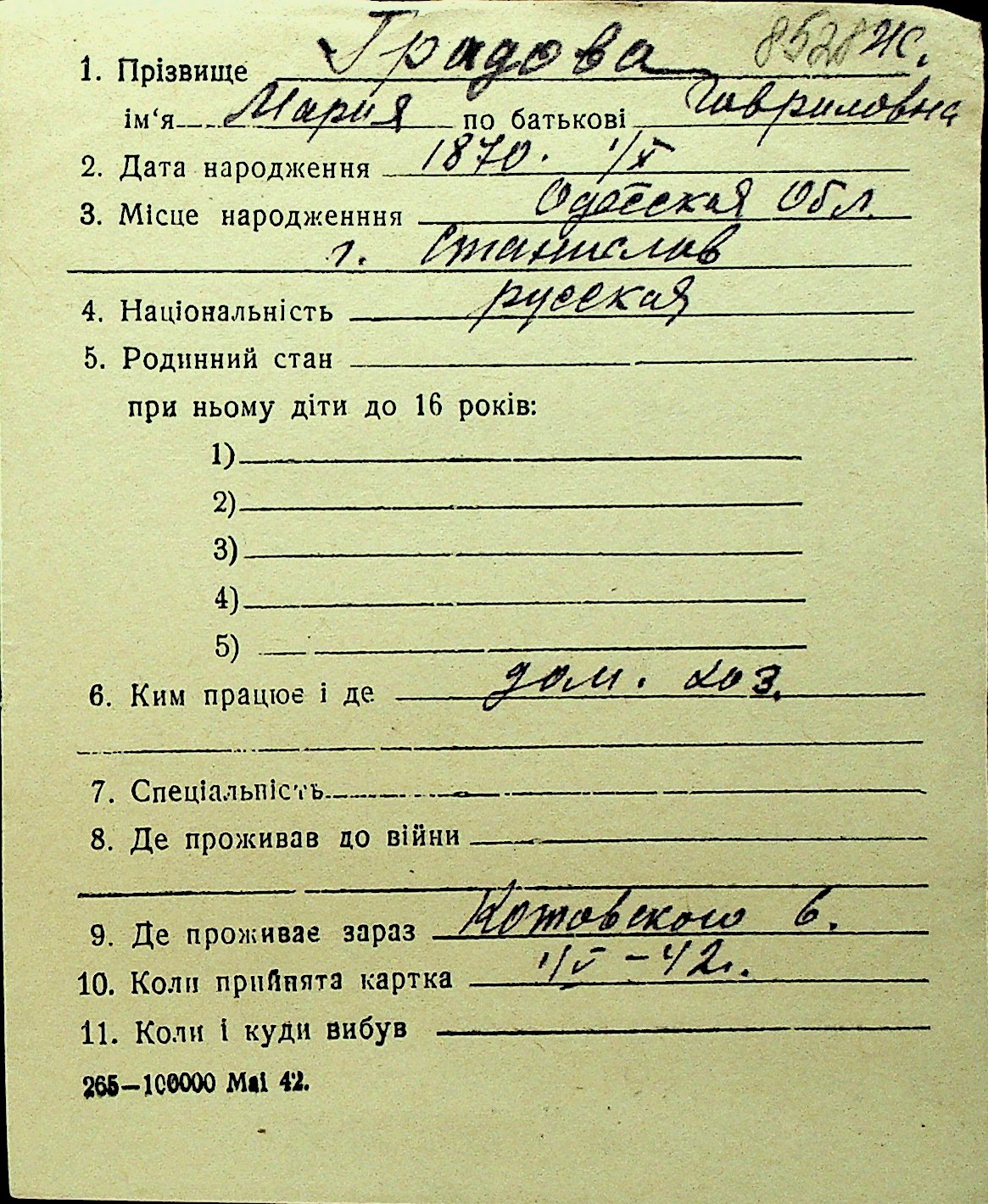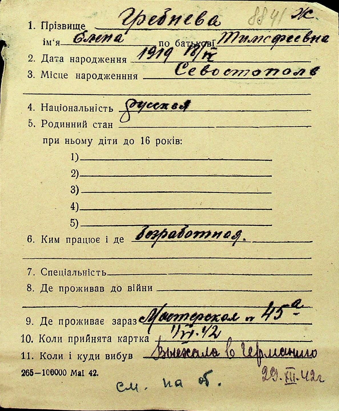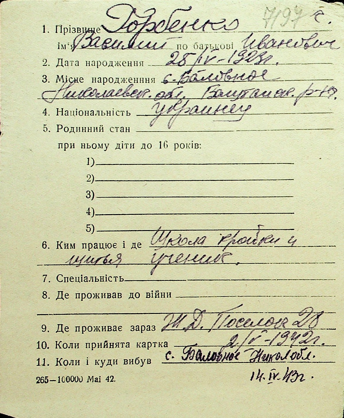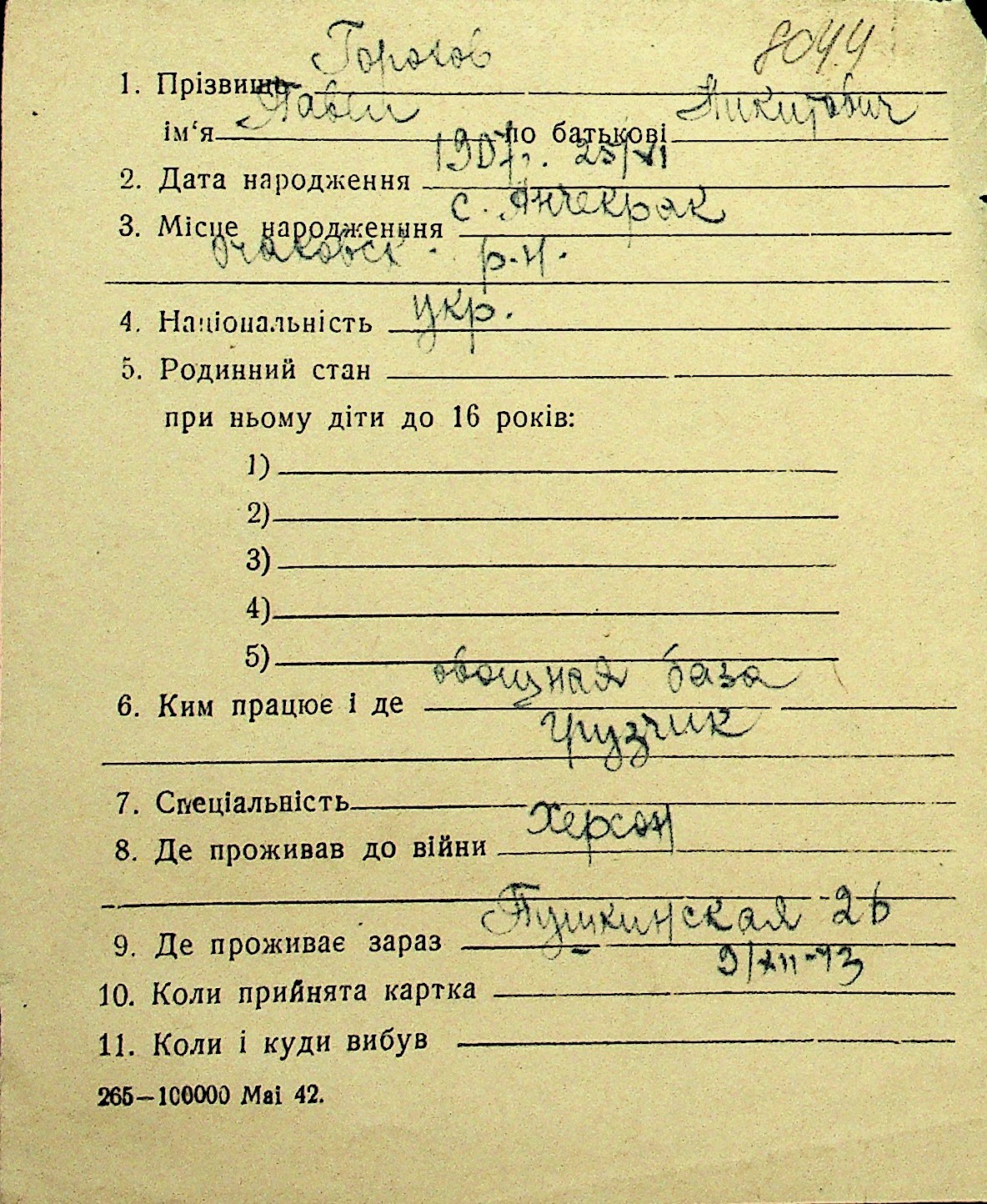 • • Перелік карток до фонду № Н-1016