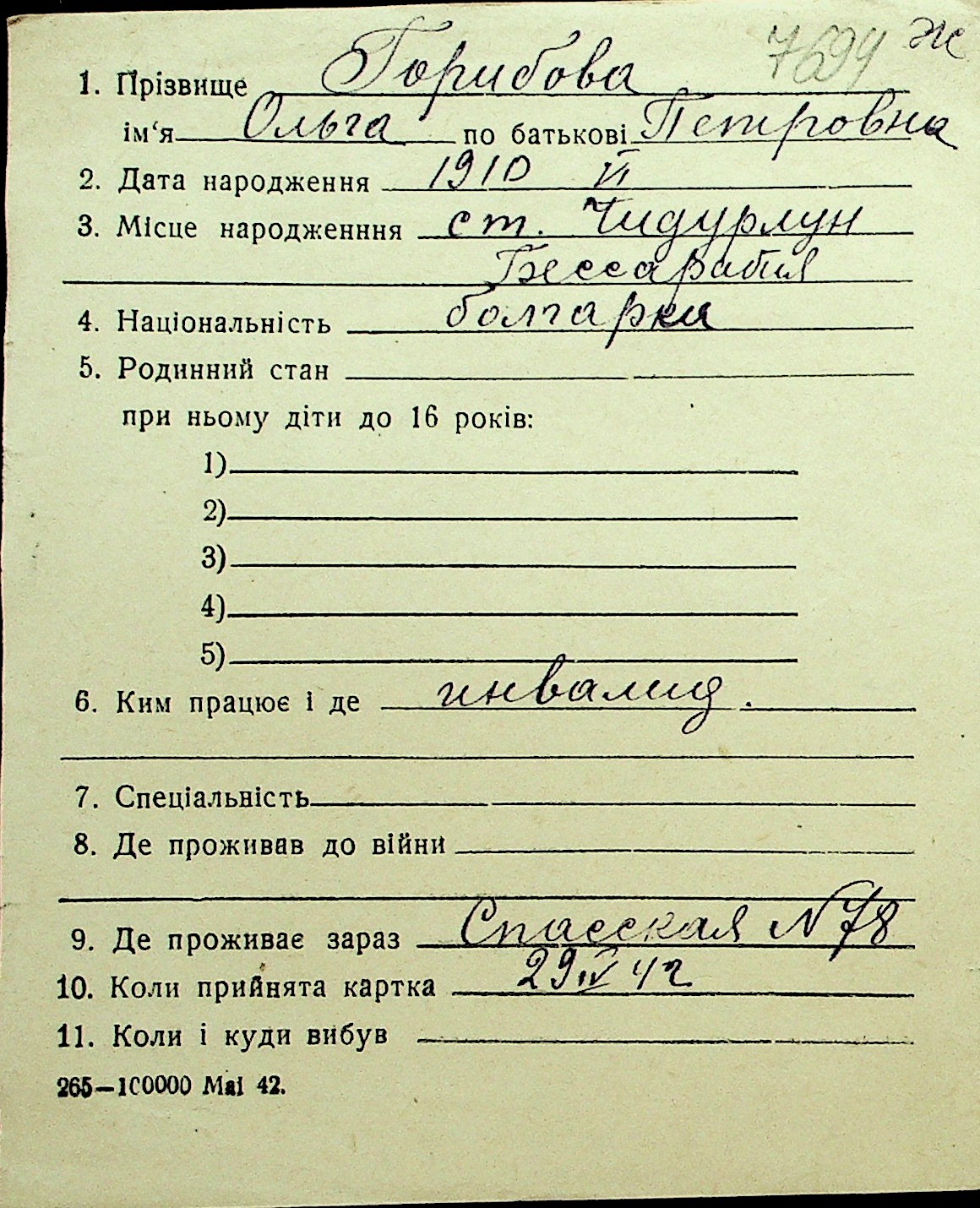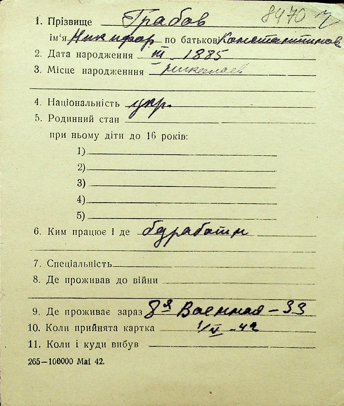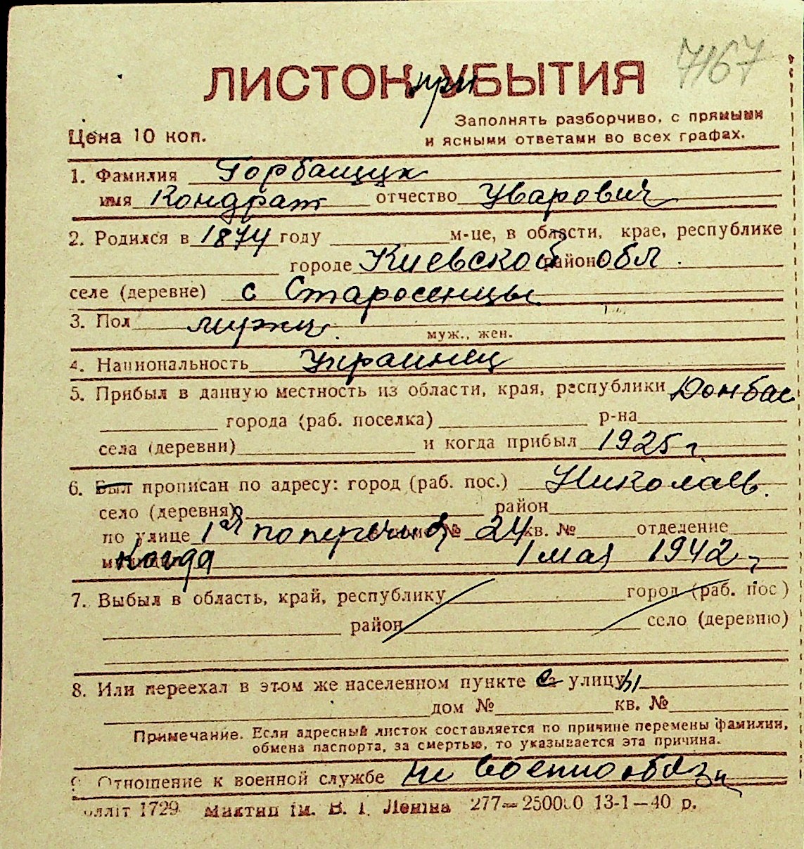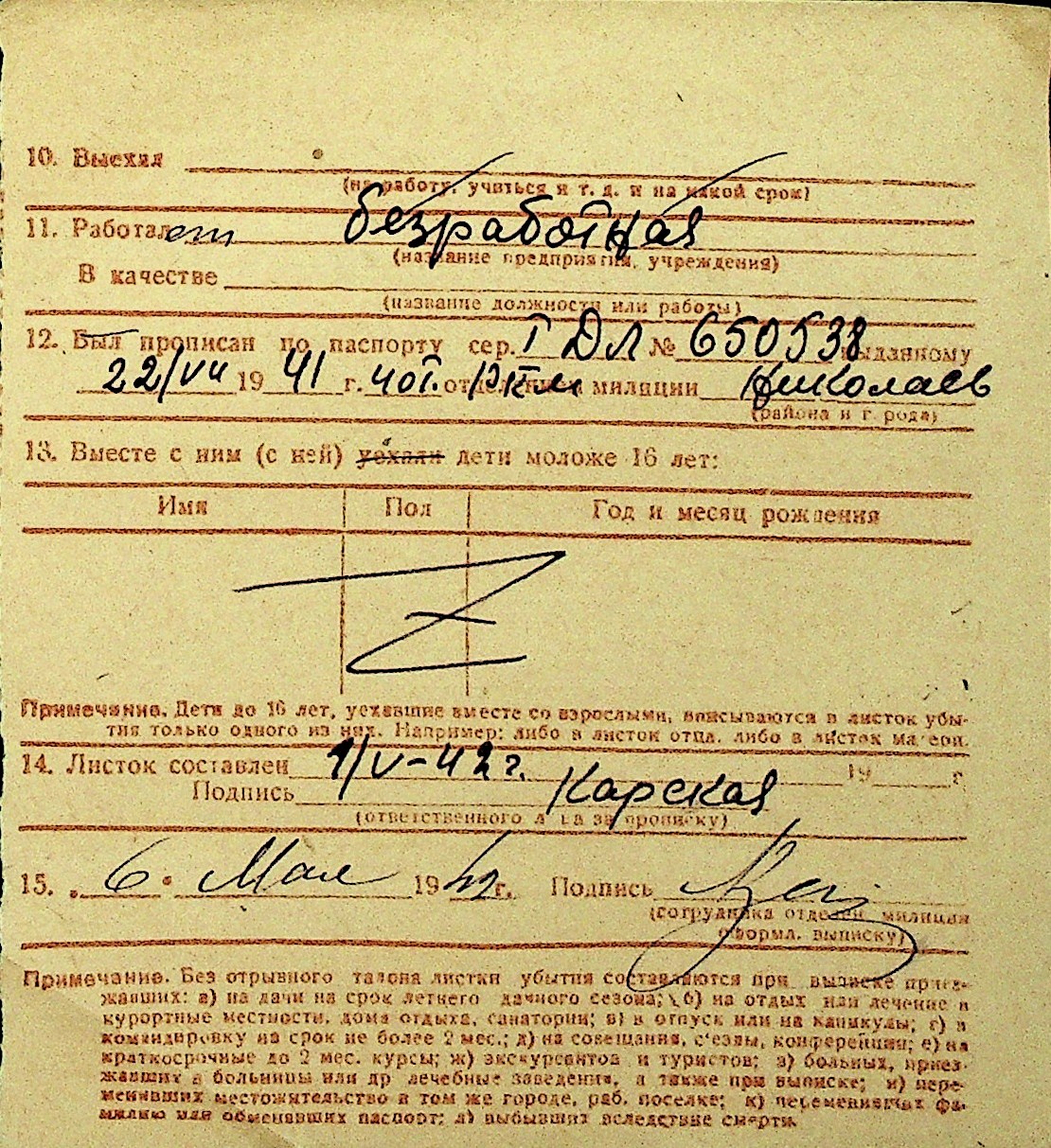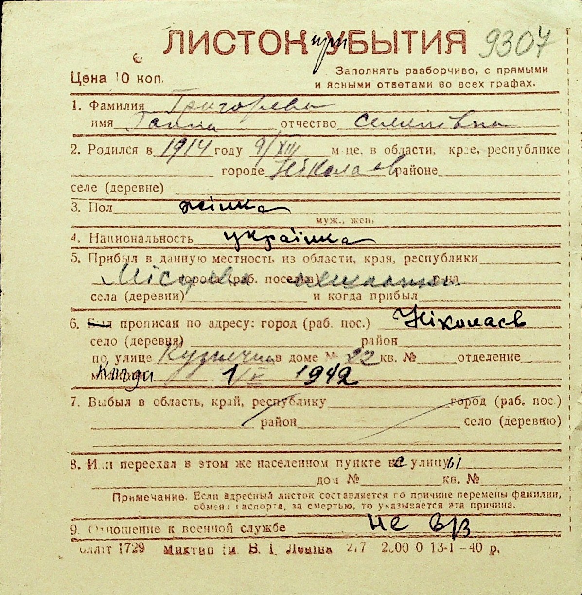• • Перелік карток до фонду № Н-1016