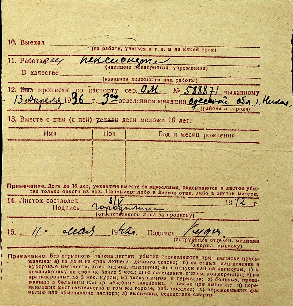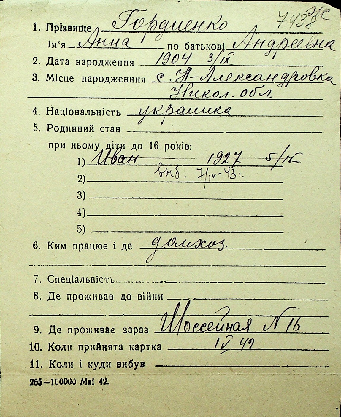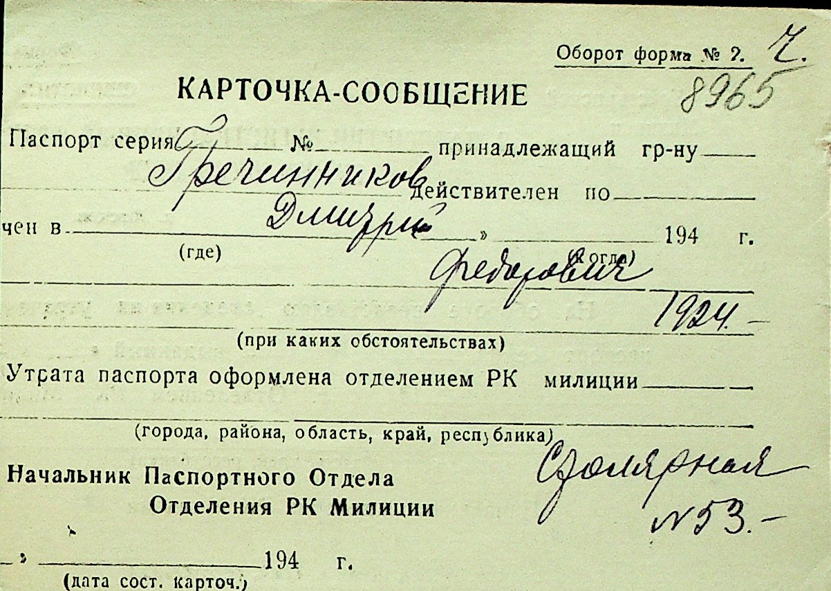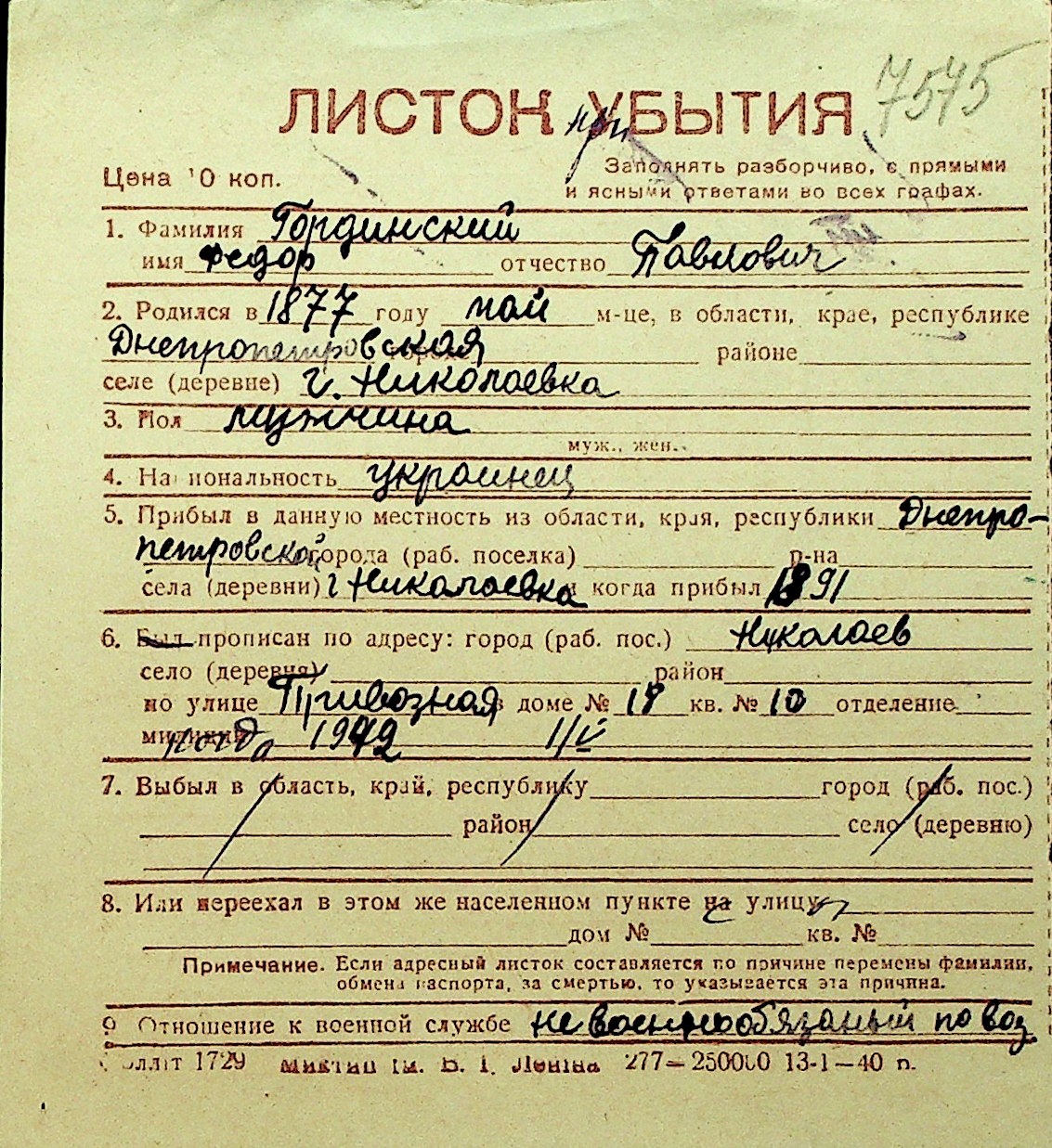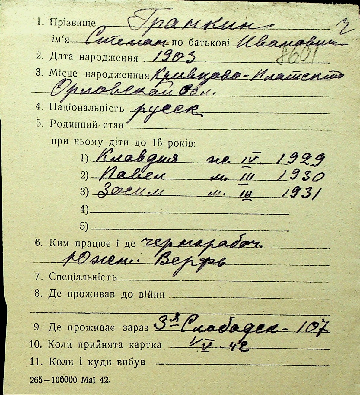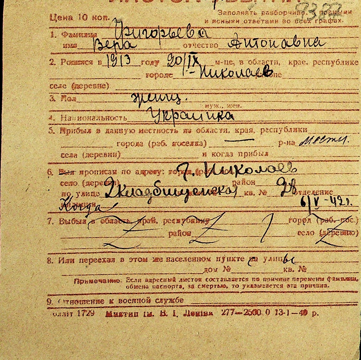 • • Перелік карток до фонду № Н-1016