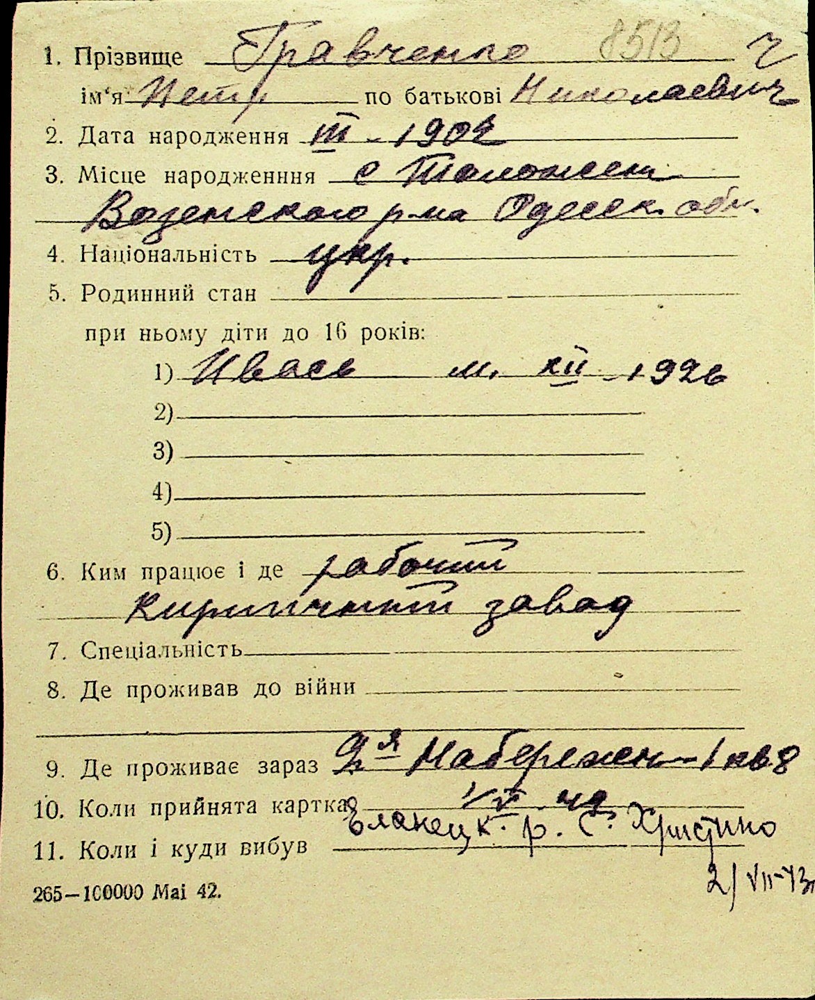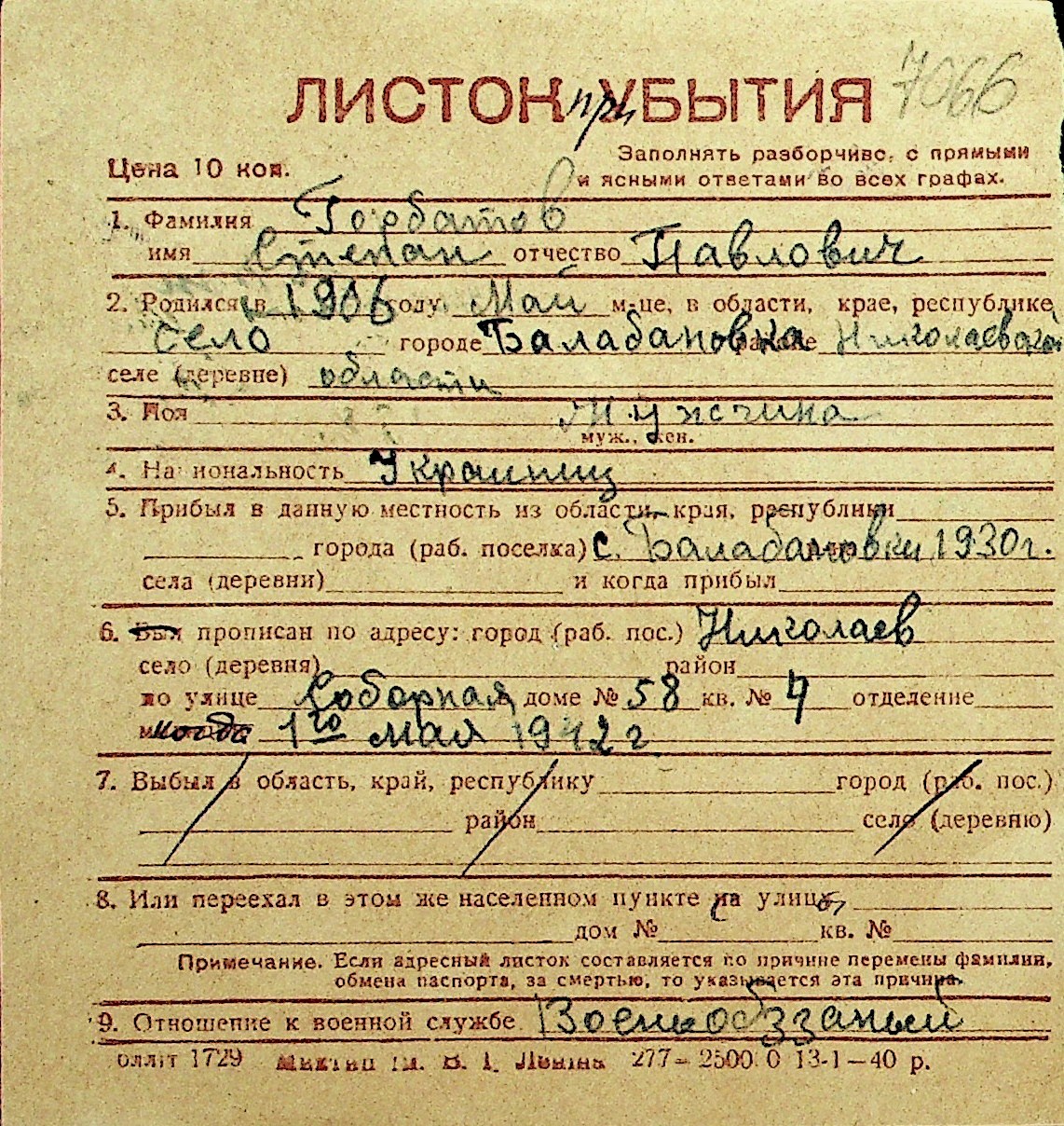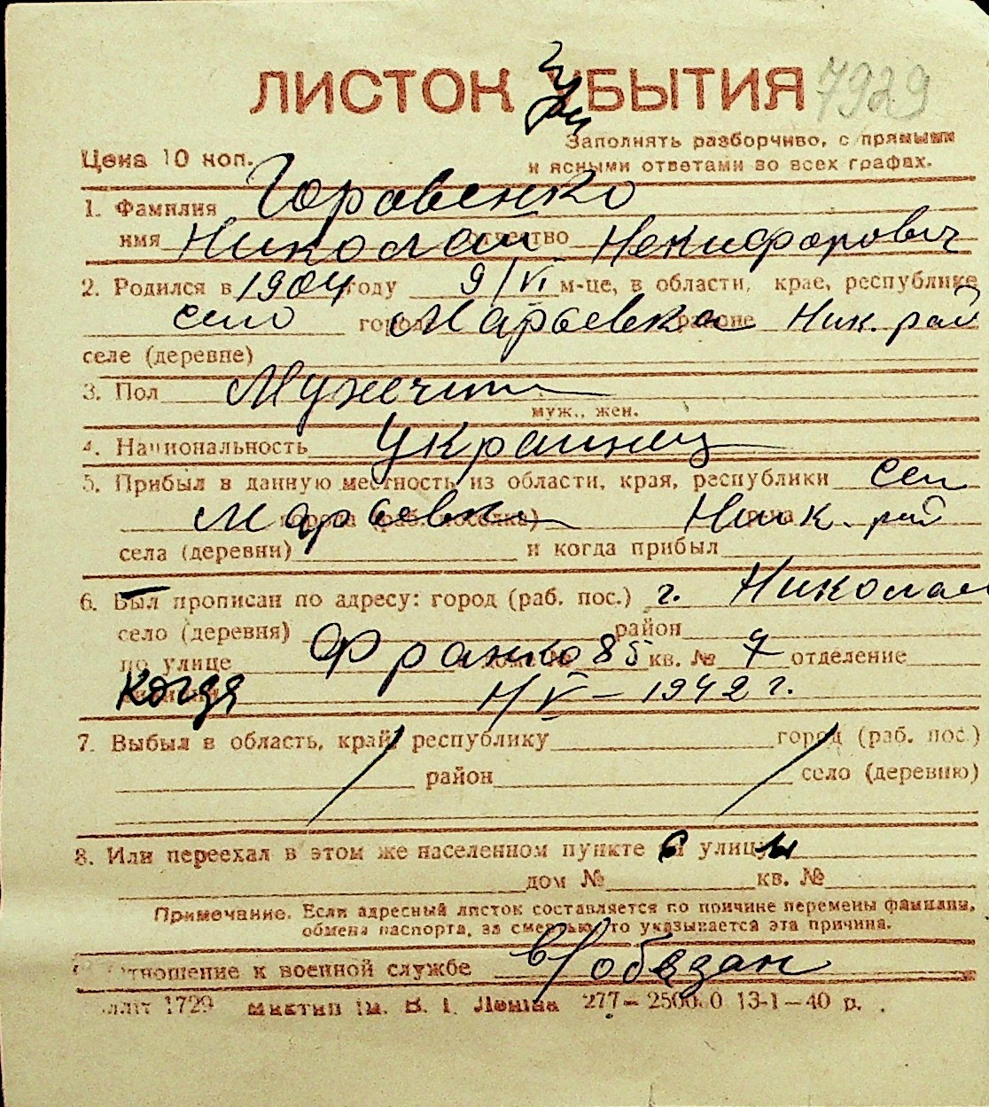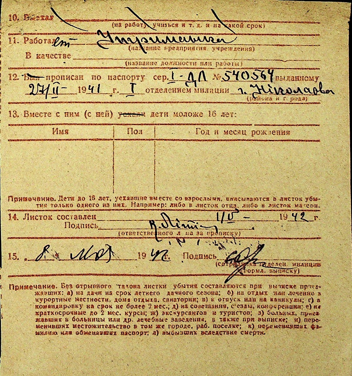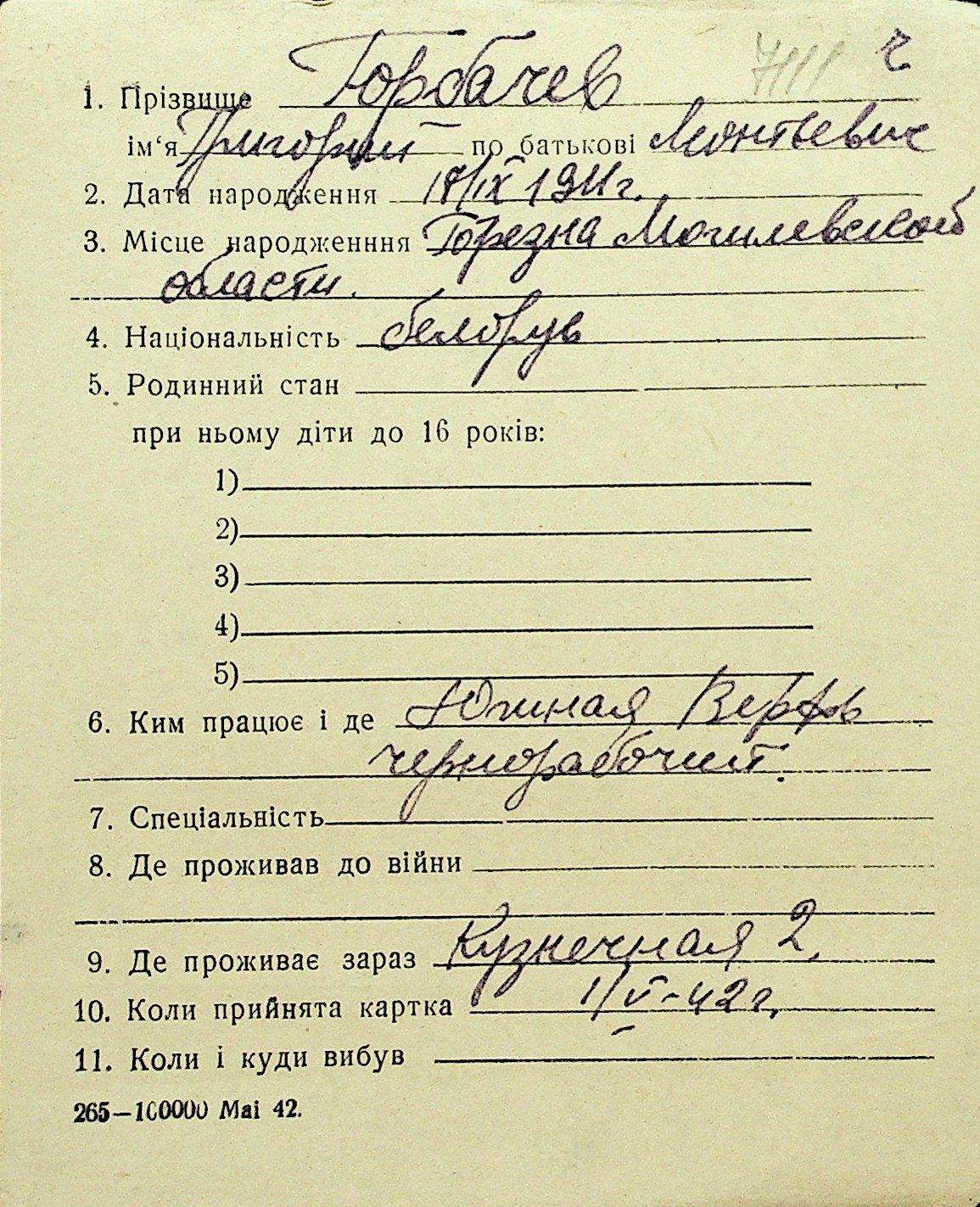 • • Перелік карток до фонду № Н-1016