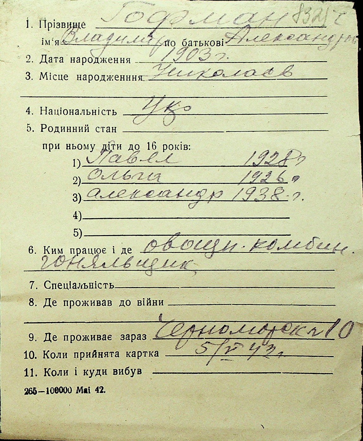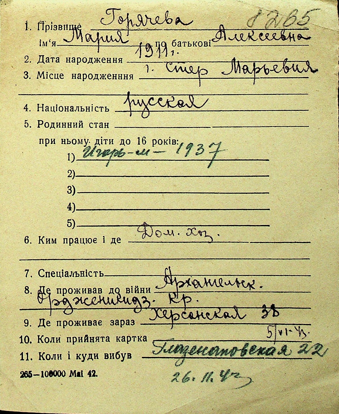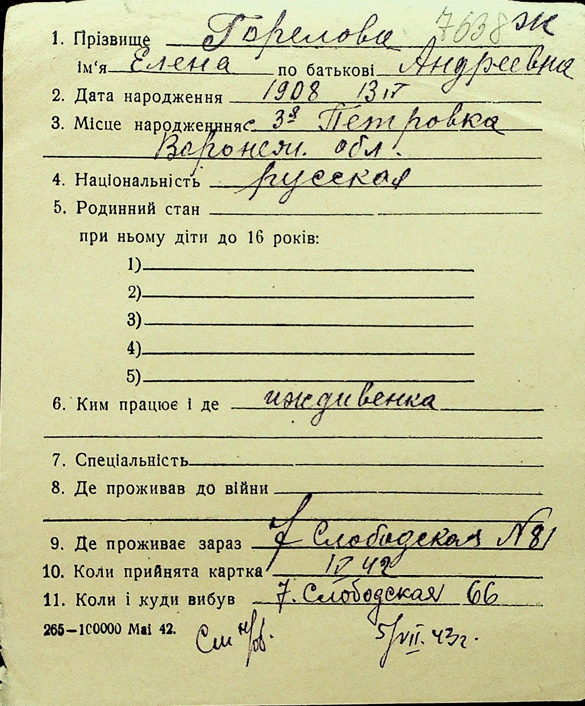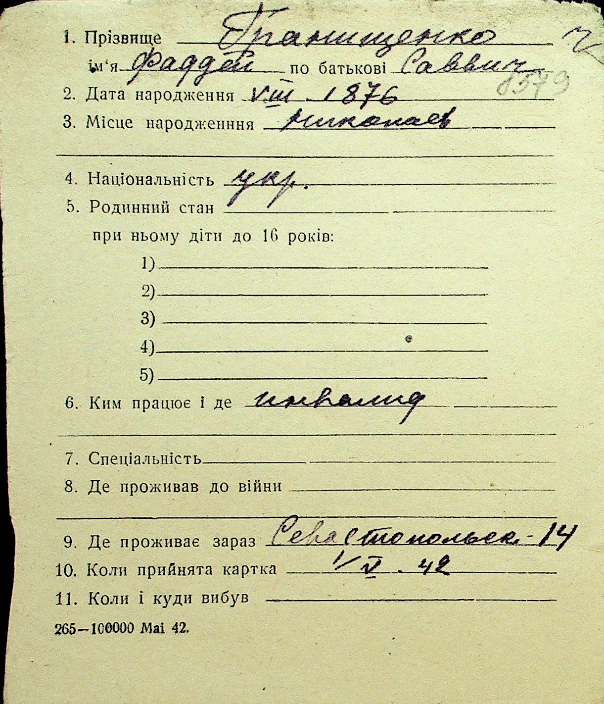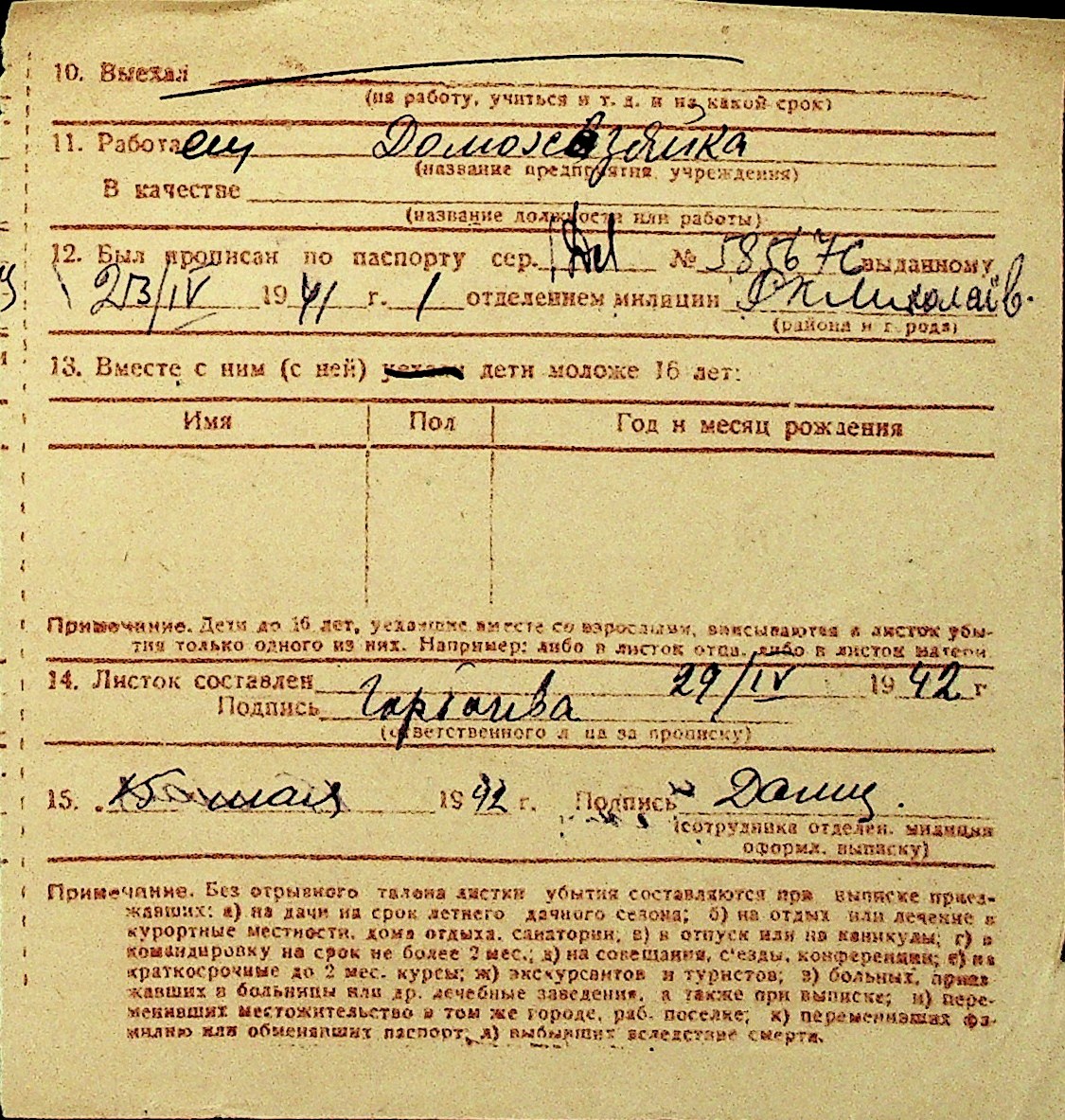 • • Перелік карток до фонду № Н-1016