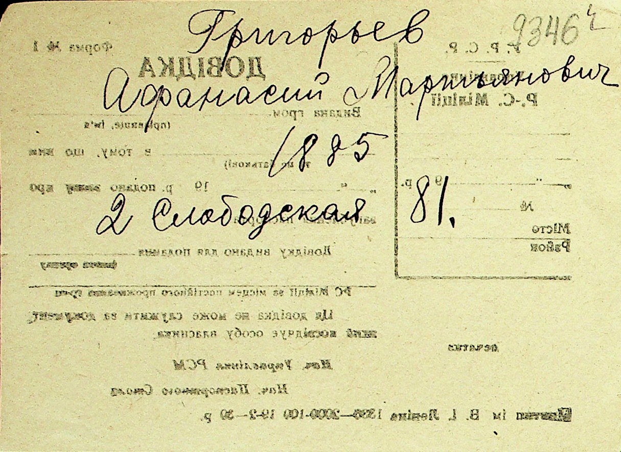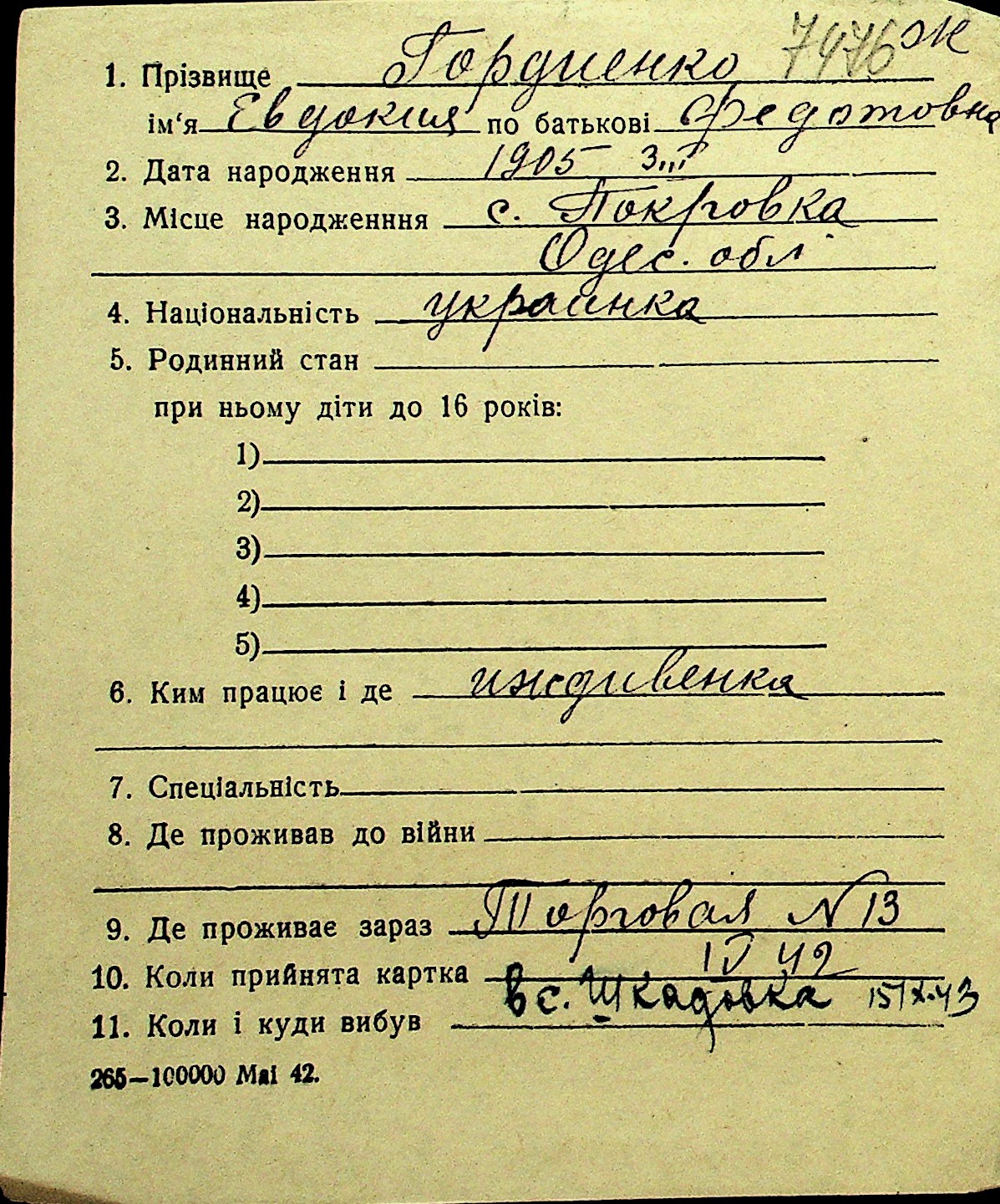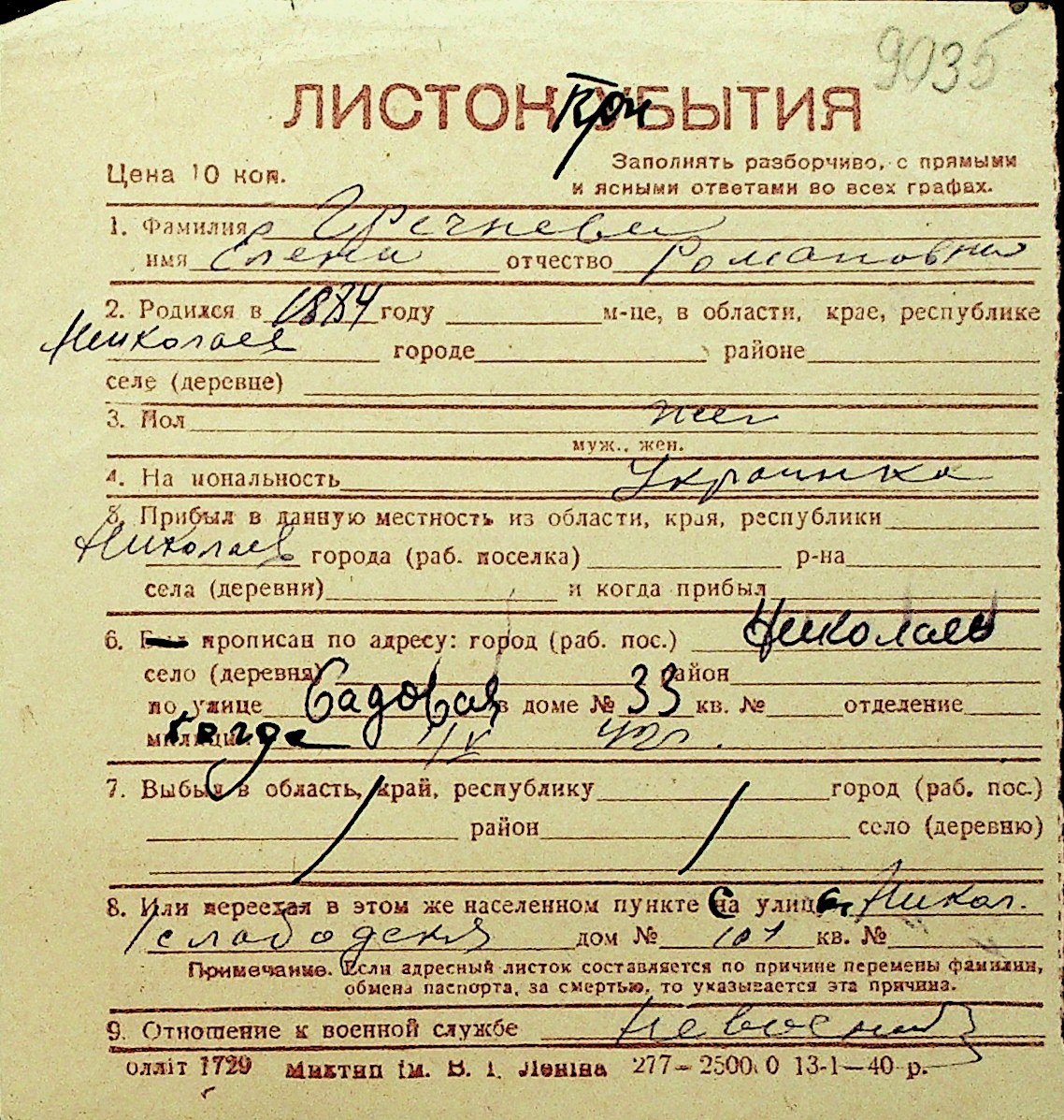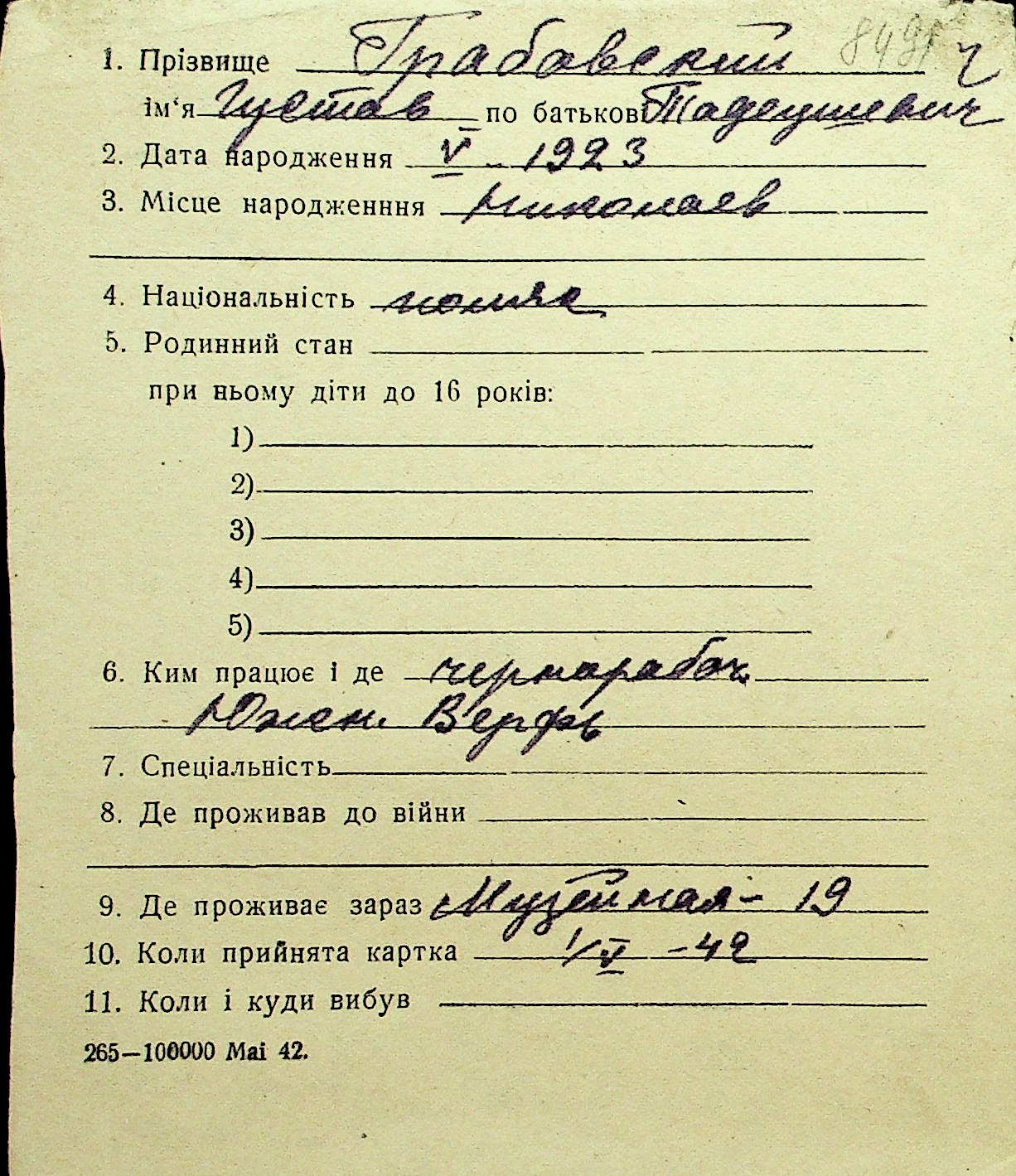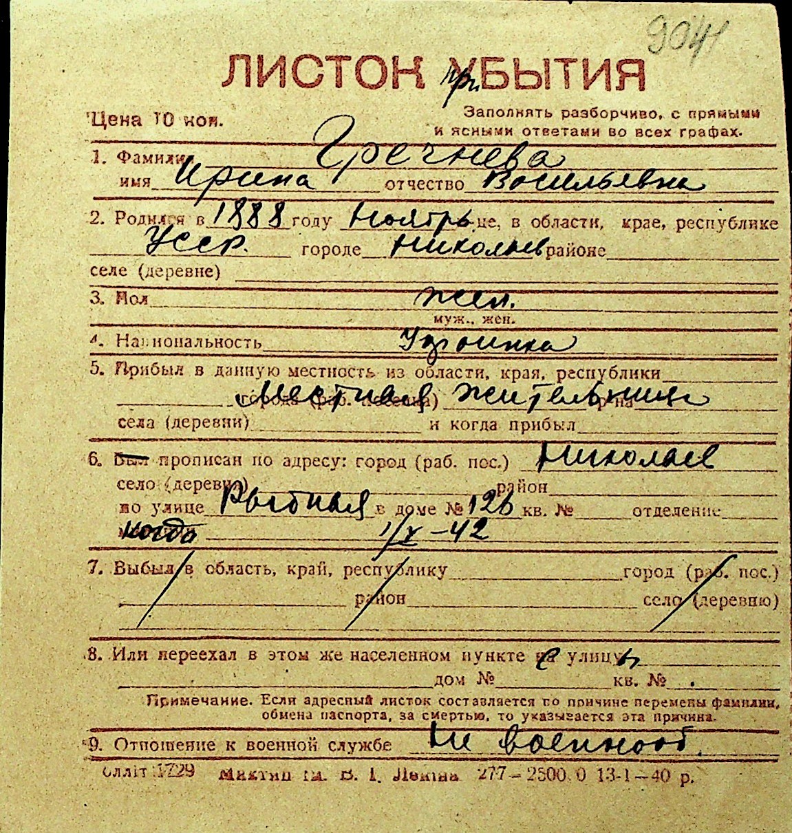 • • Перелік карток до фонду № Н-1016
