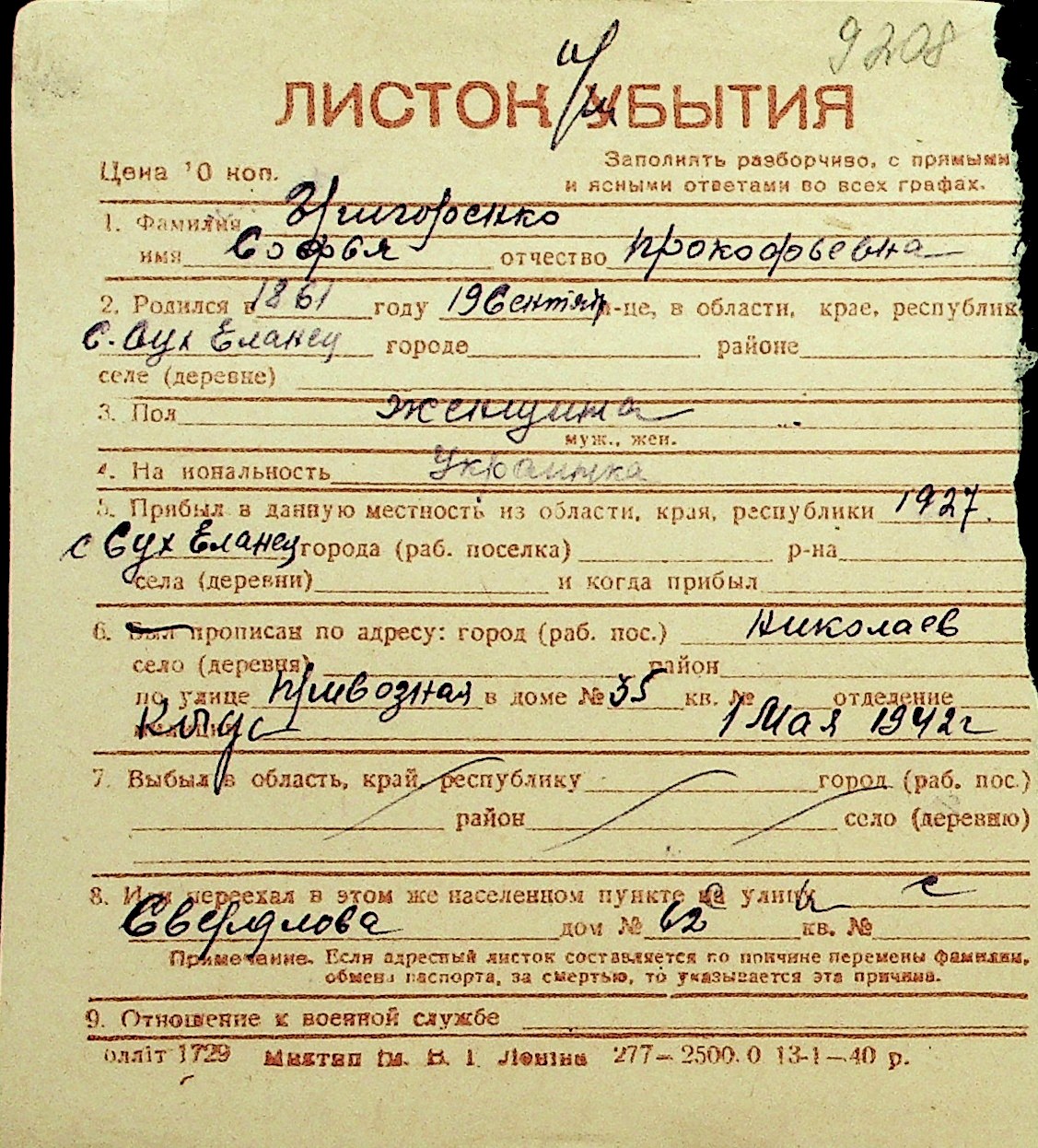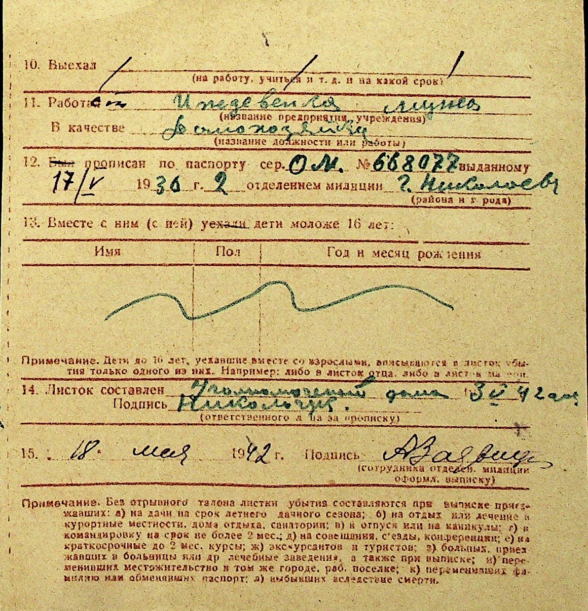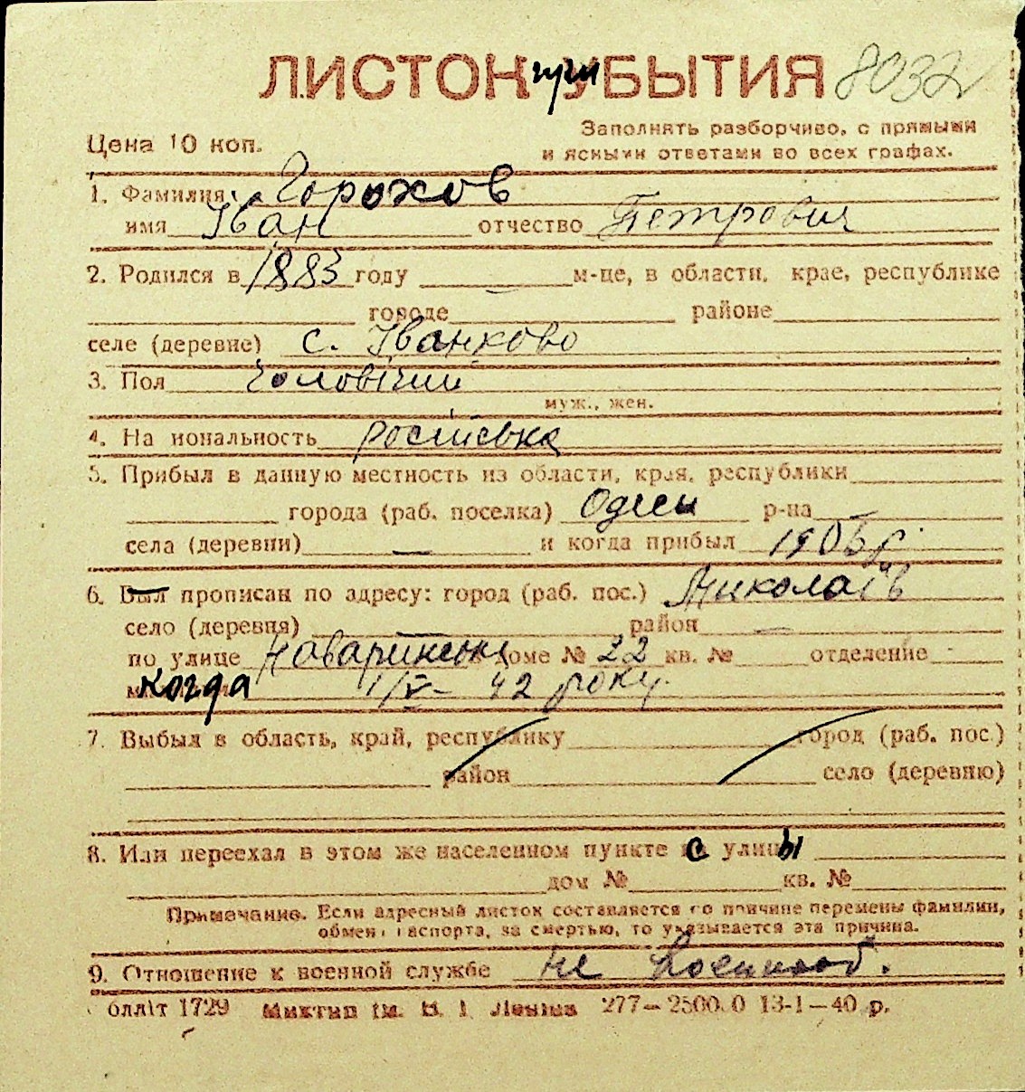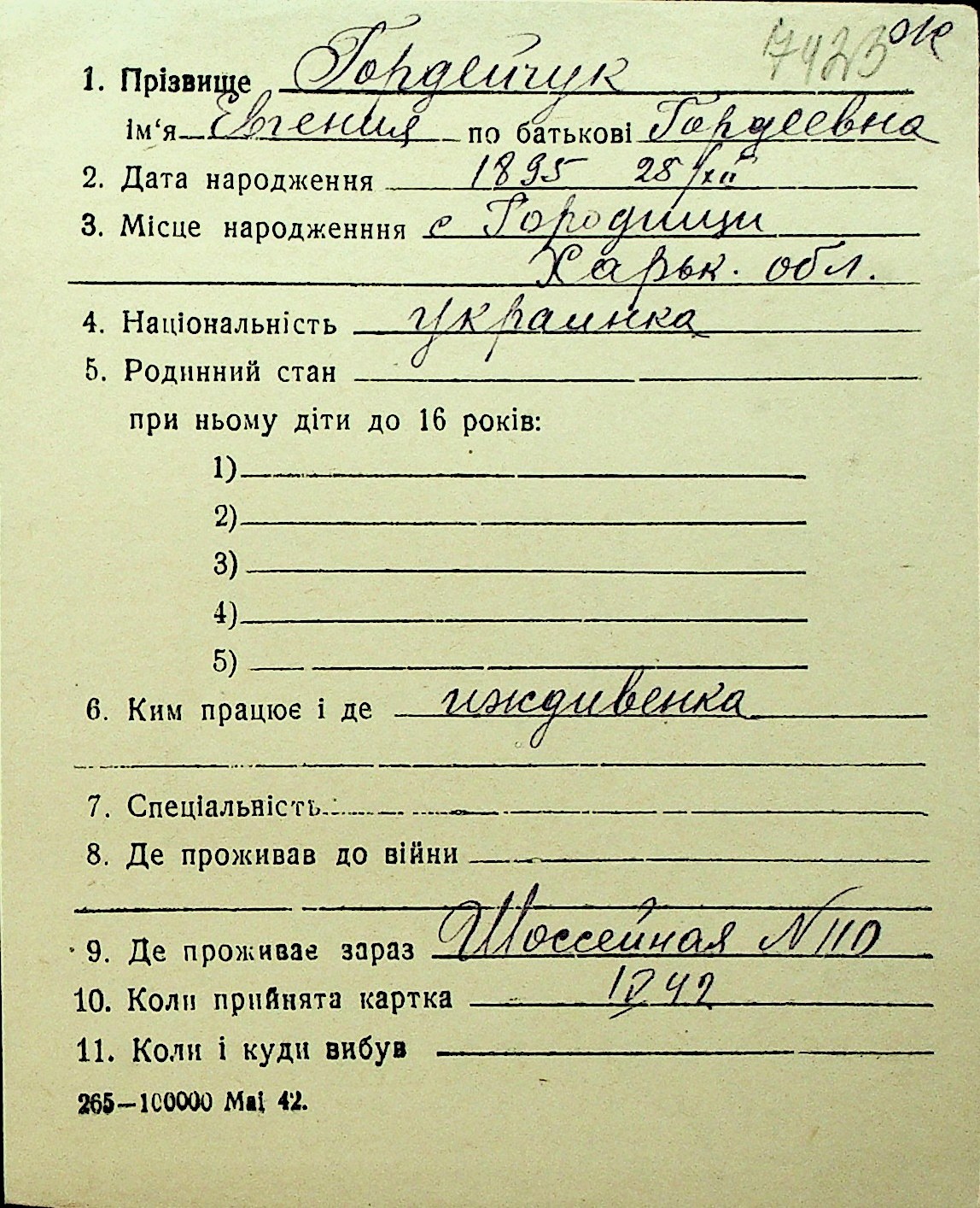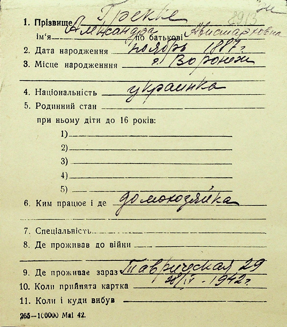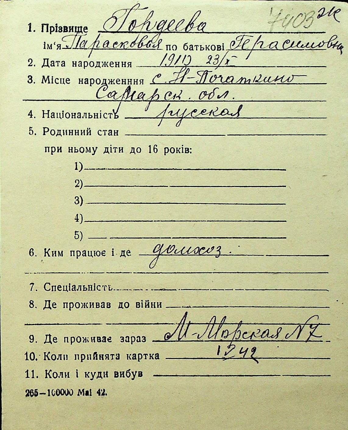 • • Перелік карток до фонду № Н-1016