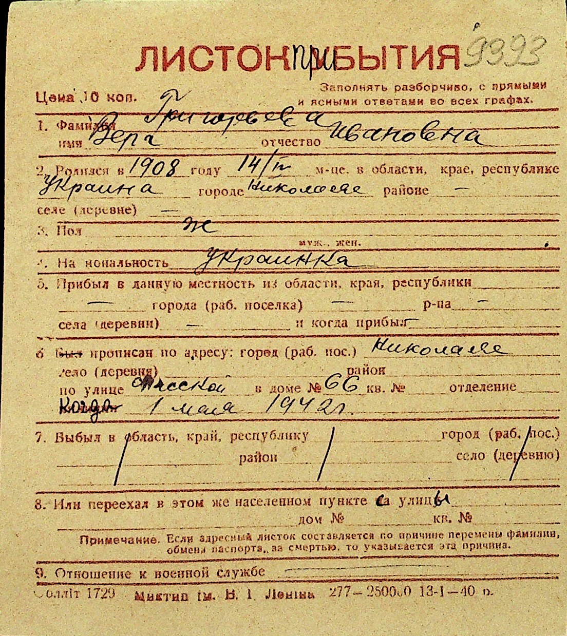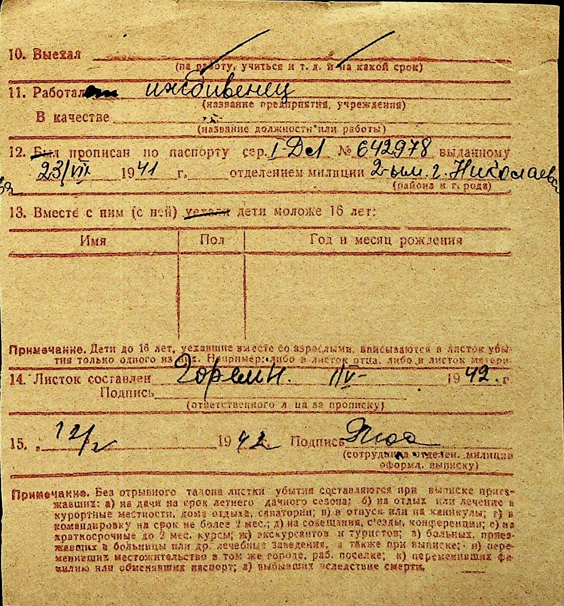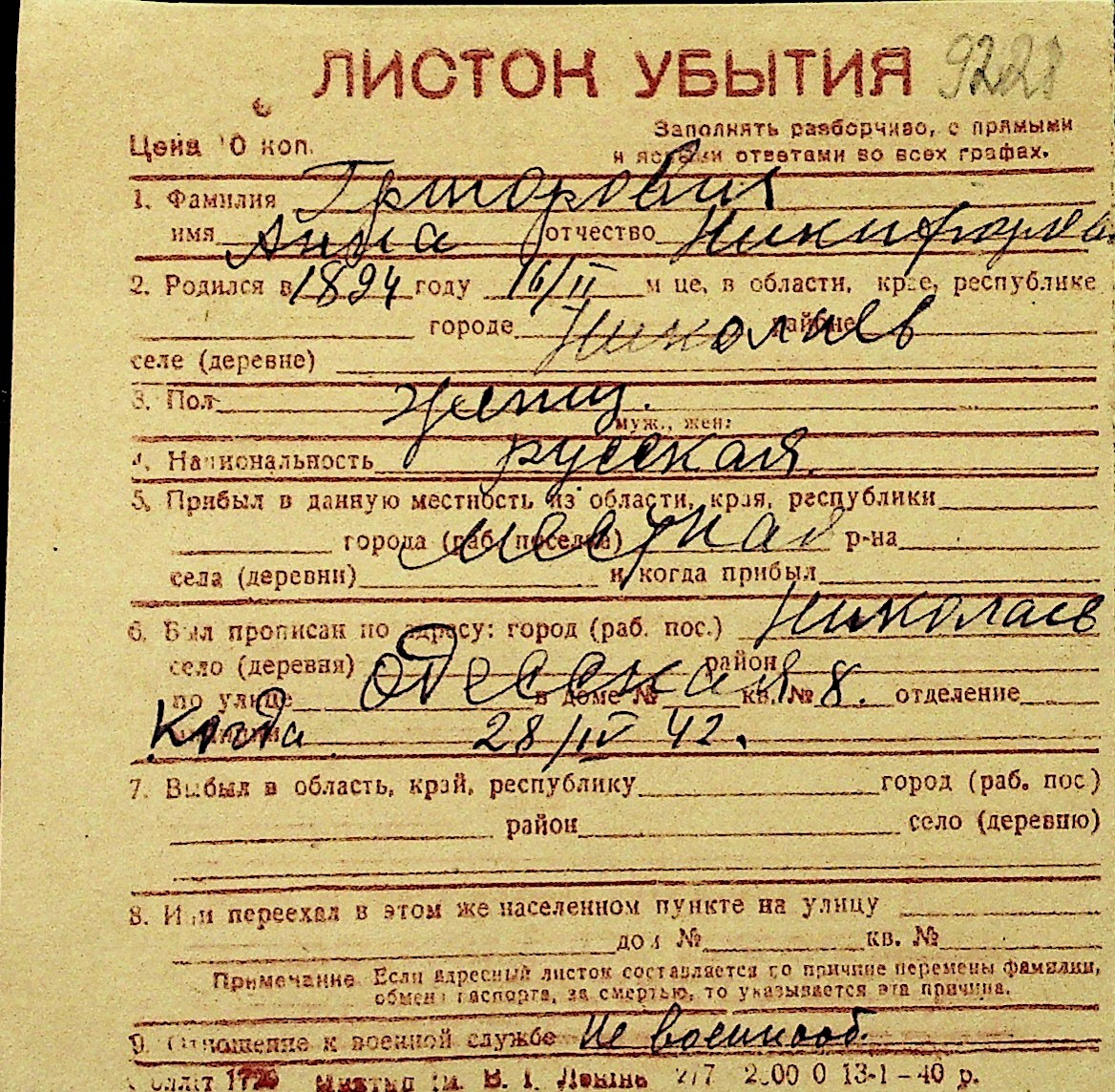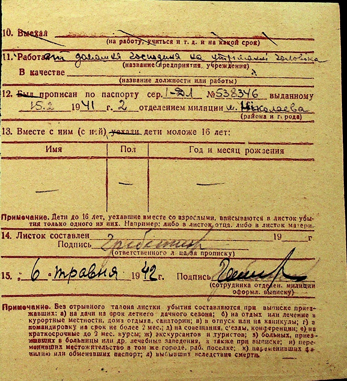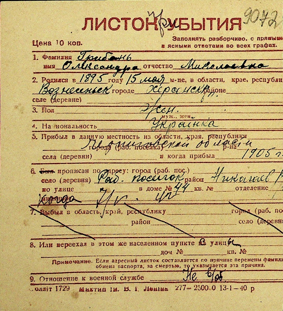 • • Перелік карток до фонду № Н-1016