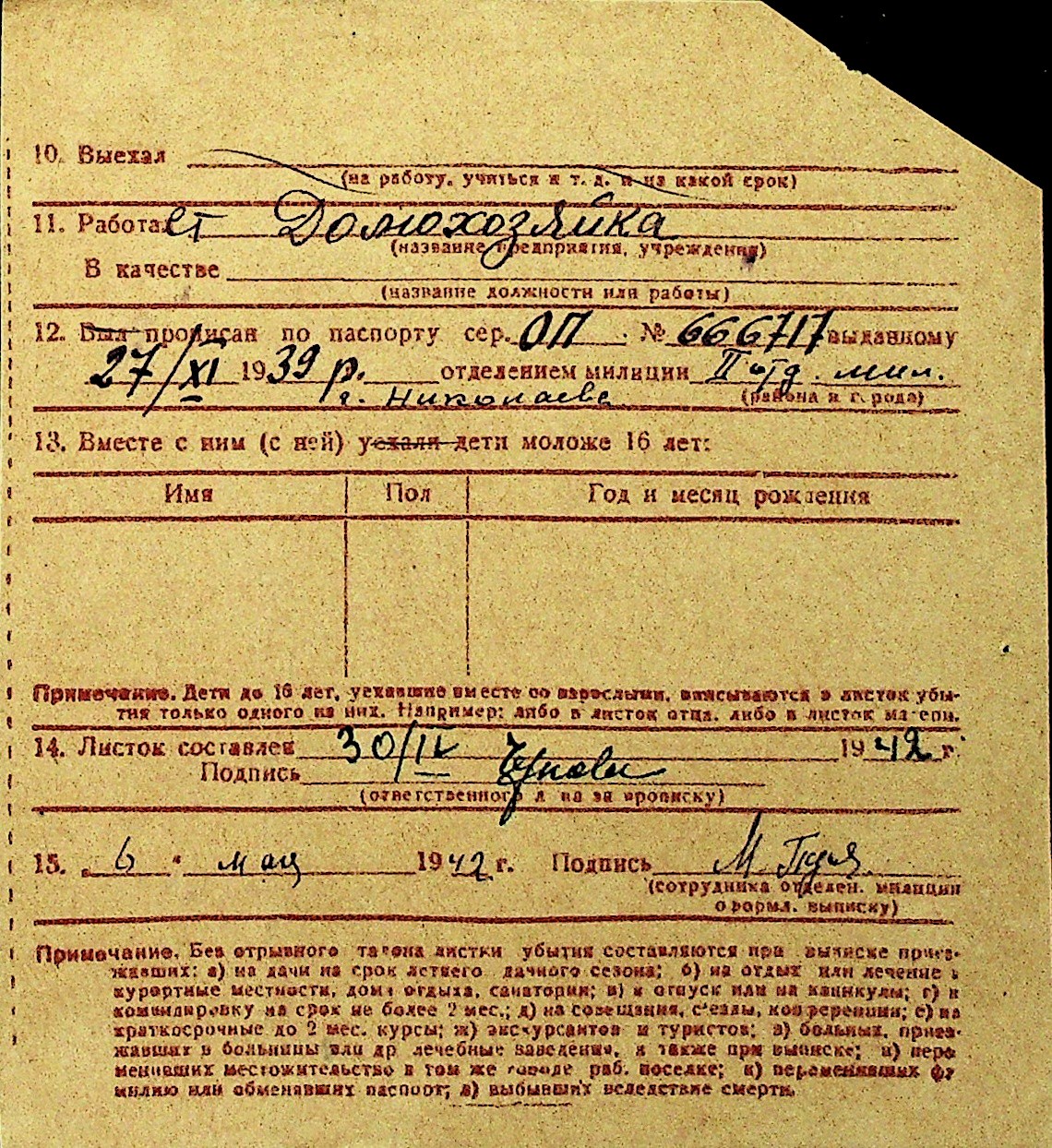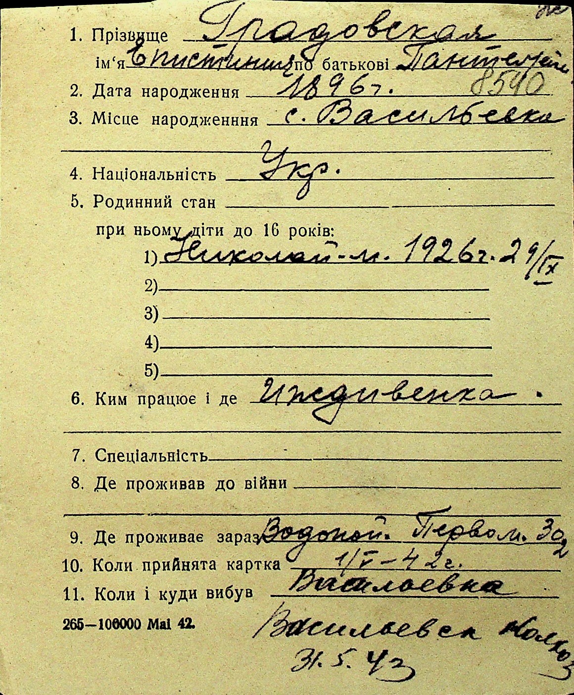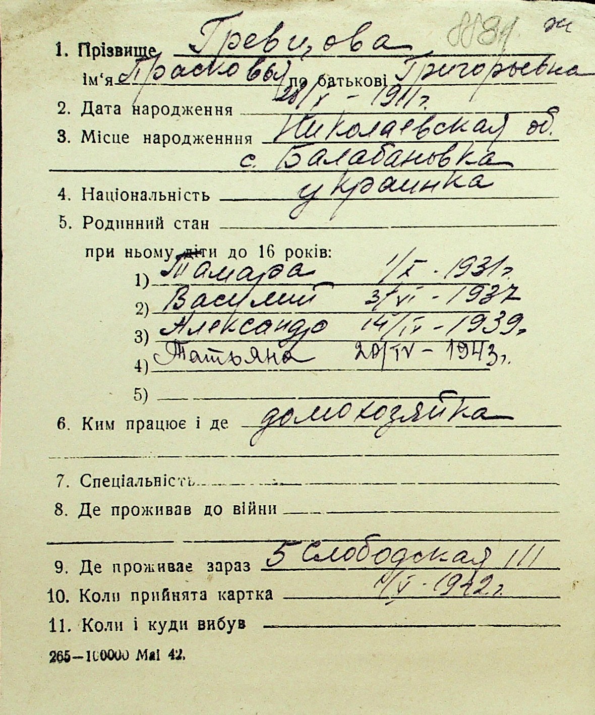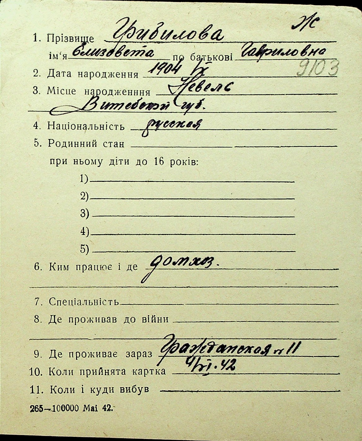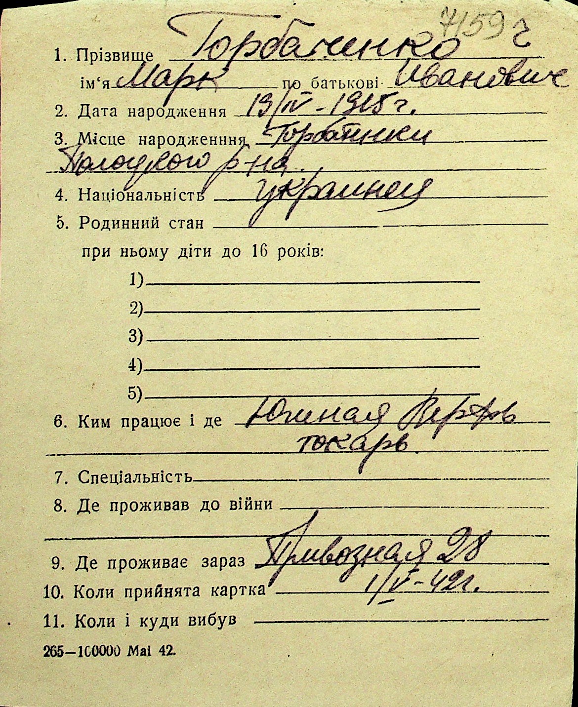 • • Перелік карток до фонду № Н-1016