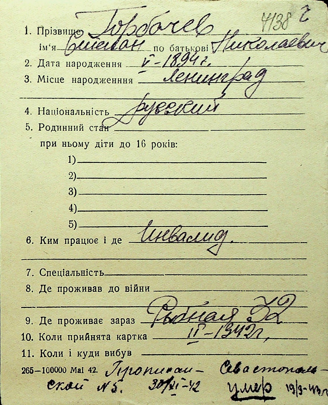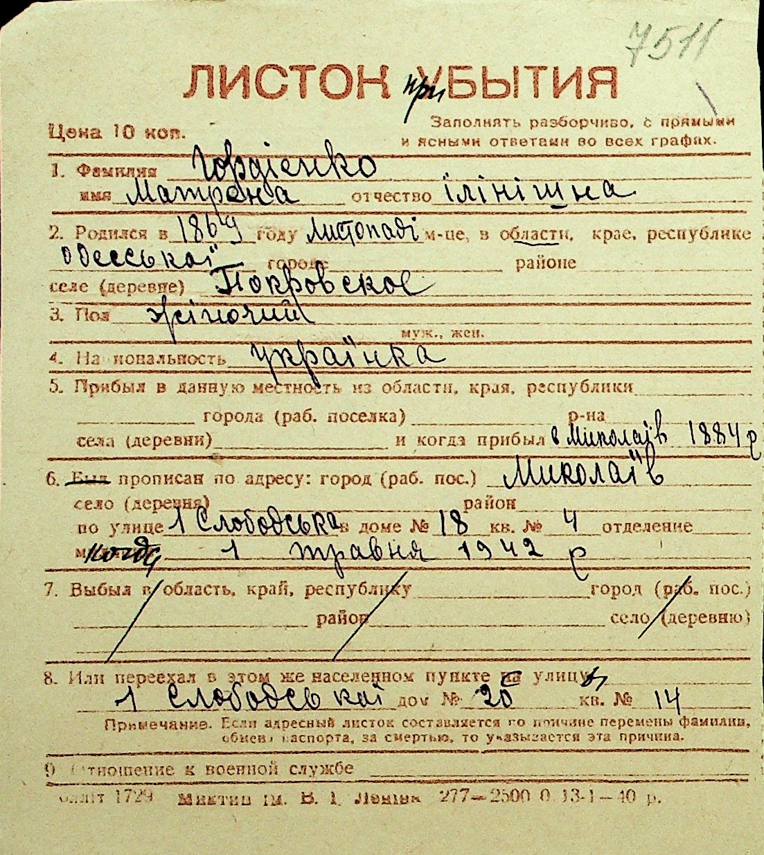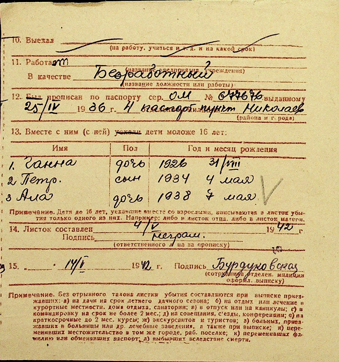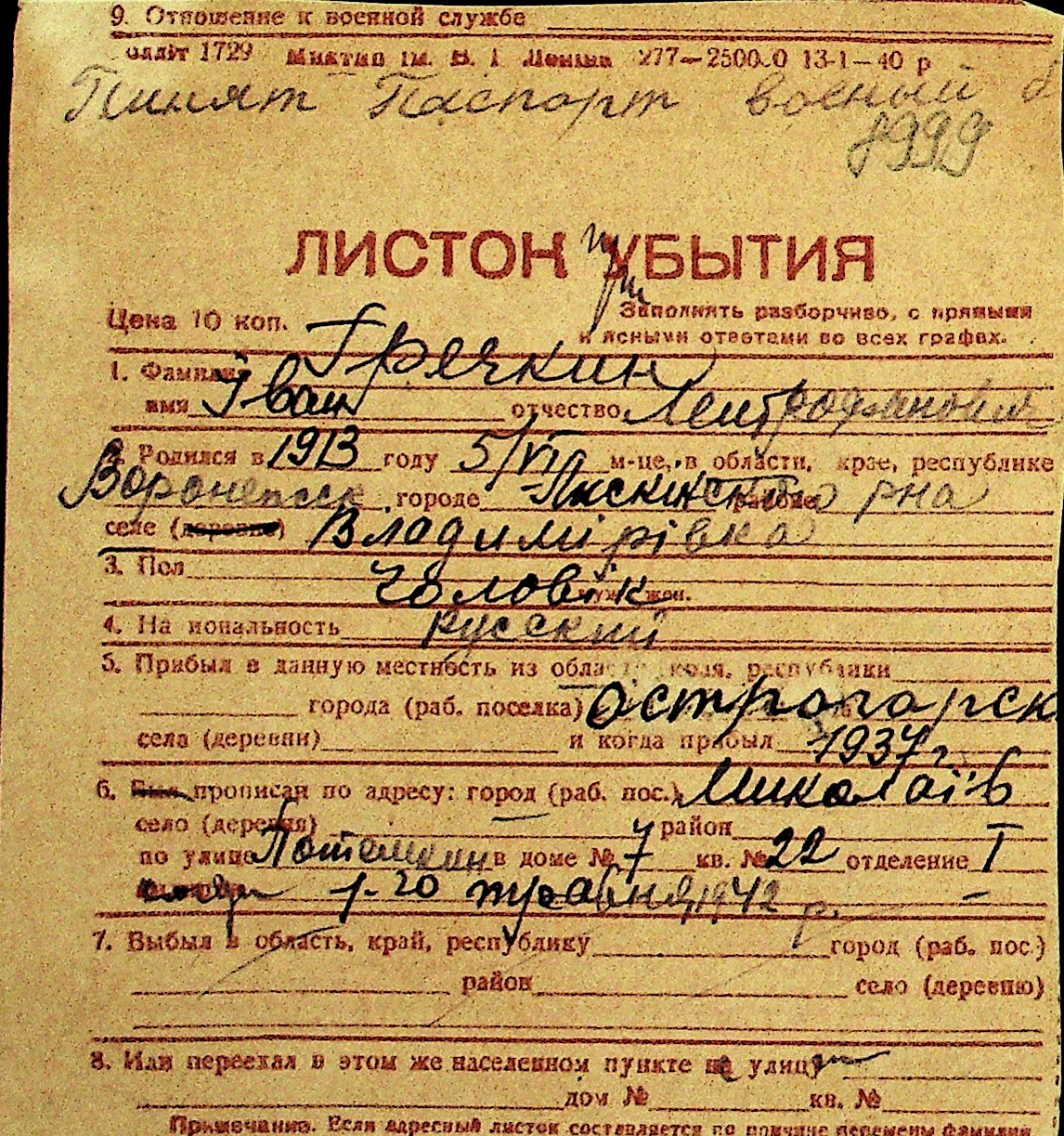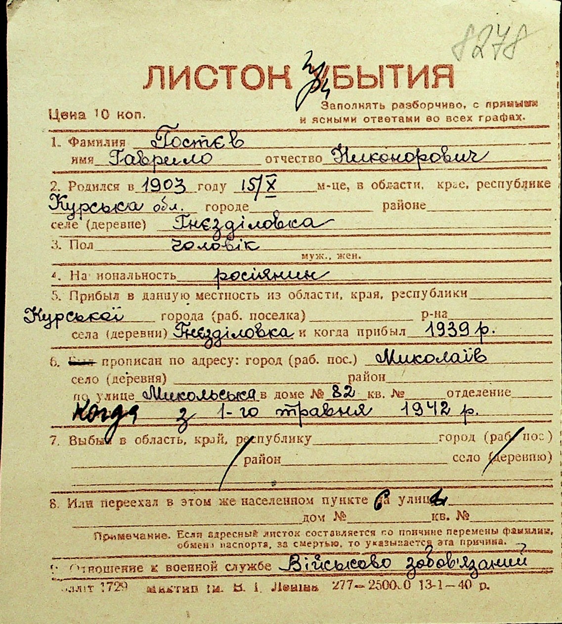 • • Перелік карток до фонду № Н-1016