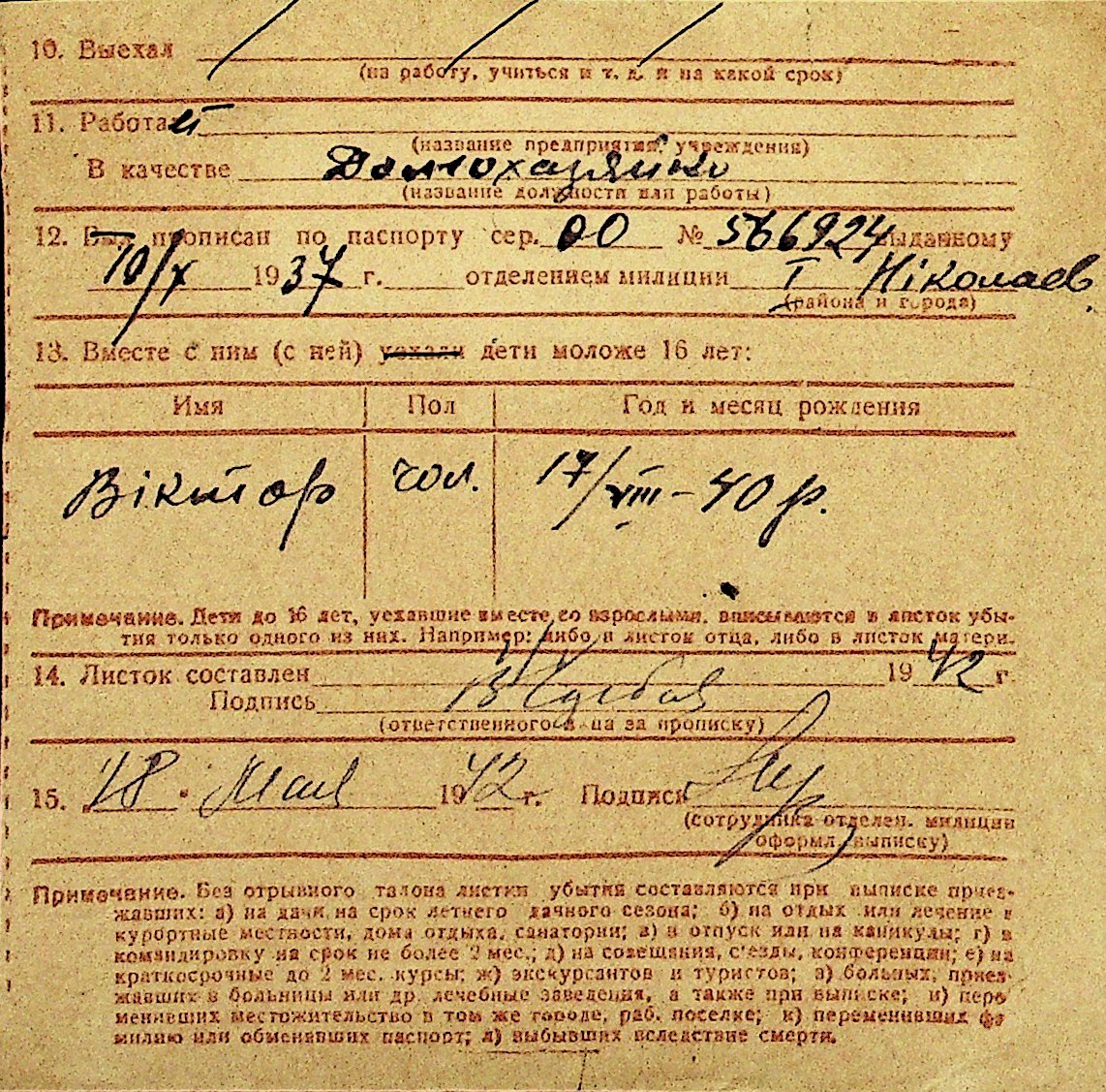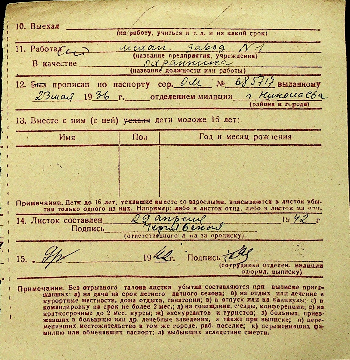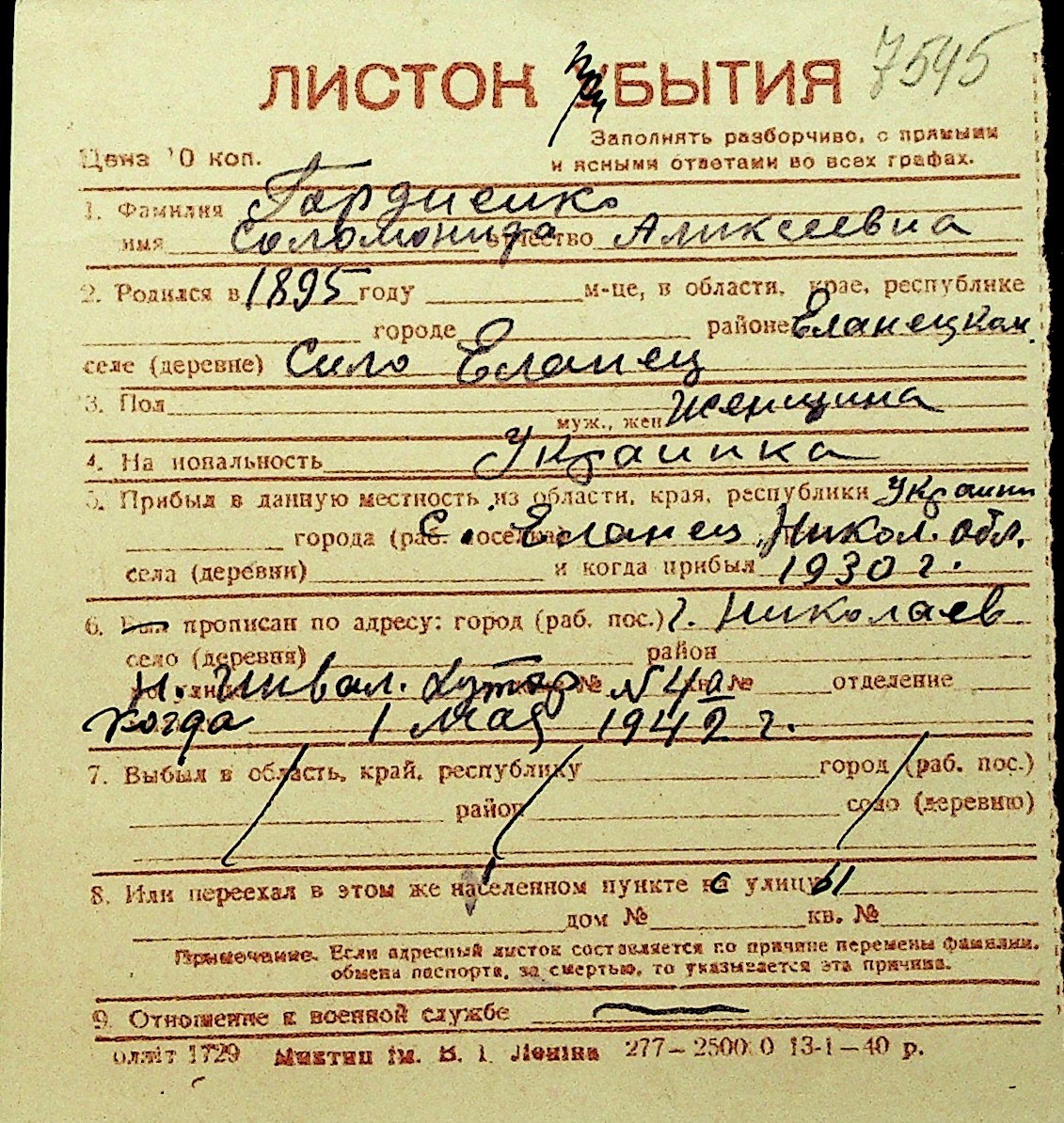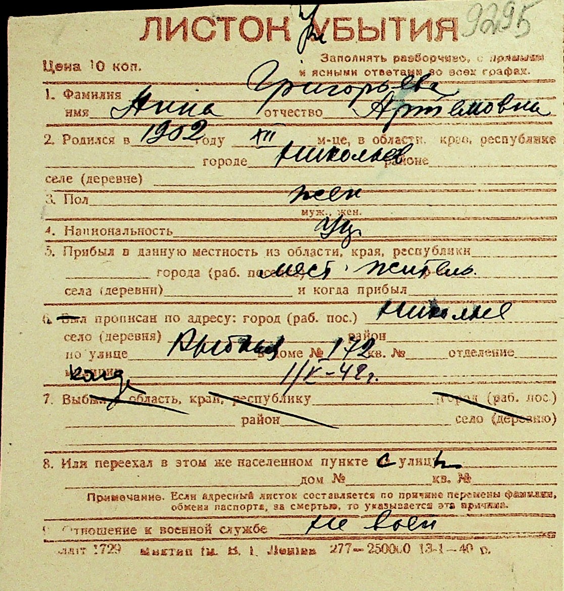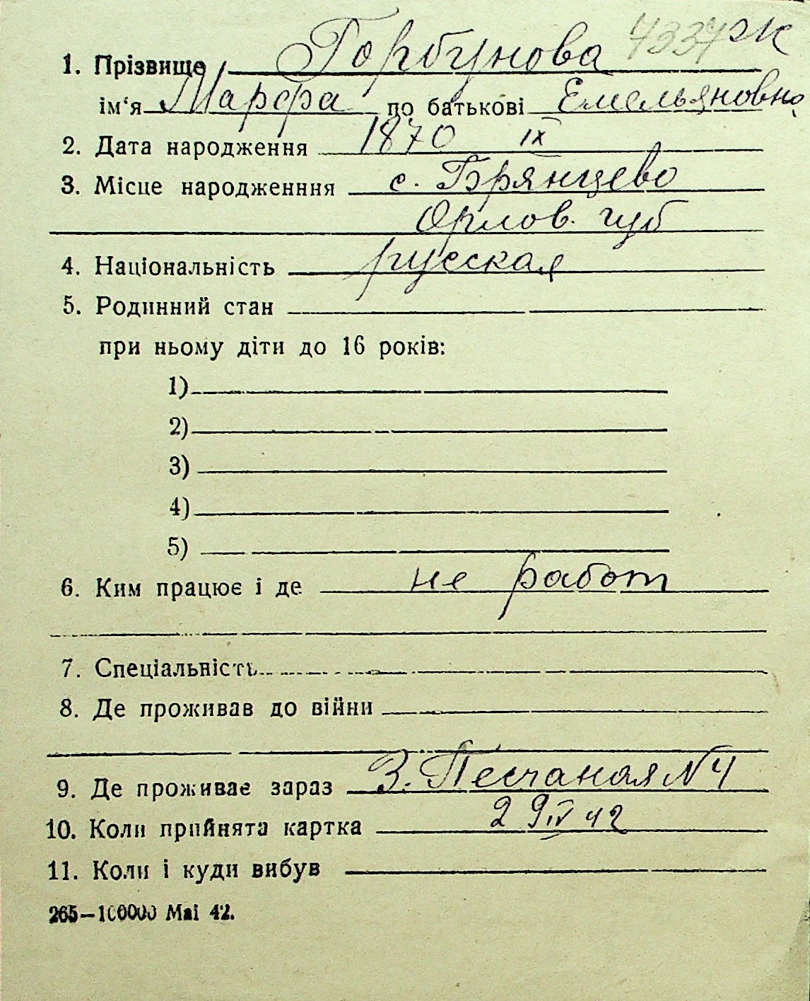 • • Перелік карток до фонду № Н-1016