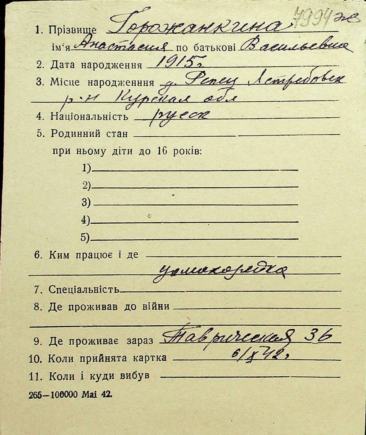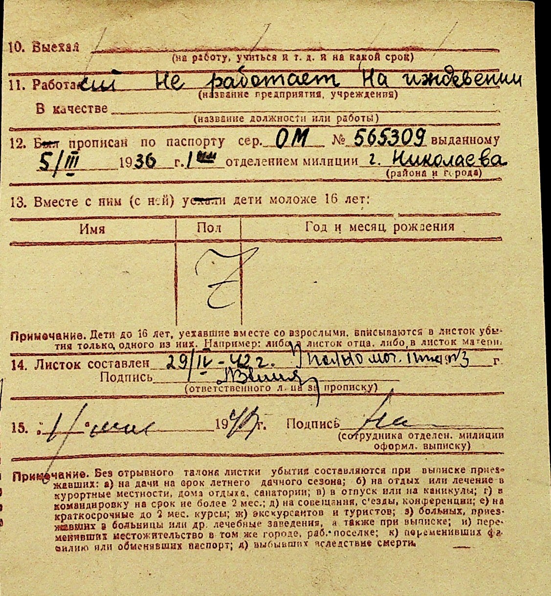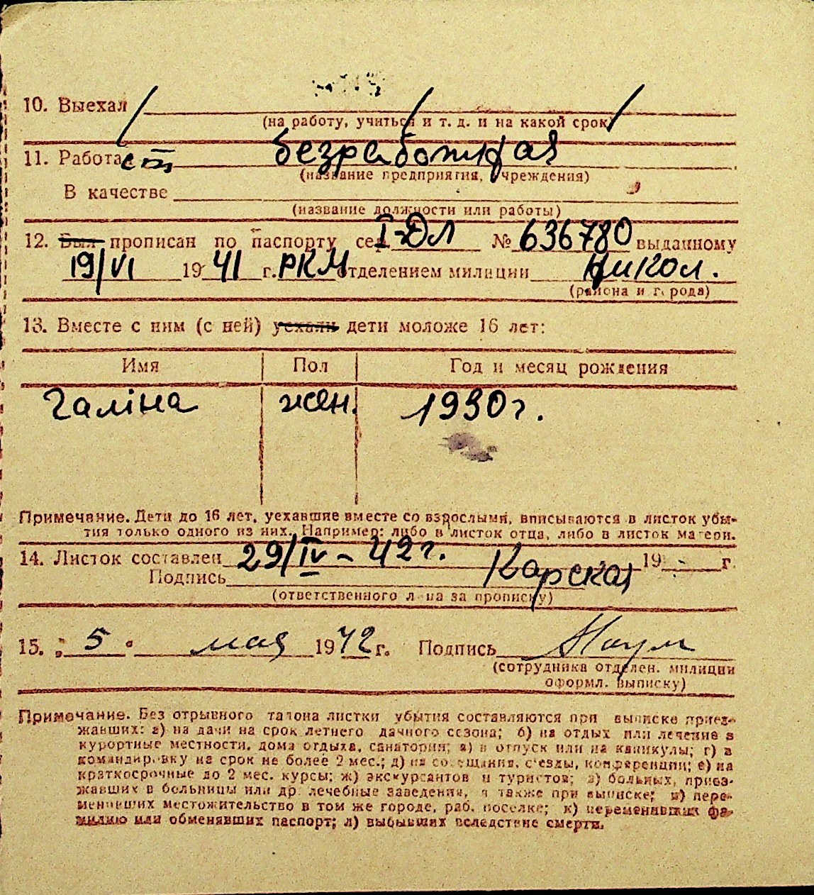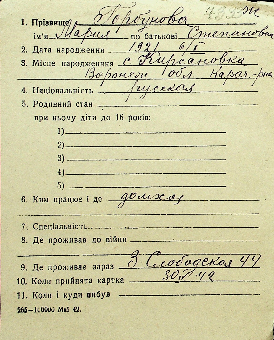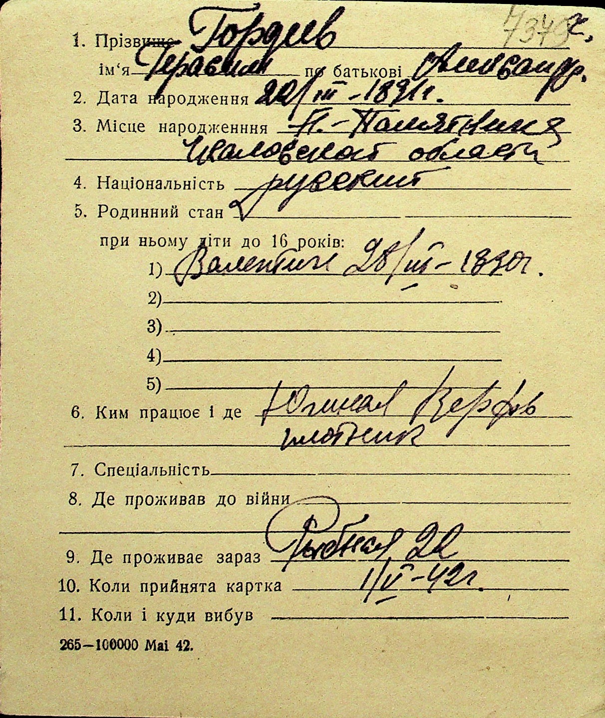 • • Перелік карток до фонду № Н-1016