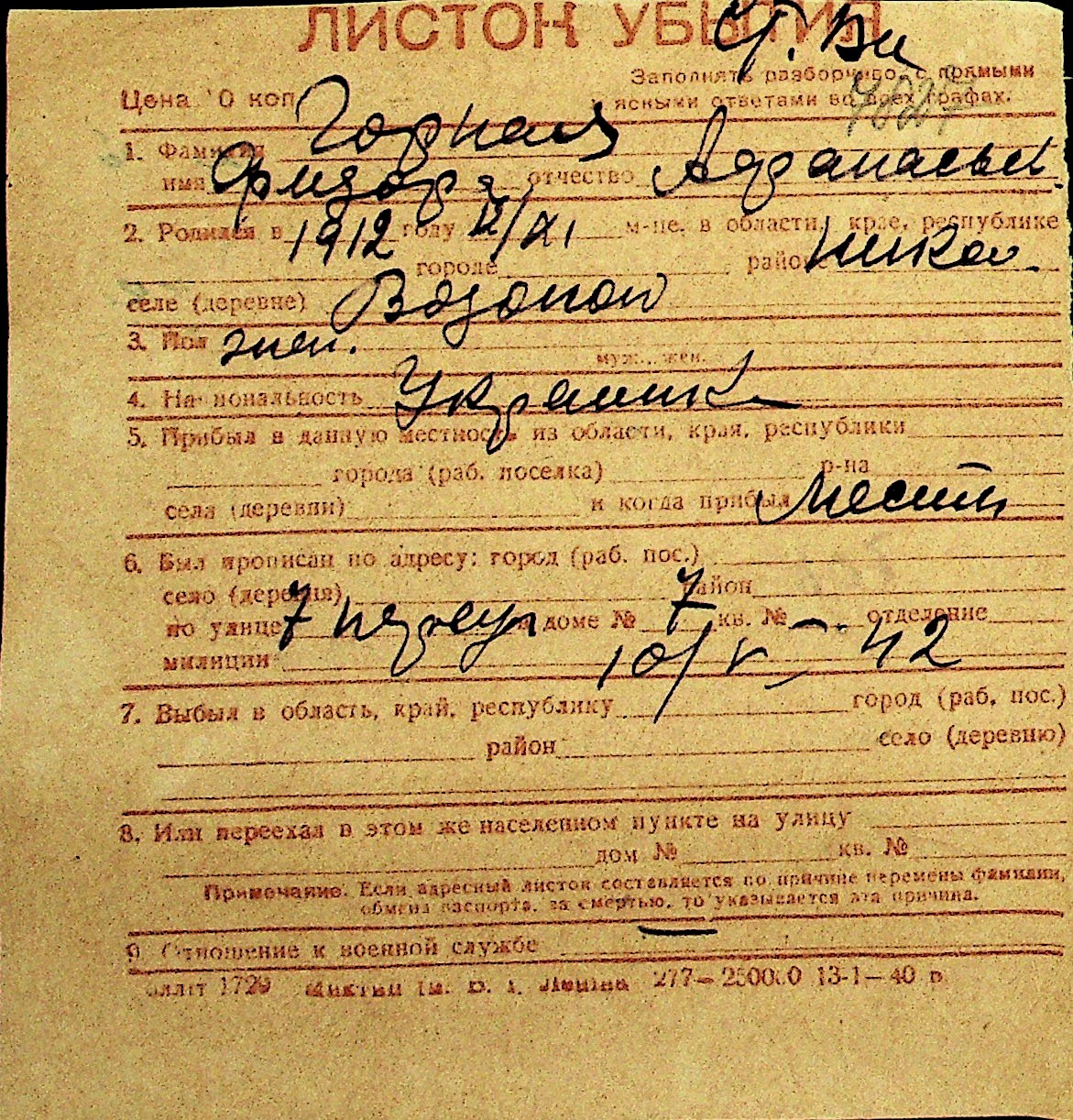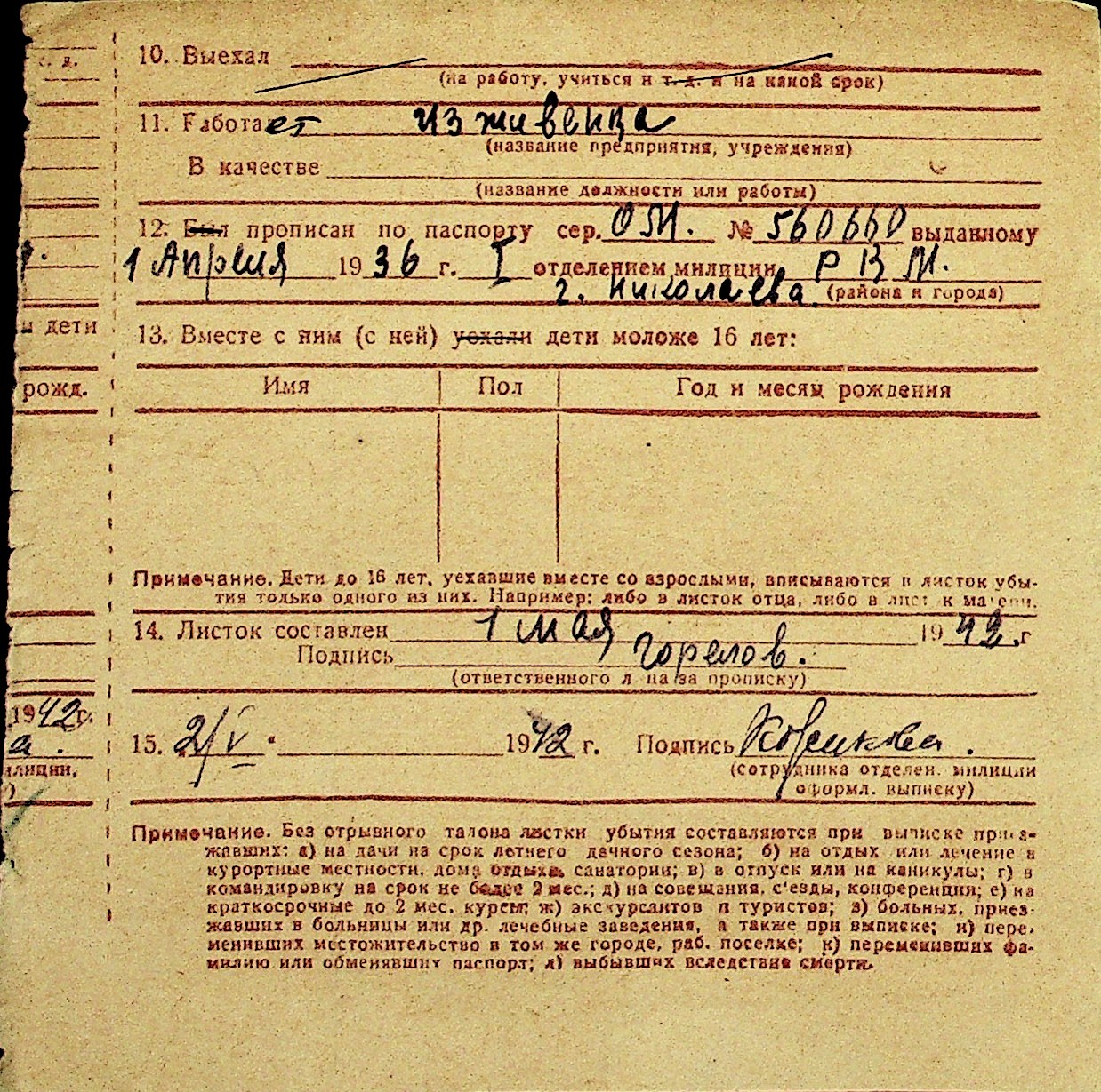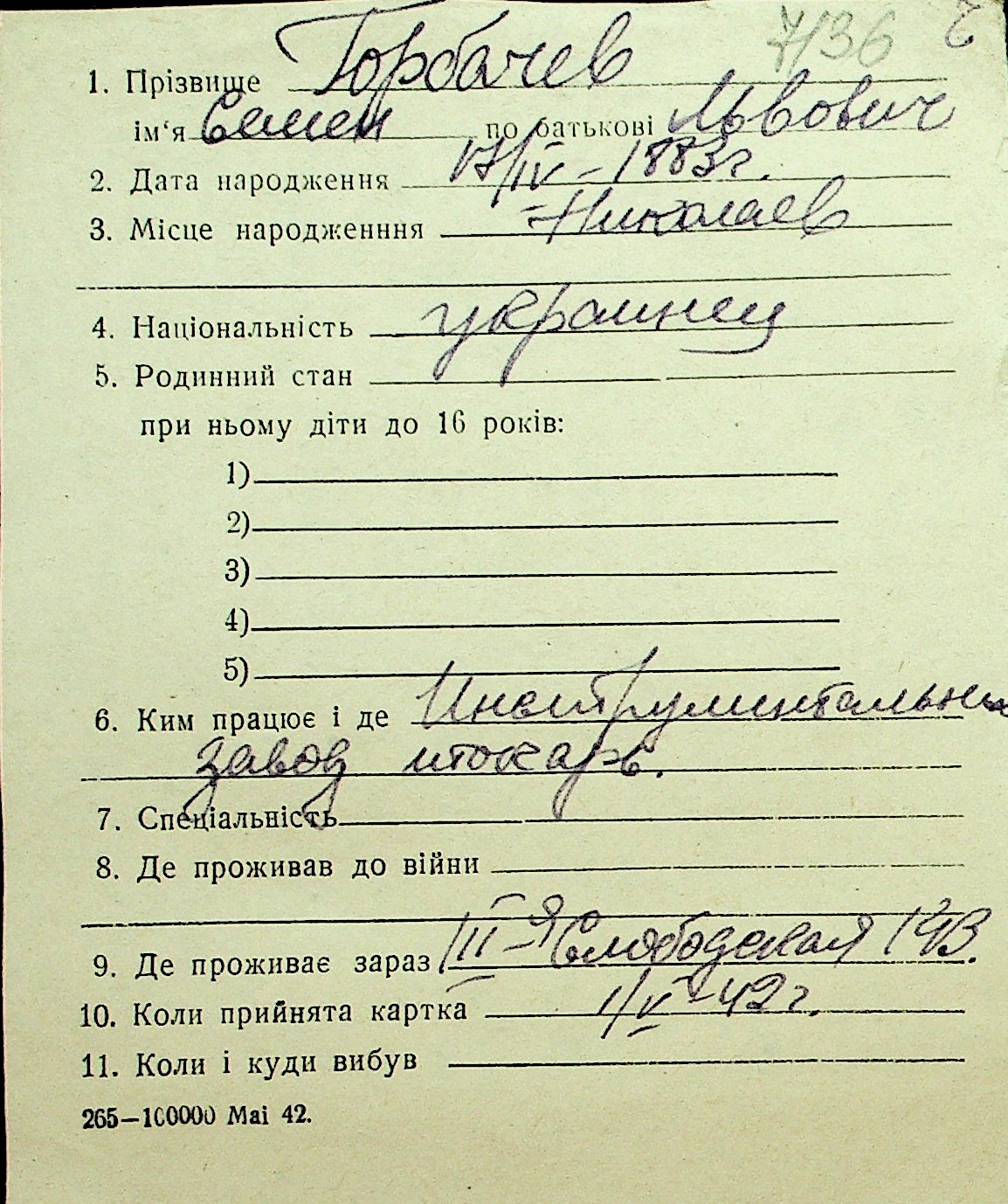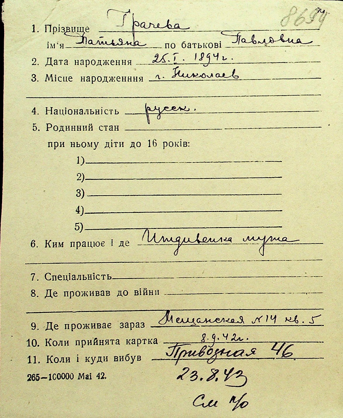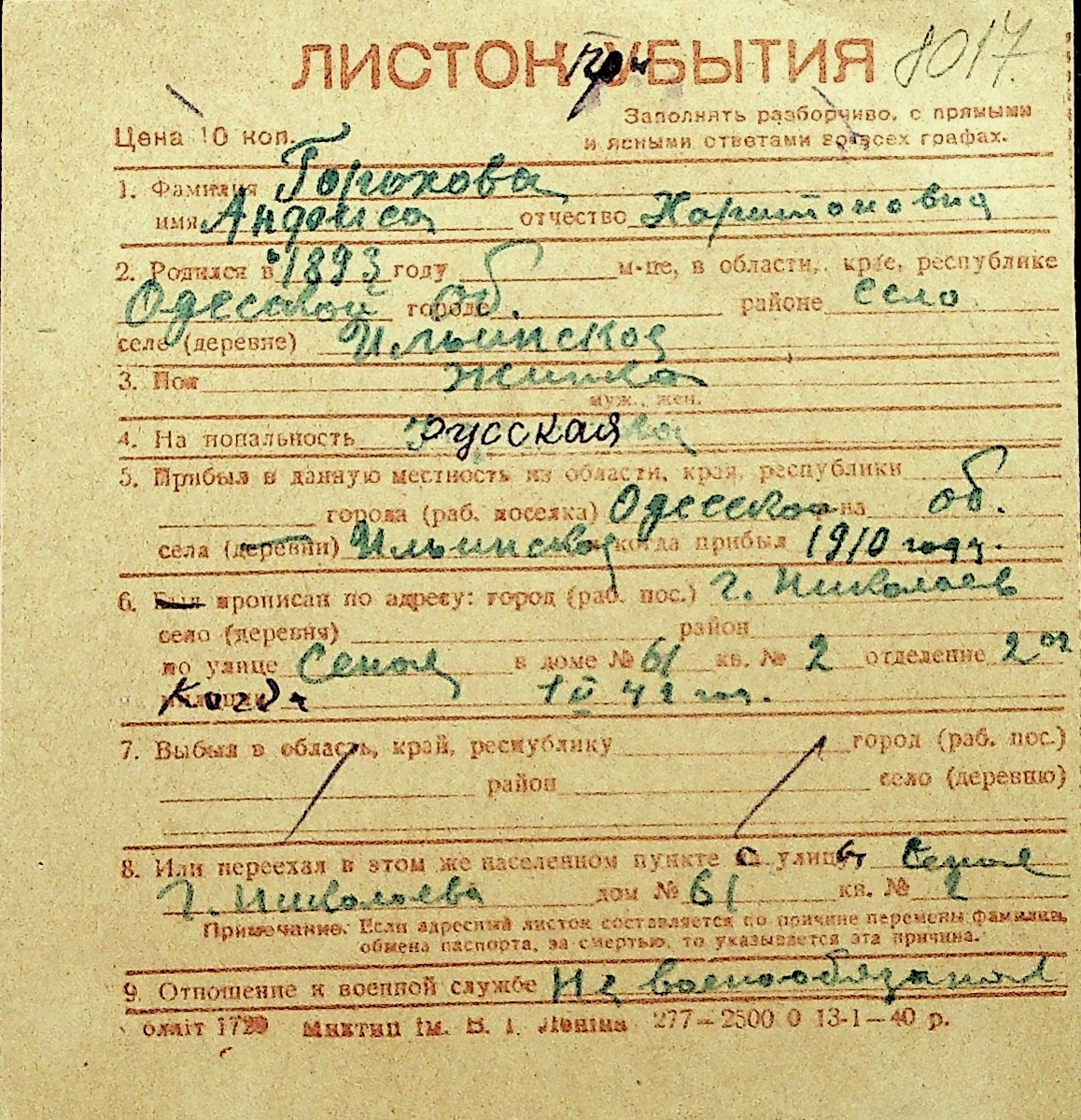 • • Перелік карток до фонду № Н-1016