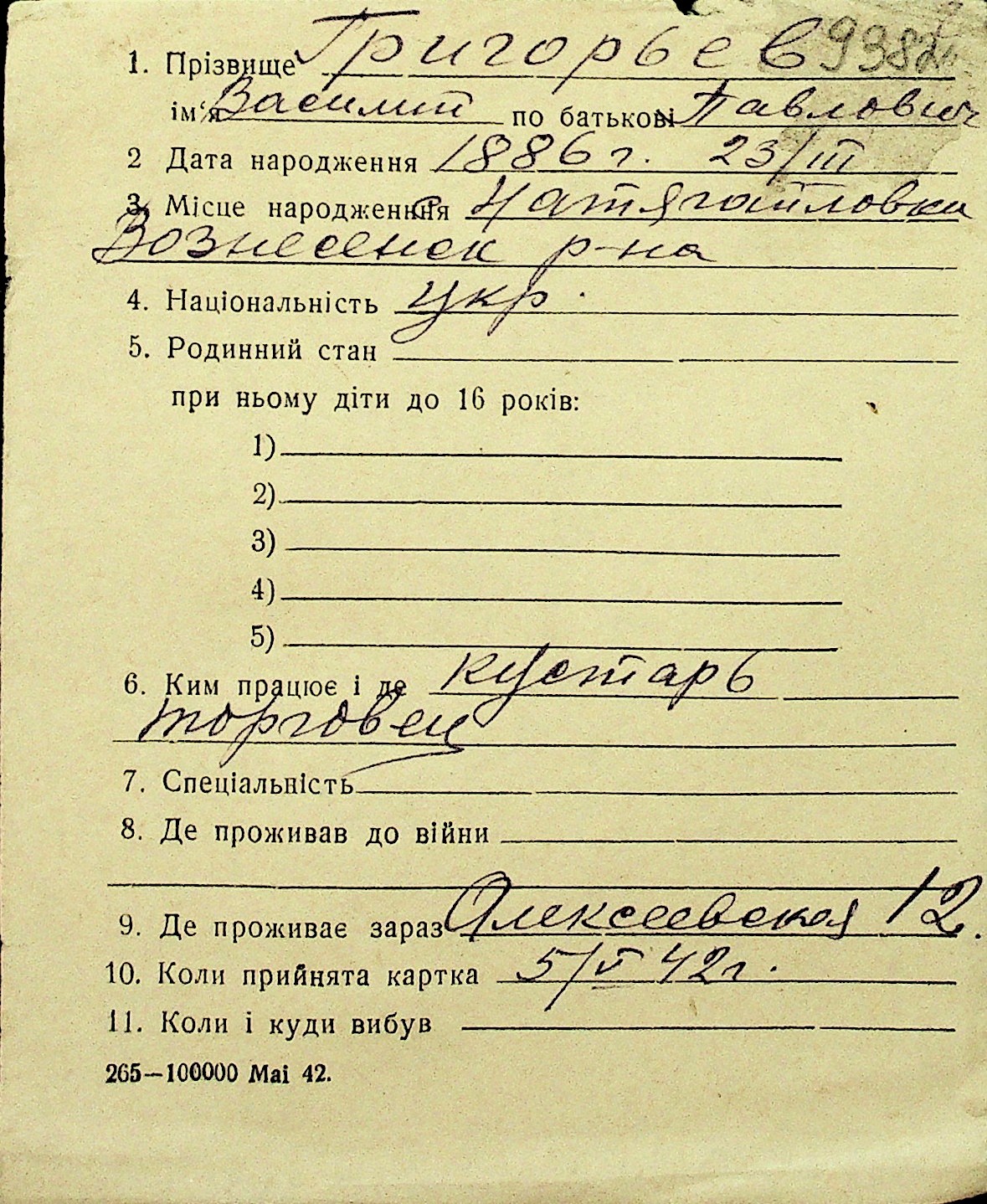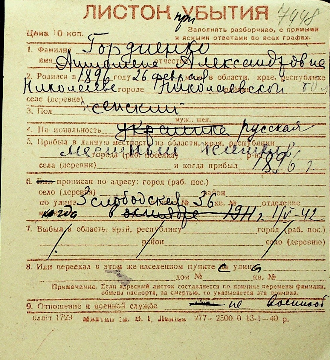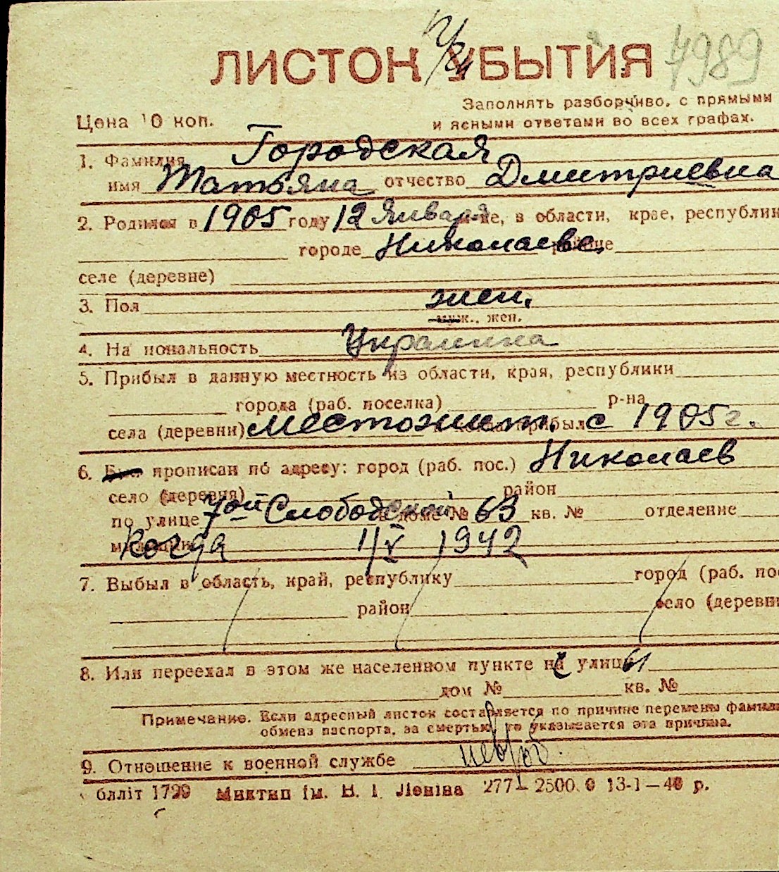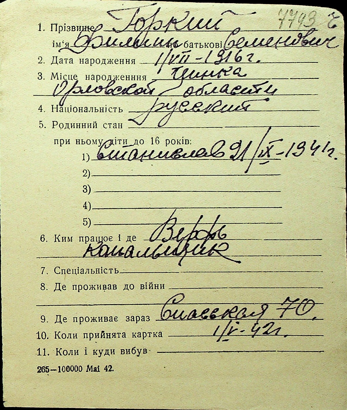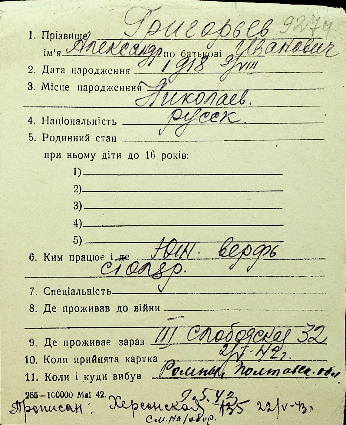 • • Перелік карток до фонду № Н-1016