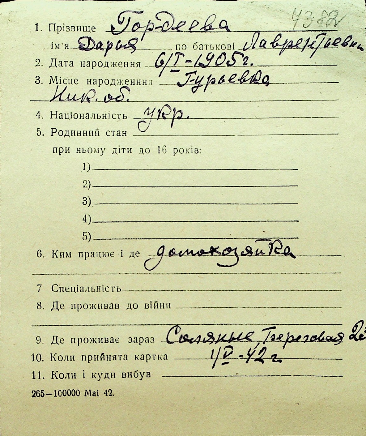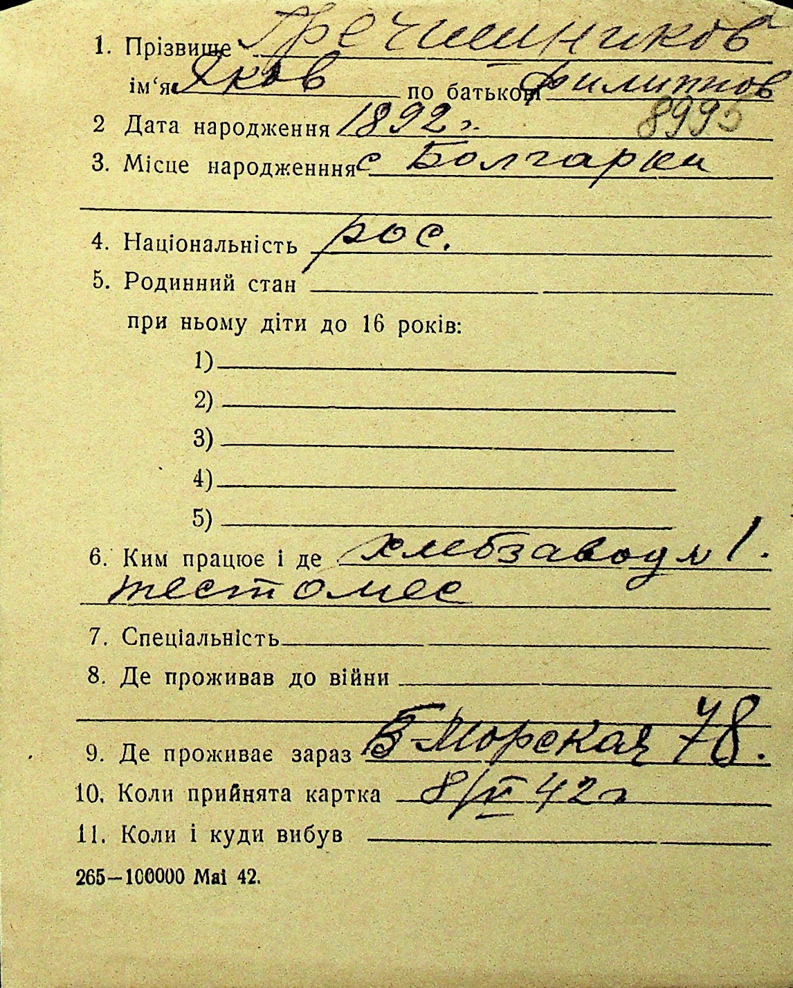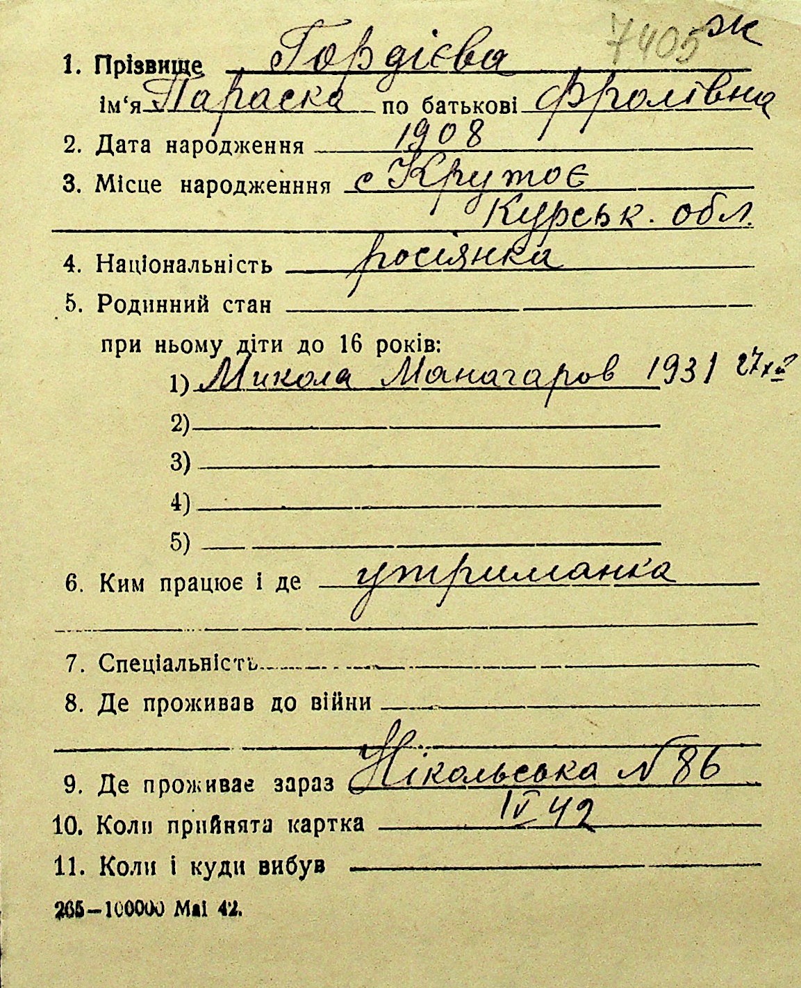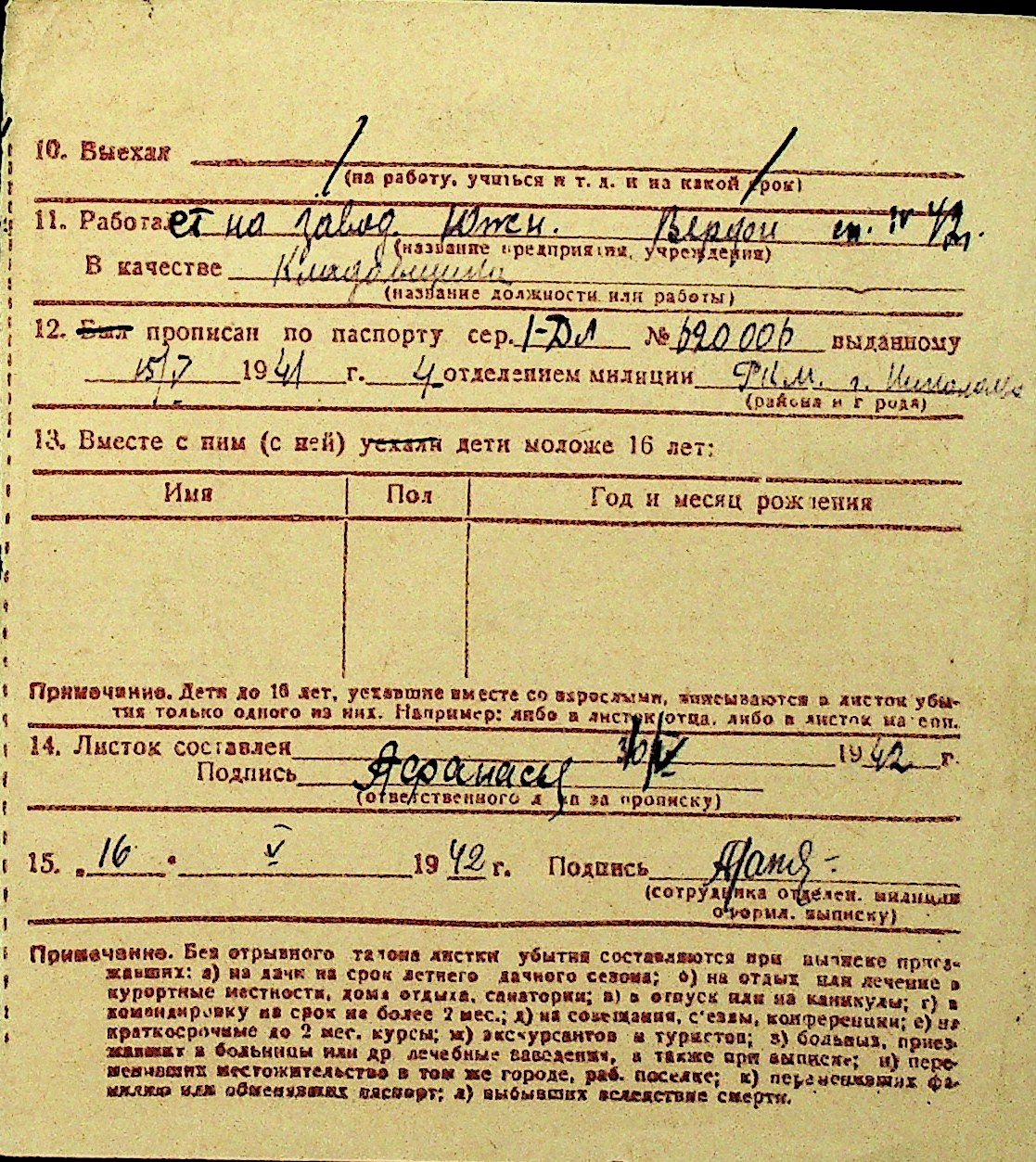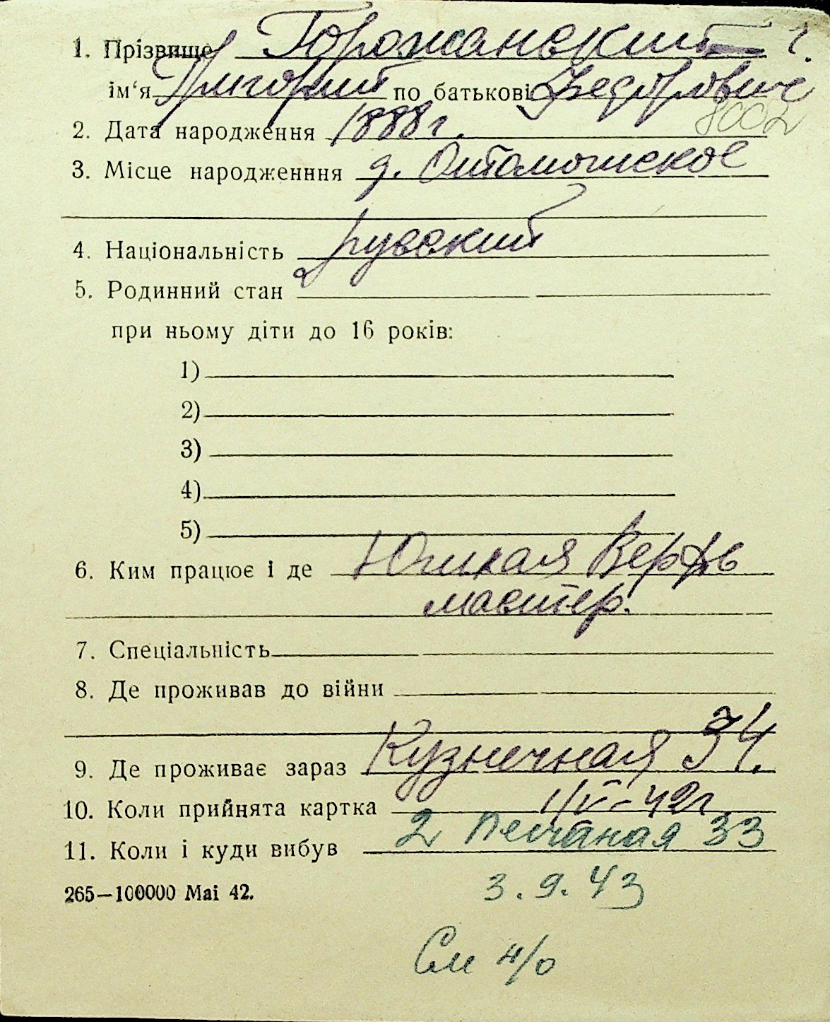 • • Перелік карток до фонду № Н-1016