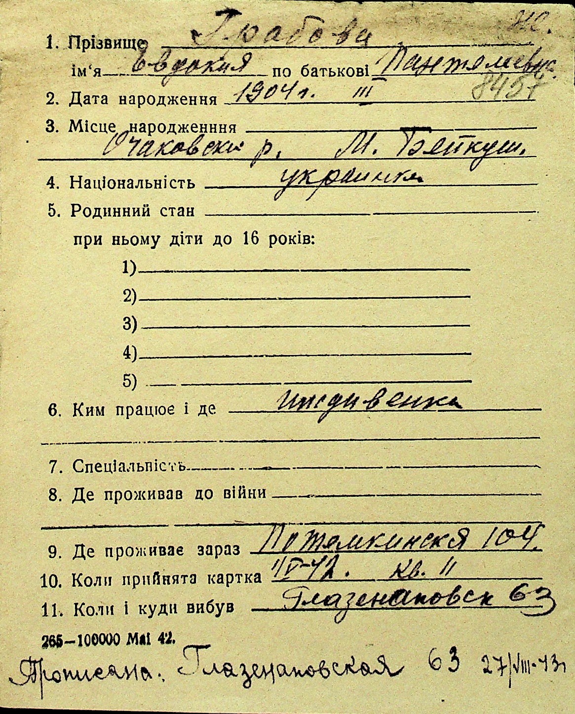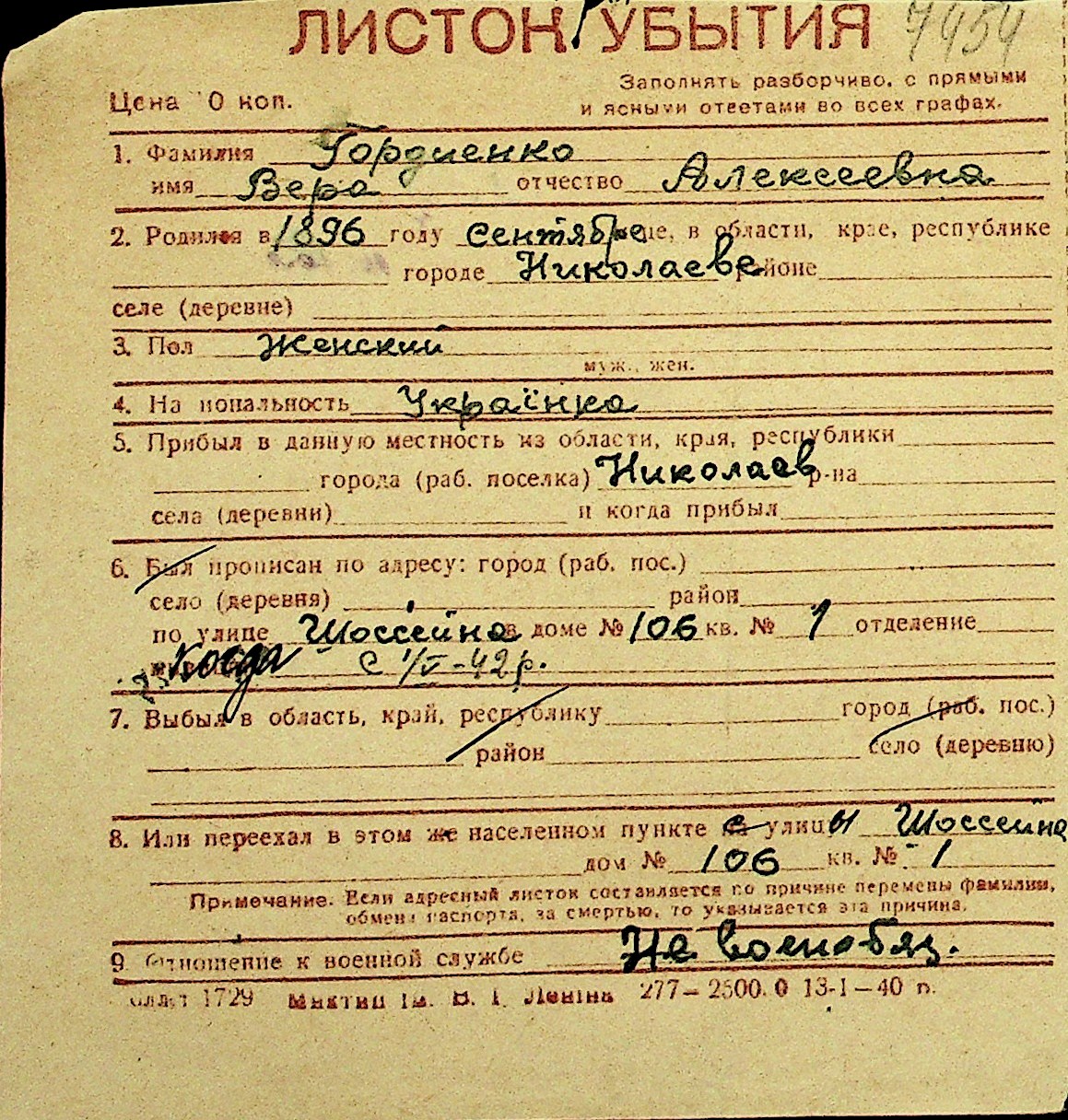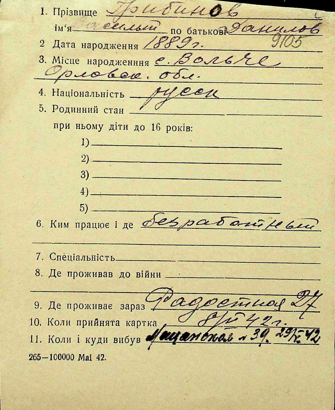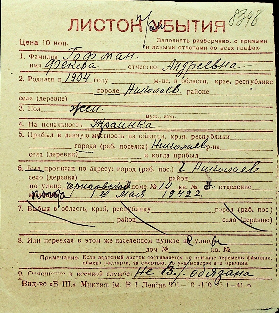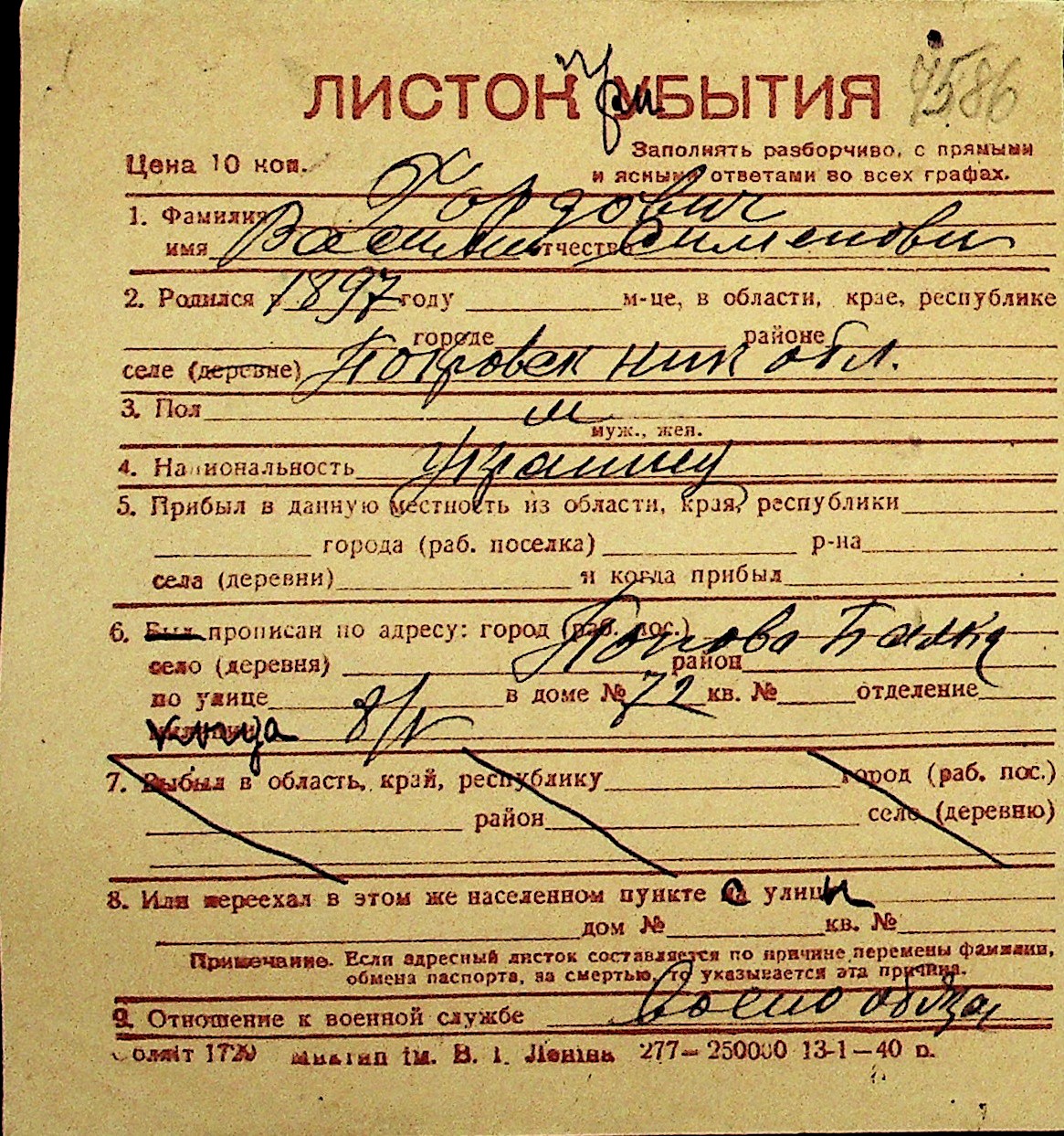 • • Перелік карток до фонду № Н-1016