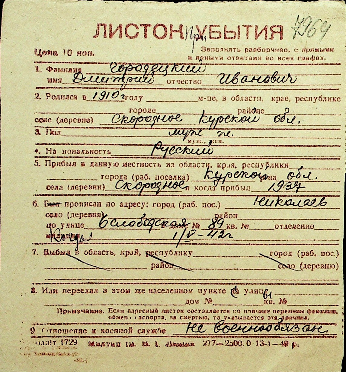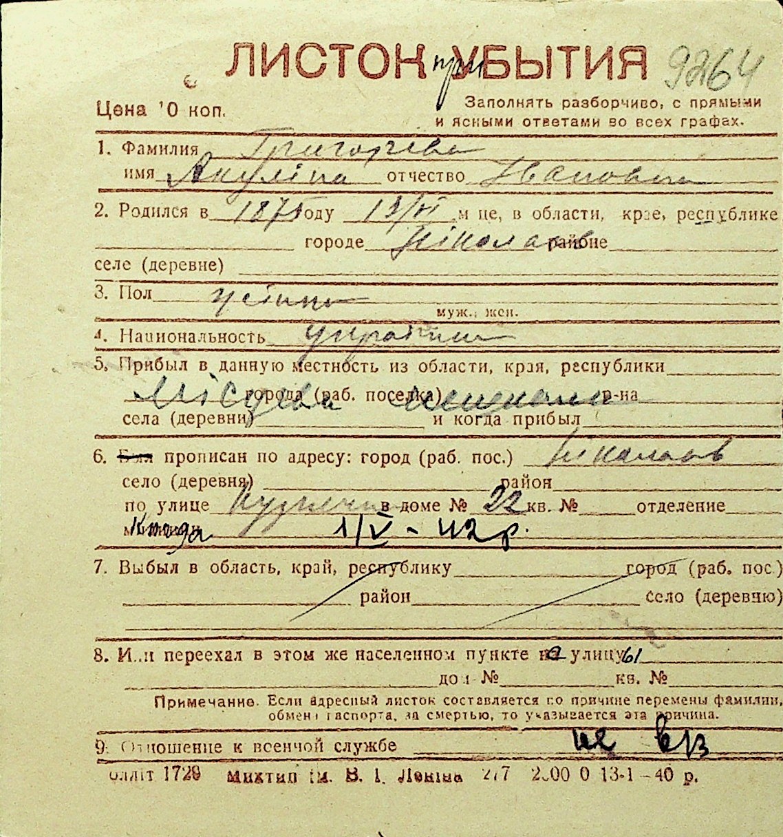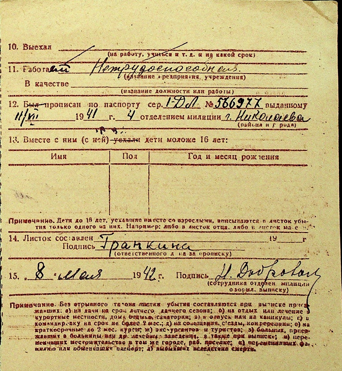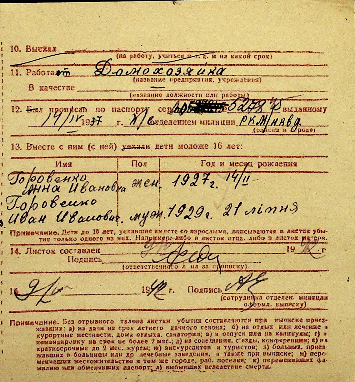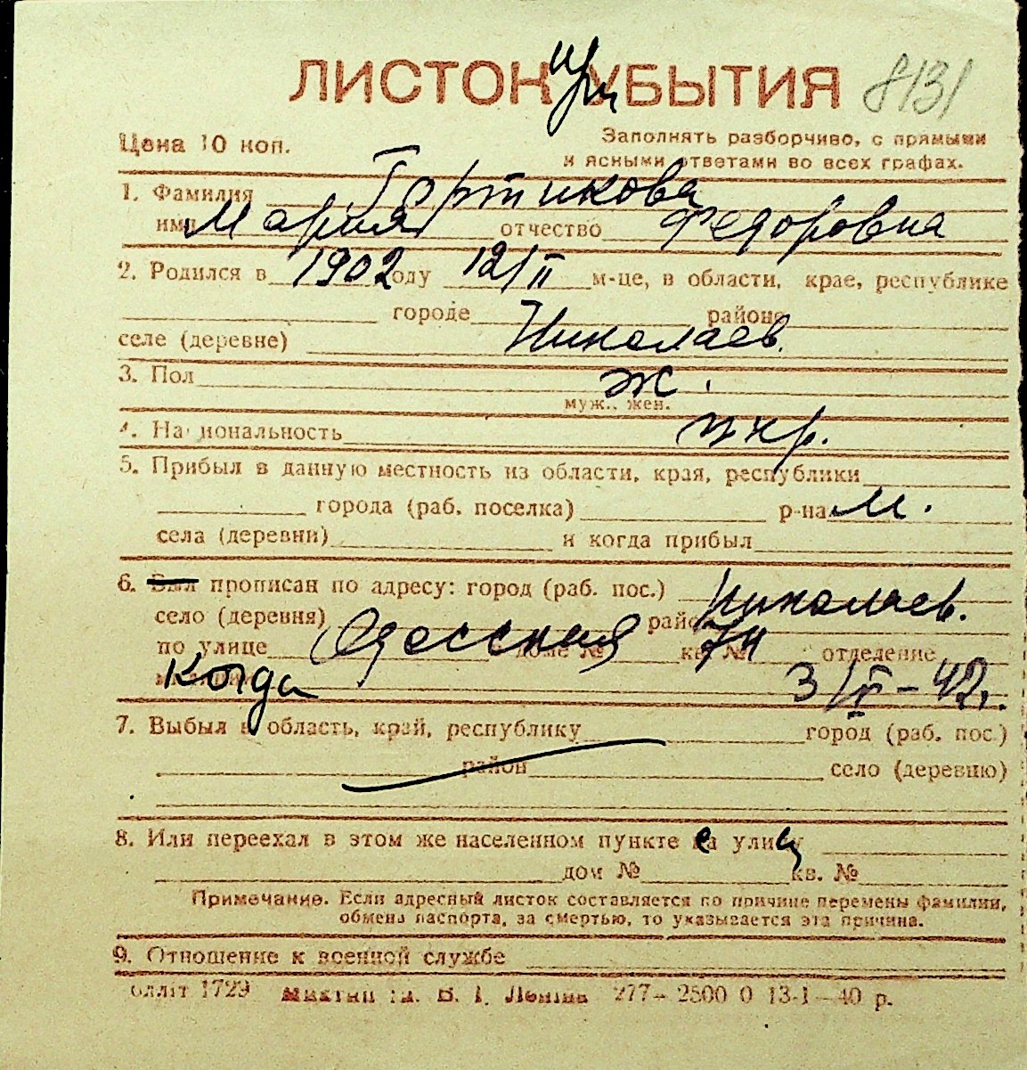 • • Перелік карток до фонду № Н-1016