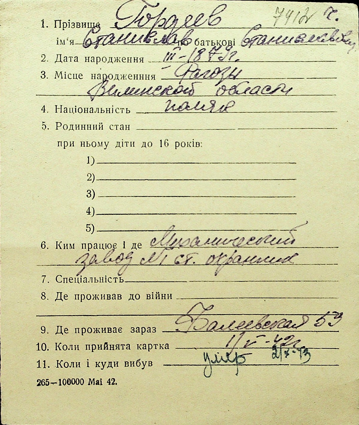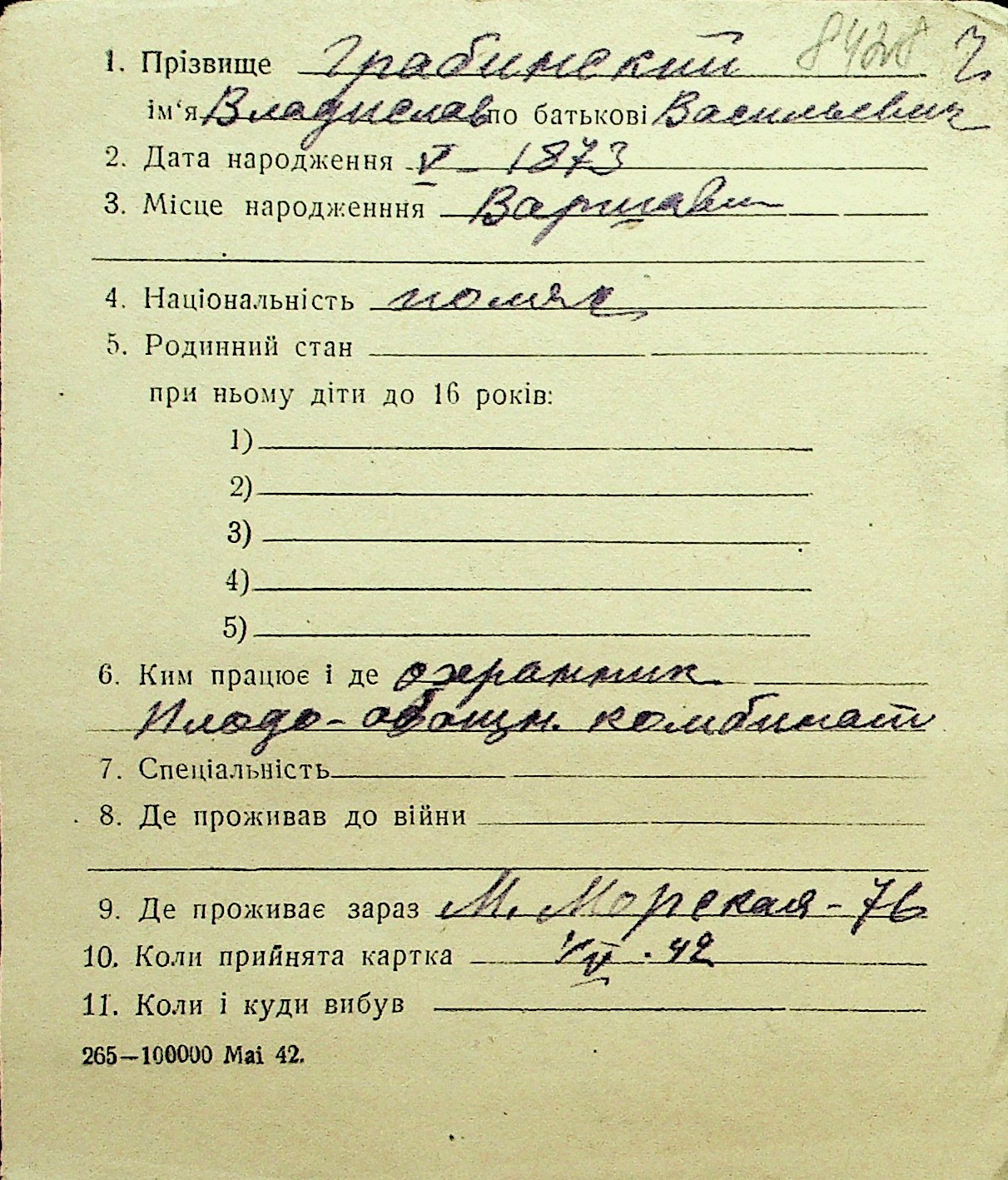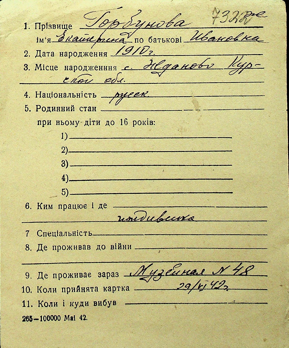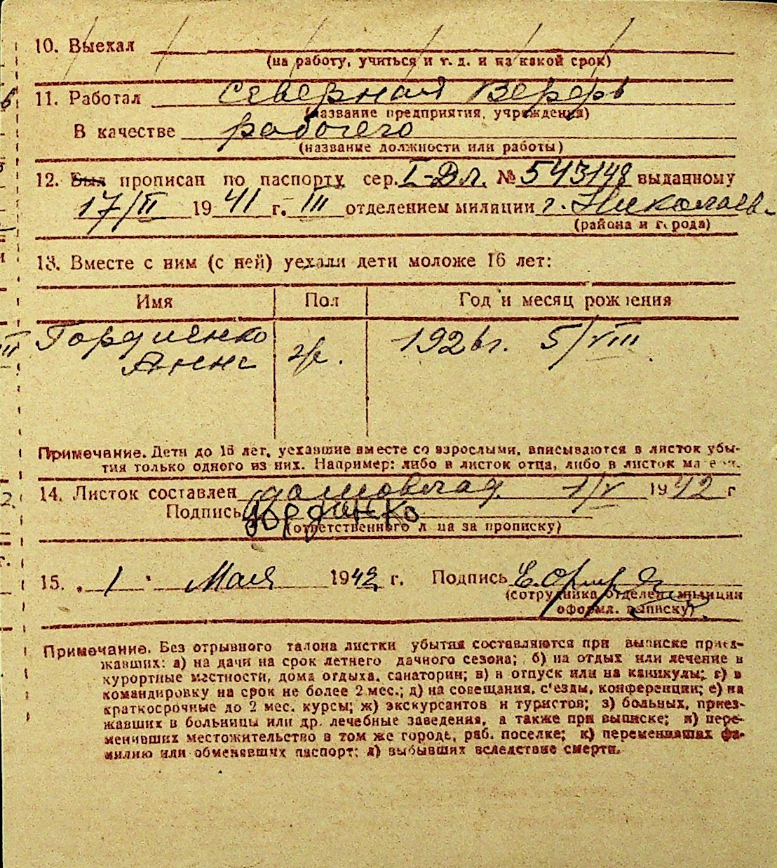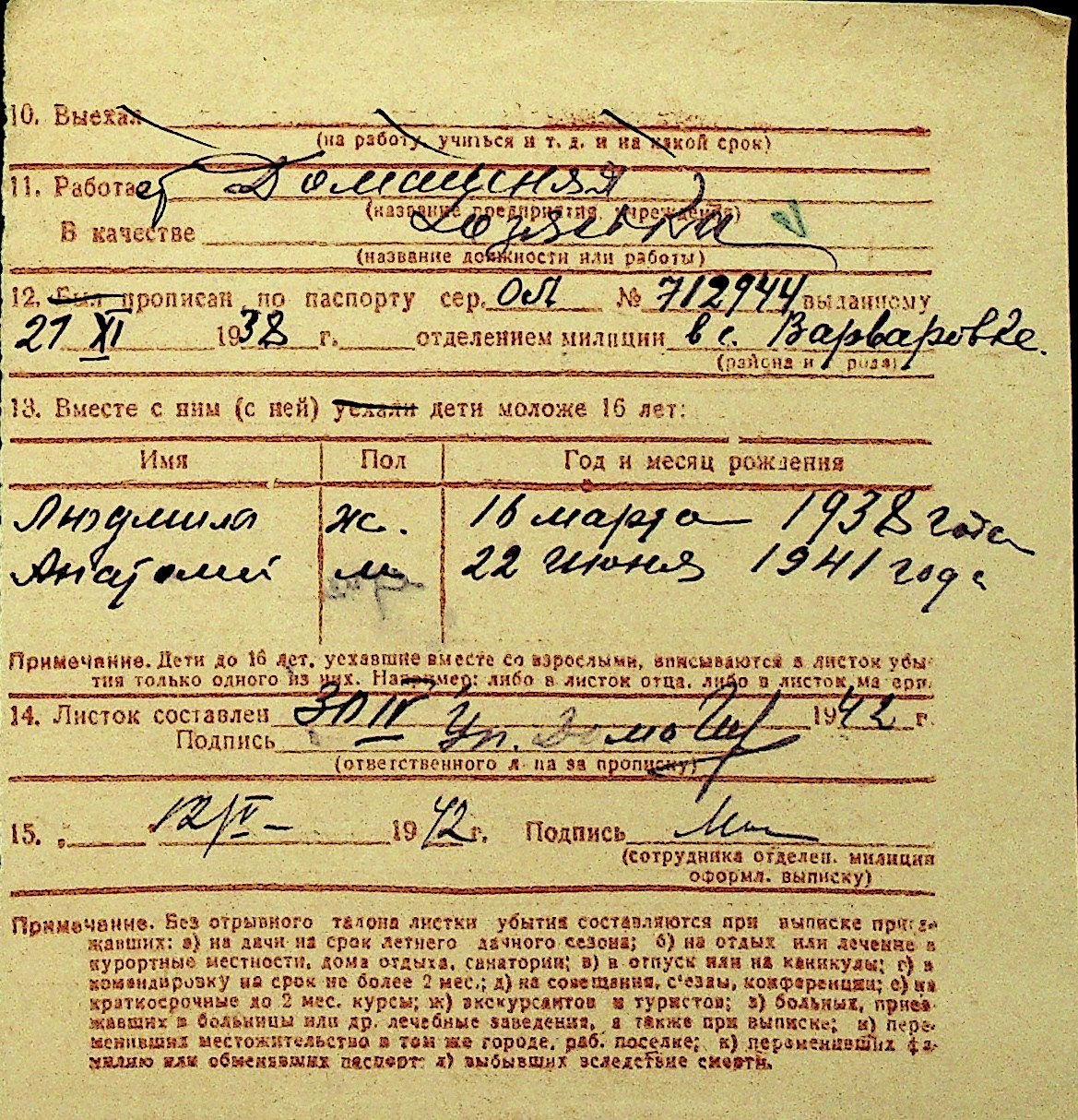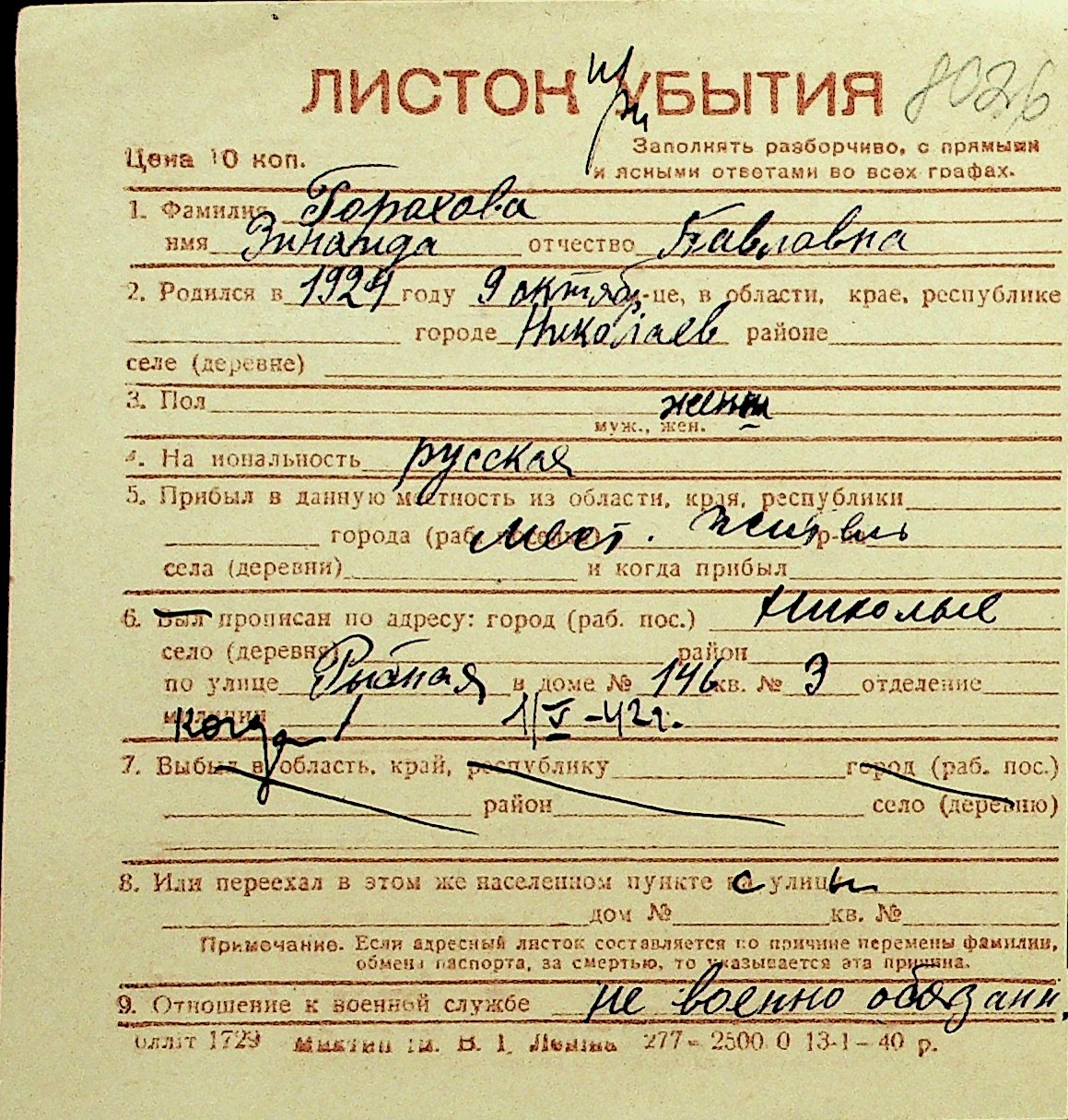 • • Перелік карток до фонду № Н-1016