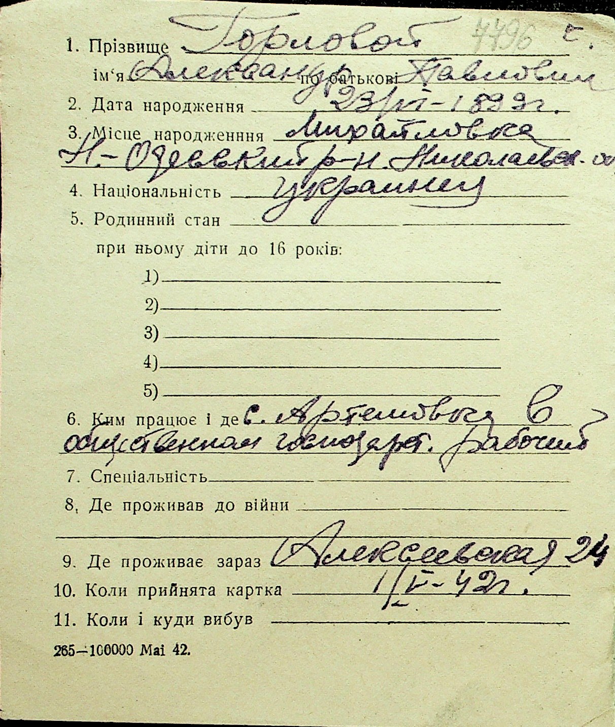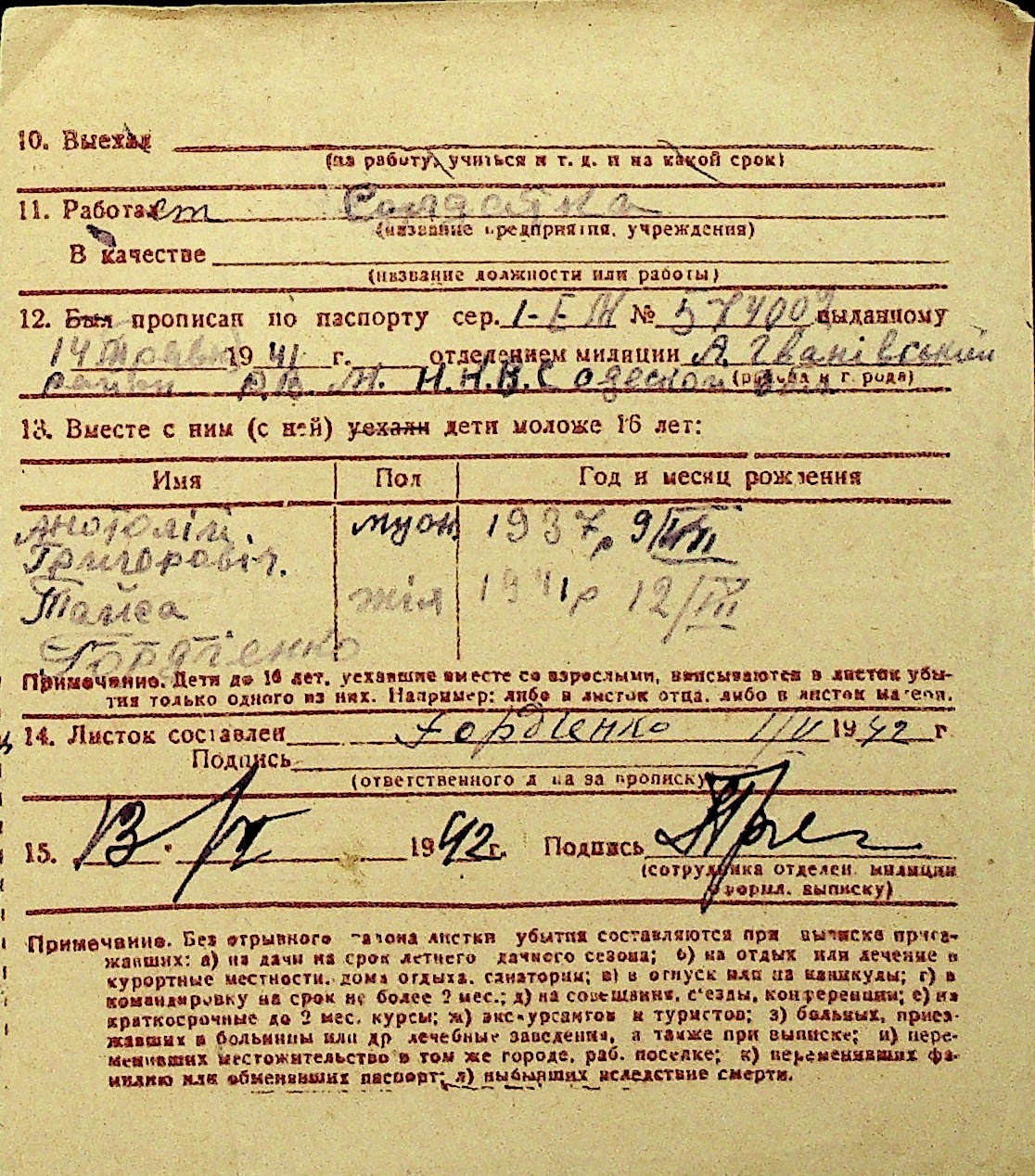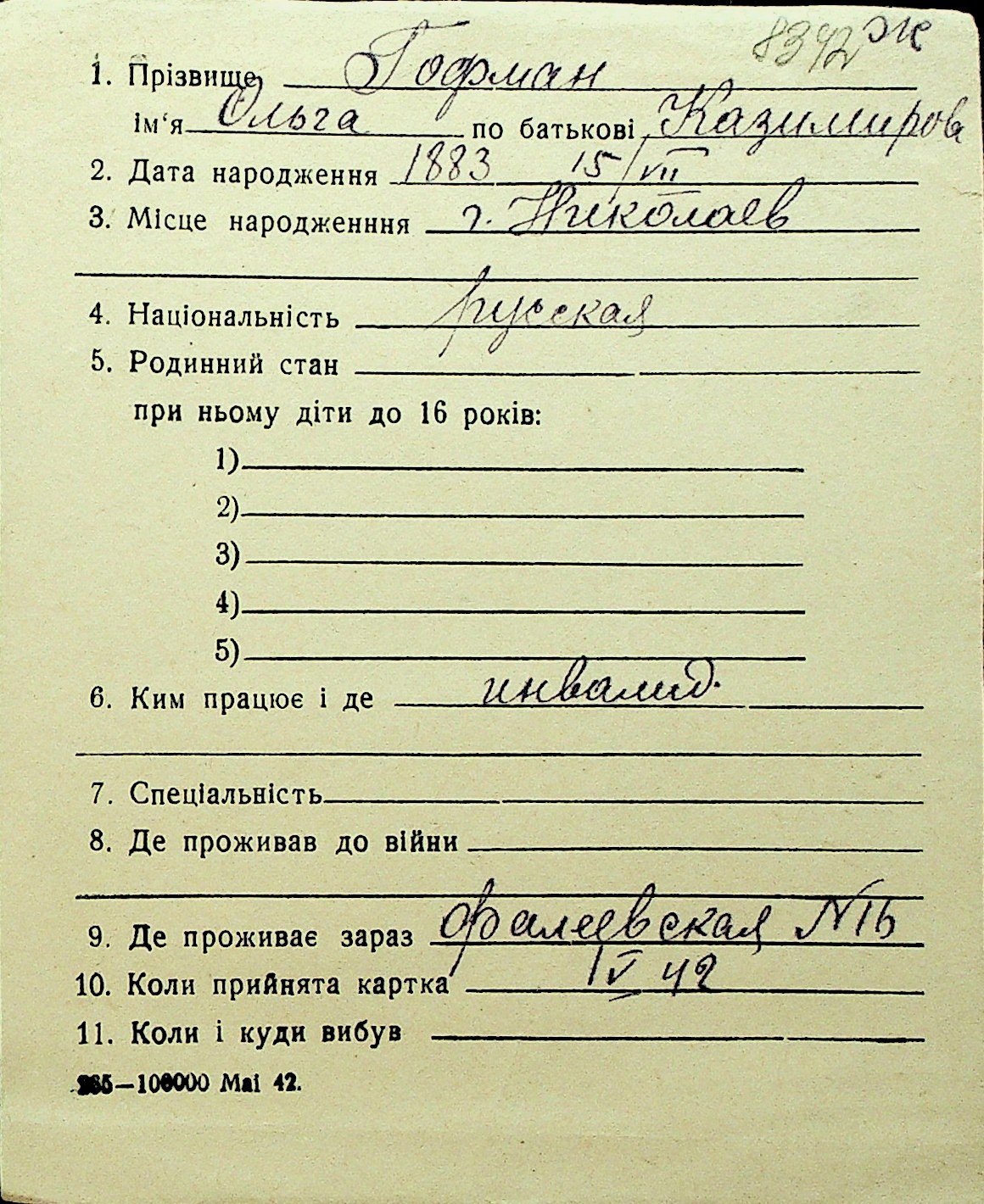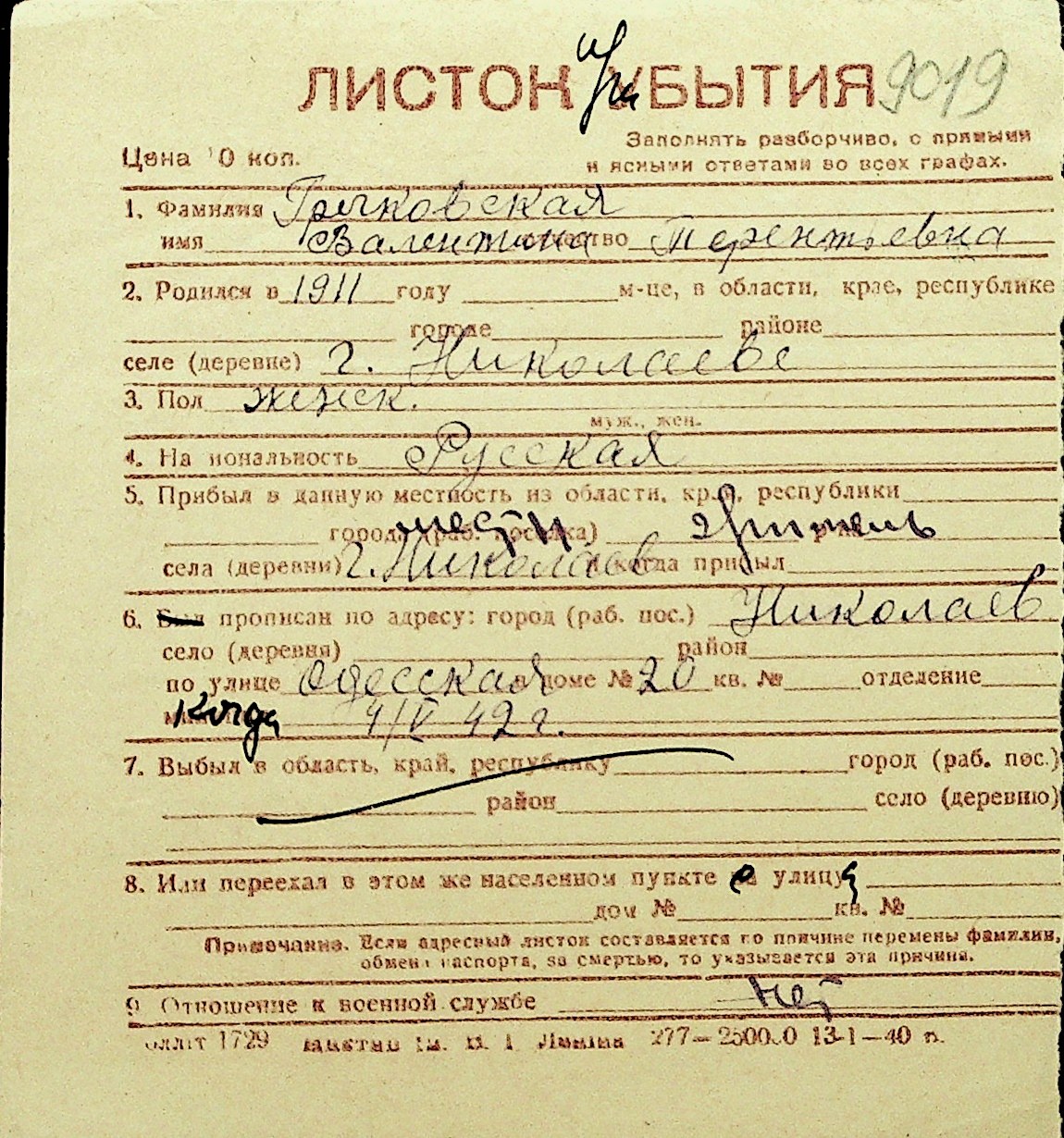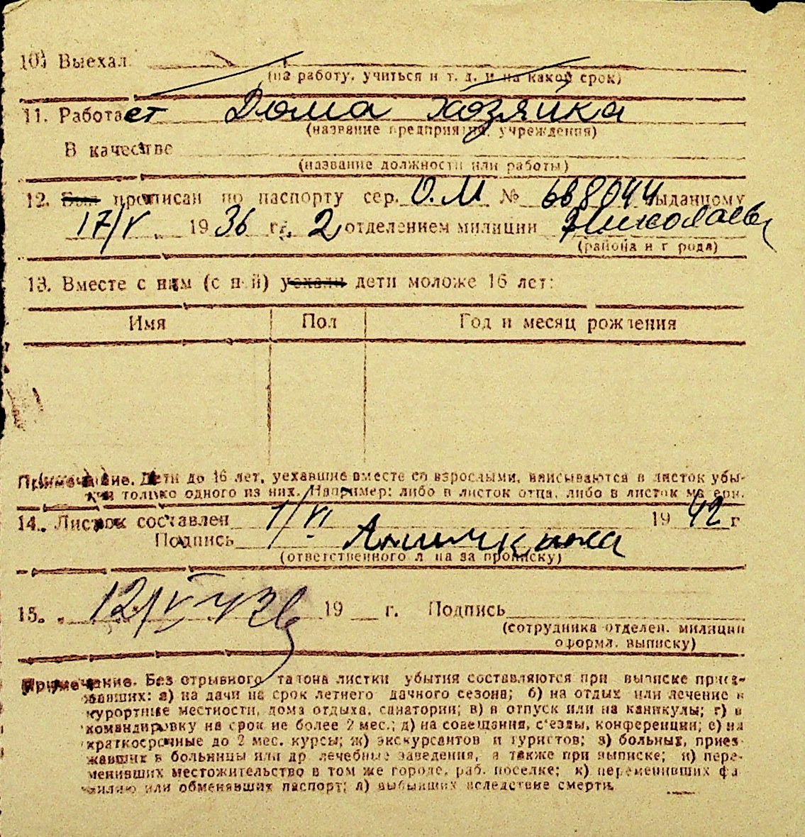 • • Перелік карток до фонду № Н-1016