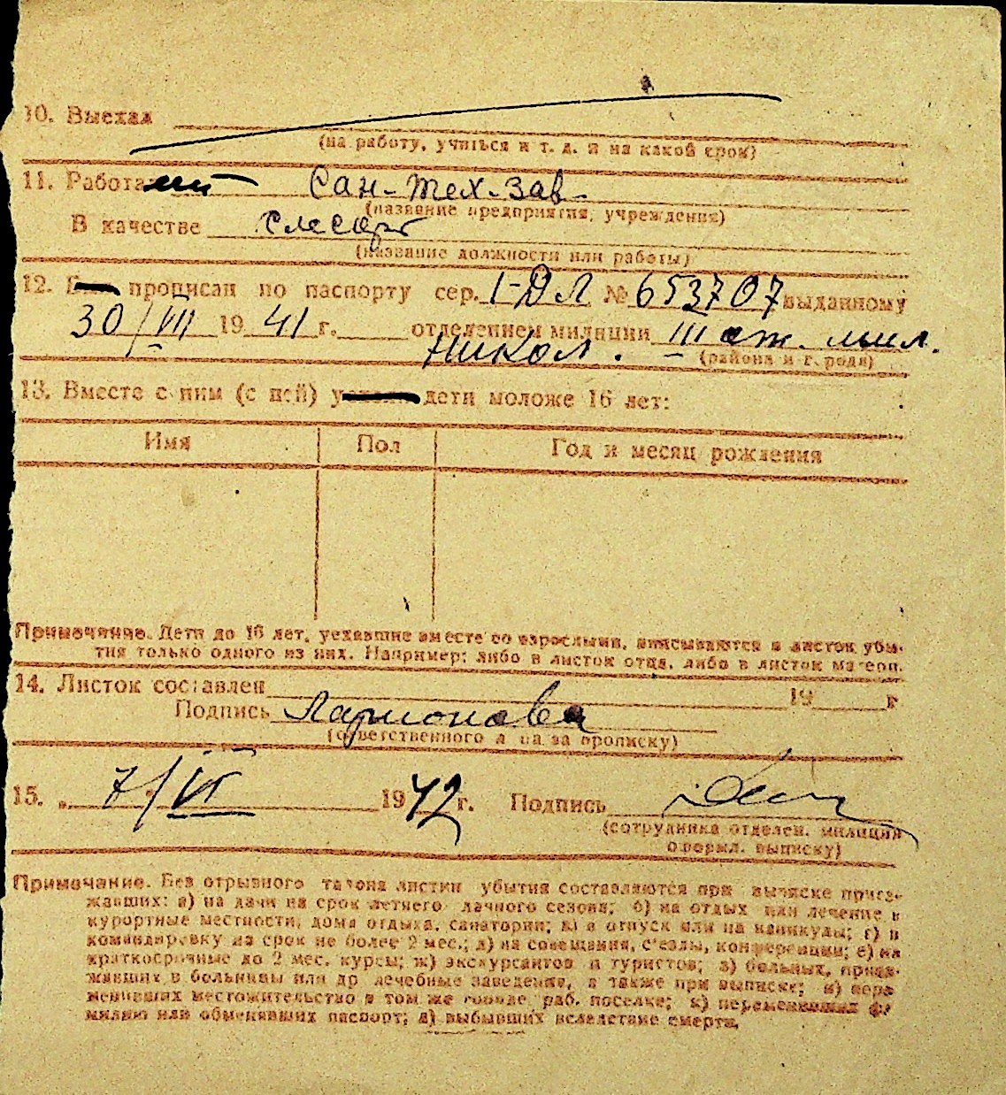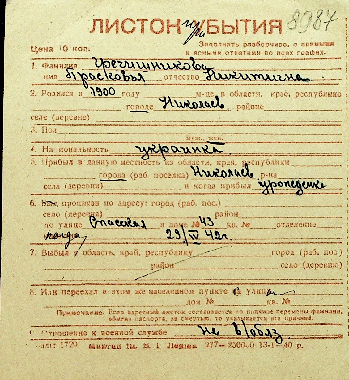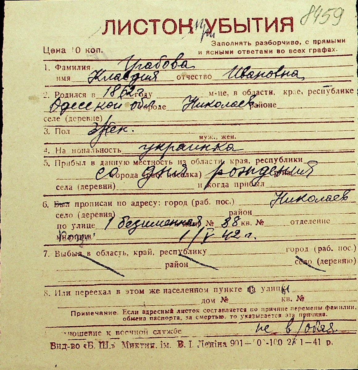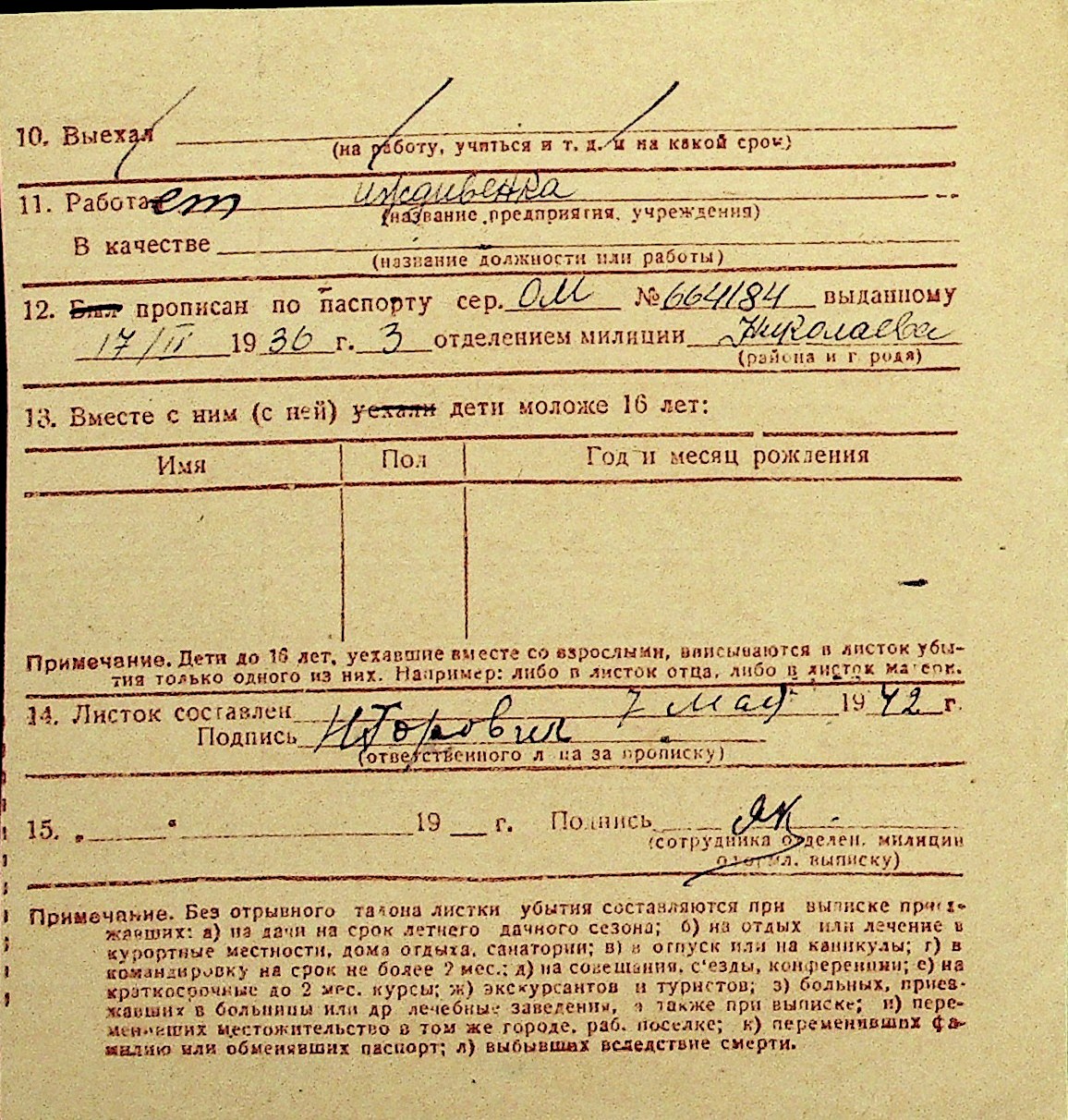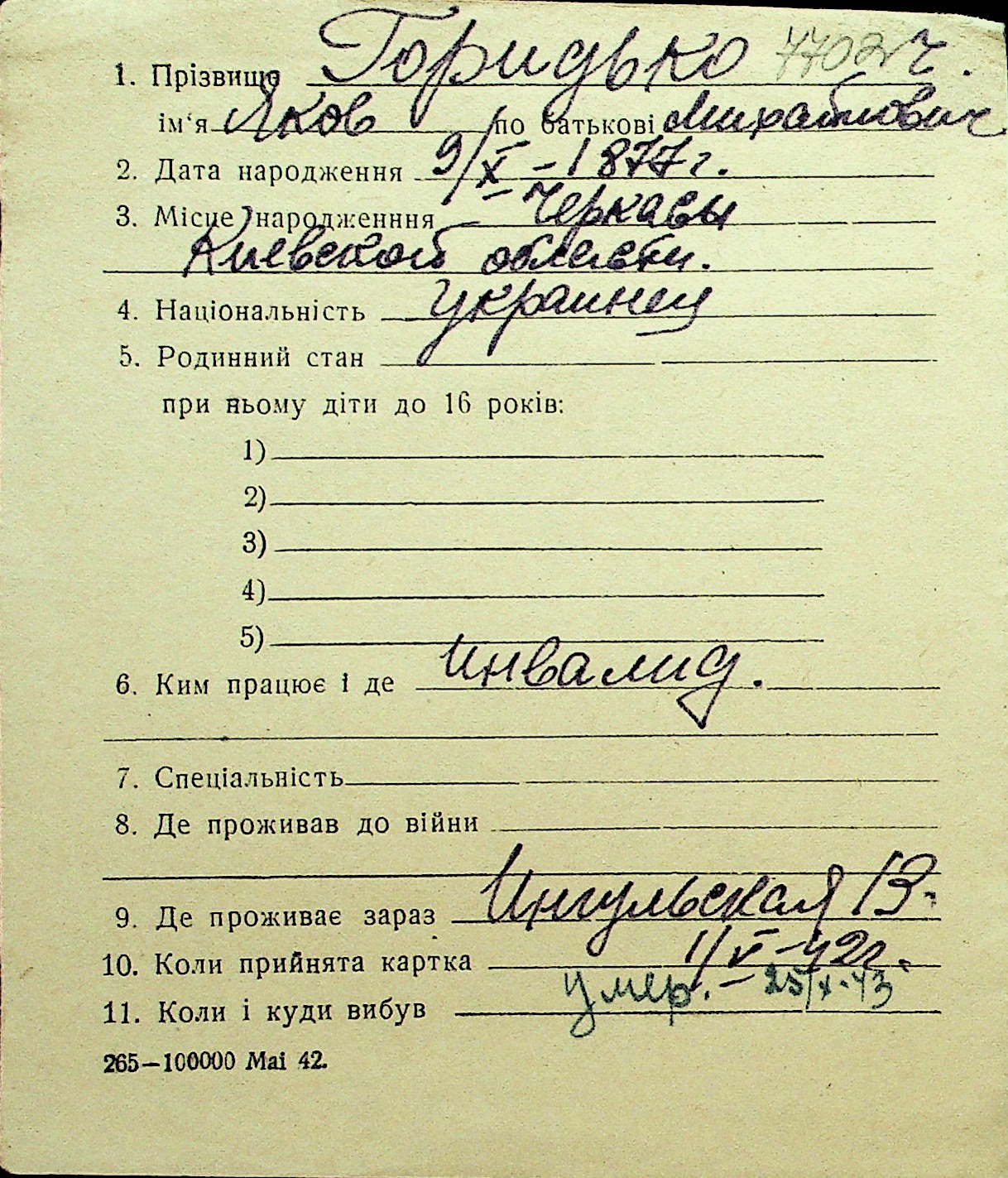• • Перелік карток до фонду № Н-1016
