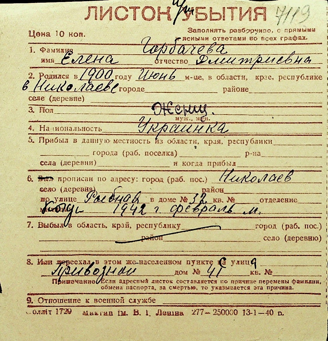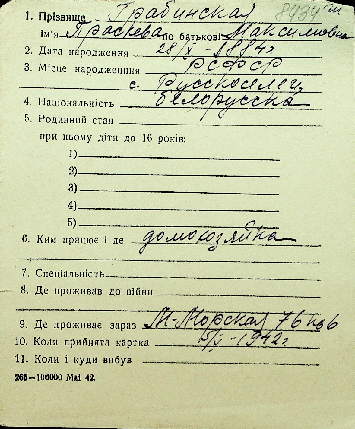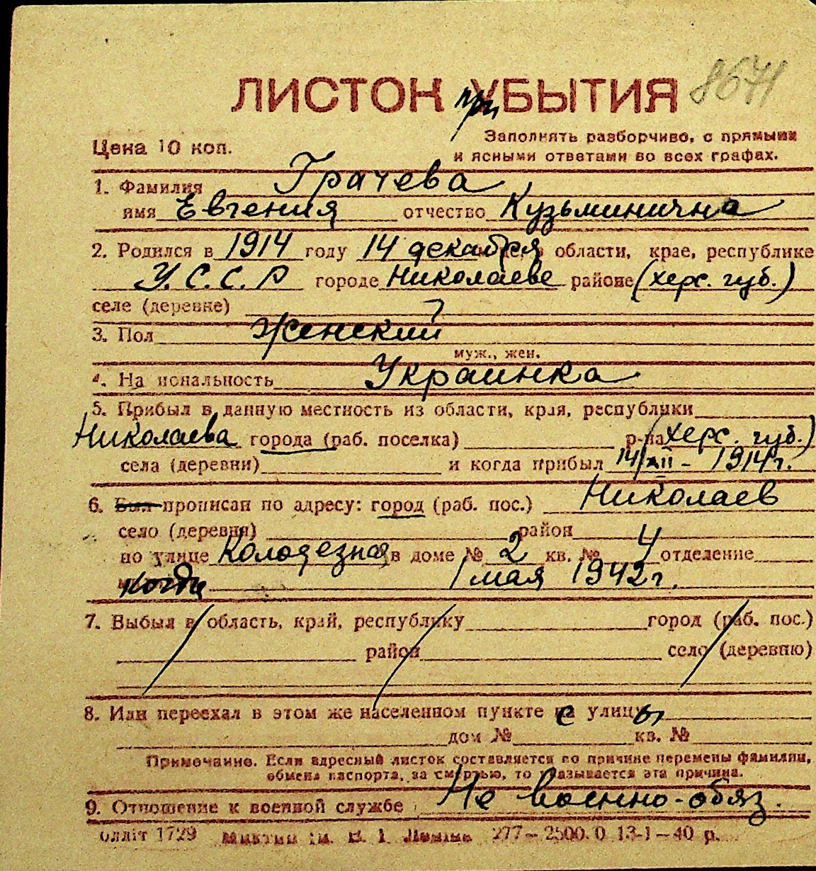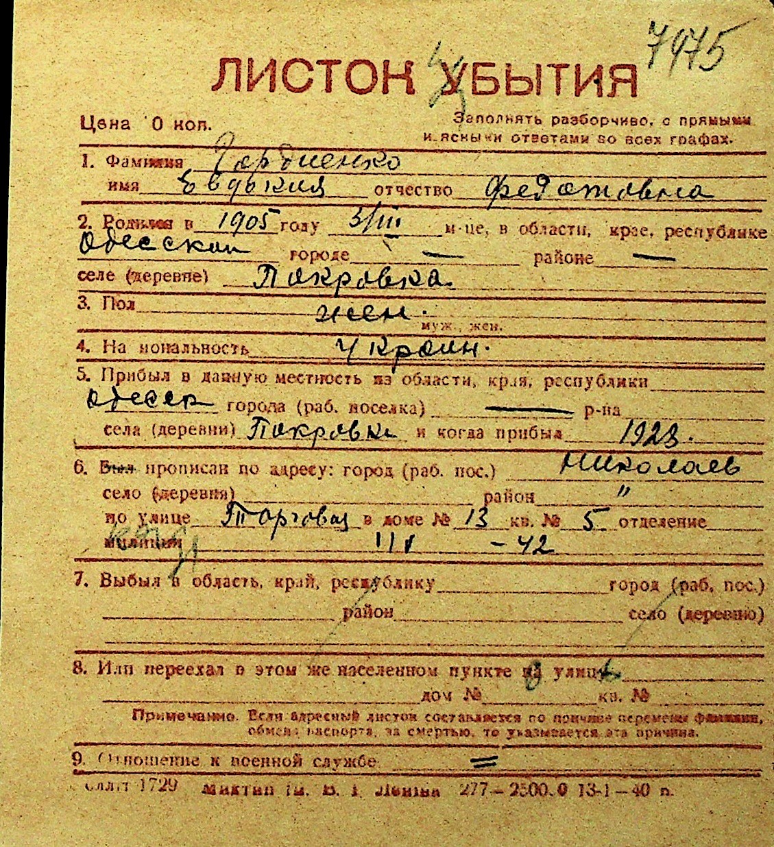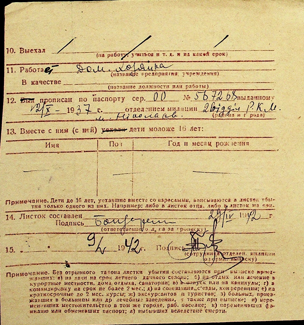 • • Перелік карток до фонду № Н-1016