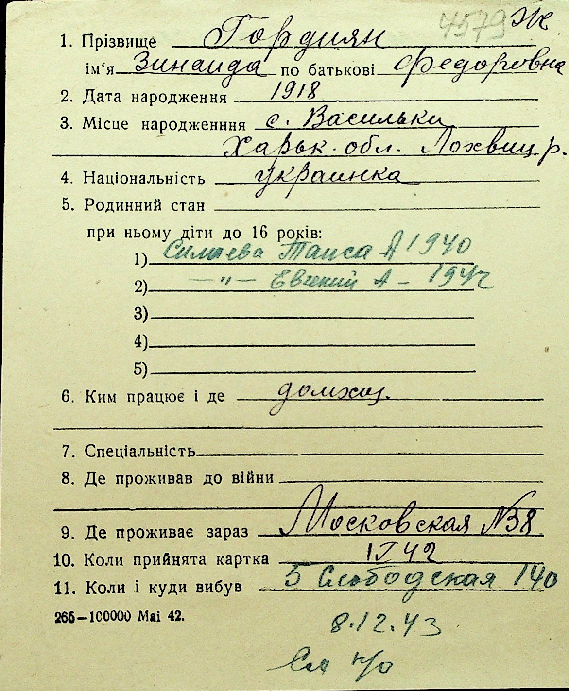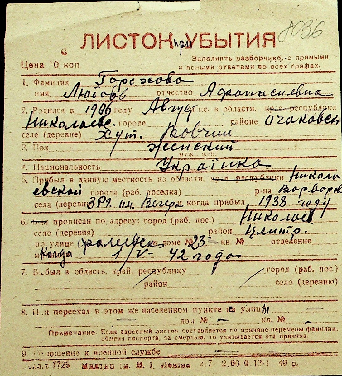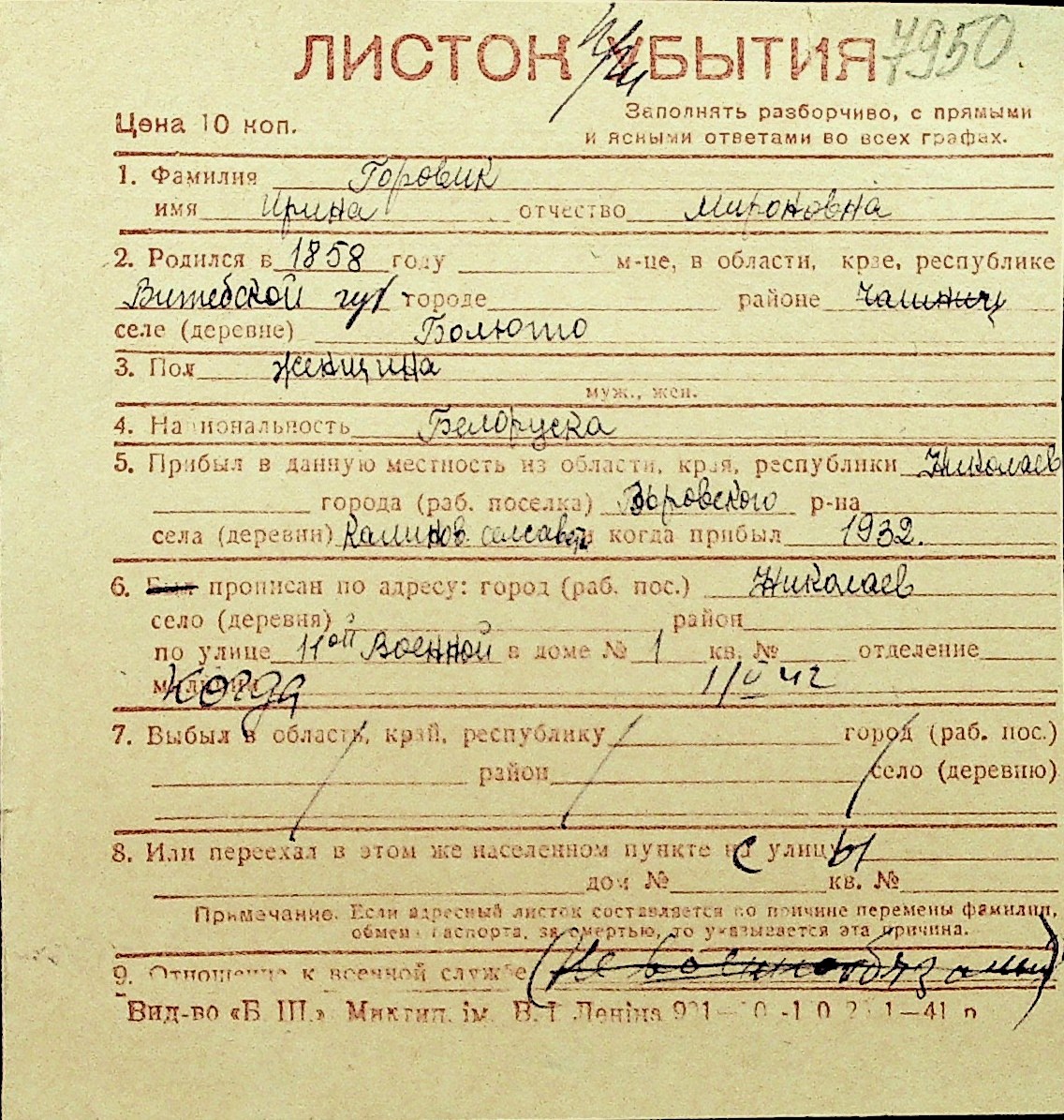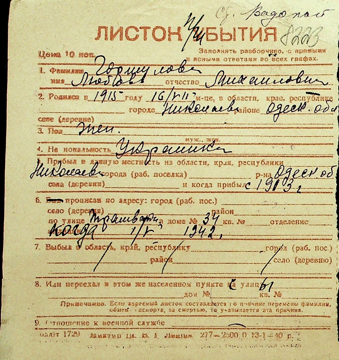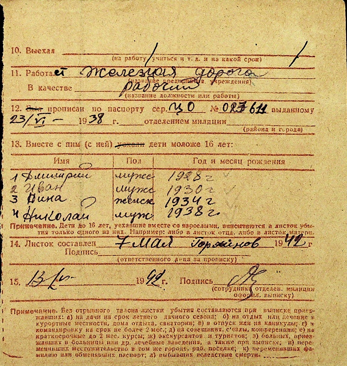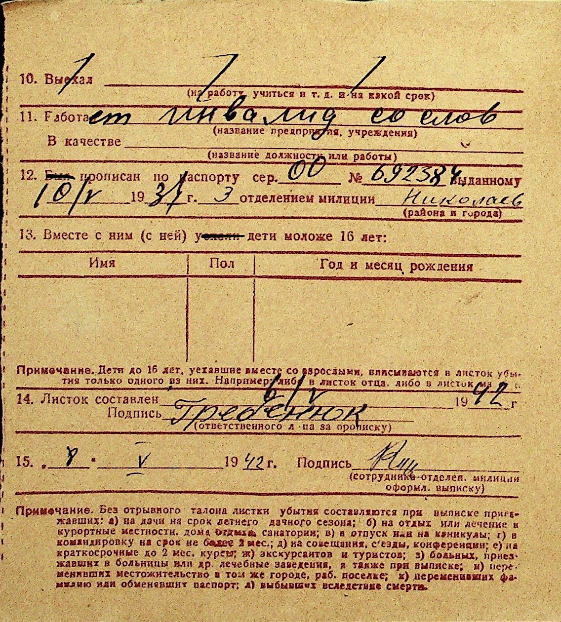 • • Перелік карток до фонду № Н-1016