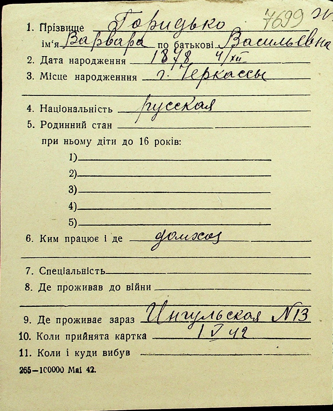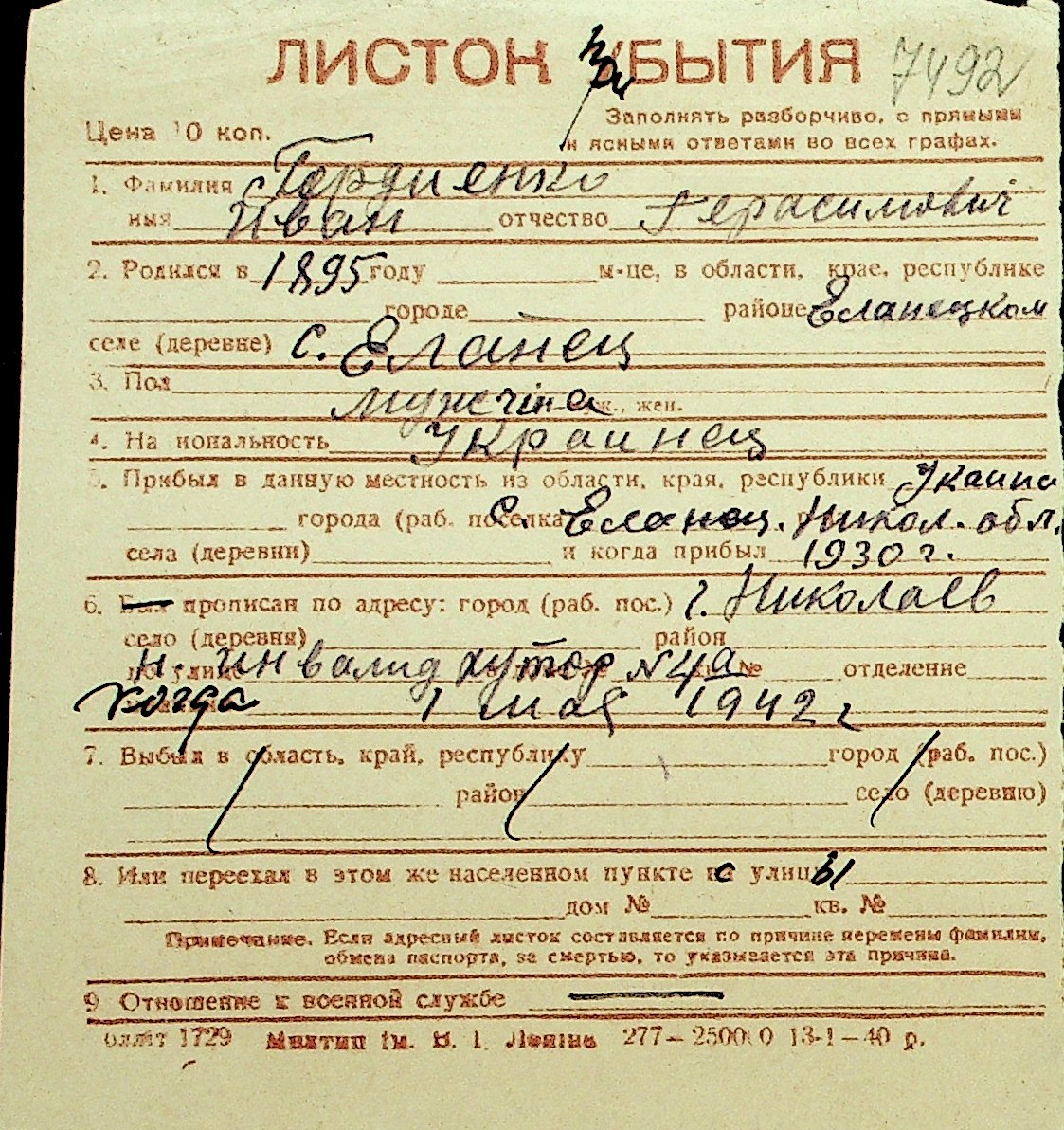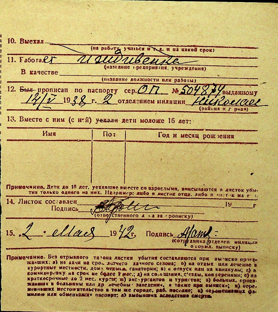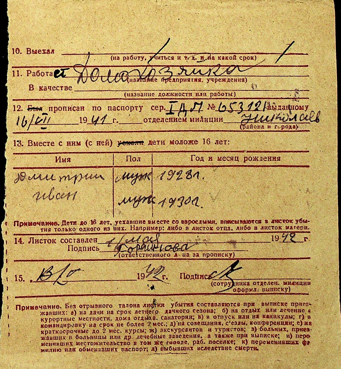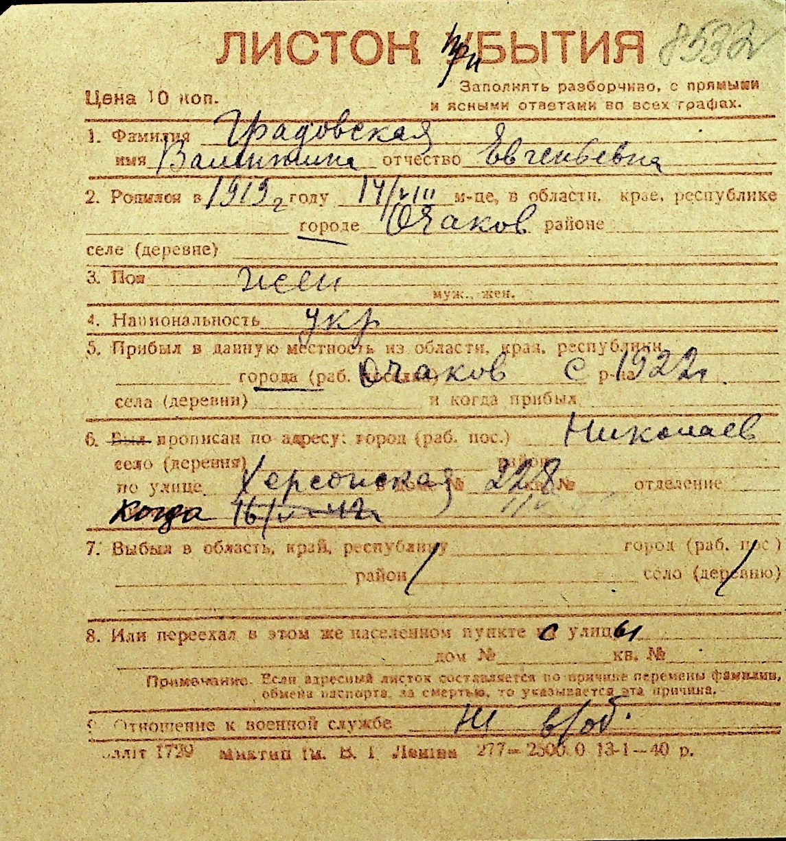 • • Перелік карток до фонду № Н-1016