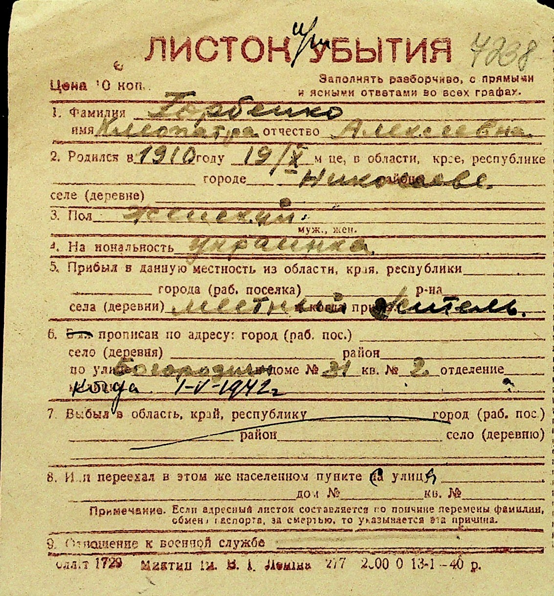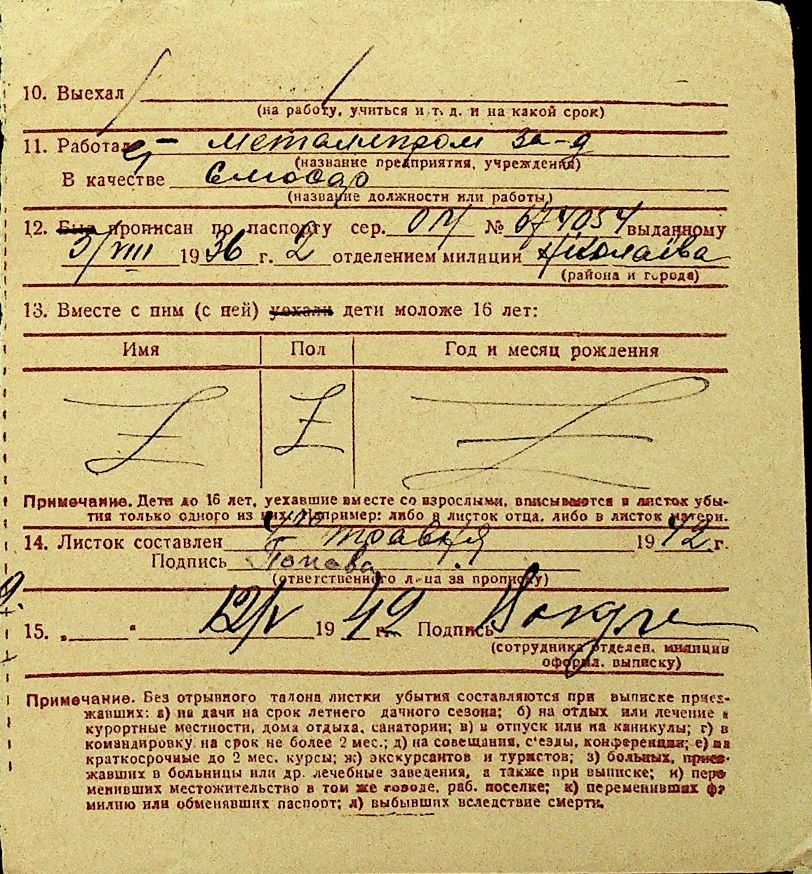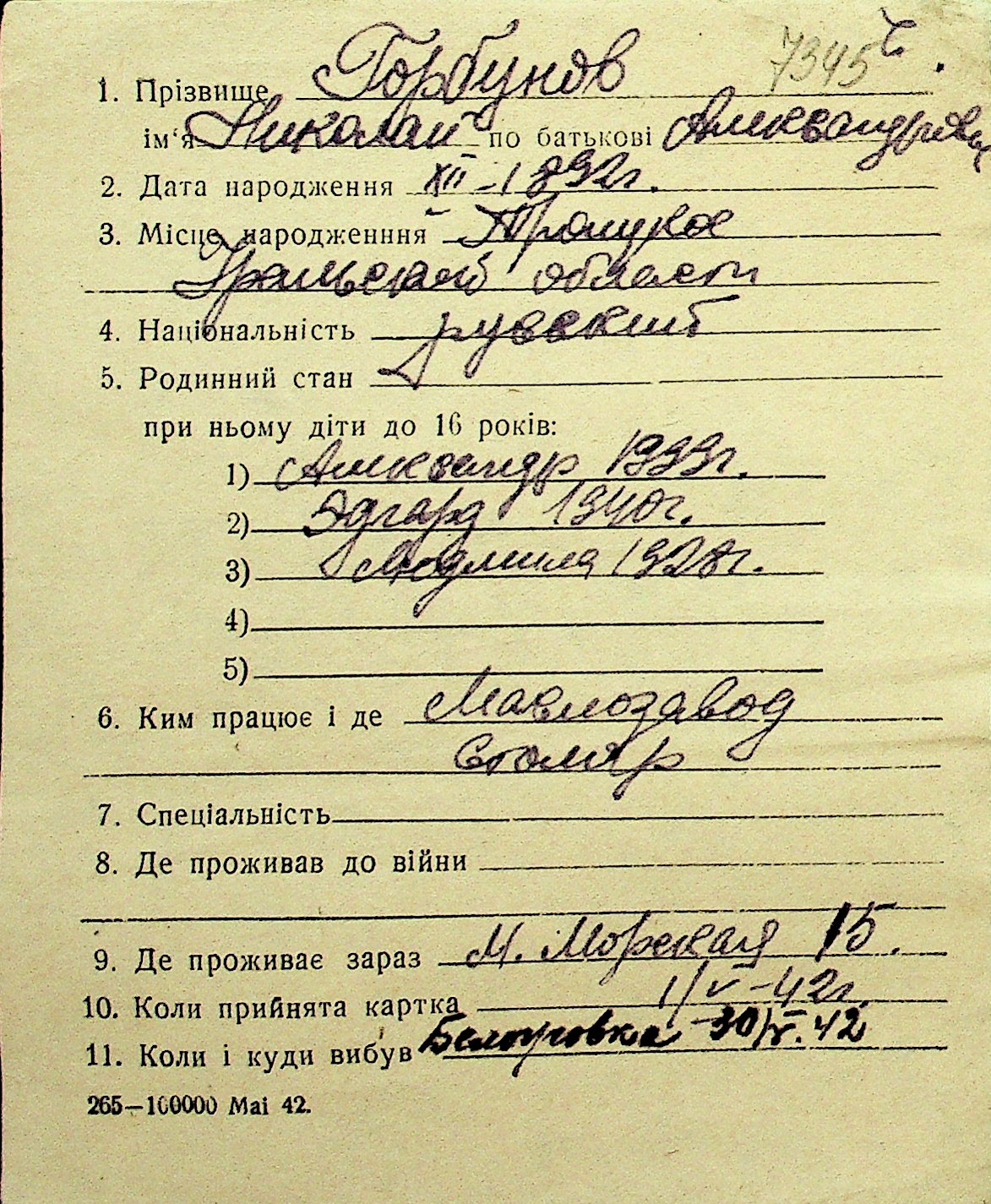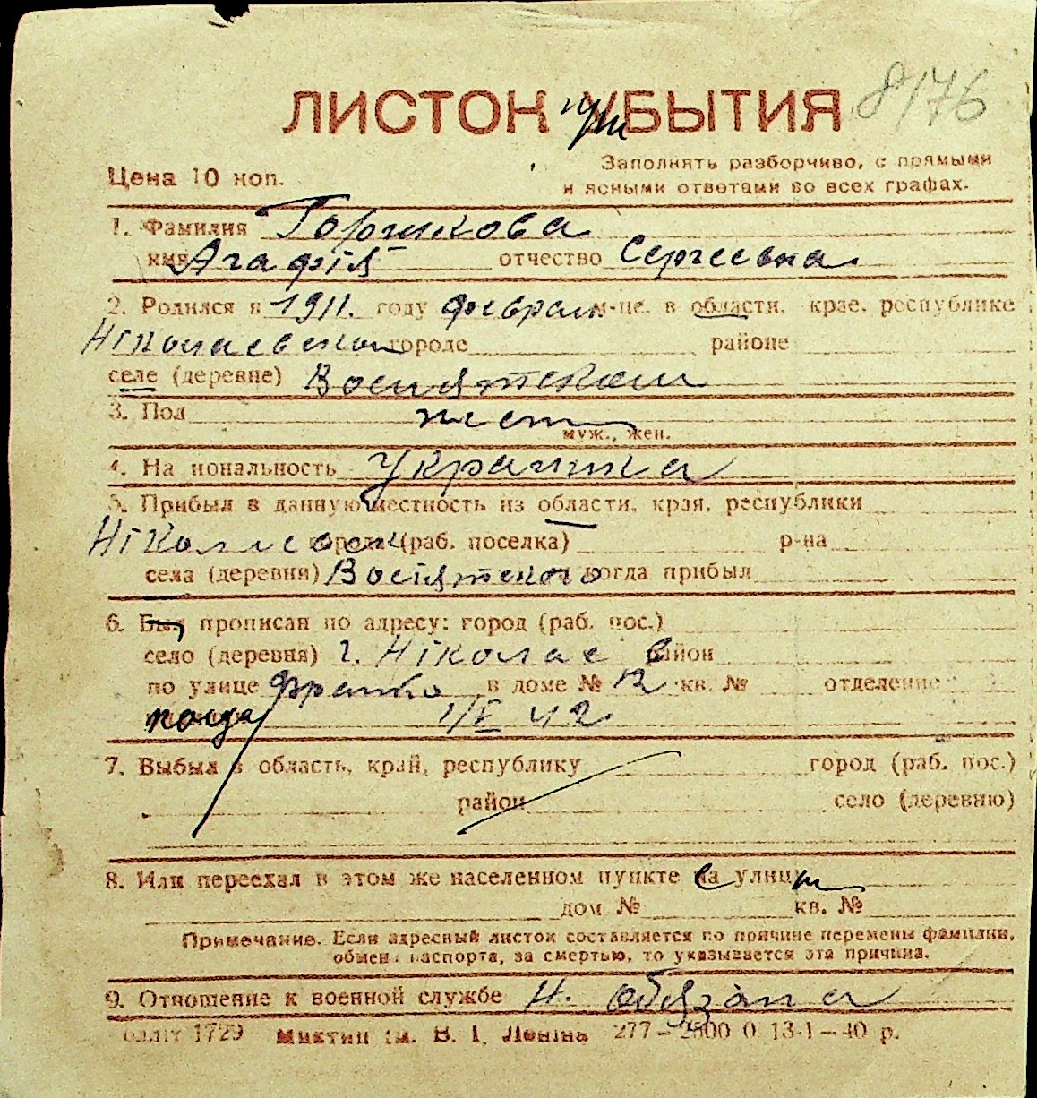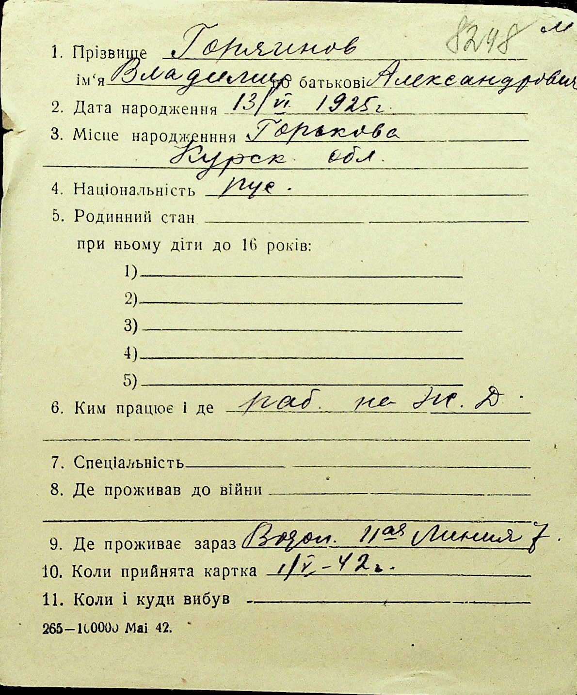 • • Перелік карток до фонду № Н-1016