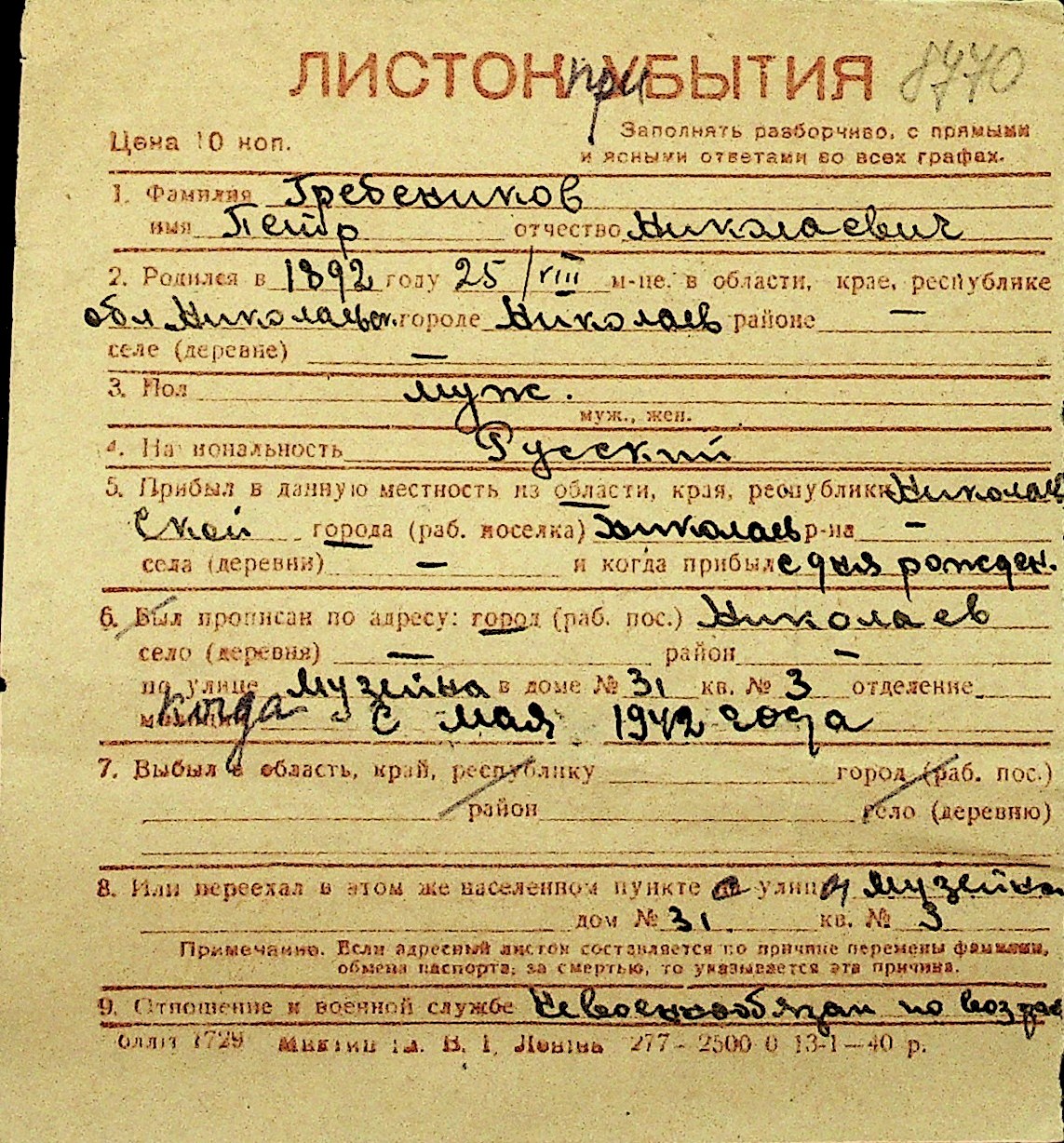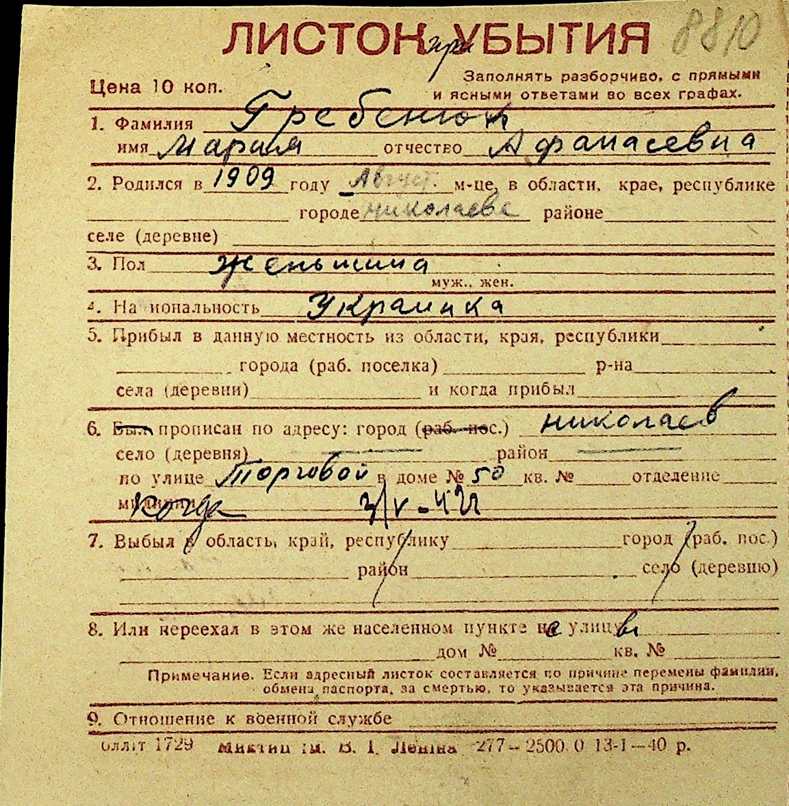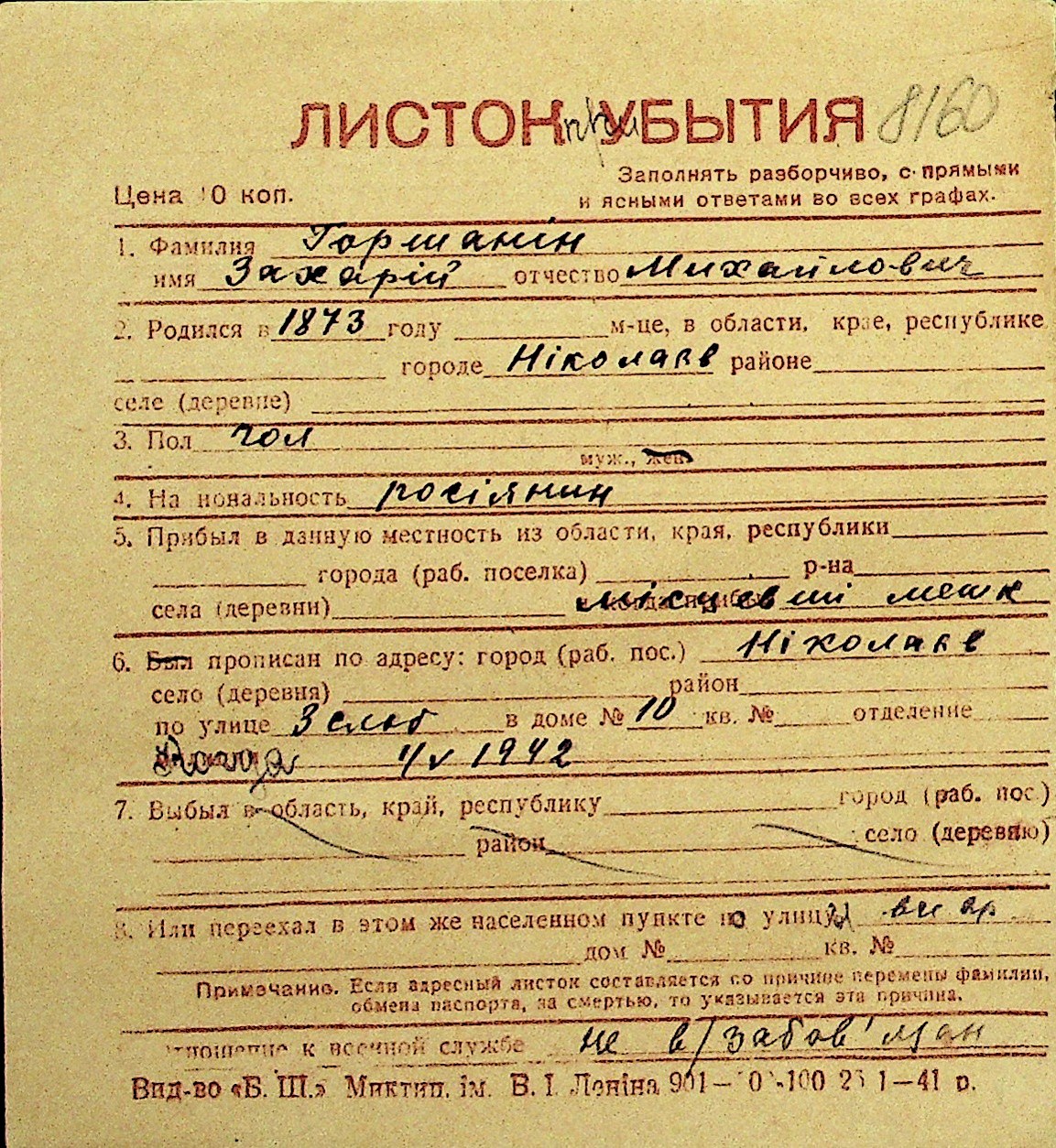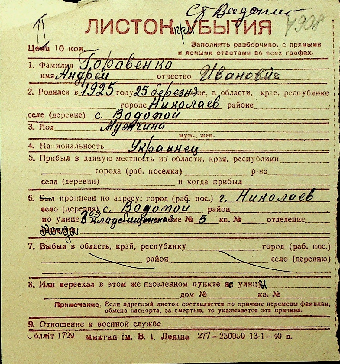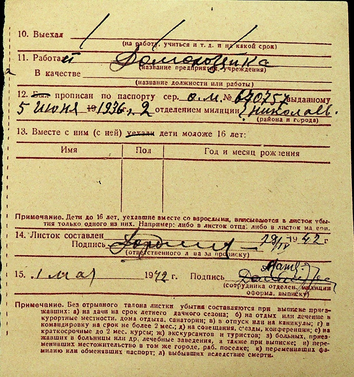 • • Перелік карток до фонду № Н-1016