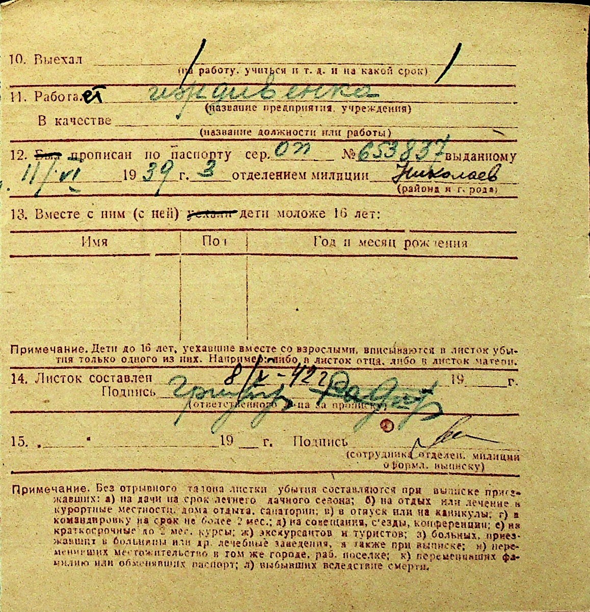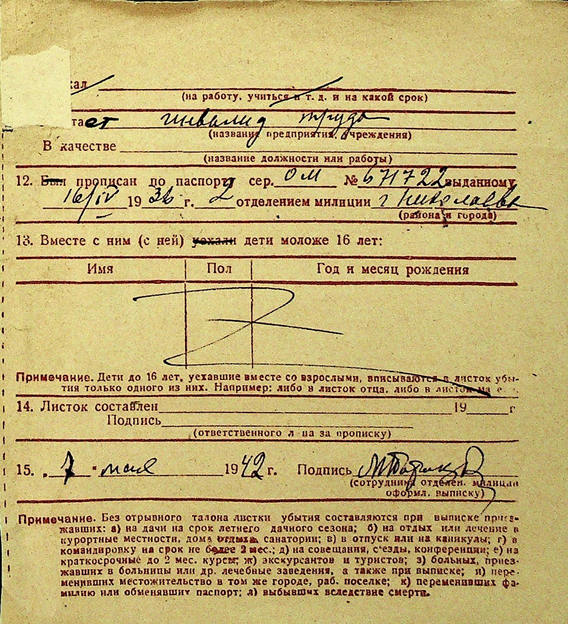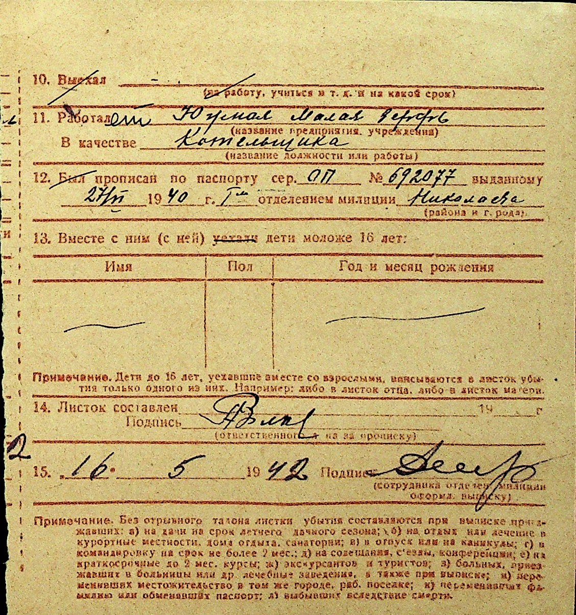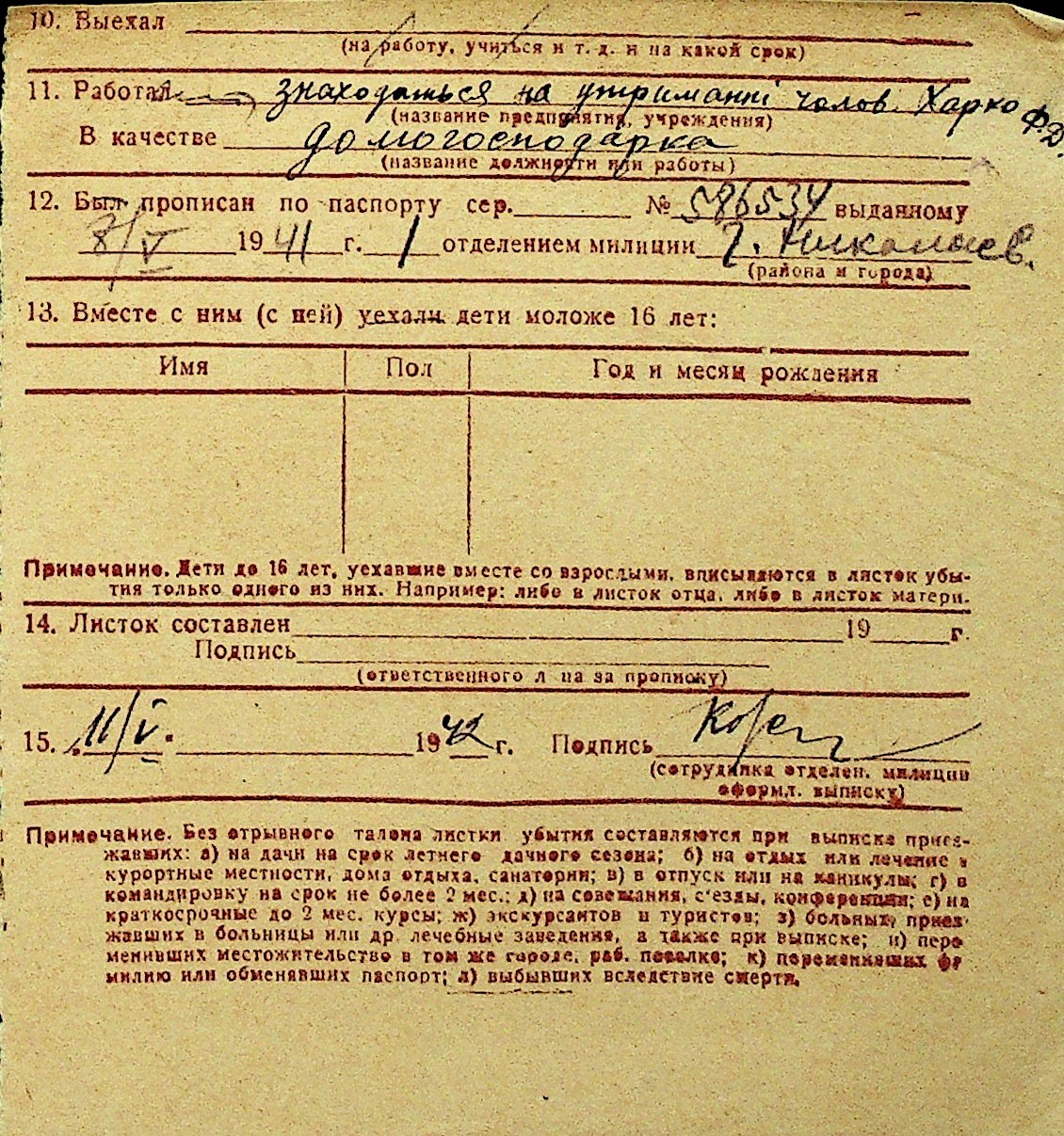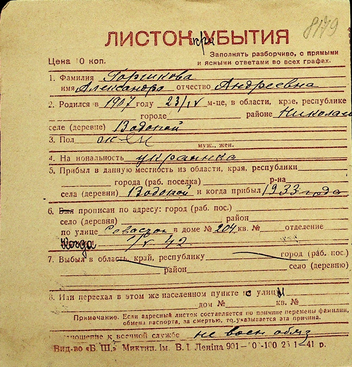 • • Перелік карток до фонду № Н-1016