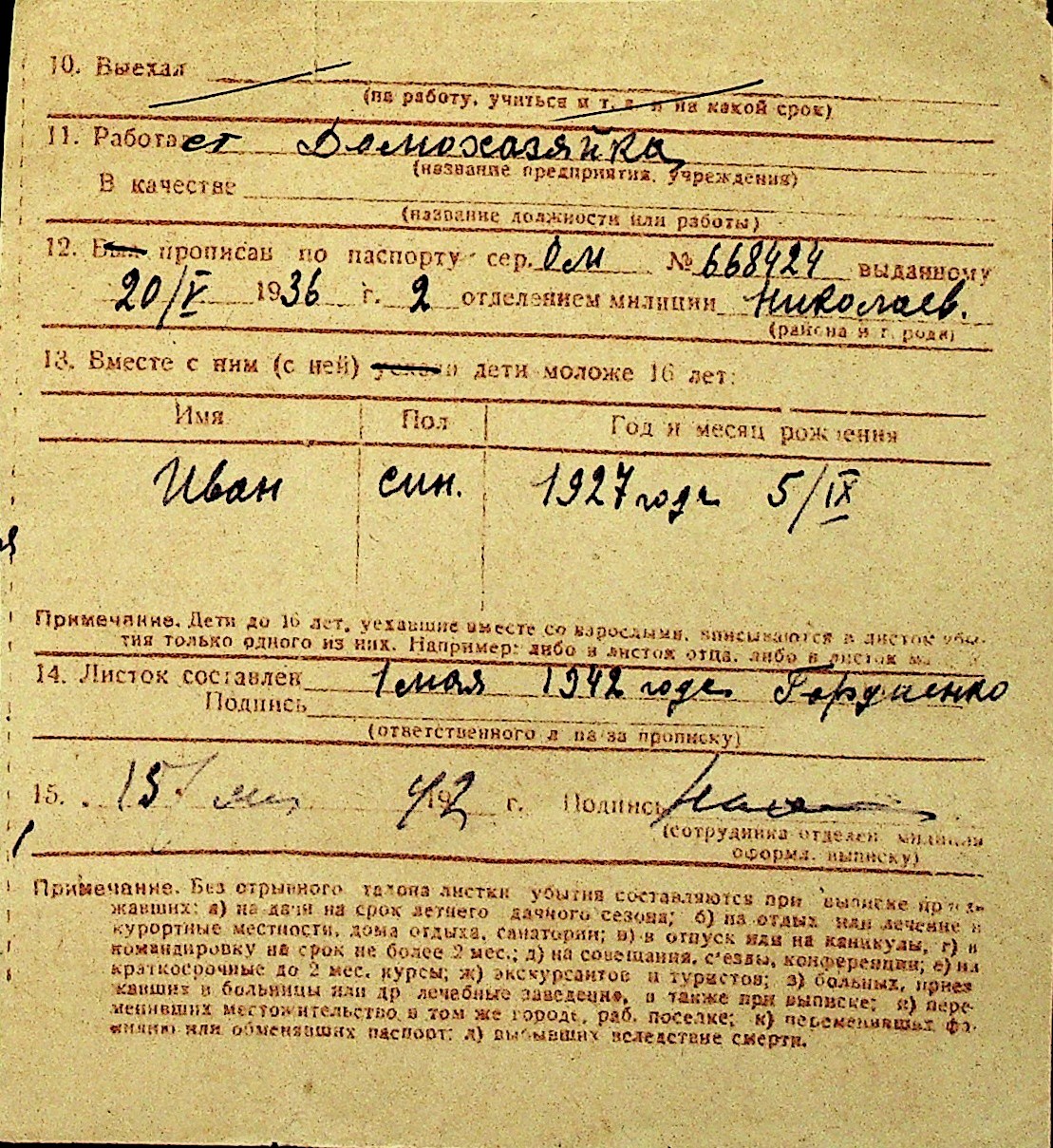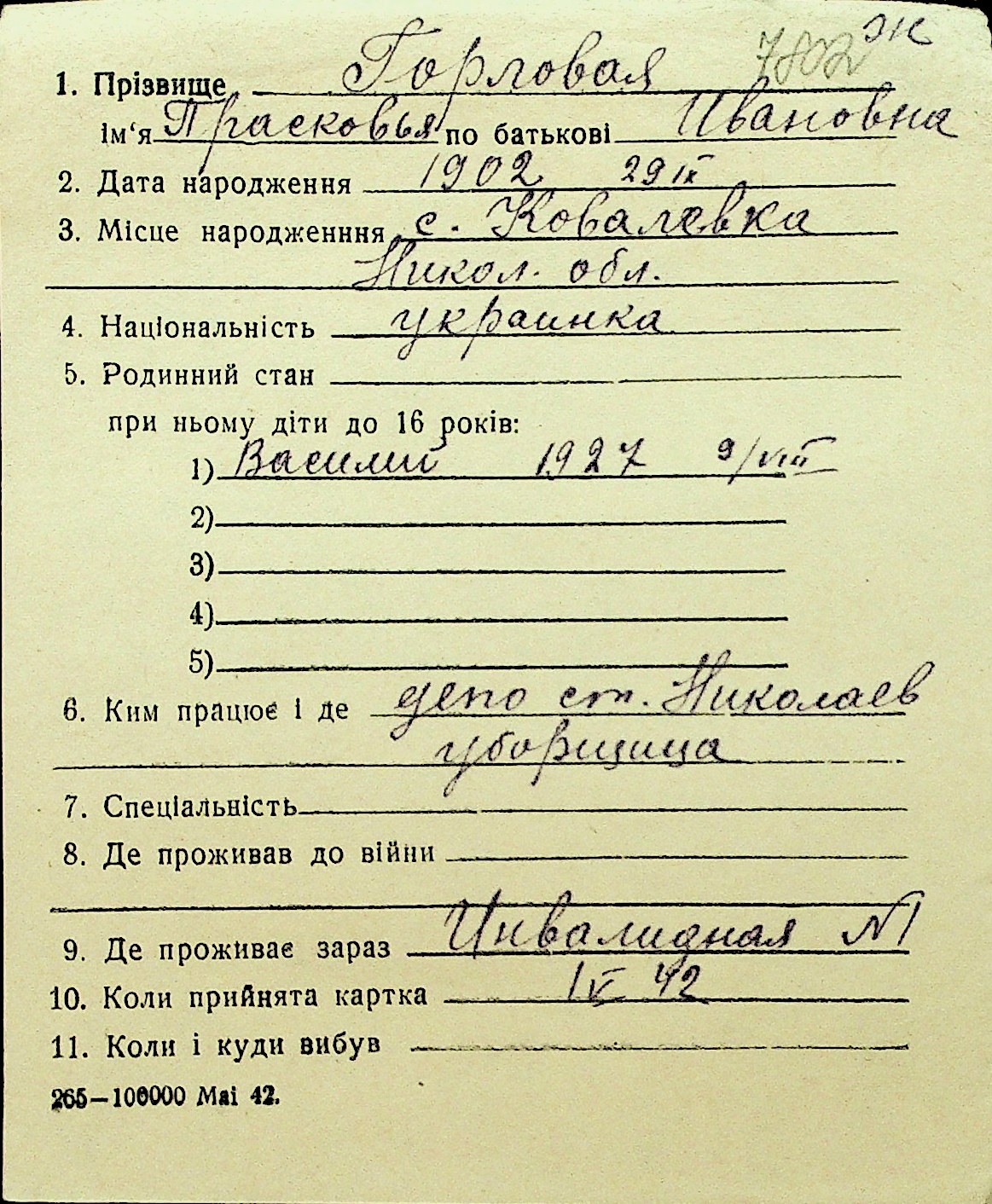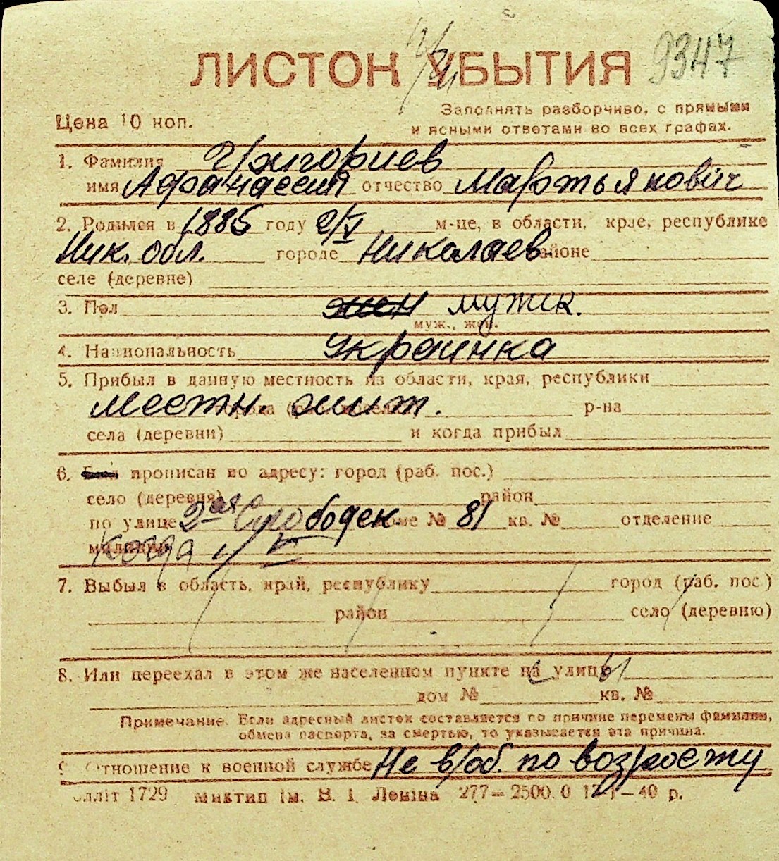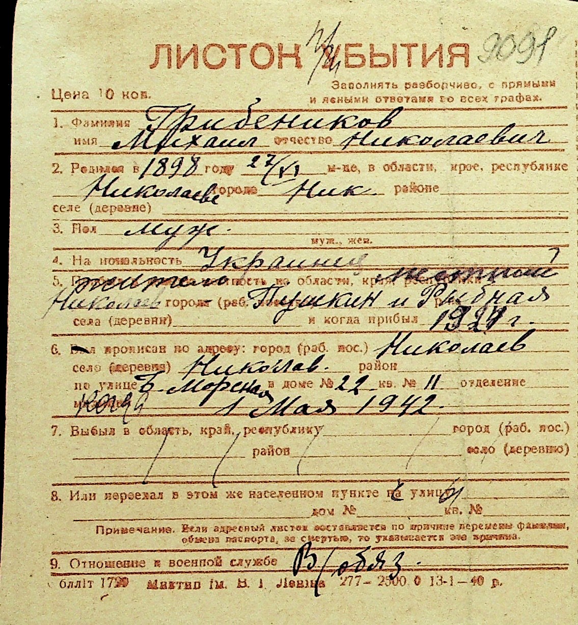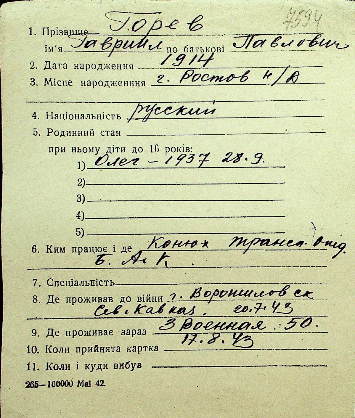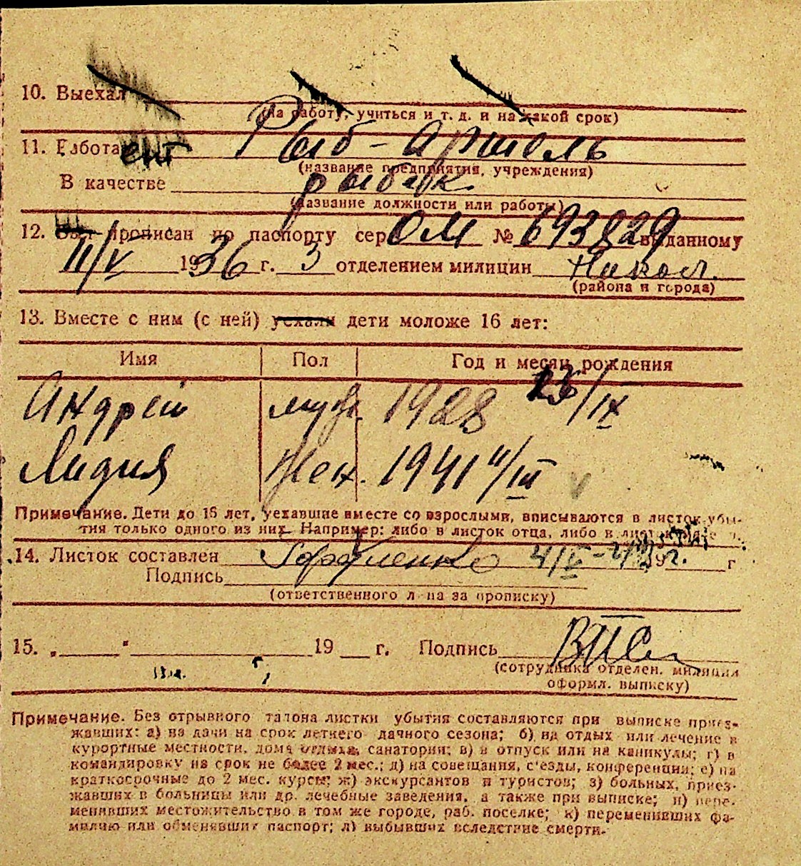• • Перелік карток до фонду № Н-1016