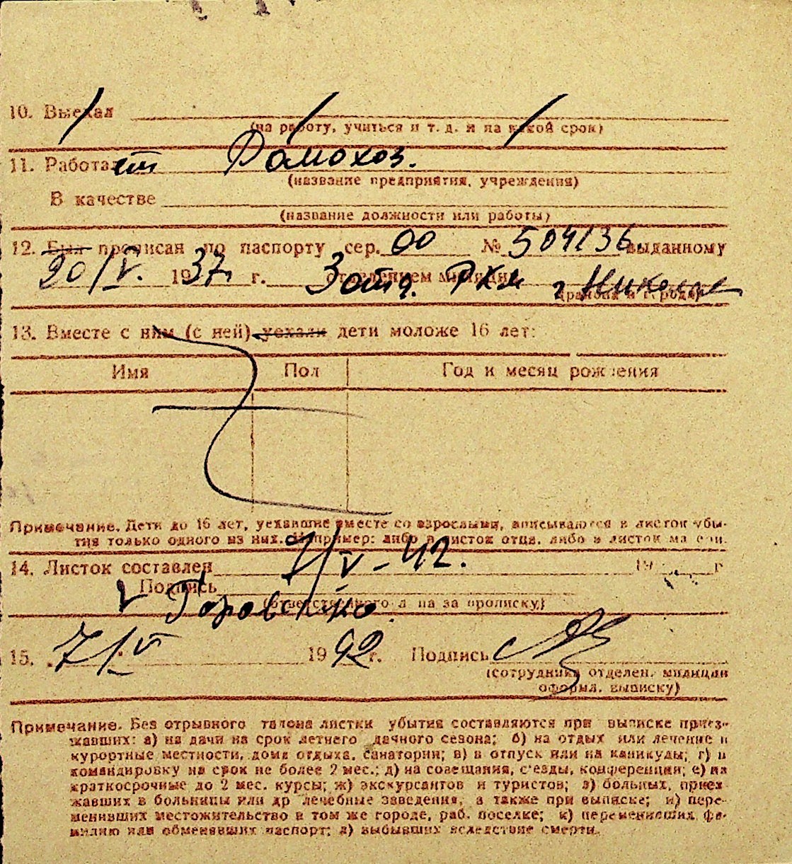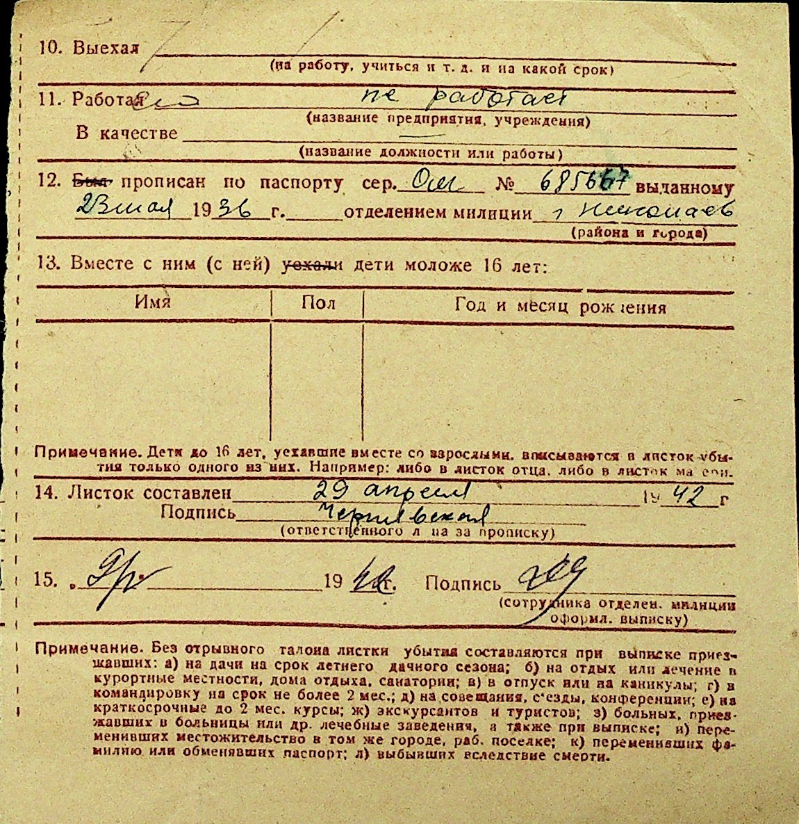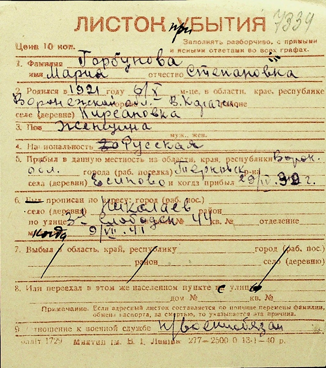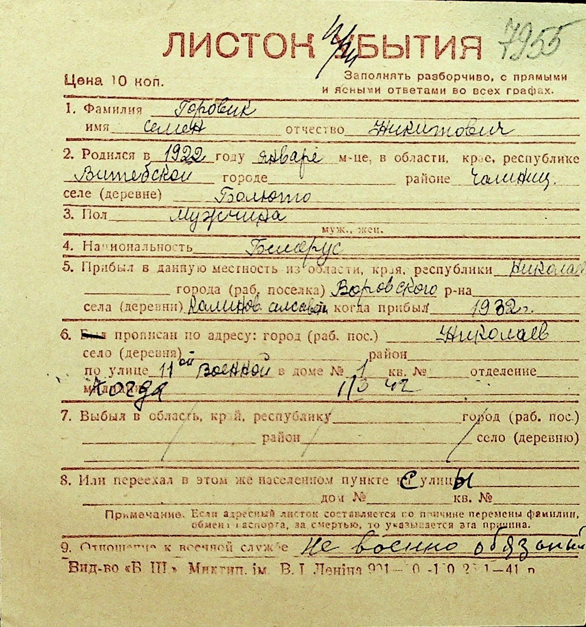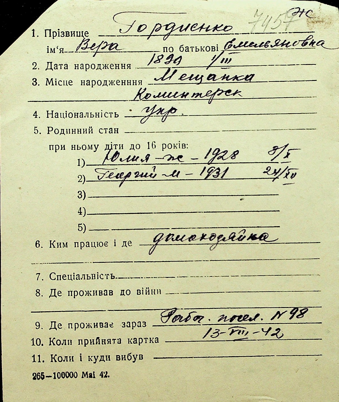 • • Перелік карток до фонду № Н-1016