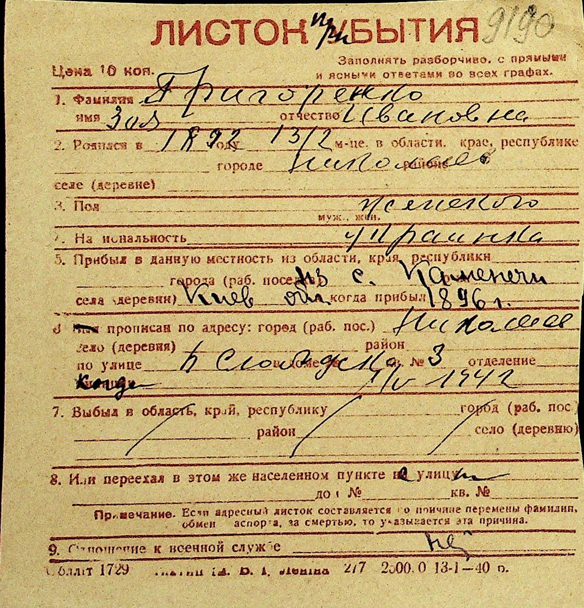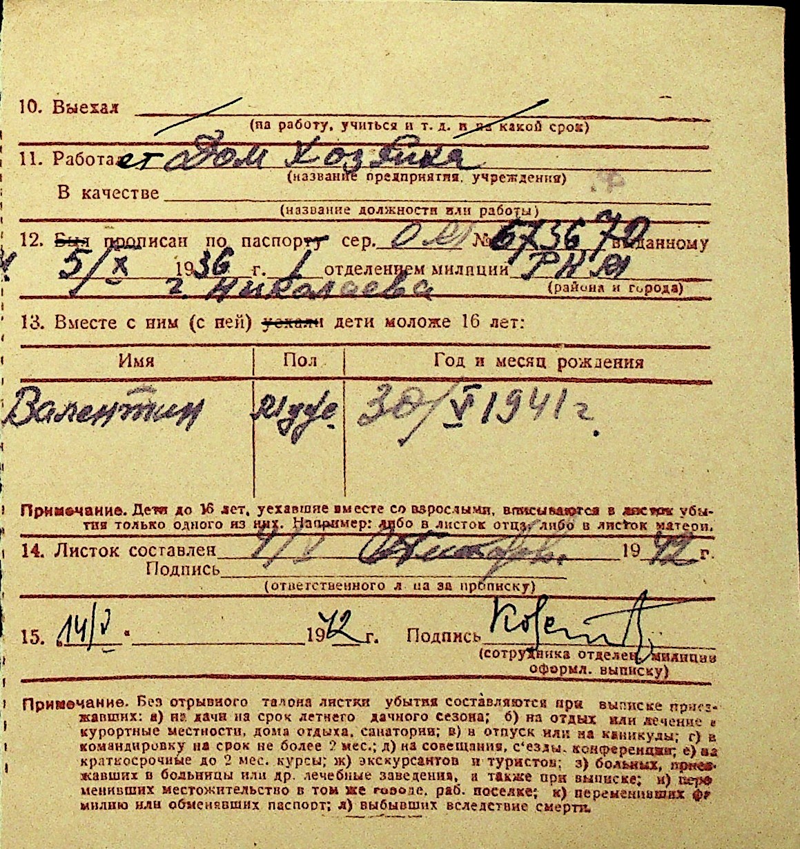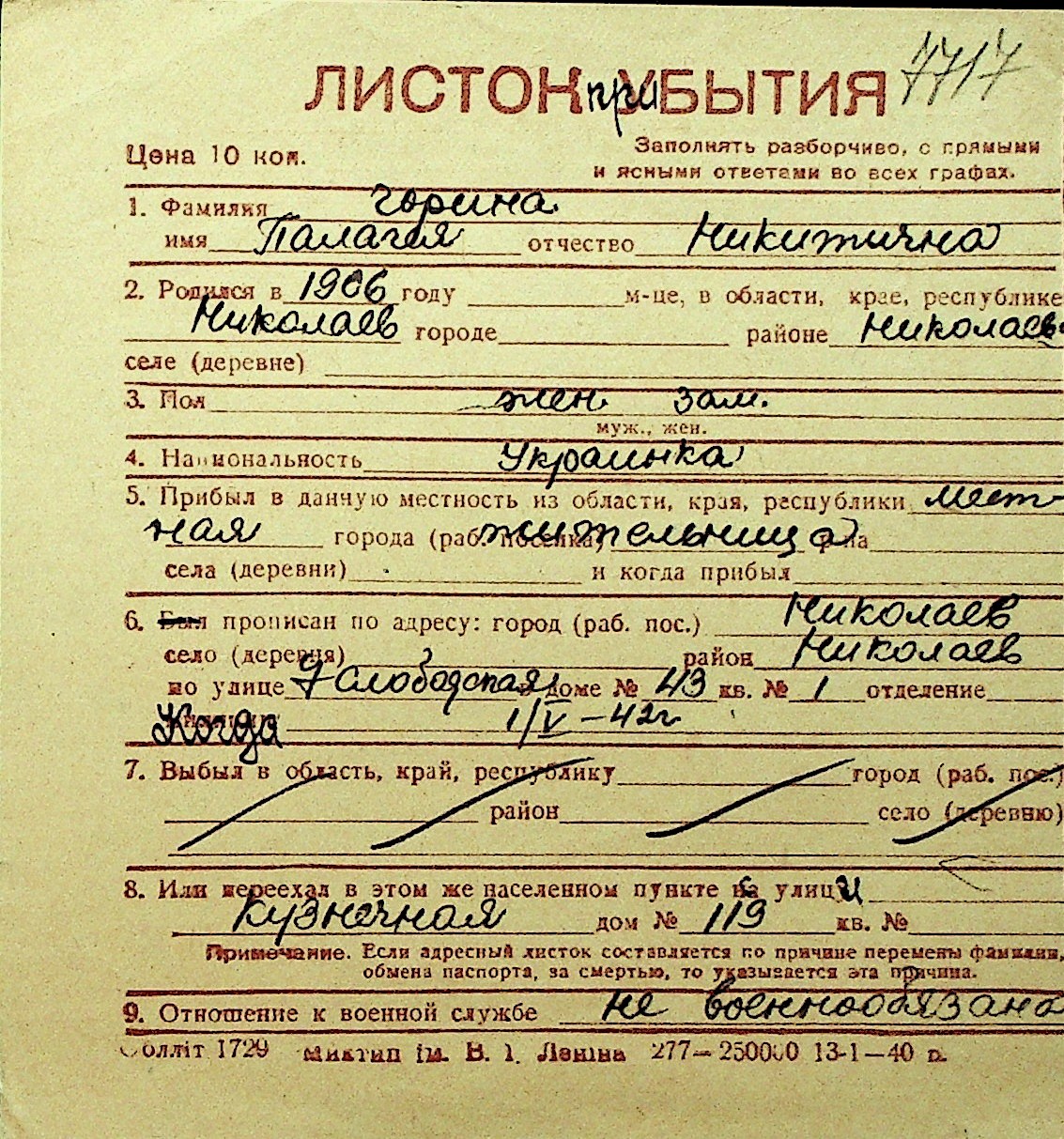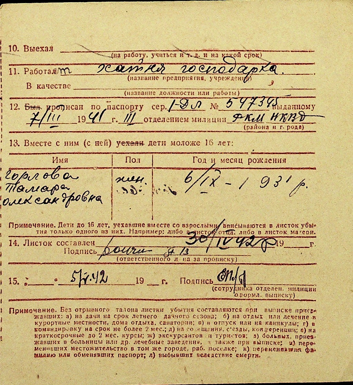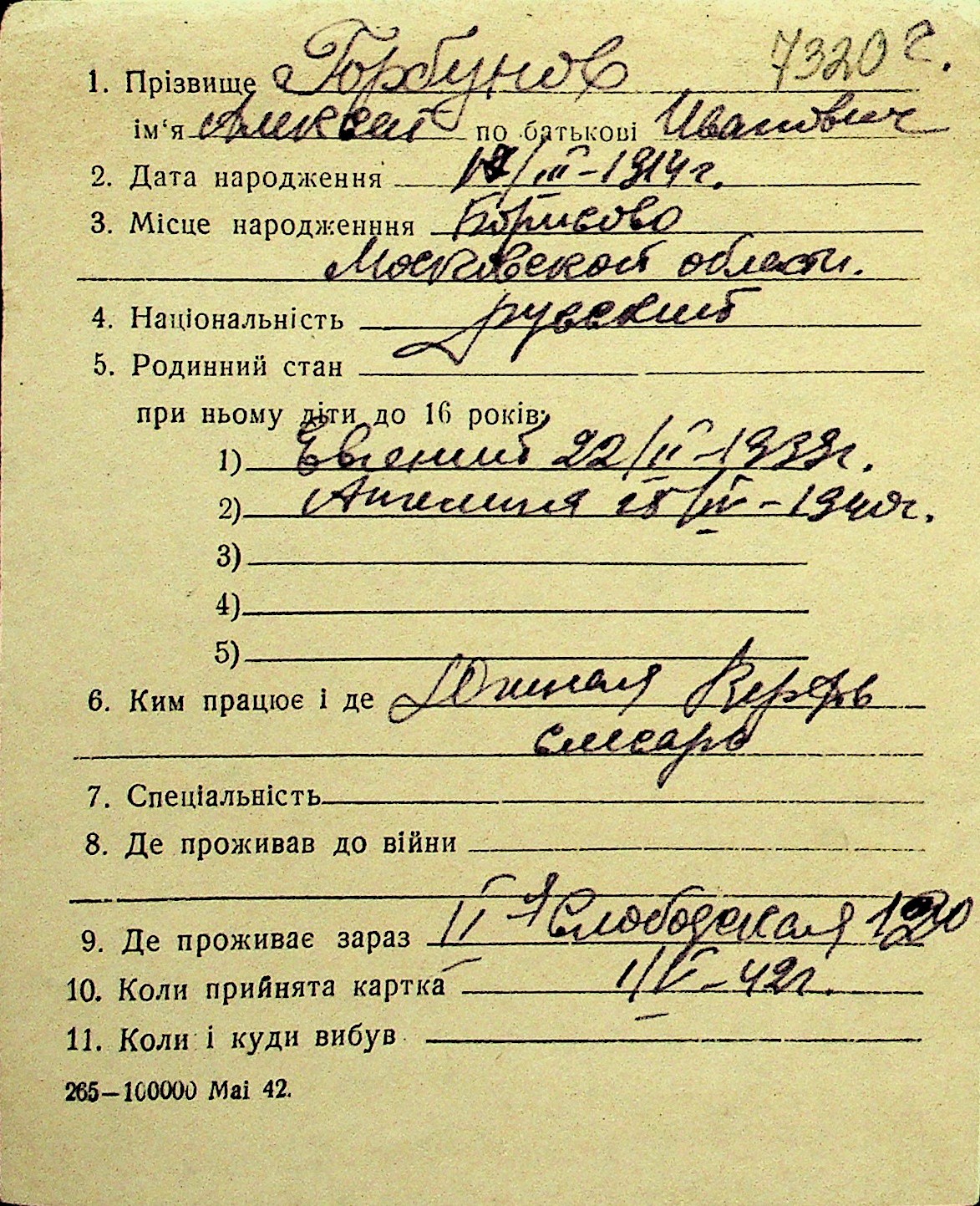 • • Перелік карток до фонду № Н-1016