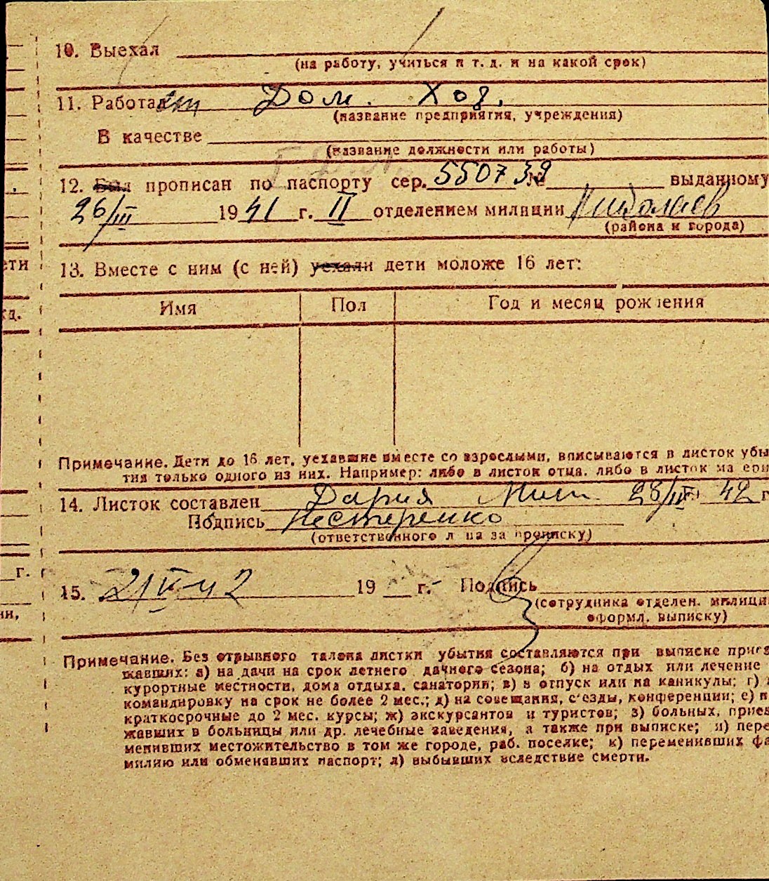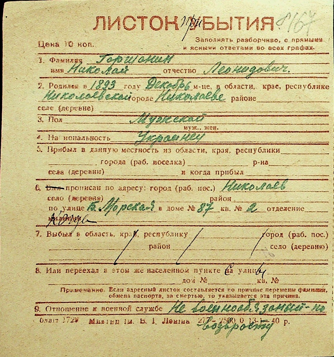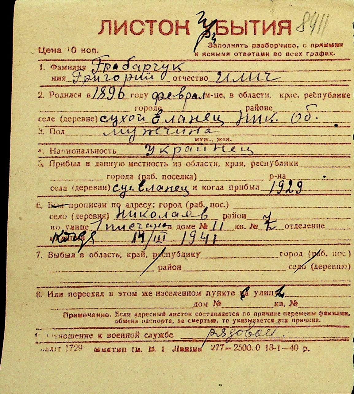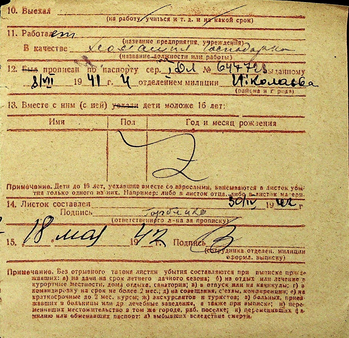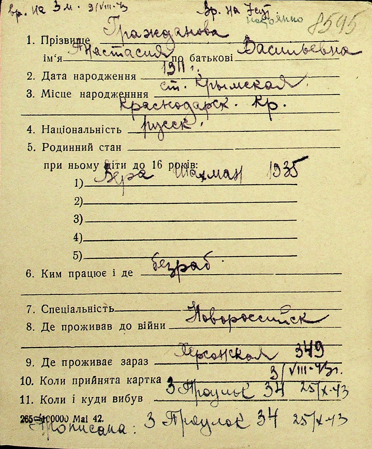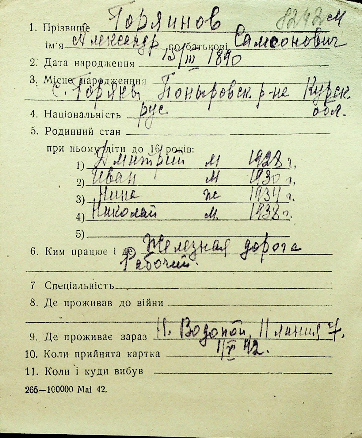 • • Перелік карток до фонду № Н-1016
