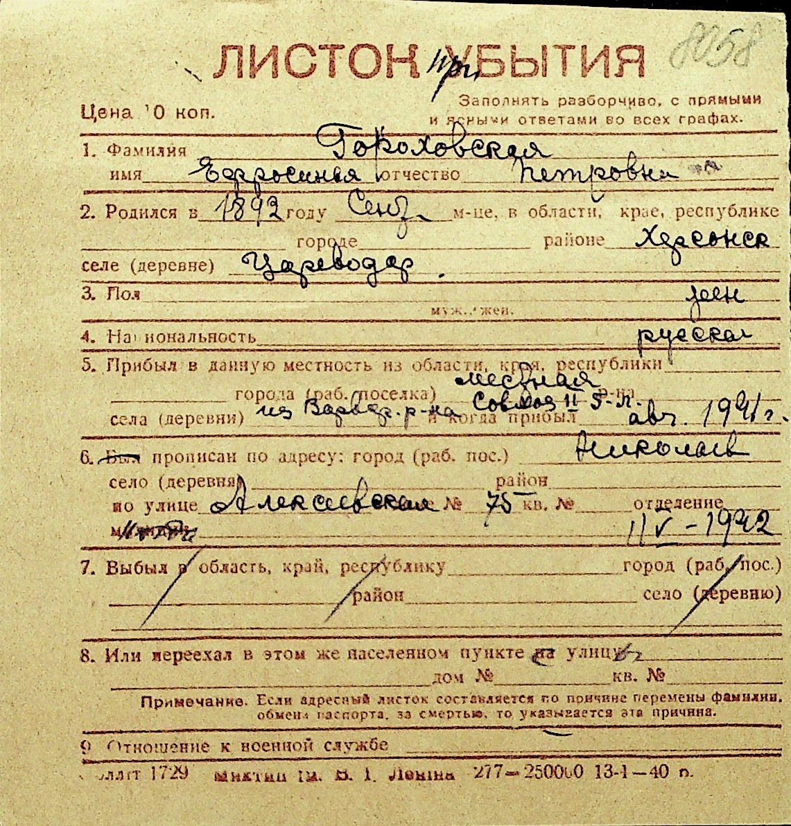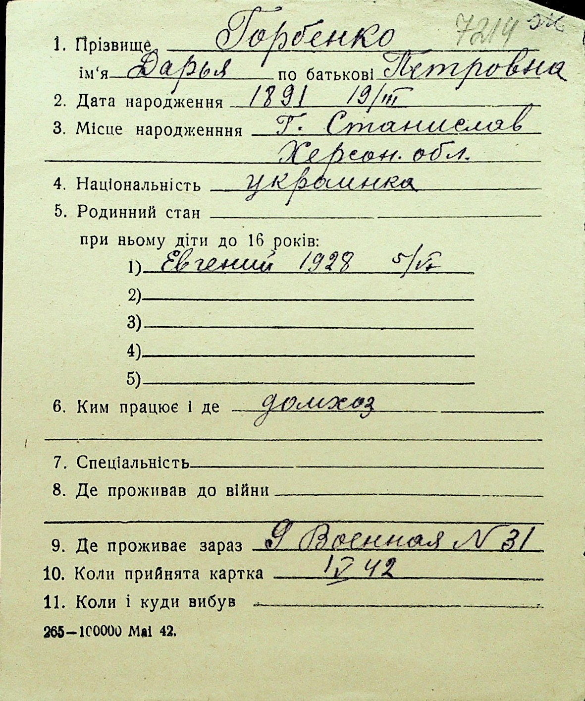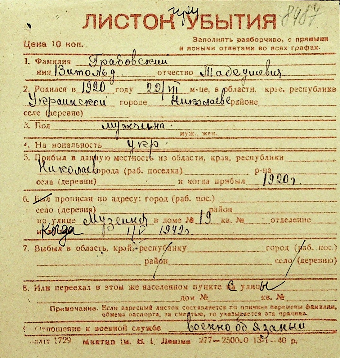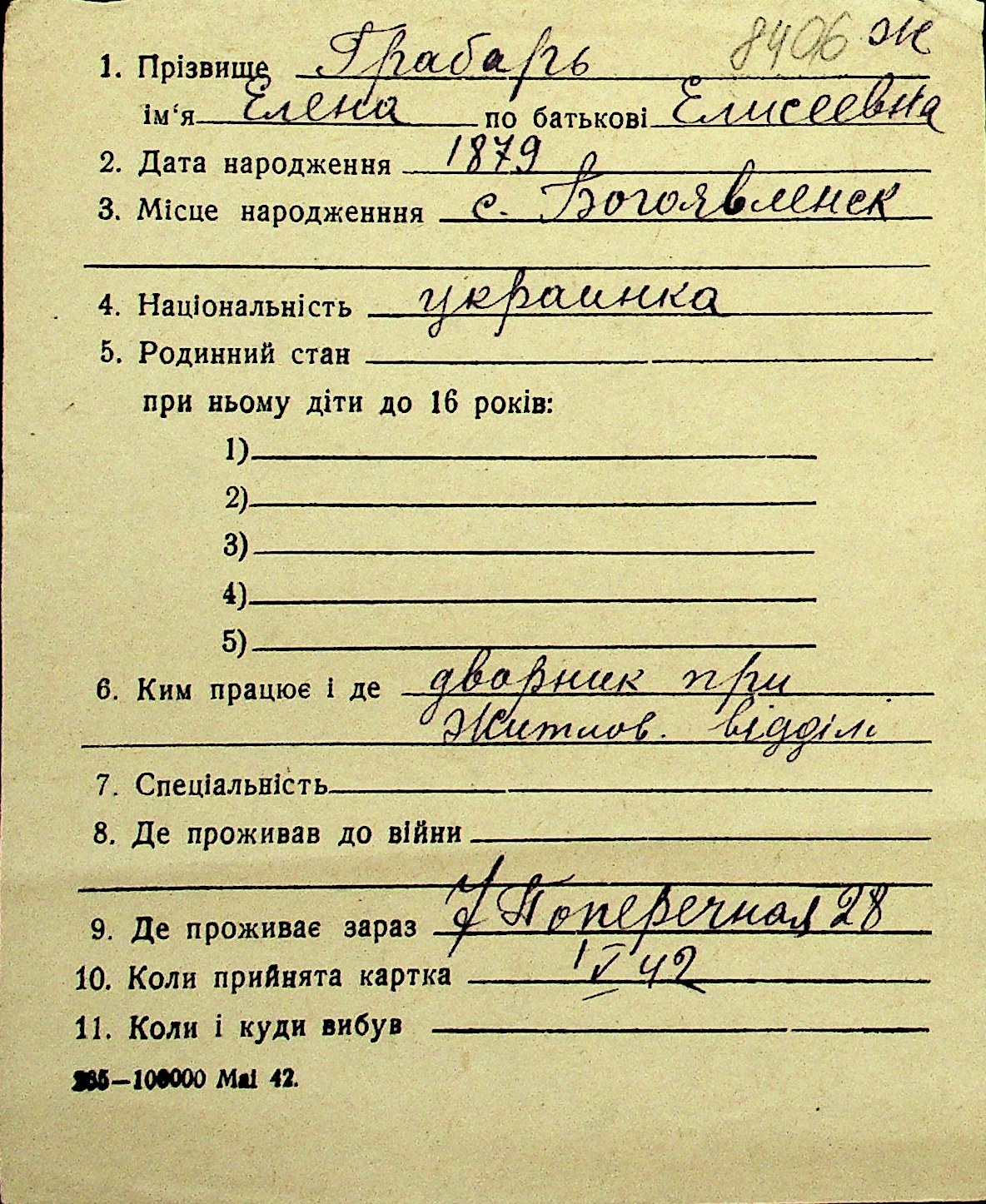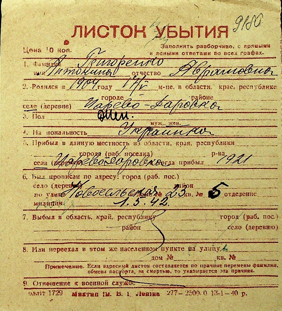 • • Перелік карток до фонду № Н-1016
