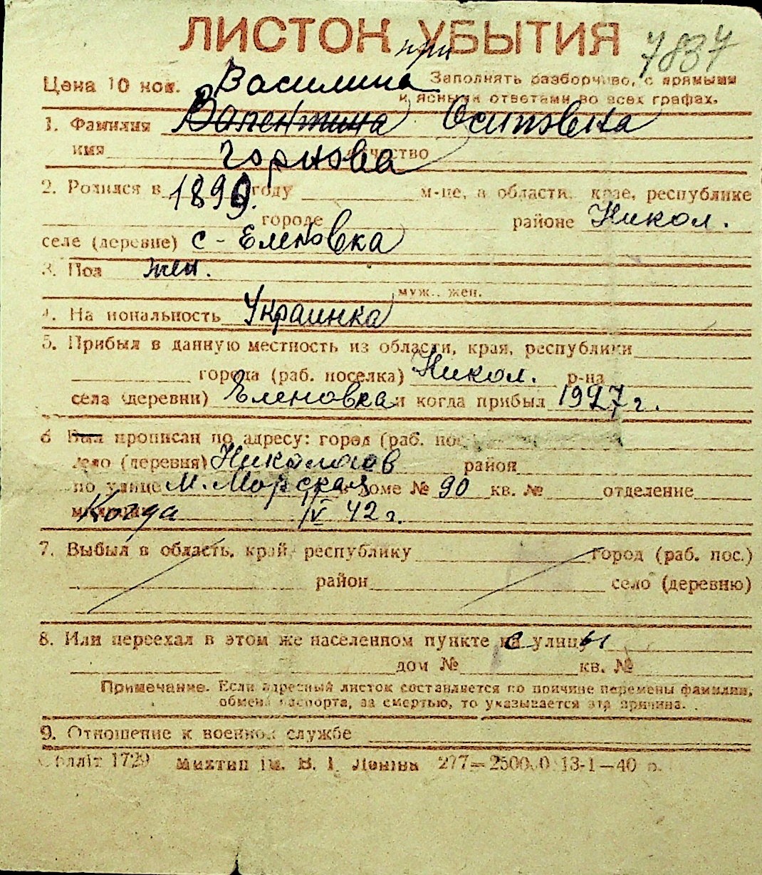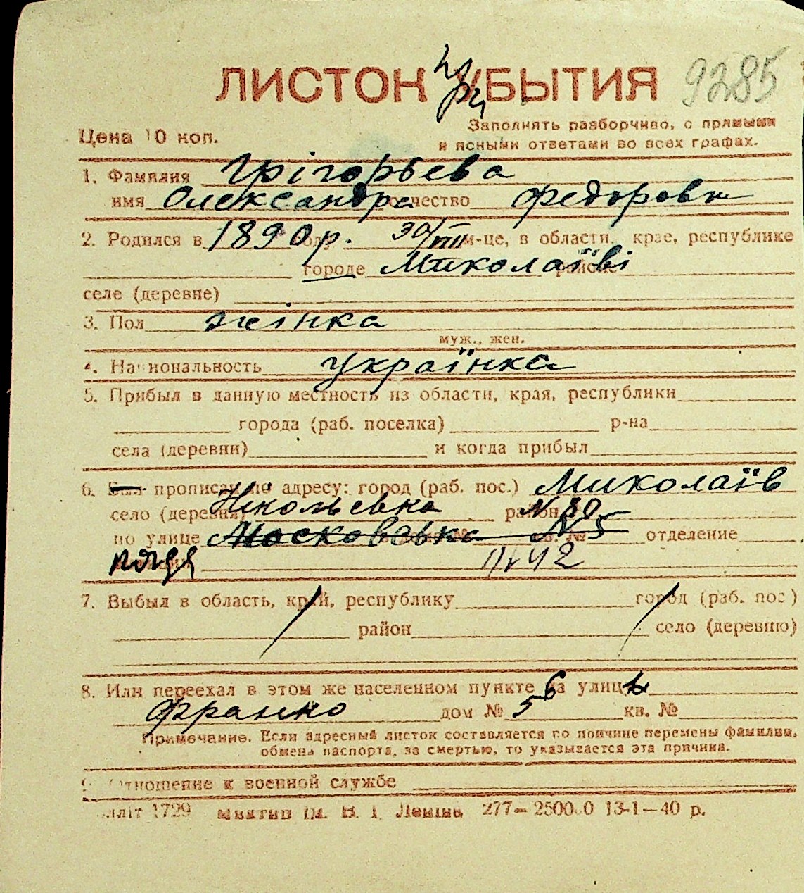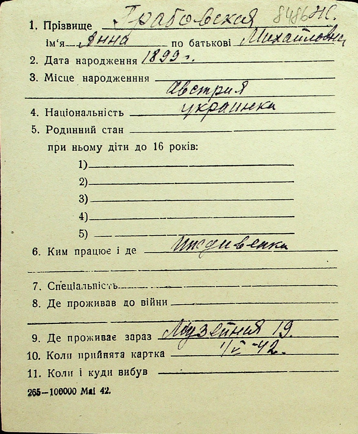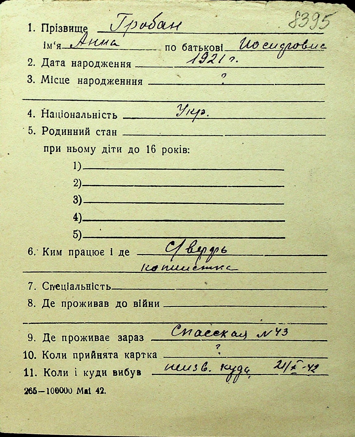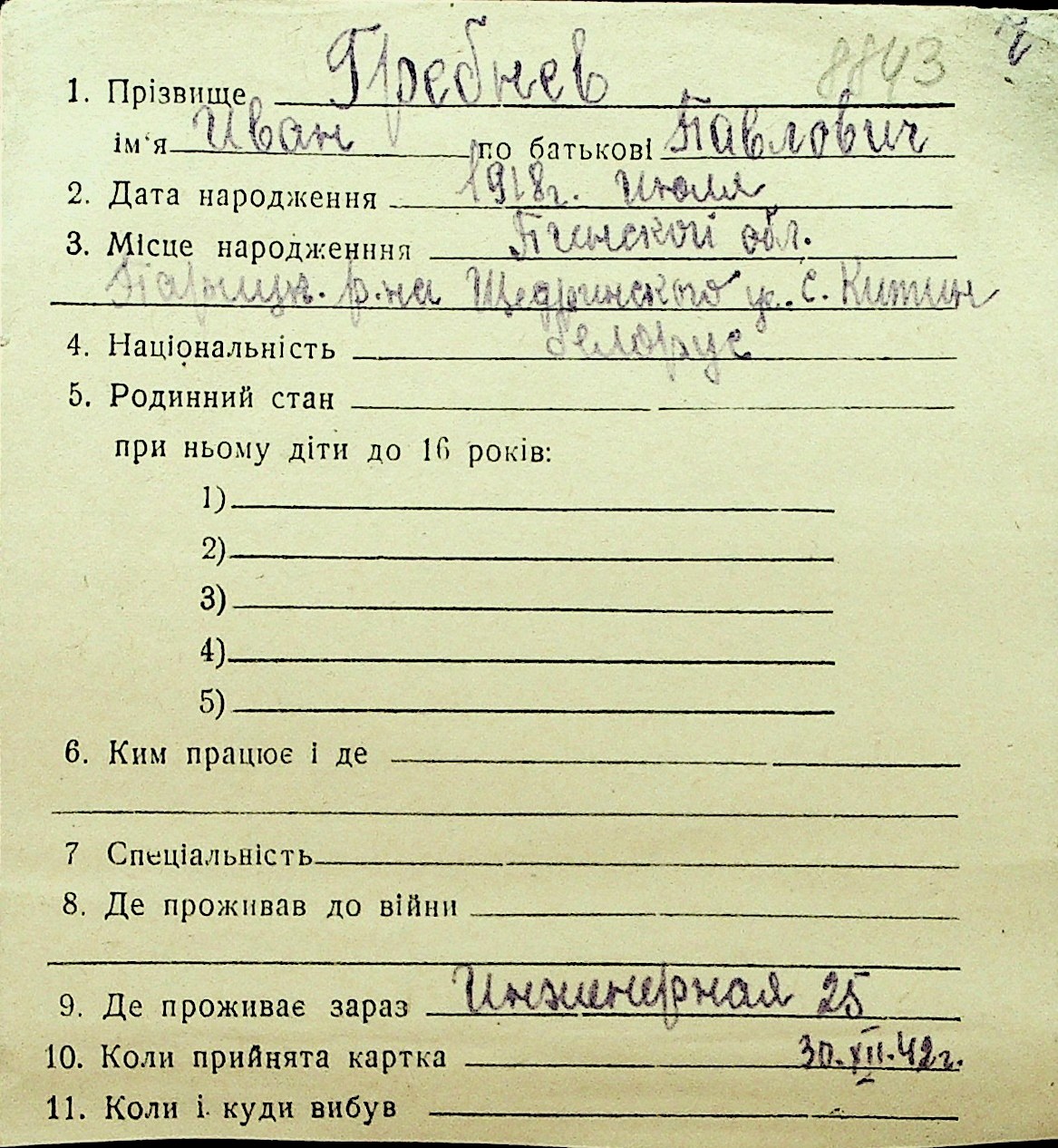 • • Перелік карток до фонду № Н-1016