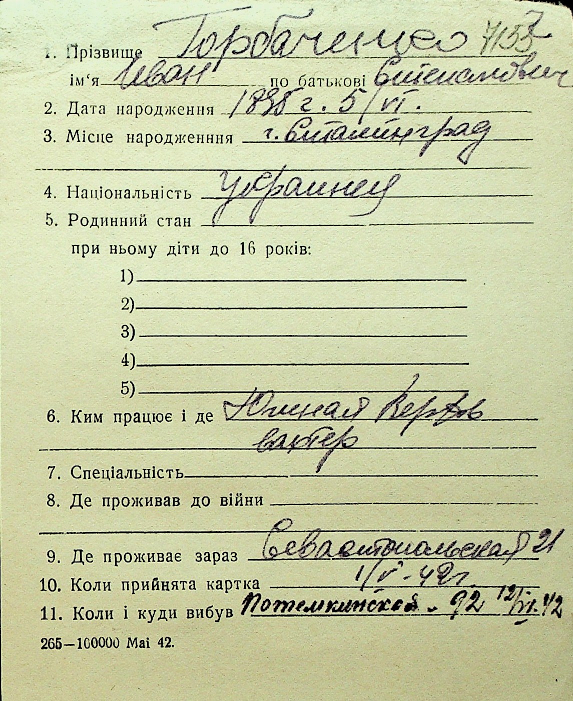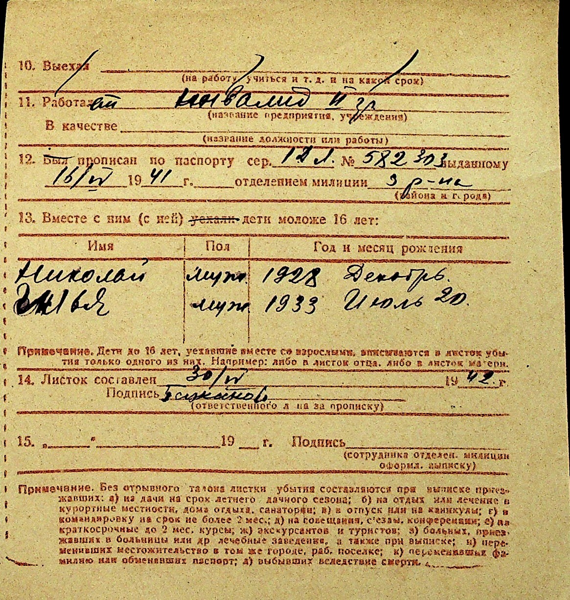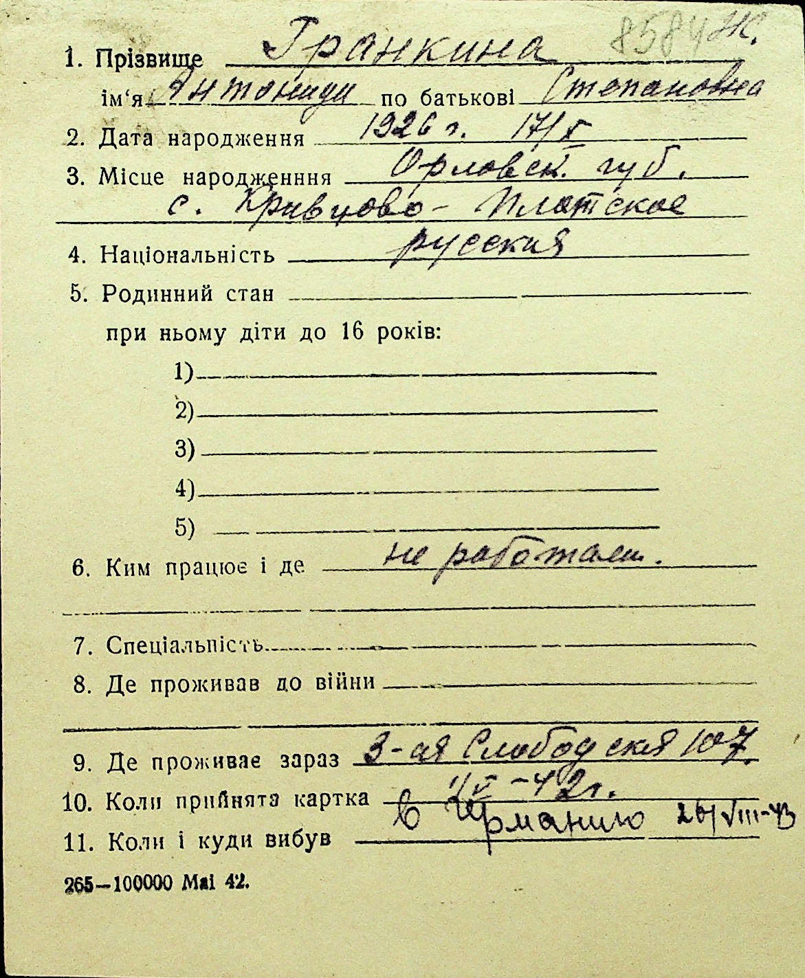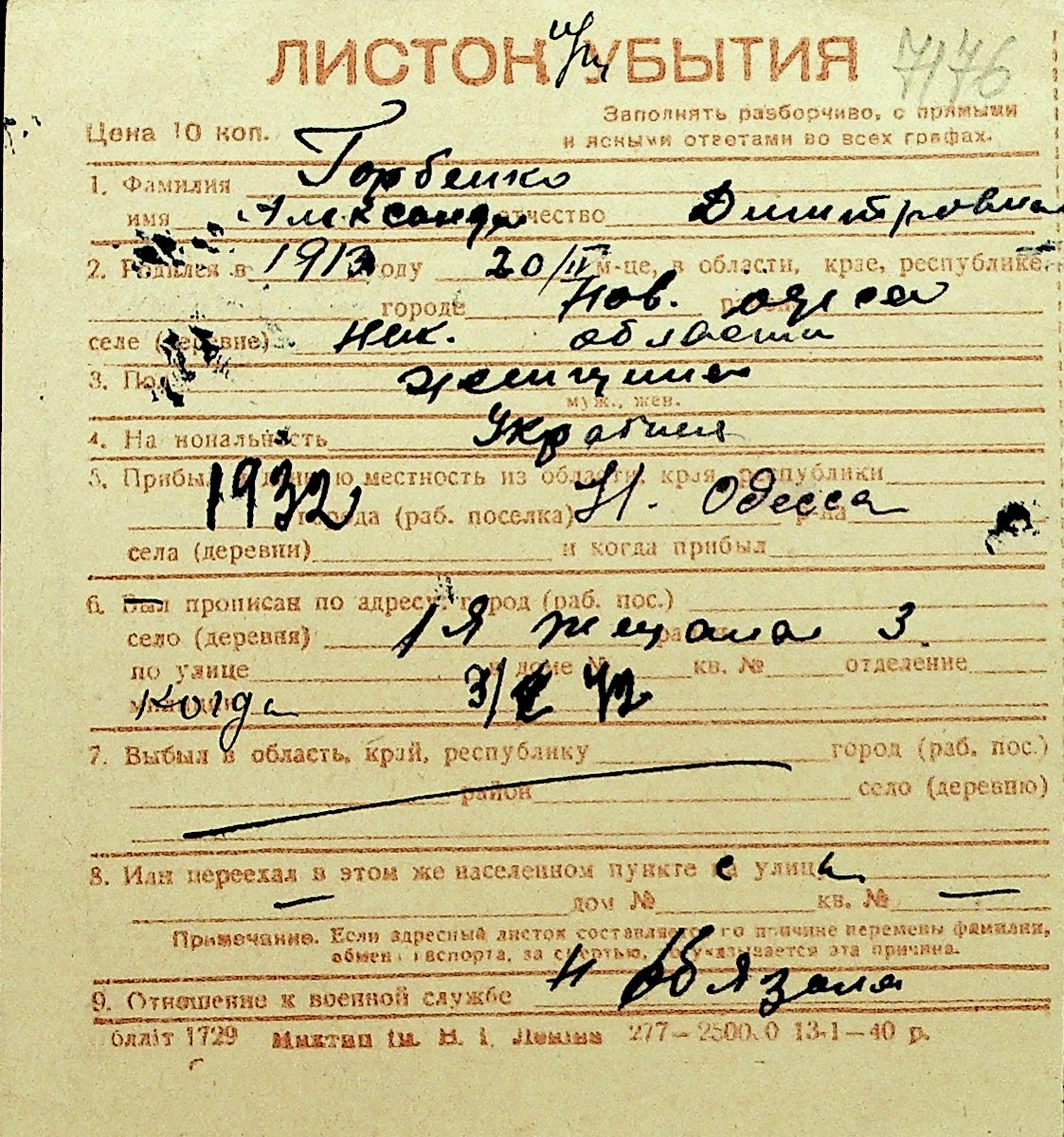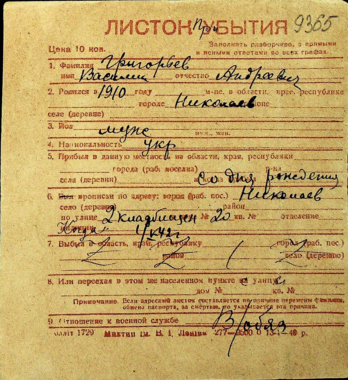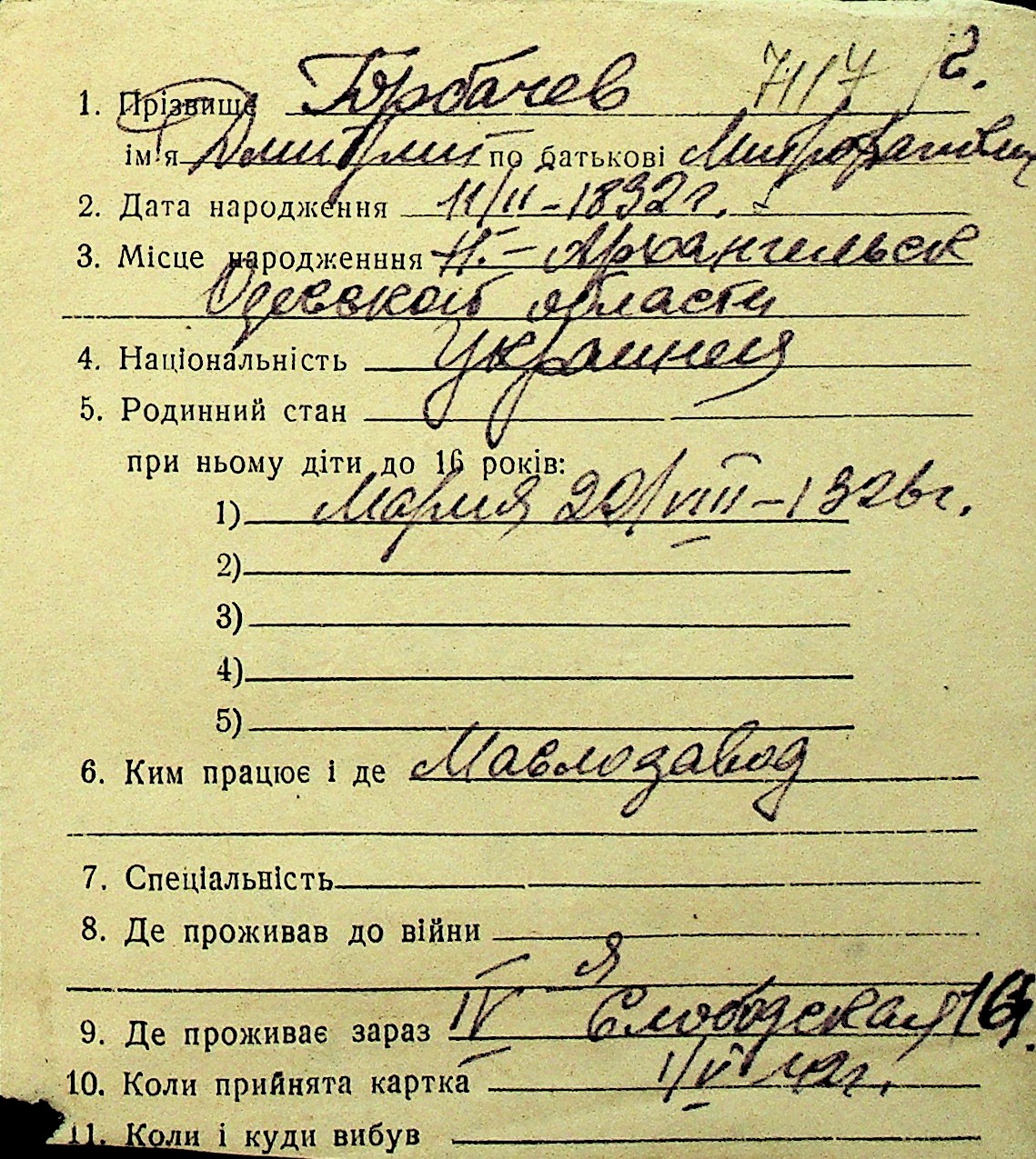• • Перелік карток до фонду № Н-1016