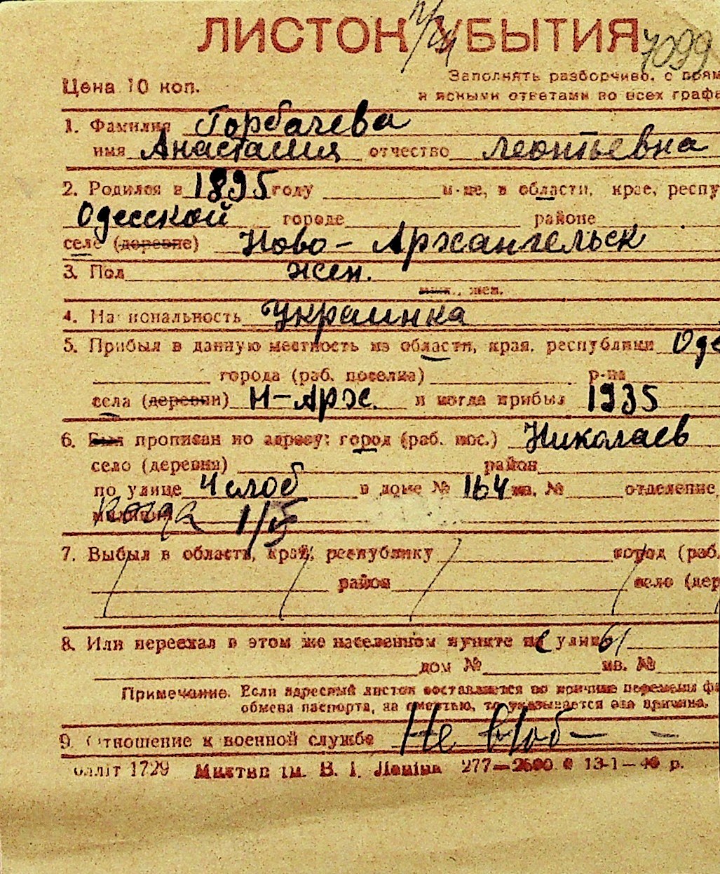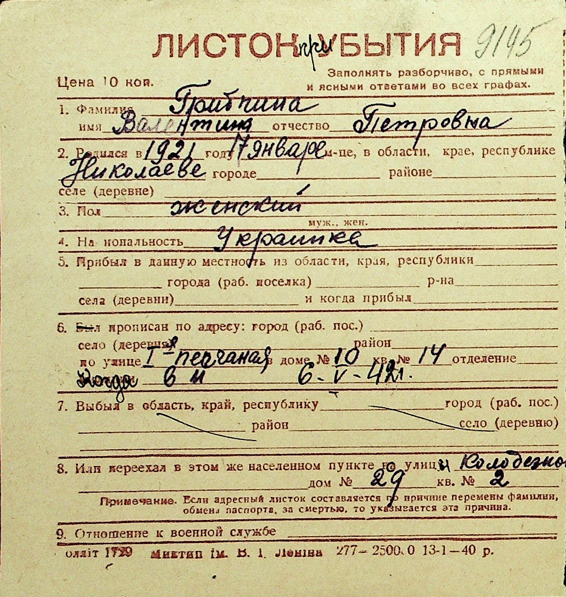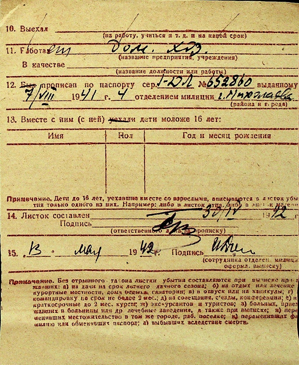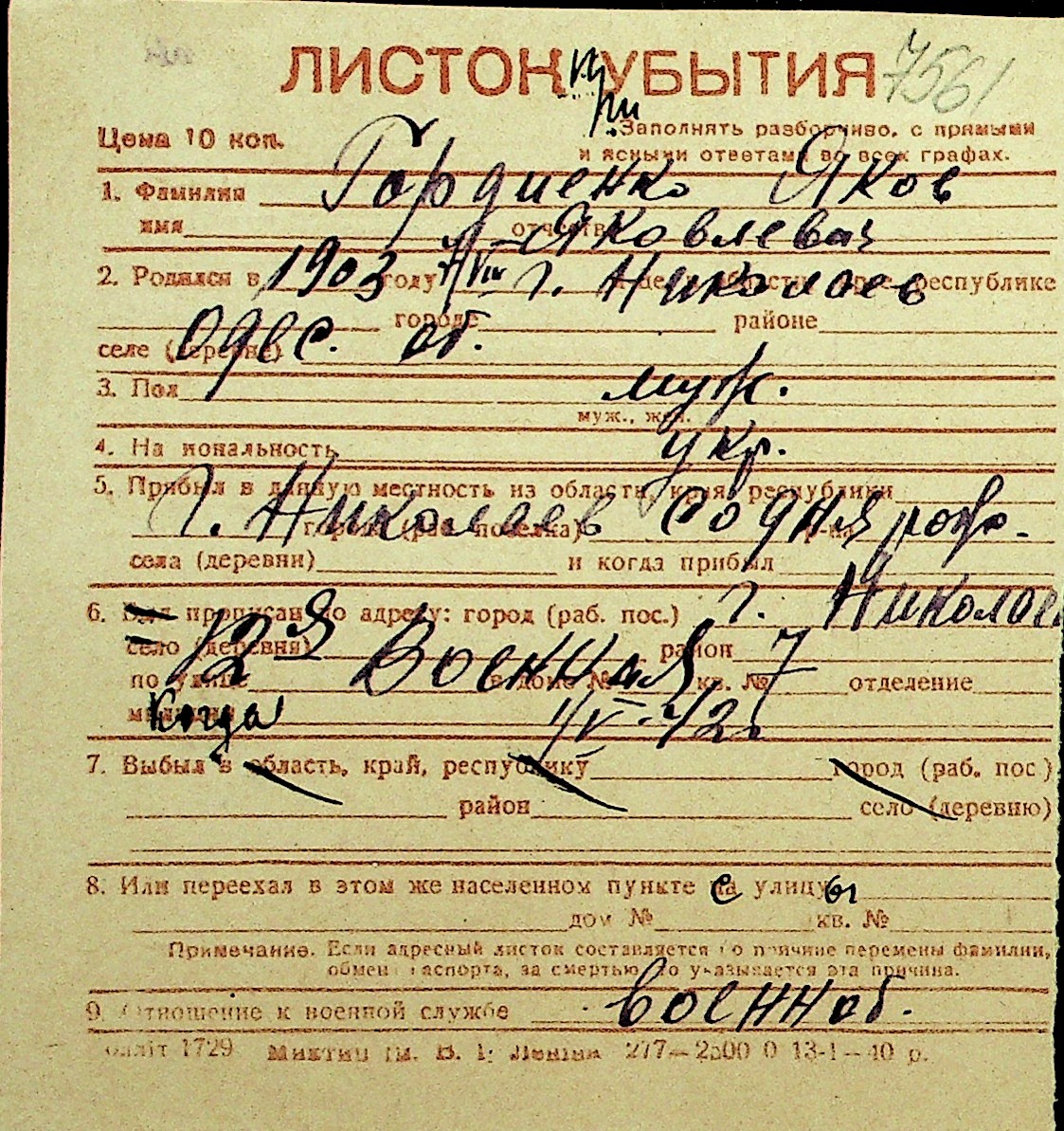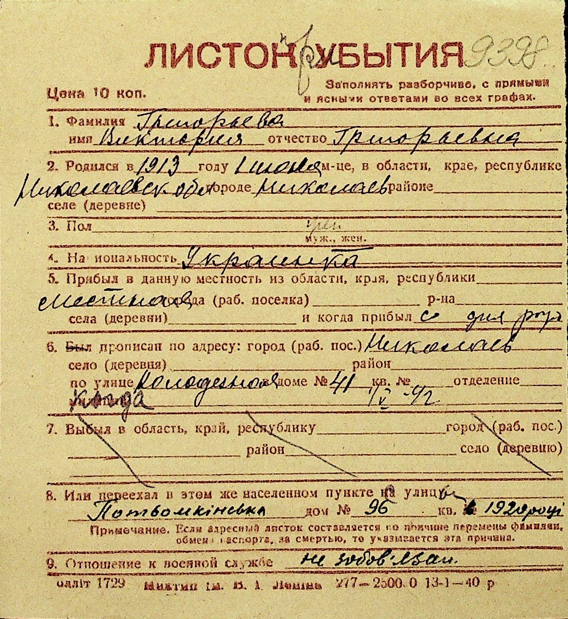 • • Перелік карток до фонду № Н-1016