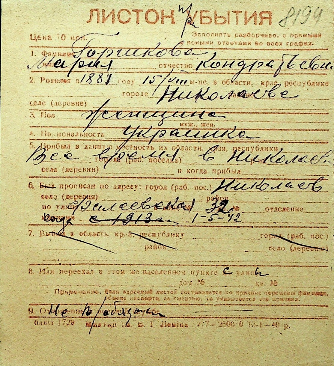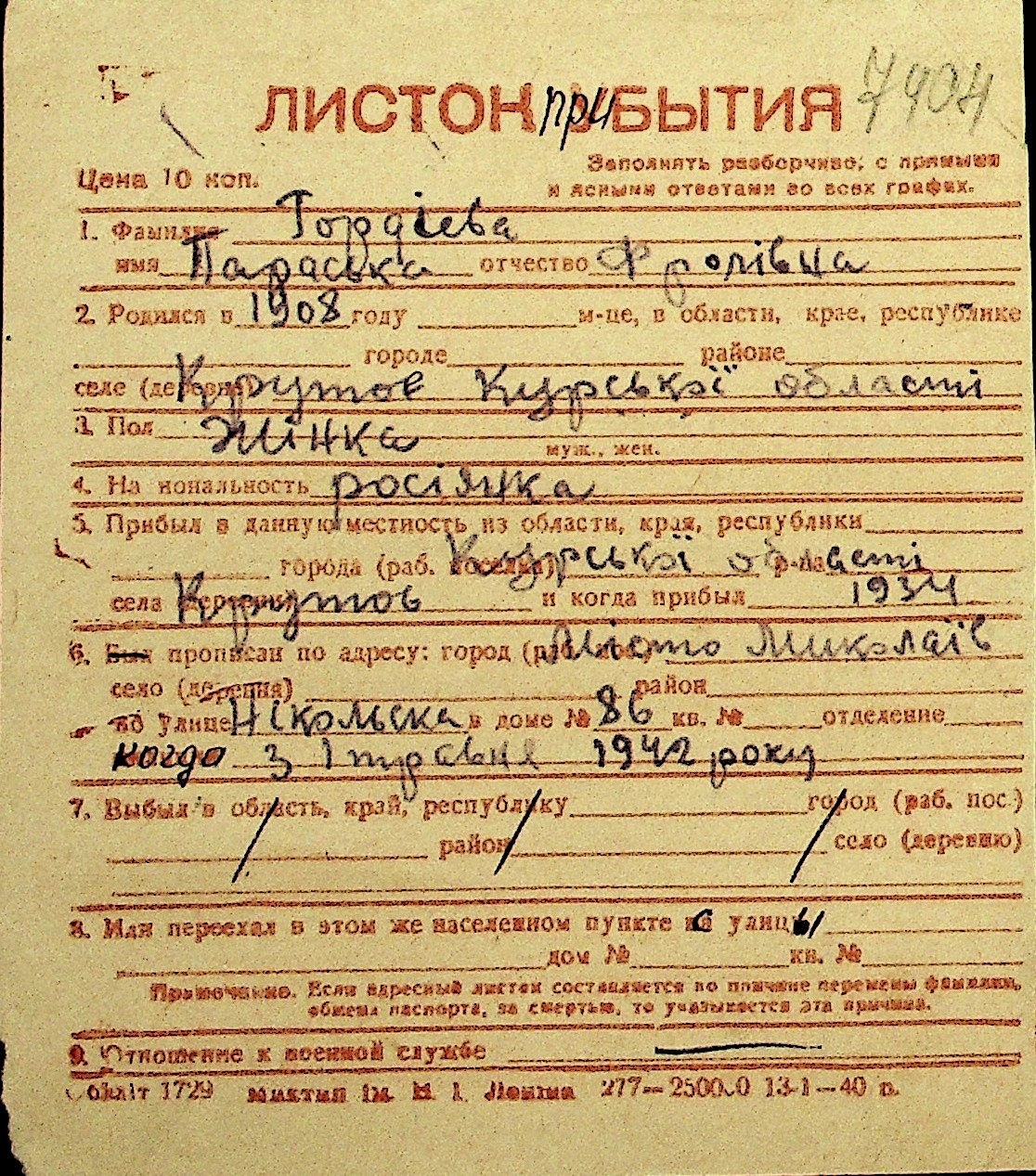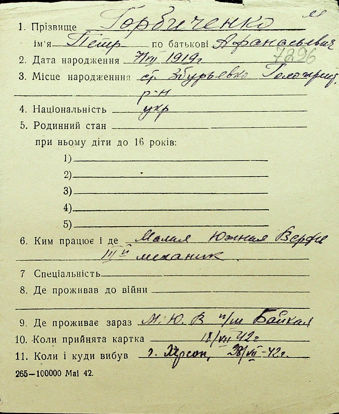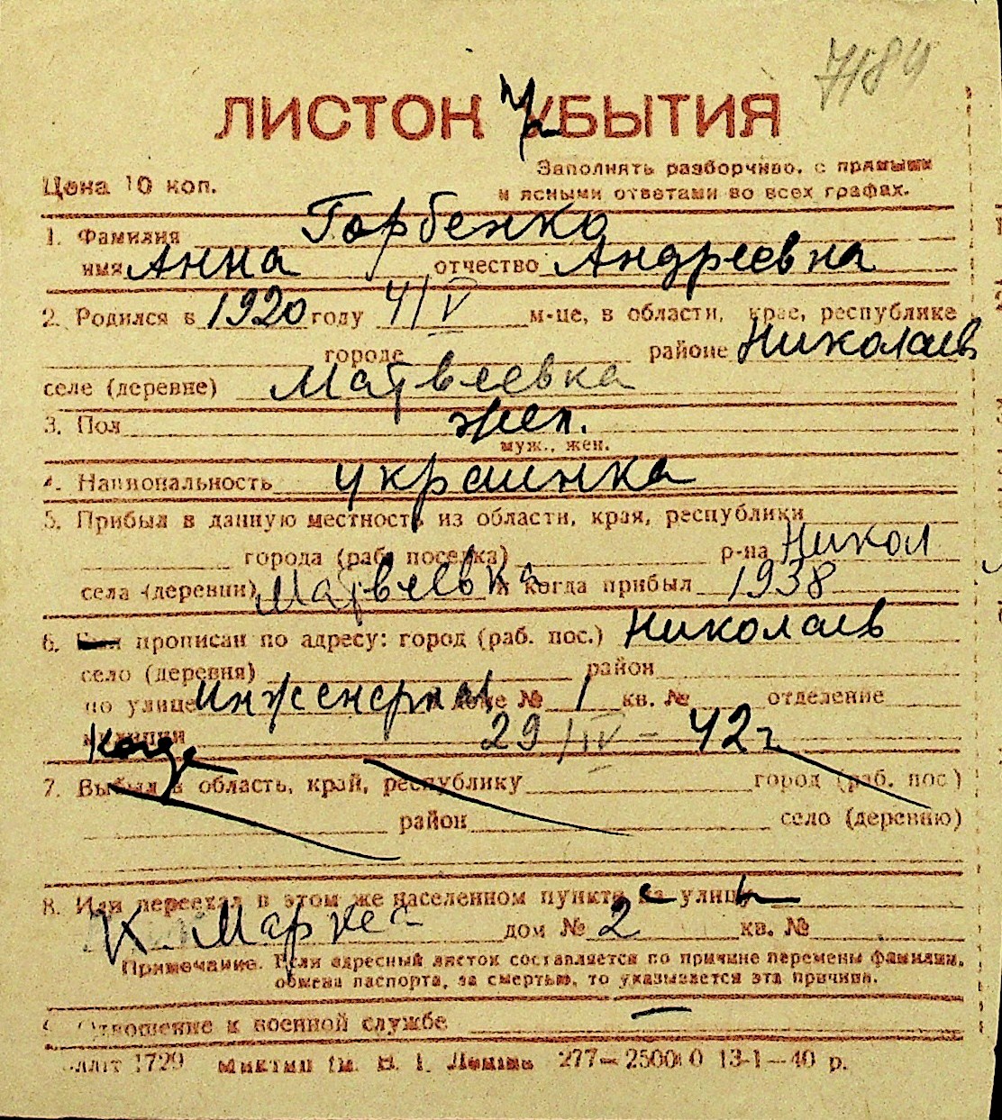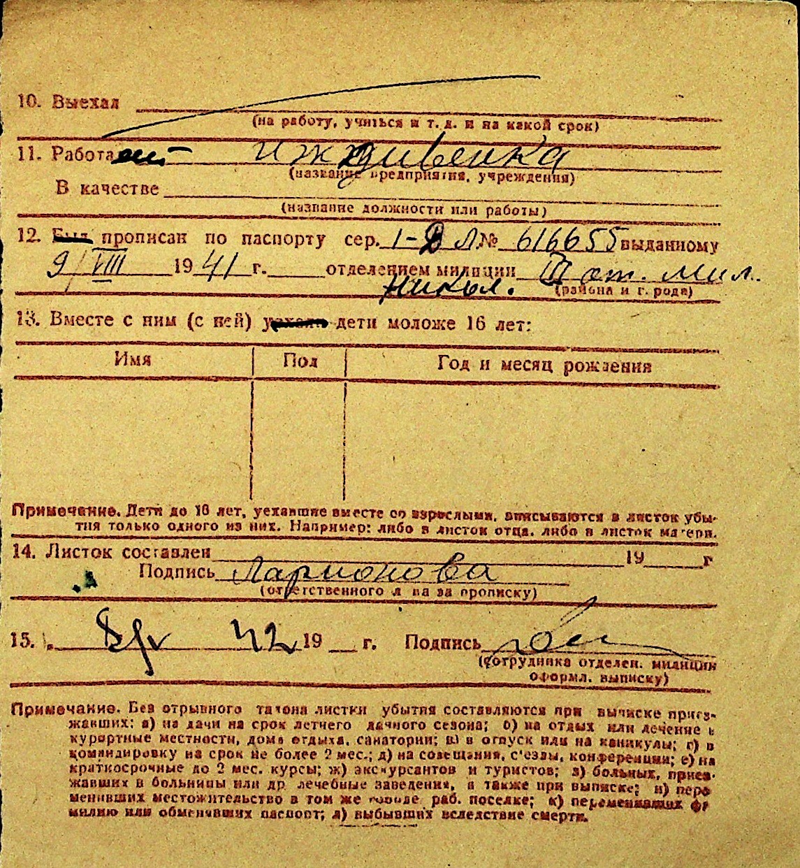 • • Перелік карток до фонду № Н-1016