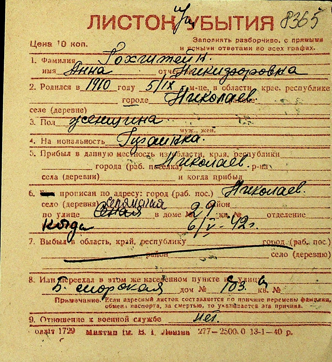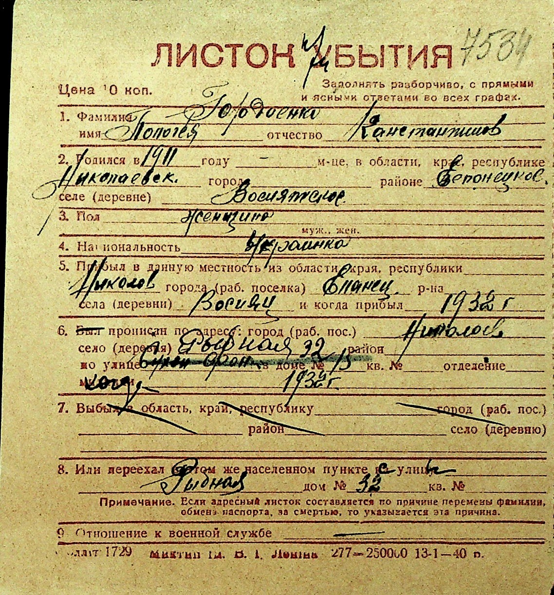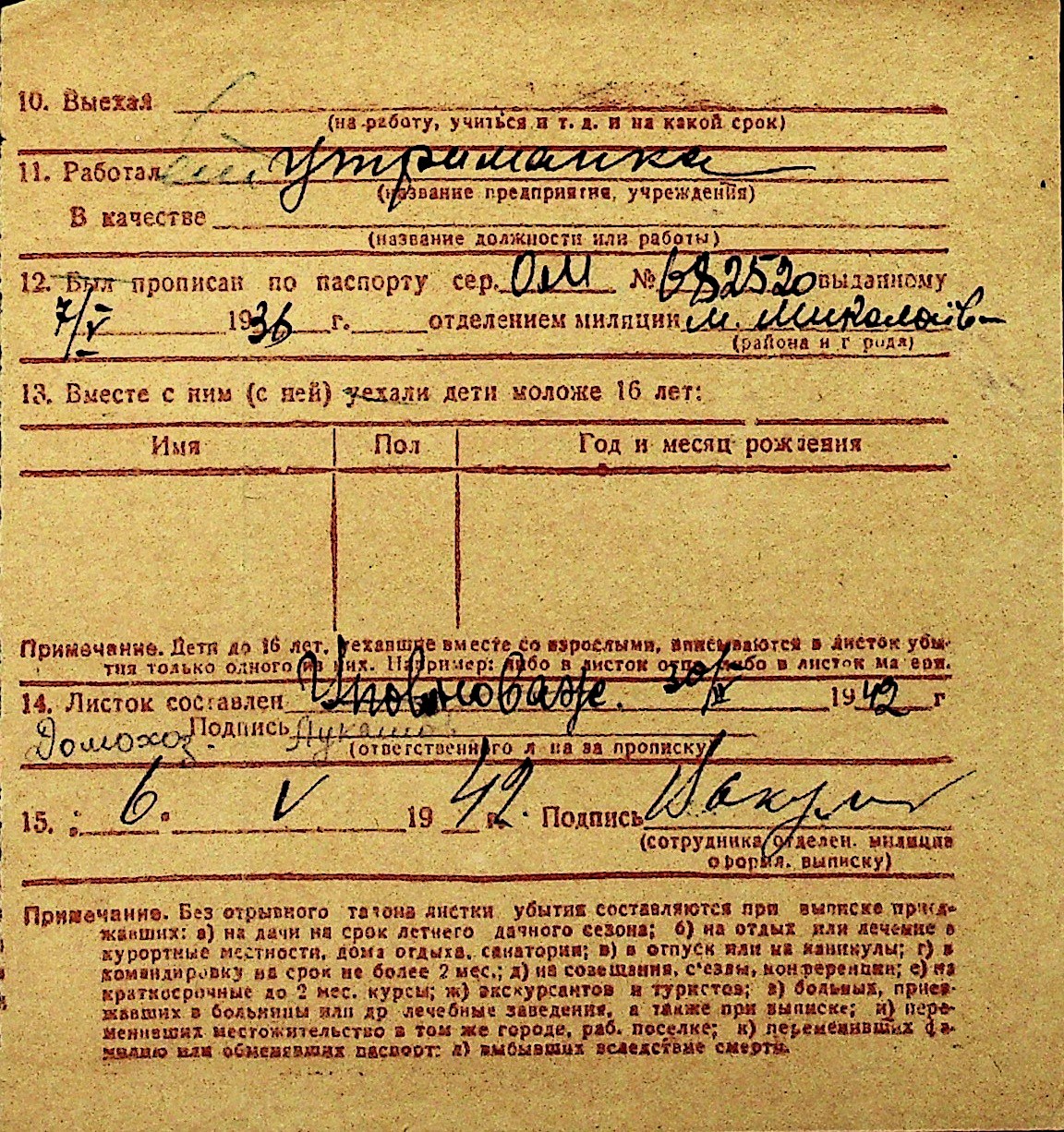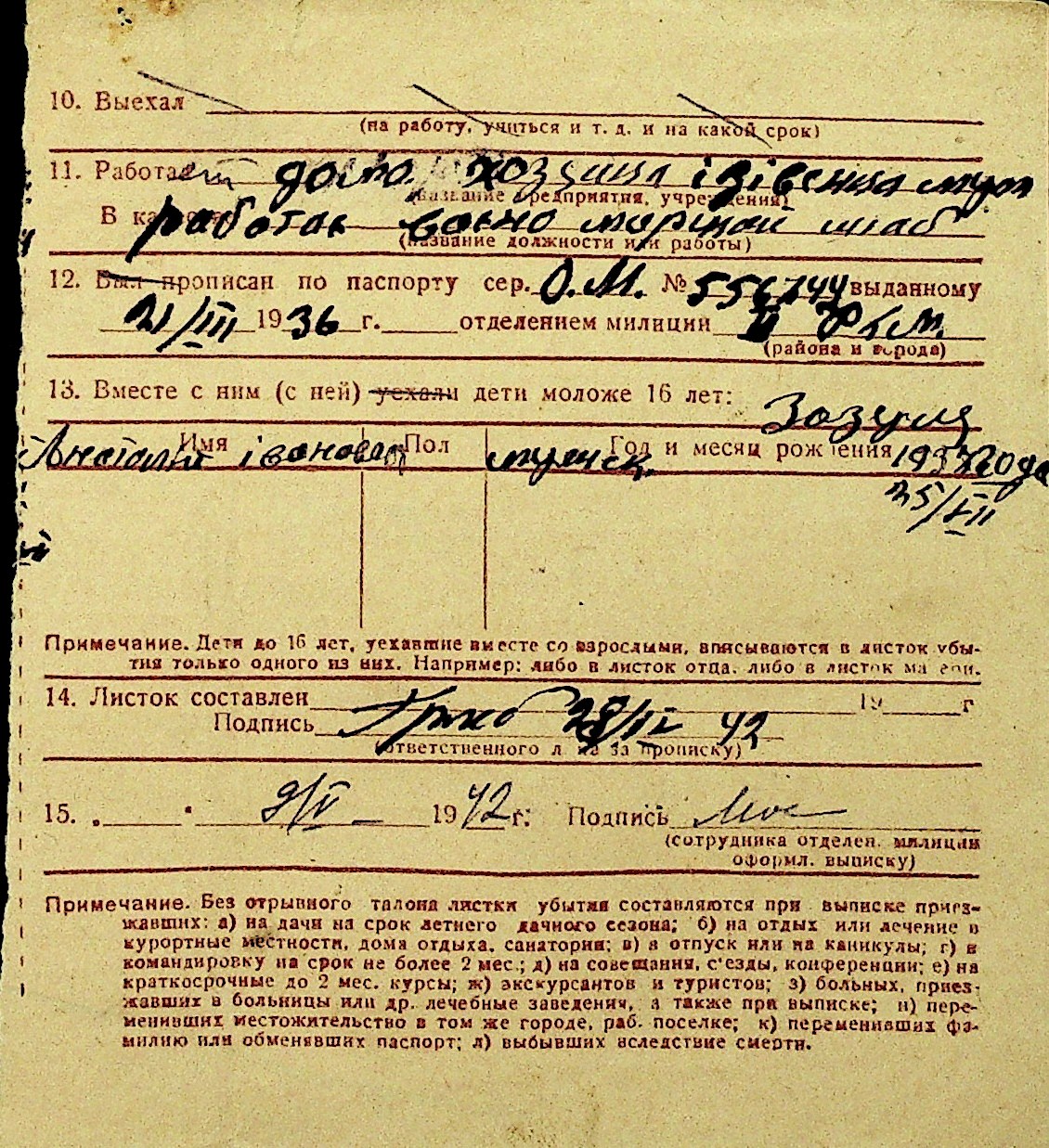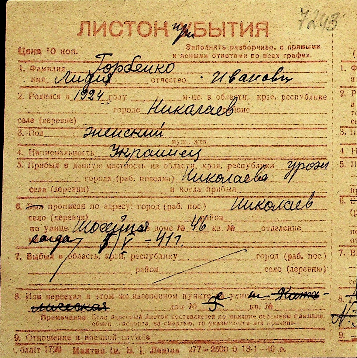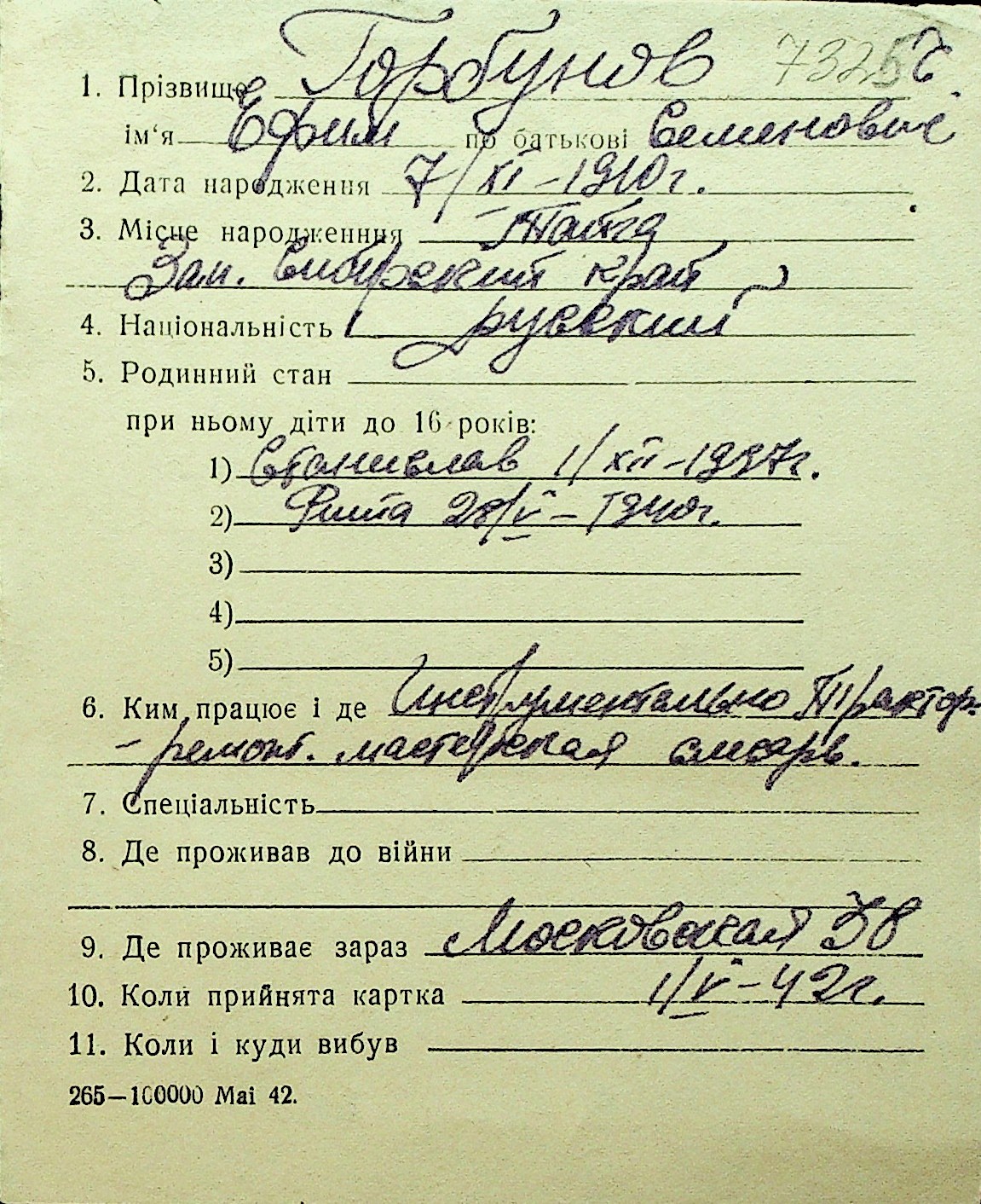 • • Перелік карток до фонду № Н-1016