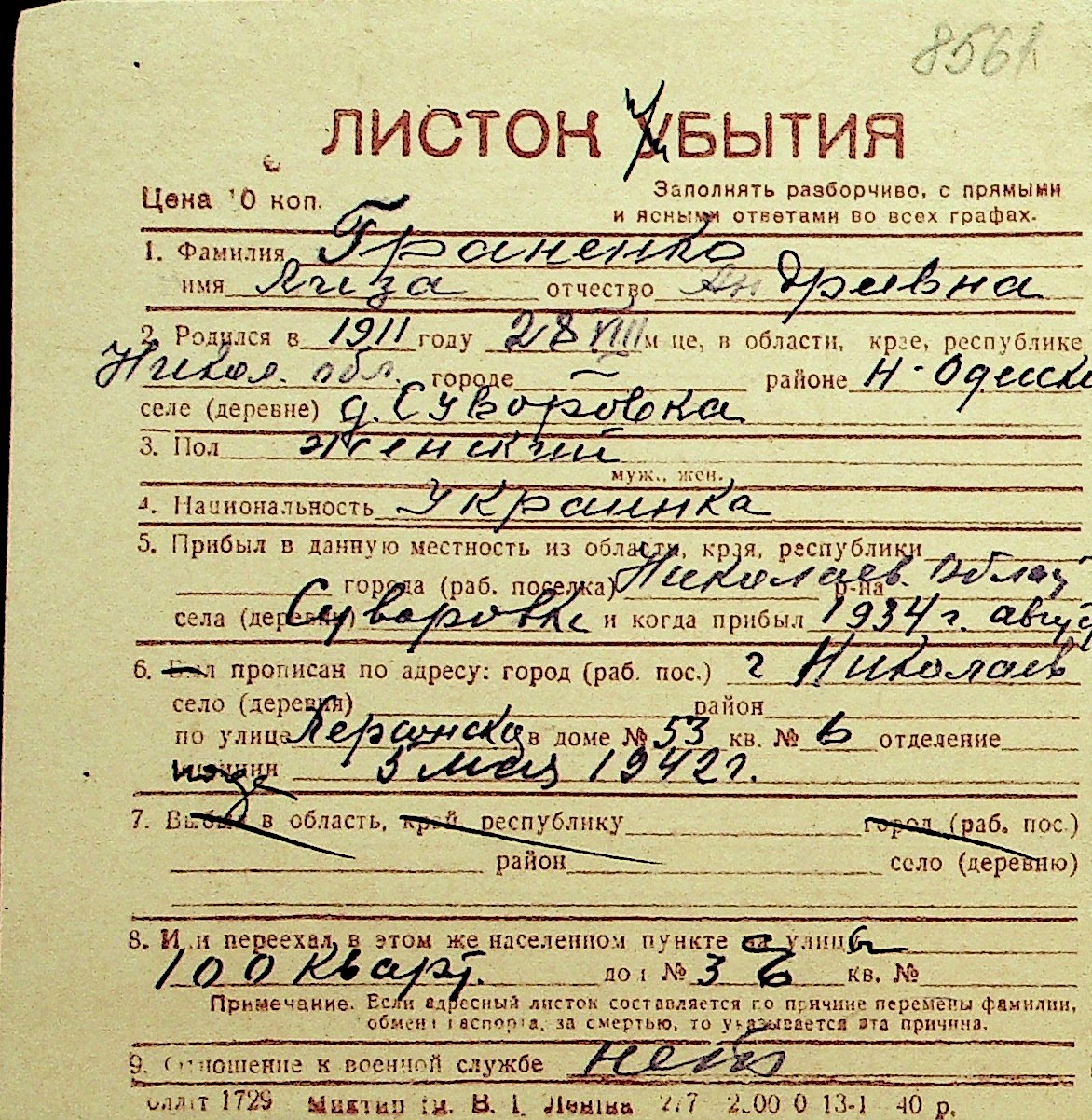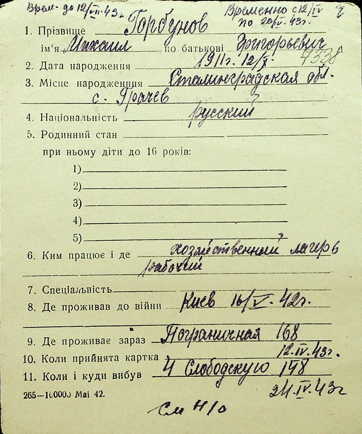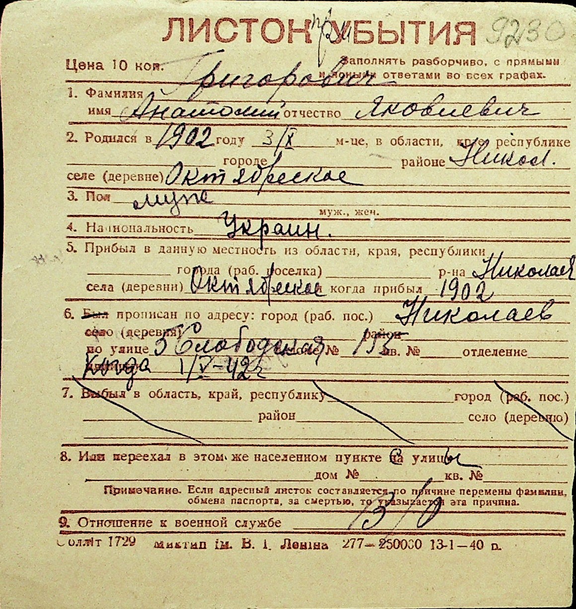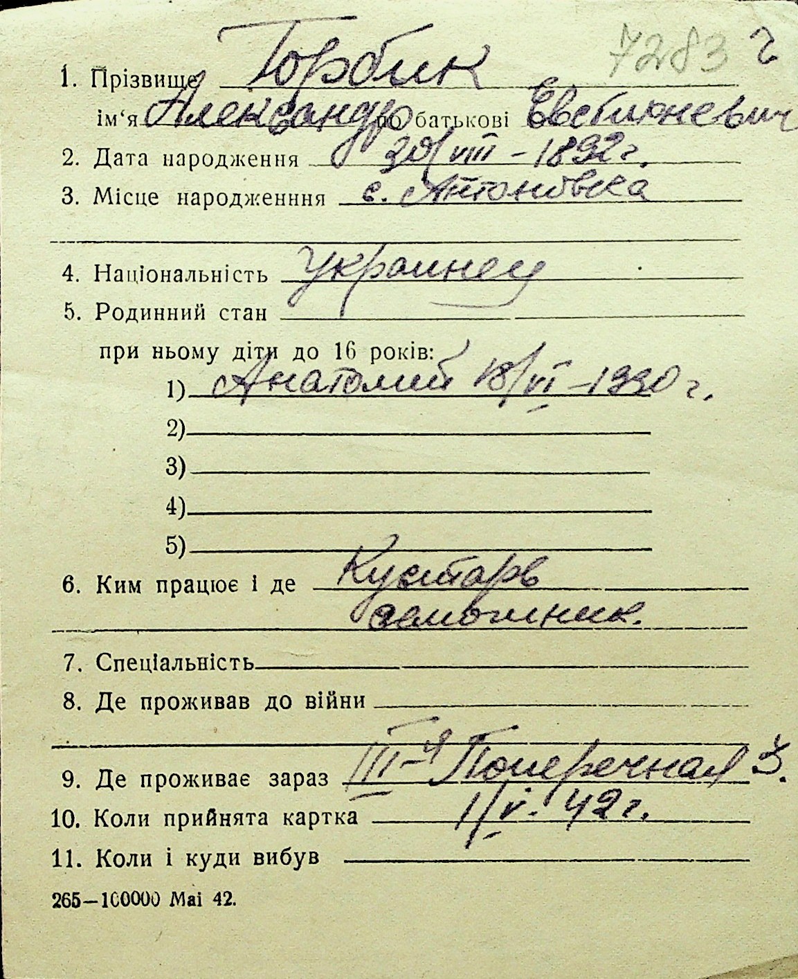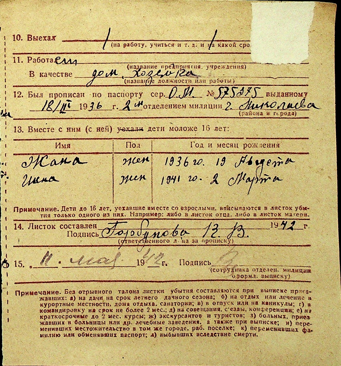 • • Перелік карток до фонду № Н-1016