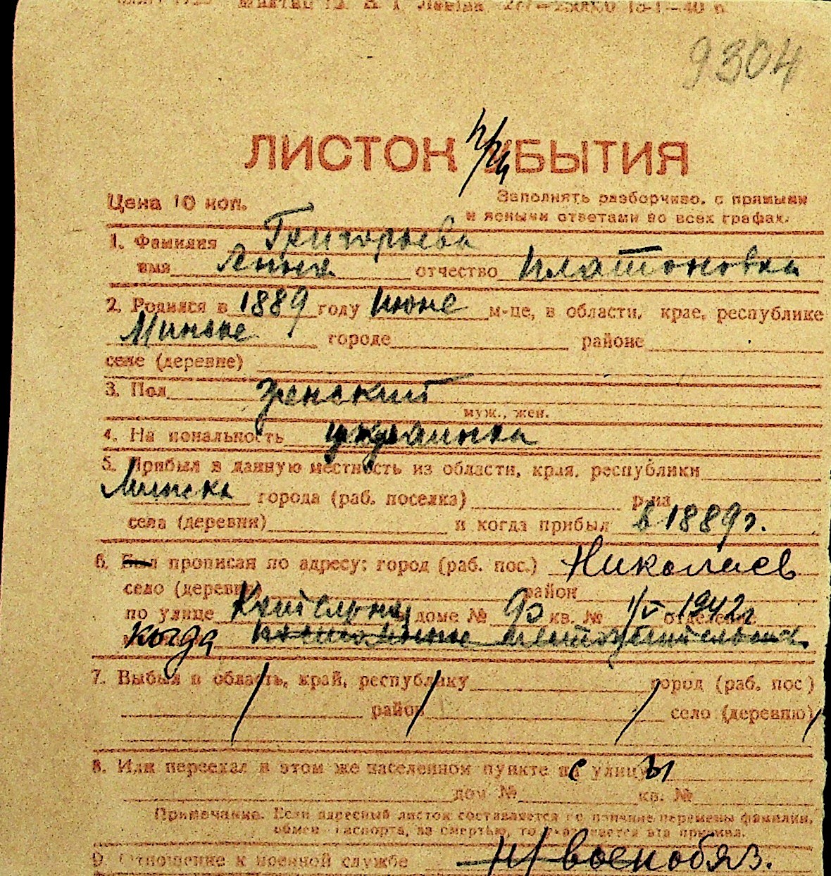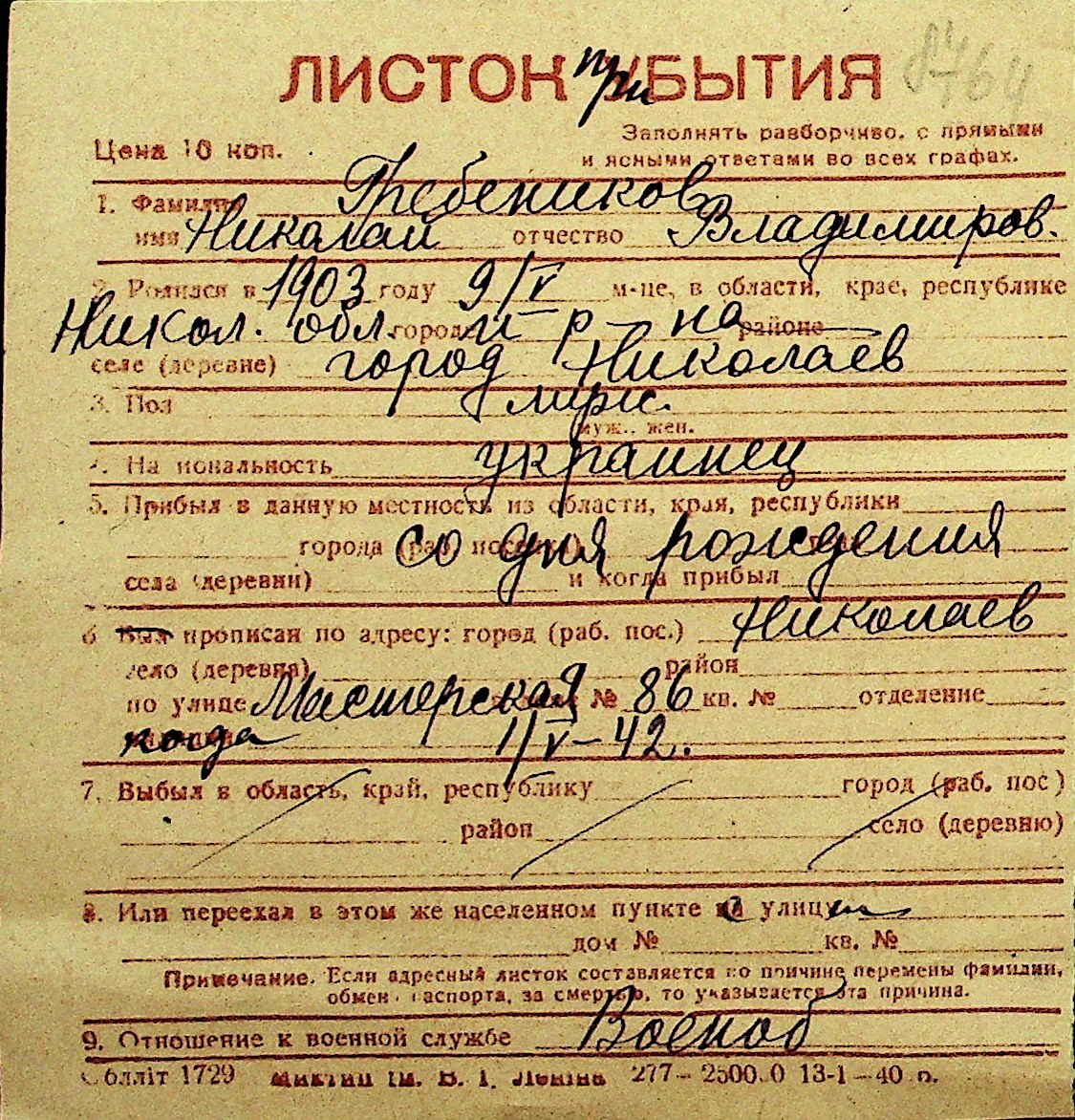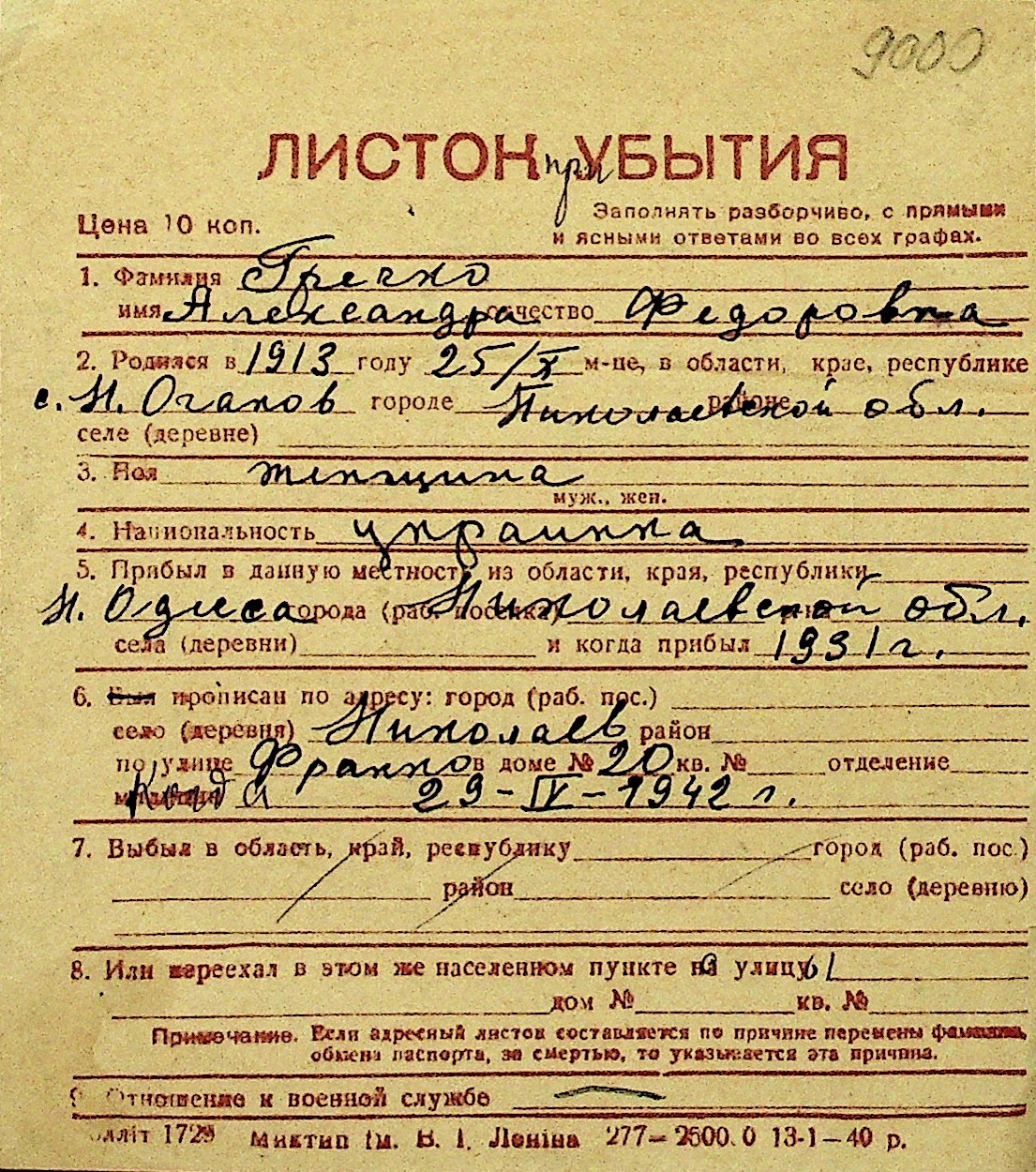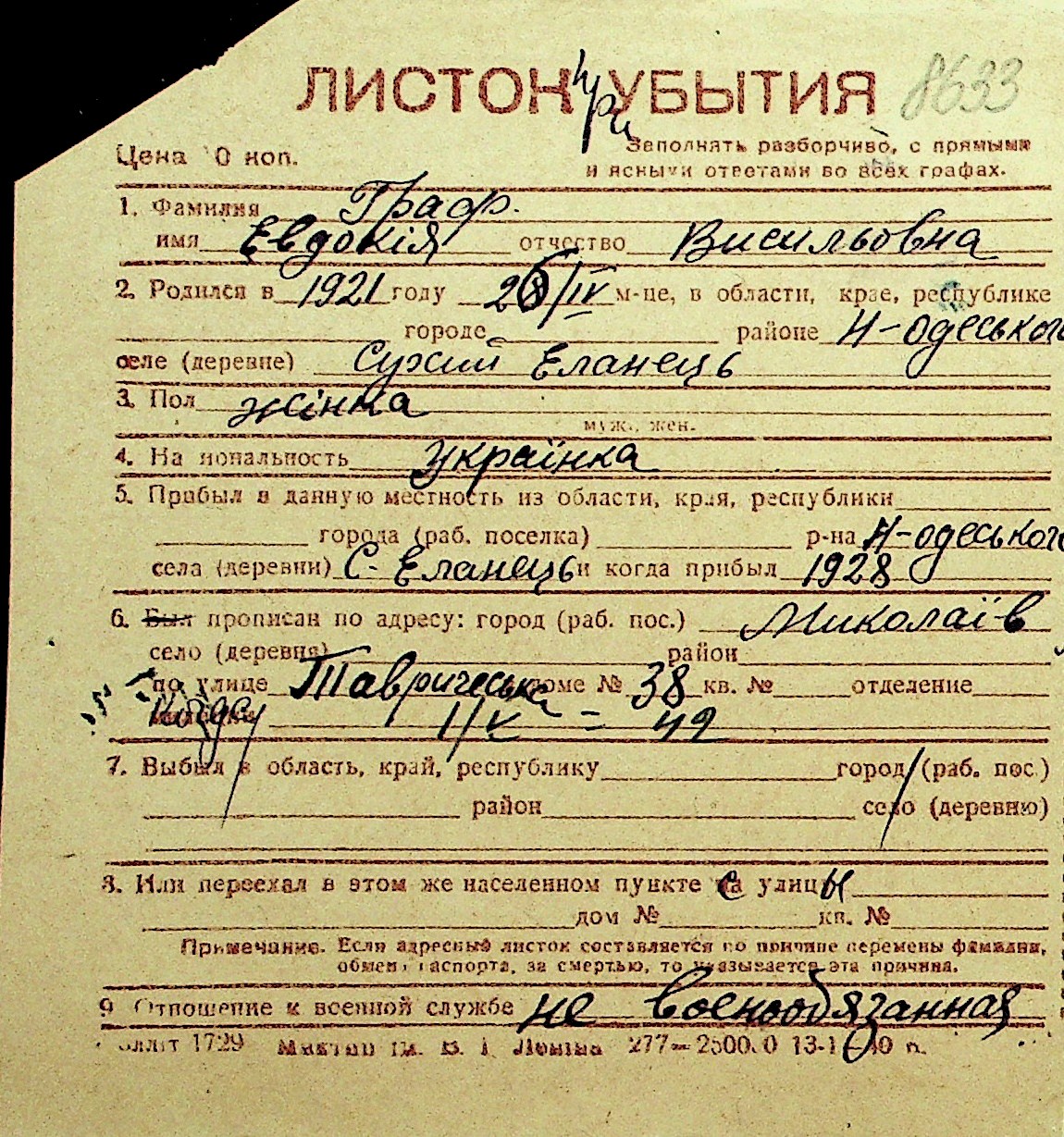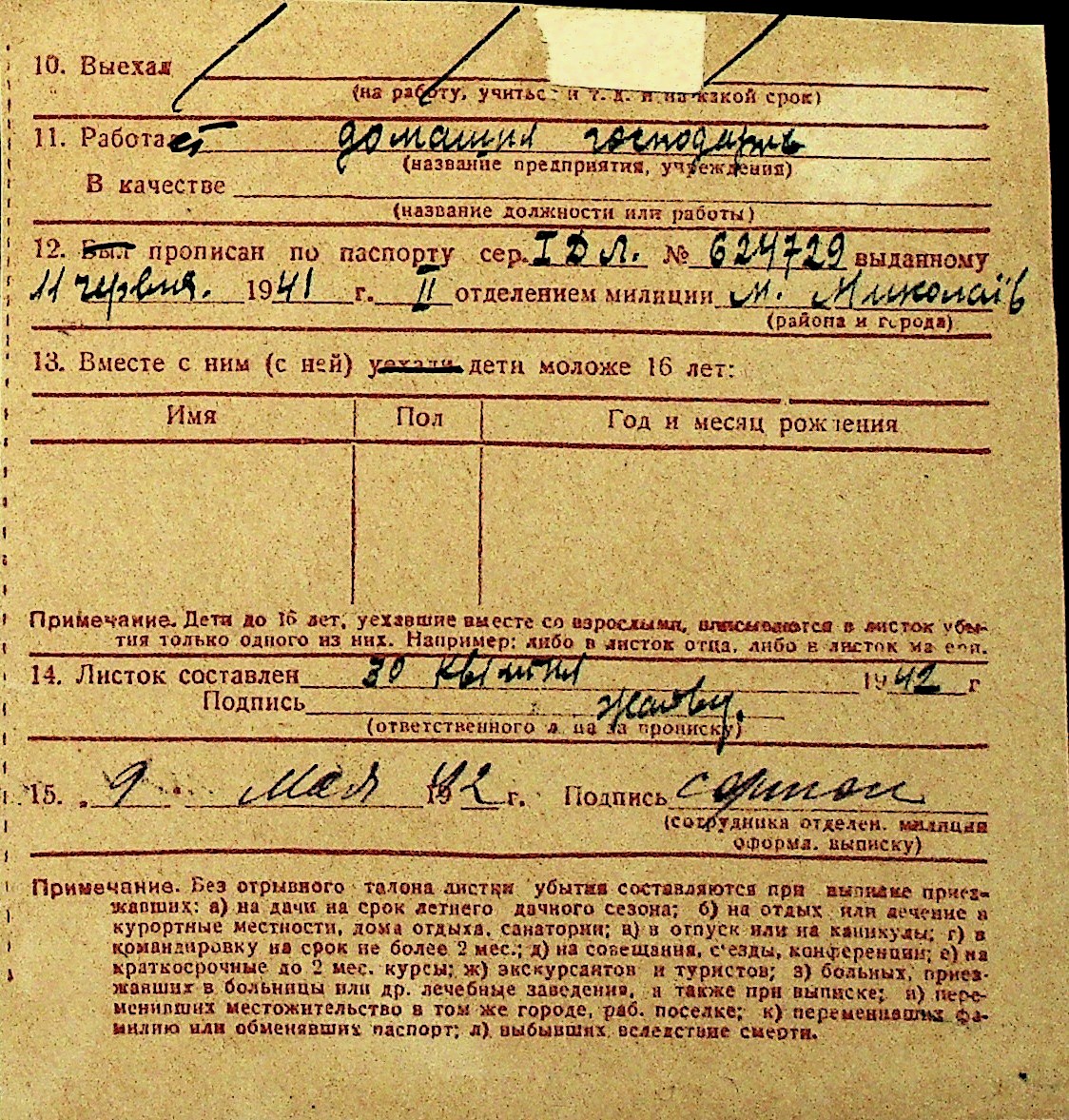 • • Перелік карток до фонду № Н-1016