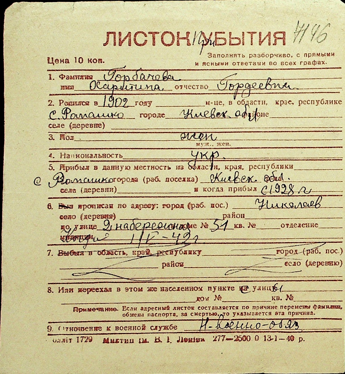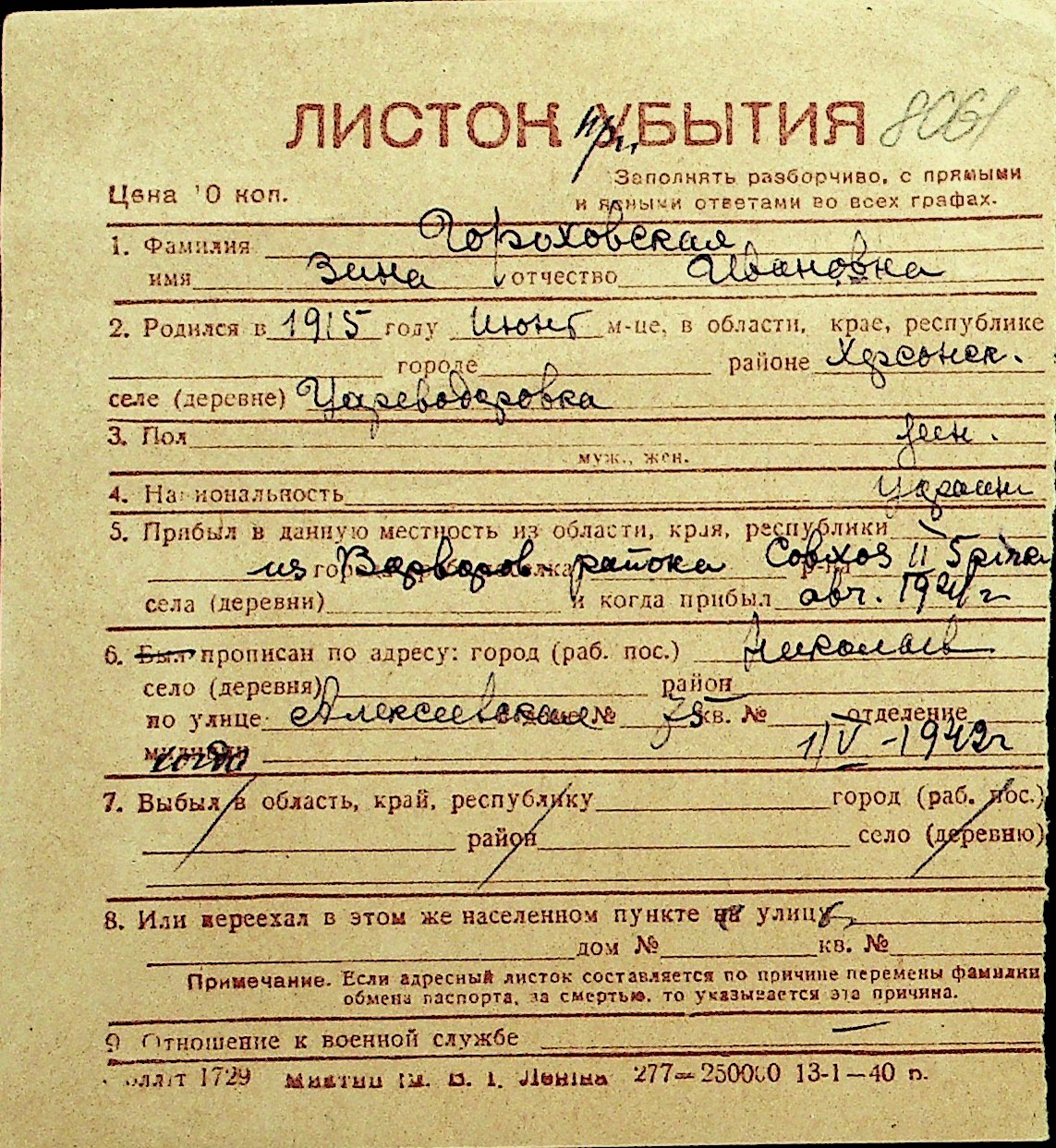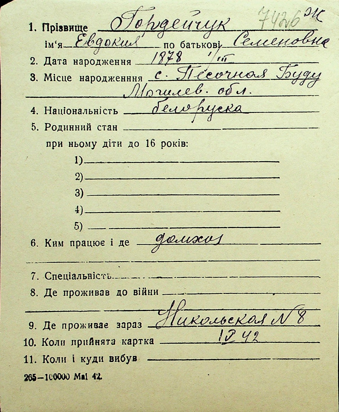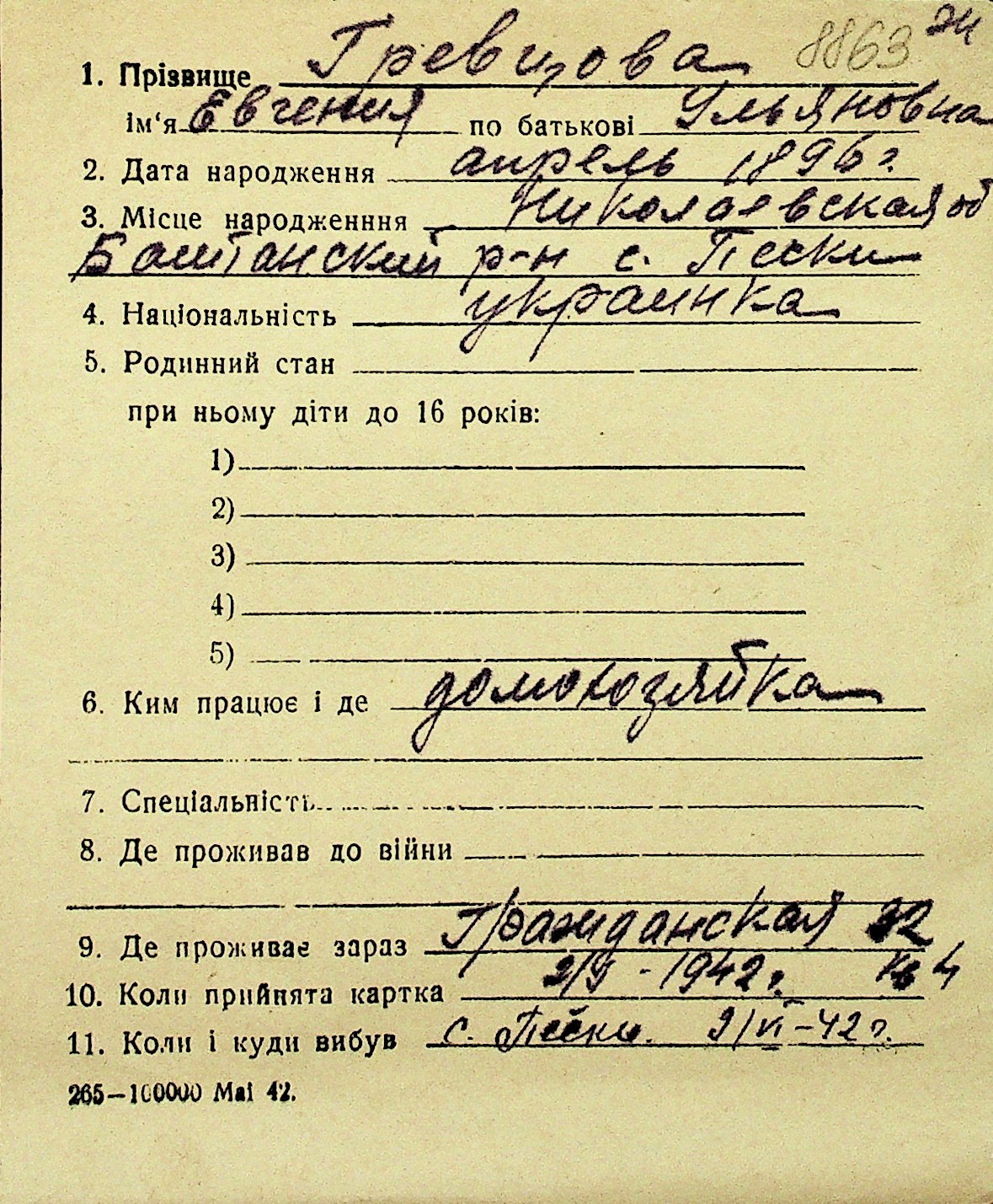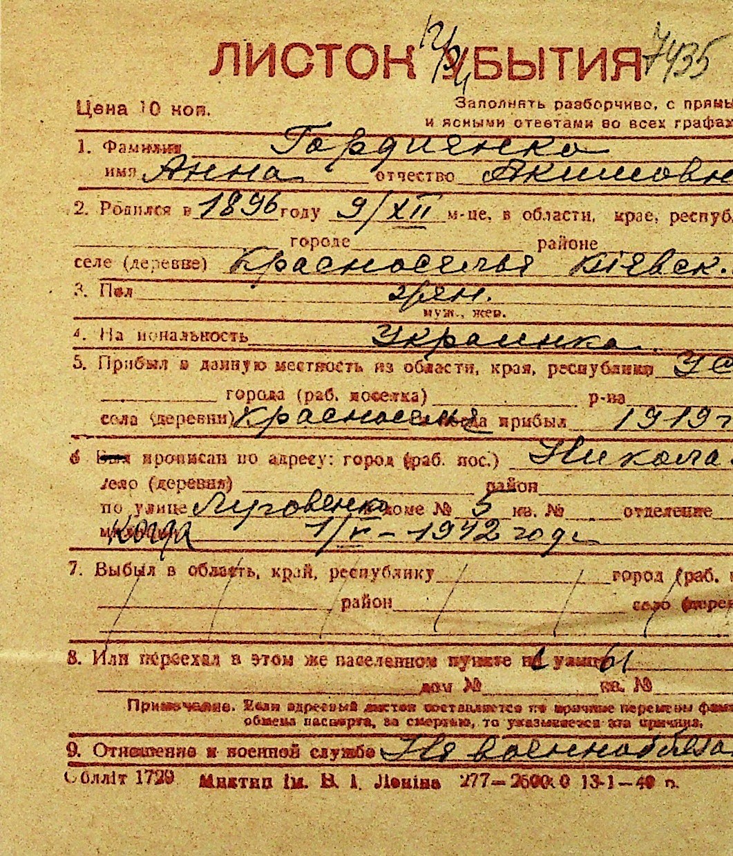 • • Перелік карток до фонду № Н-1016